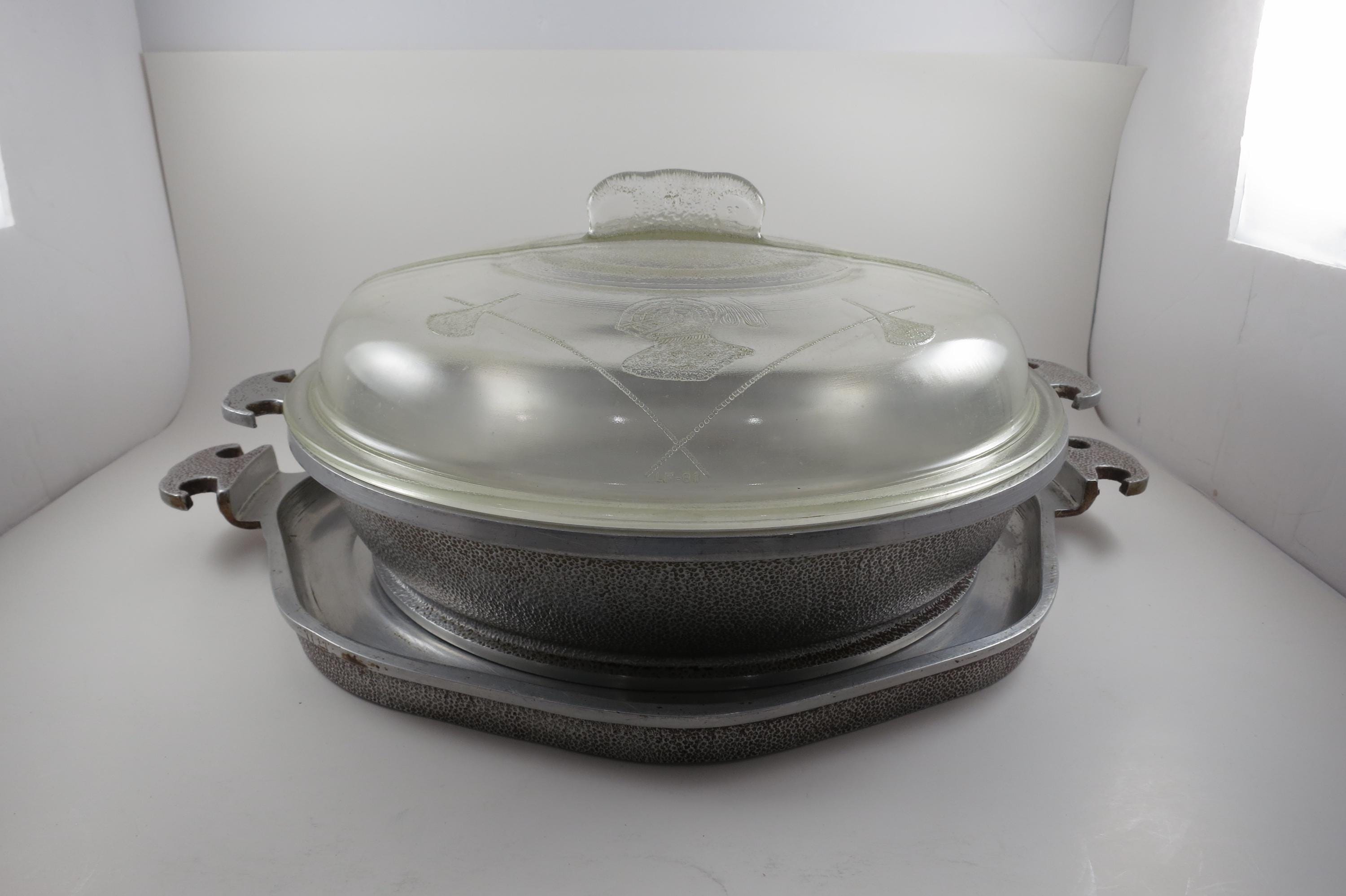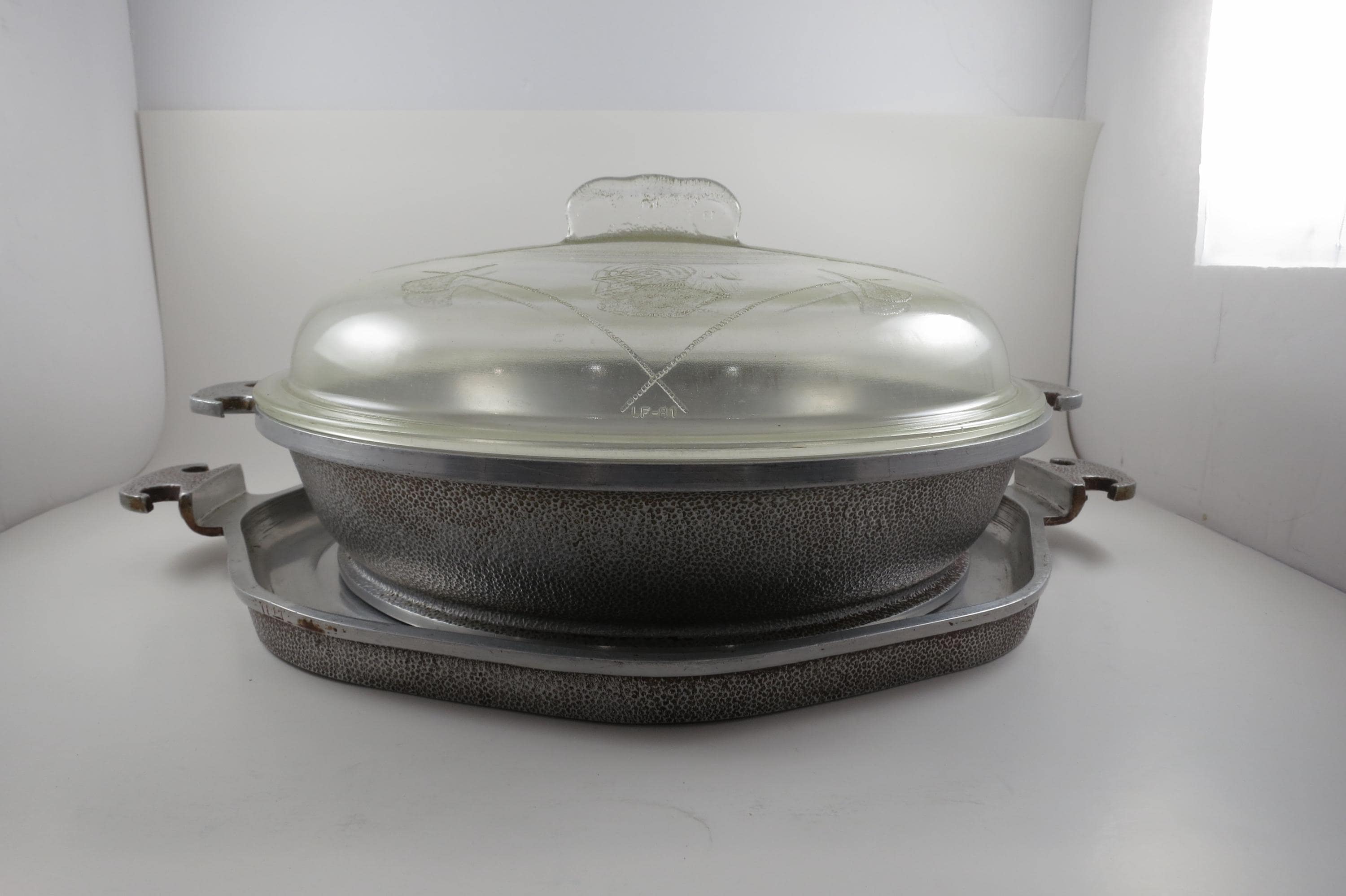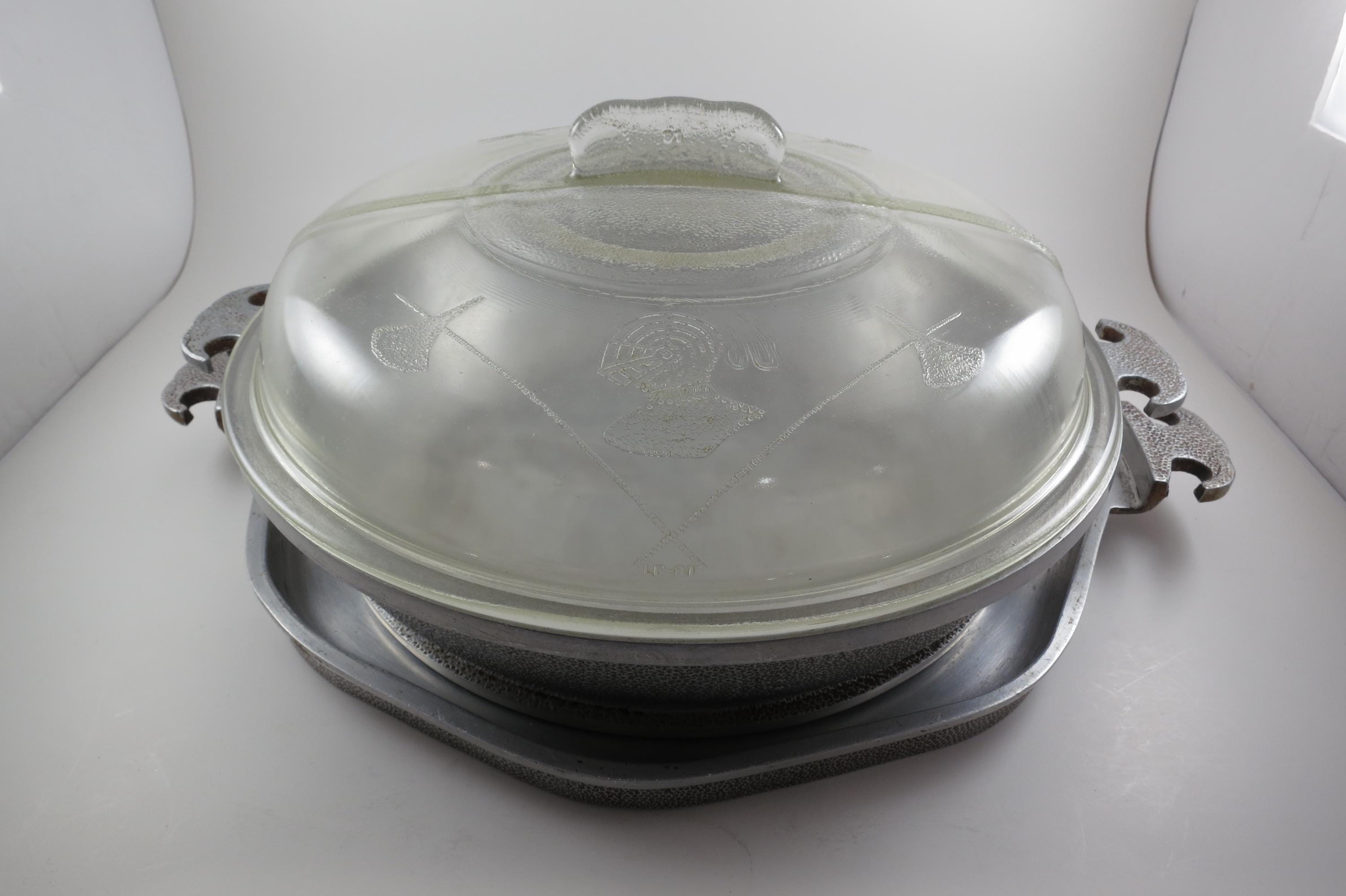Vintage MCM Guardian Service Cookware Hammered Aluminum 3 Piece Set Tray Roaster Glass Lid