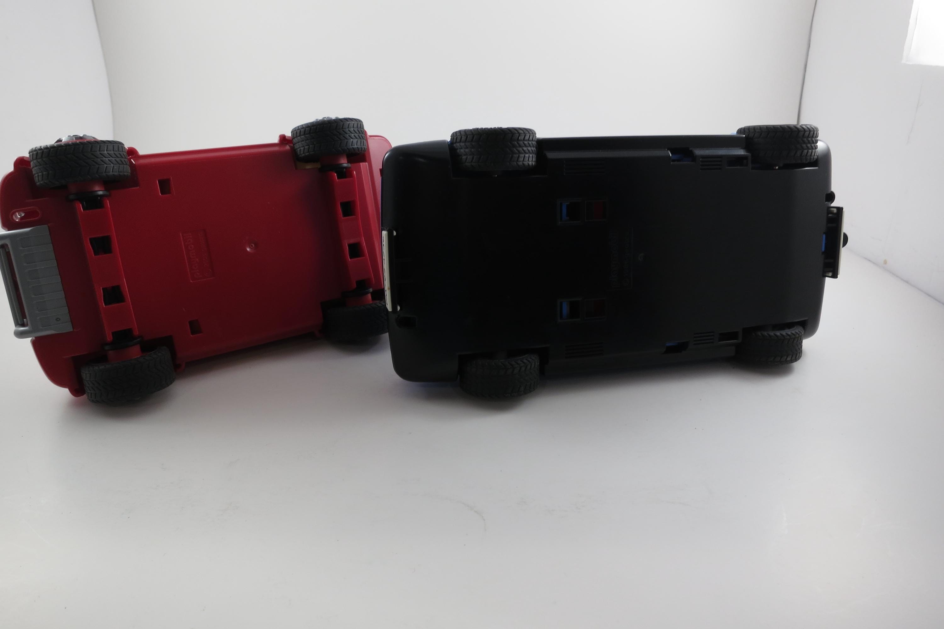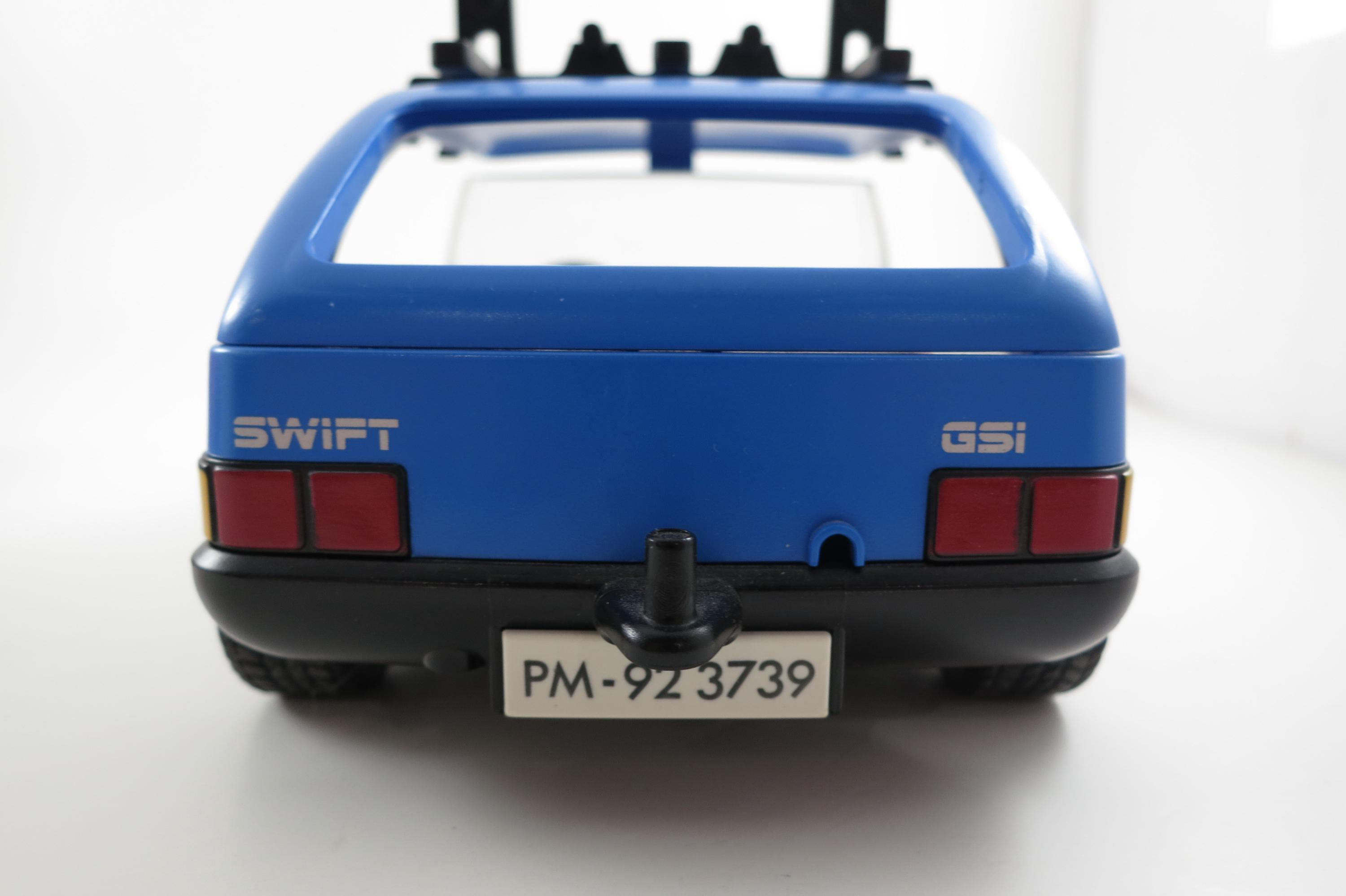The blue one is from 1986 and is a Suzuki Swift GSI. Has an opening hood and an operable roof rack. The red one is newer and is a Wild Yukon Adventure Jeep. Both are in excellent condition with no damages.