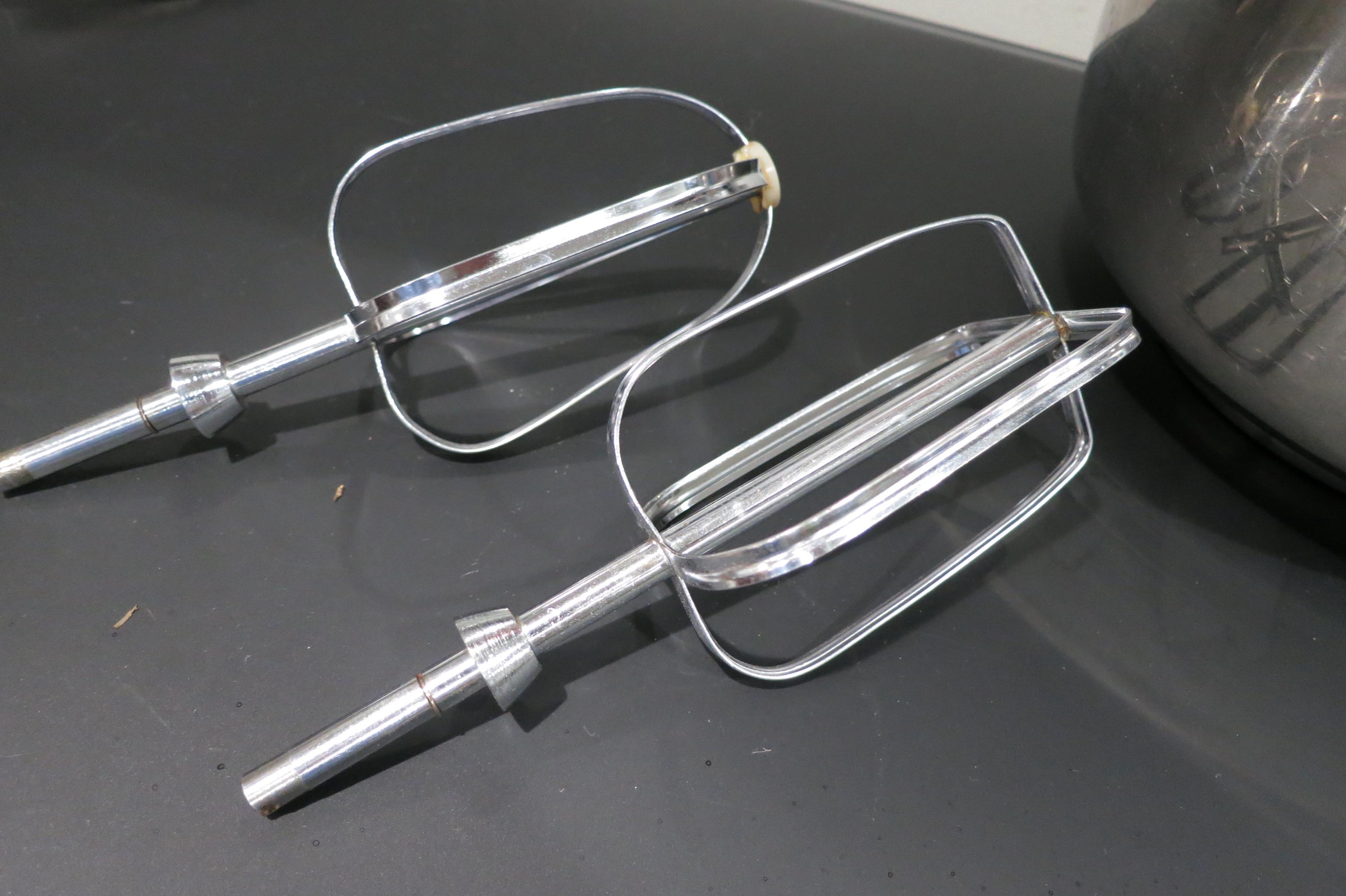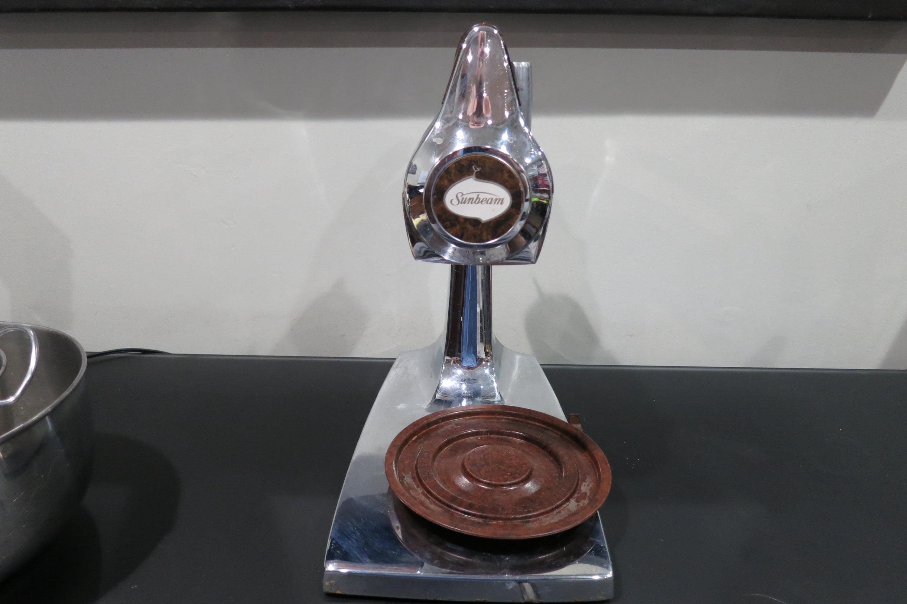 This mixer works perfect, powers through all 12 speeds with no issues. Original chrome is in great shape showing only minor use wear. Includes two original Sunbeam silver bowls and two sets of beaters. Ready to keep using, or clean it up a little as a display piece.