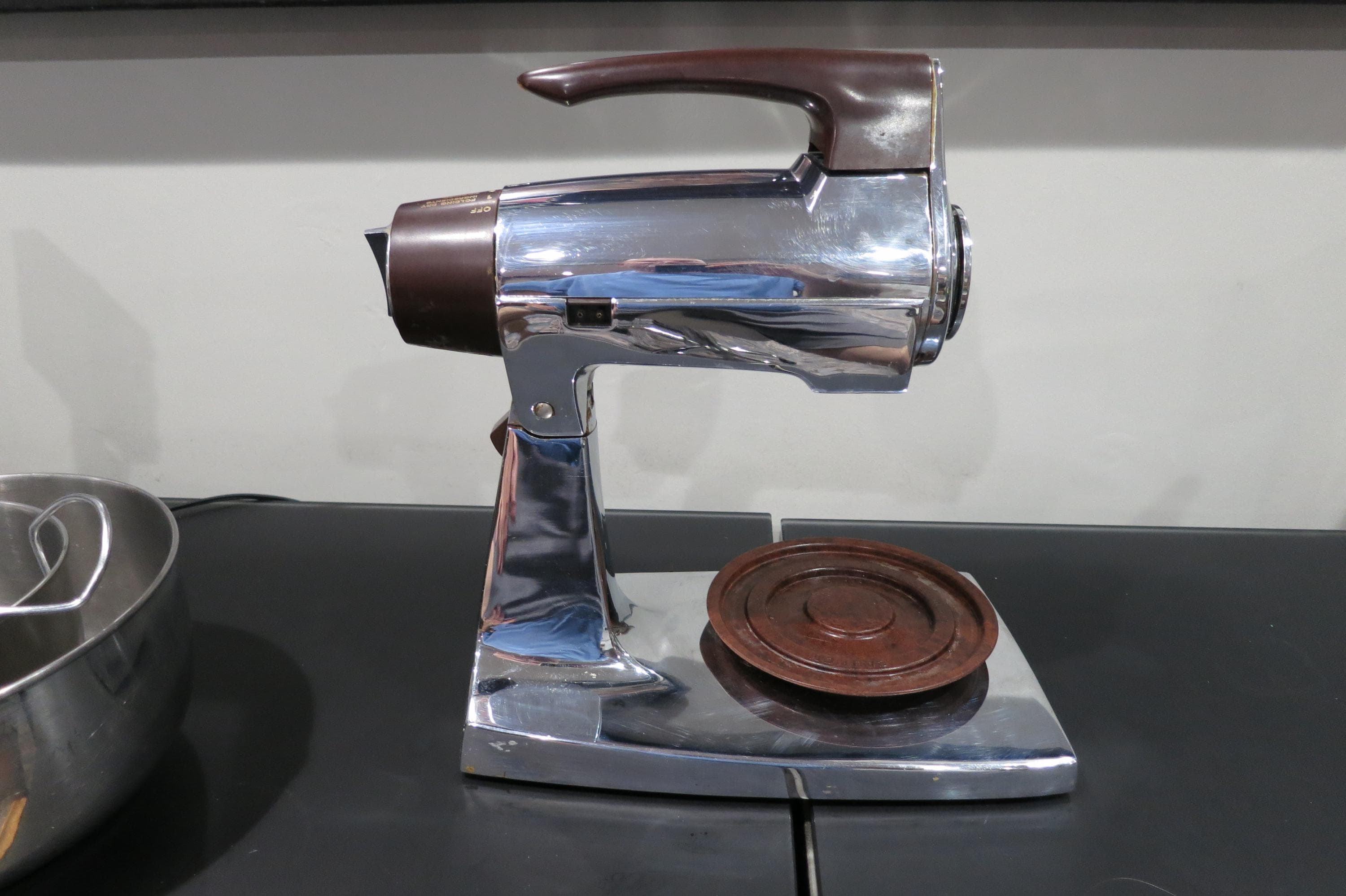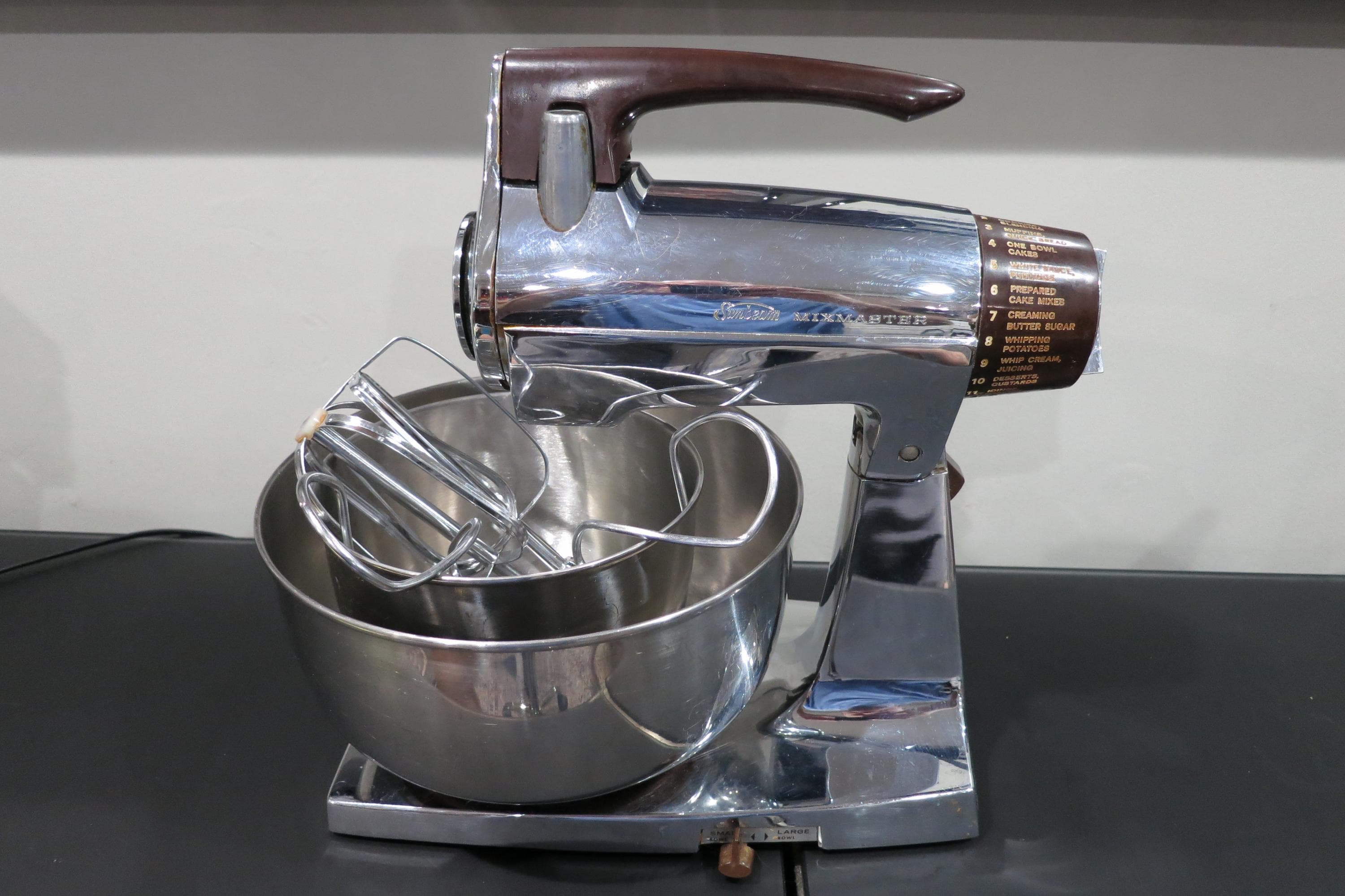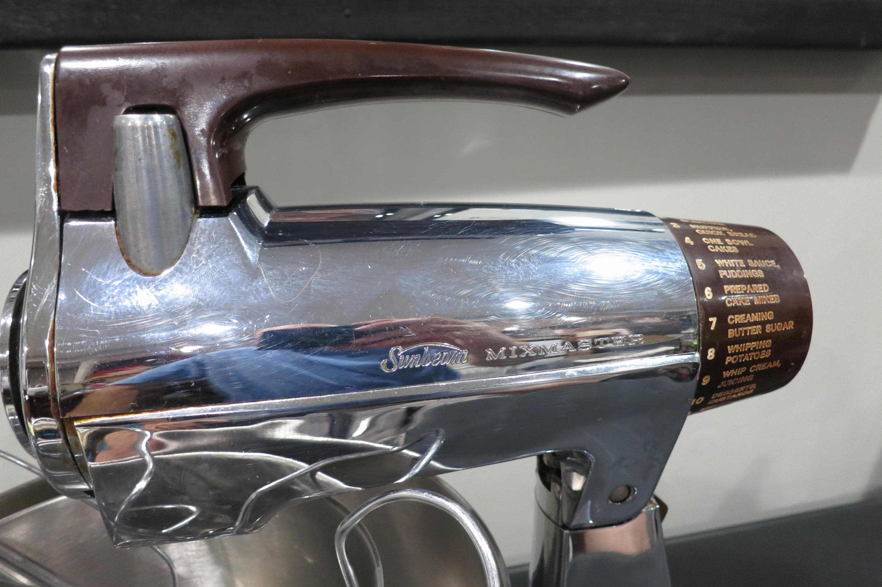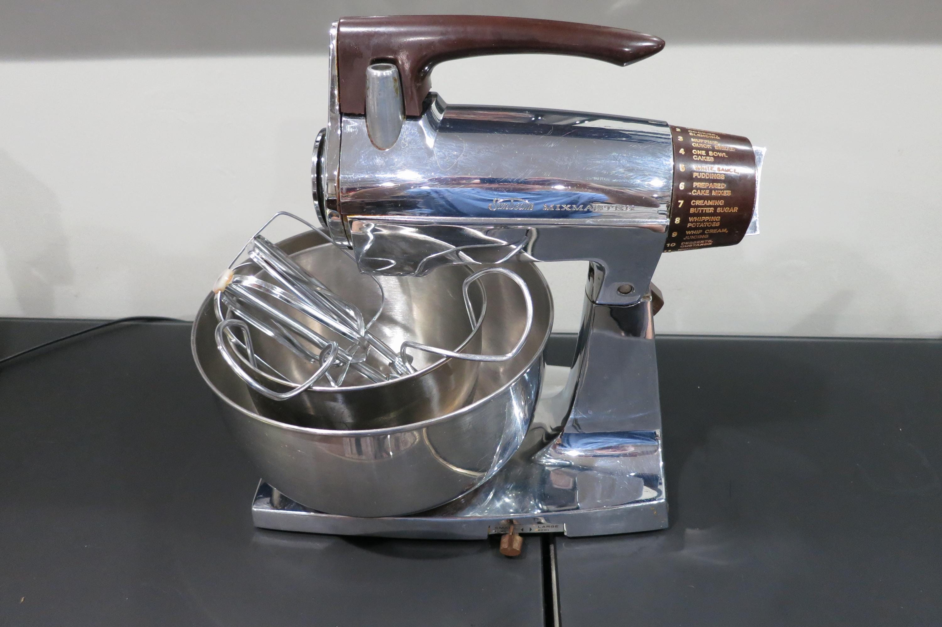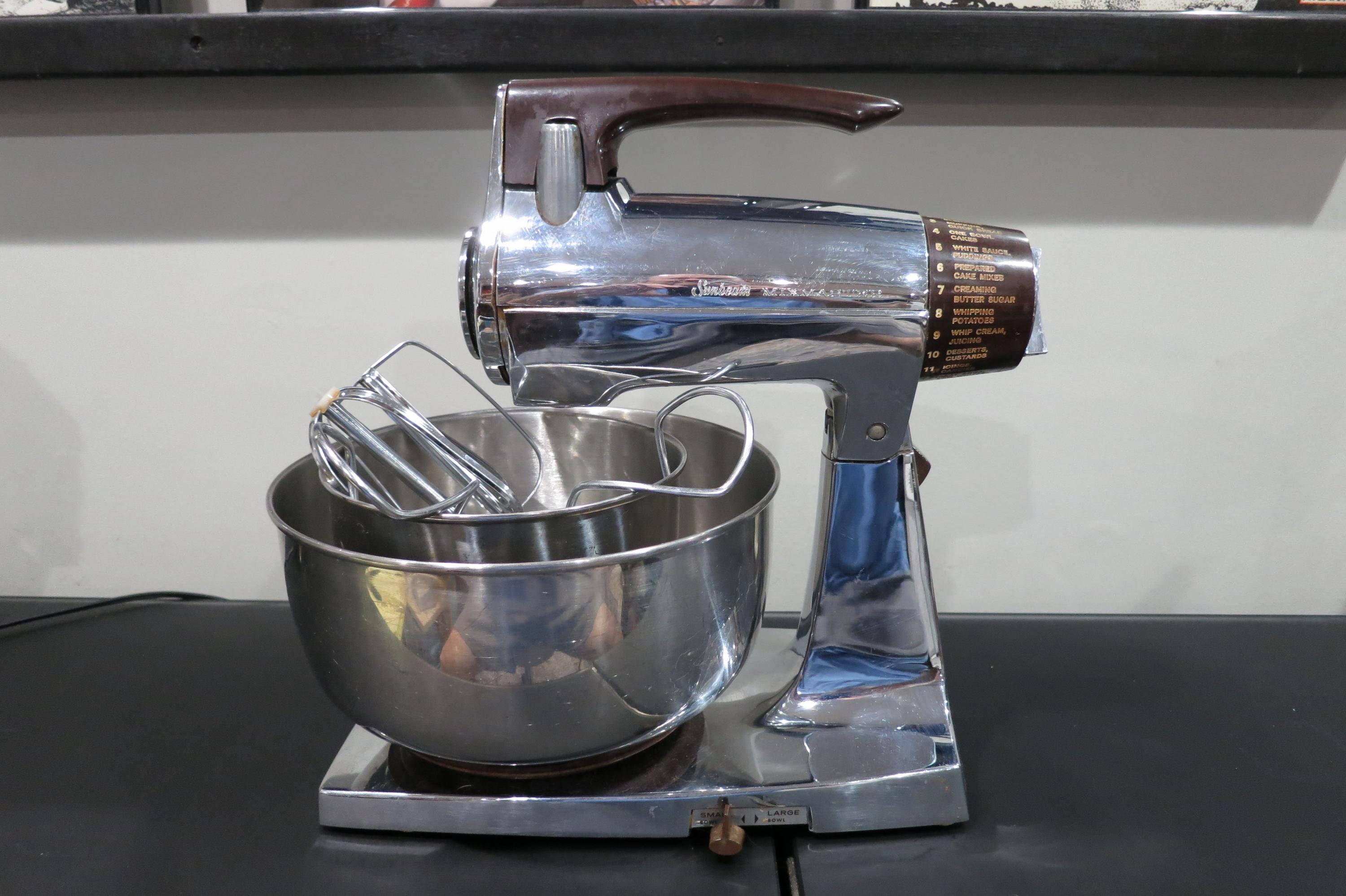 Vintage 1960's Sunbeam Mixmaster Mixer In Chrome 12 Speed with Bowls and Beaters MCM.