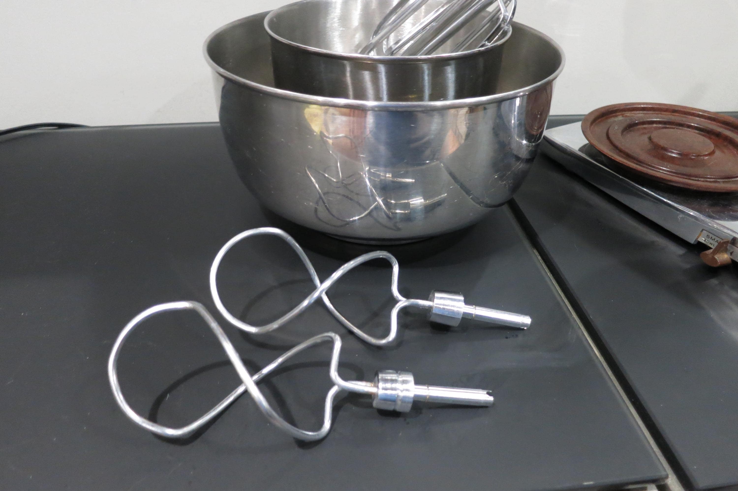 Vintage 1960's Sunbeam Mixmaster Mixer In Chrome 12 Speed with Bowls and Beaters MCM
