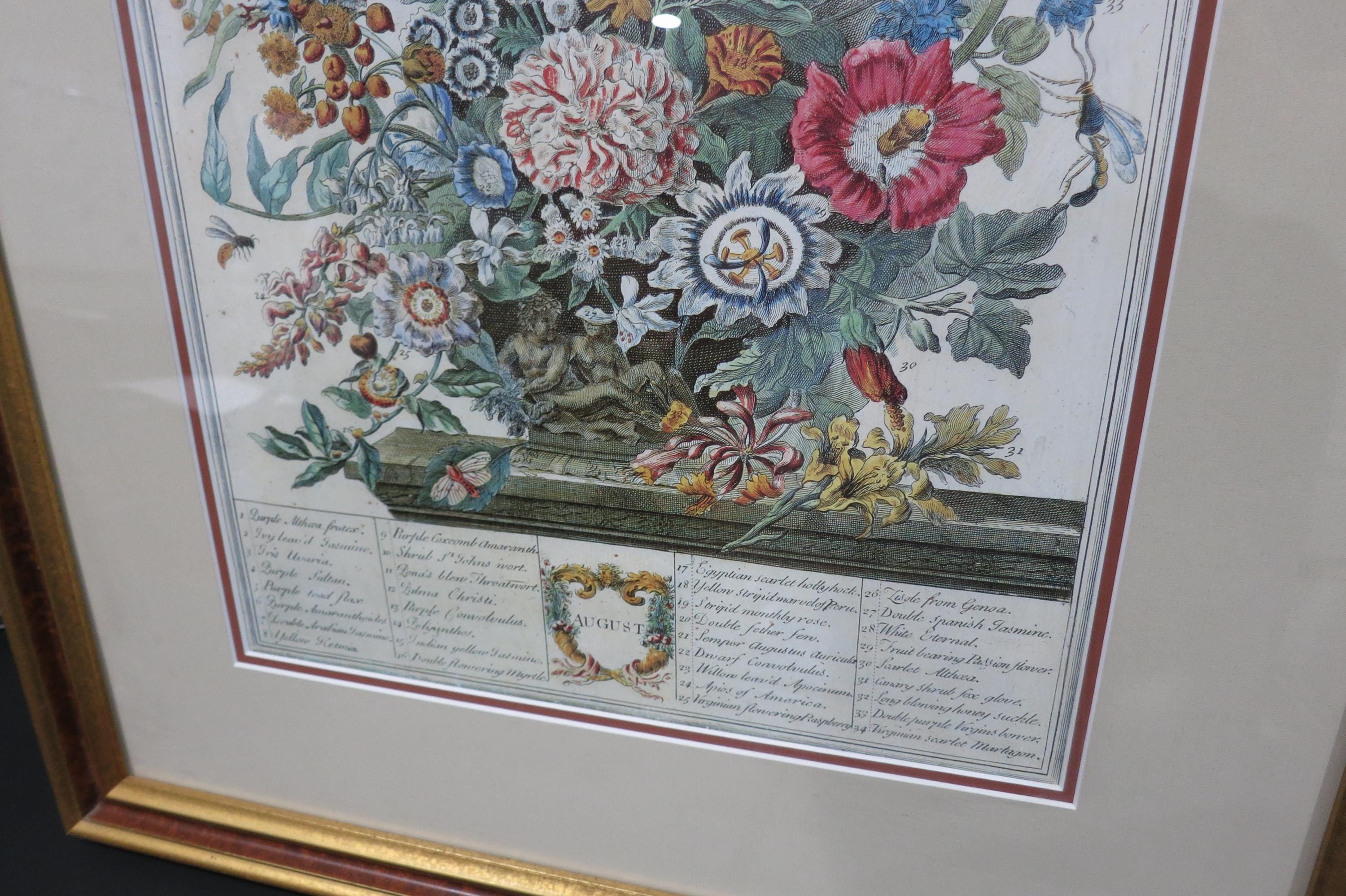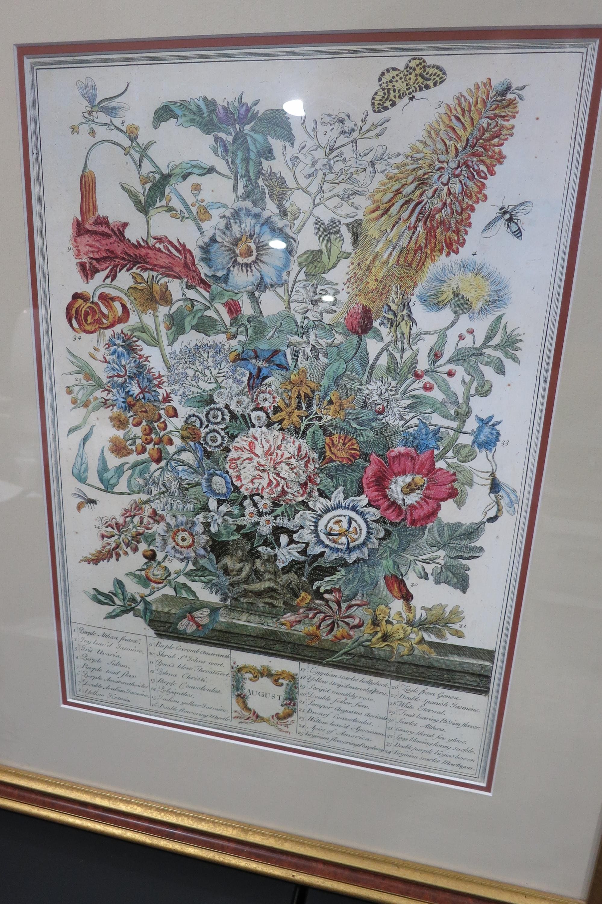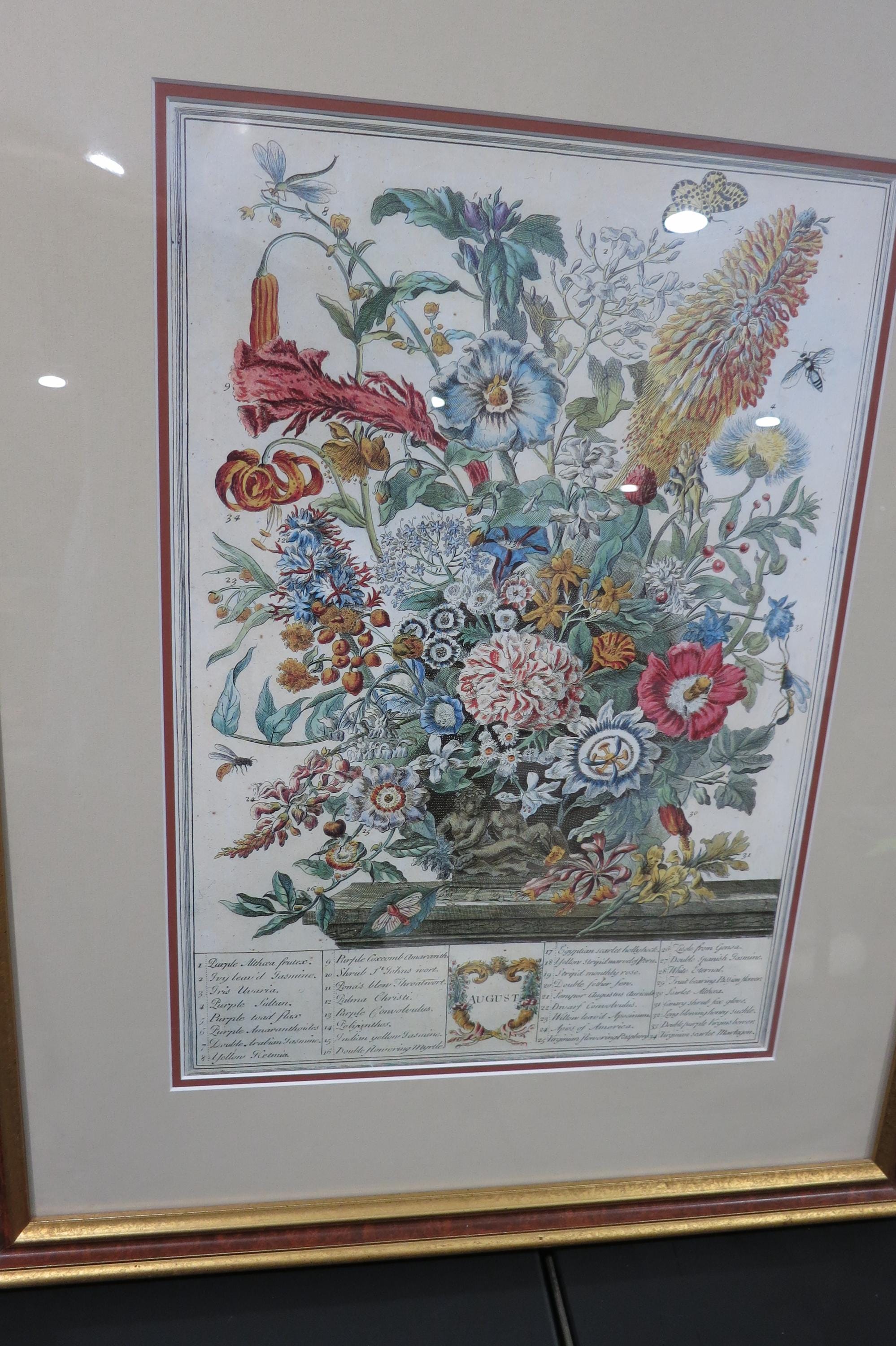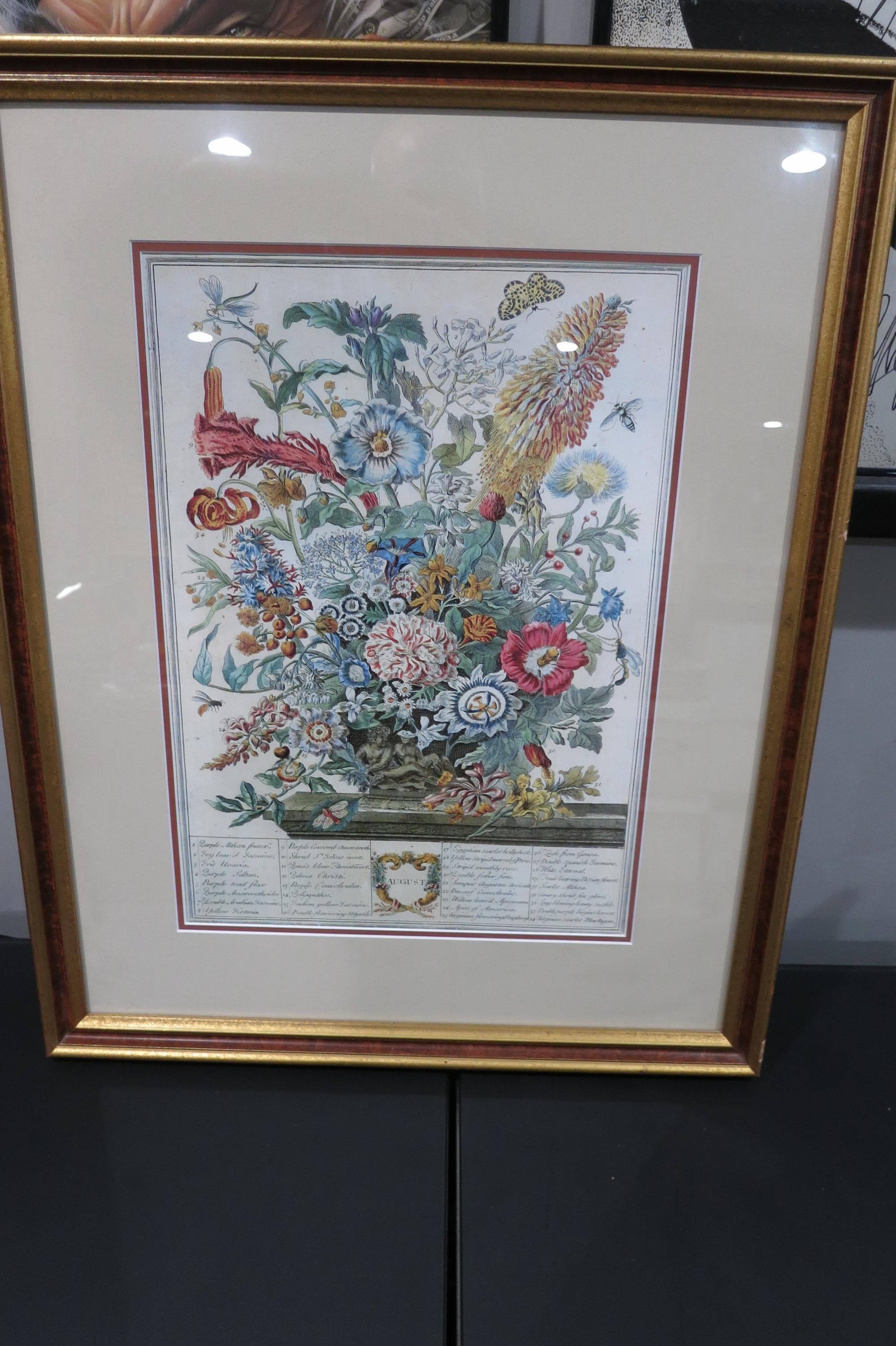Vintage Robert Furber 12 Months of Flowers Framed August Print Gold Frame Red 23x19. Beautiful piece, has a beige mat with a gold & red wood frame. Measures 19 inches wide and 23 1/2 inches tall. The large one! Professionally framed by Zelman's Frame Gallery. Perfect addition to any home!