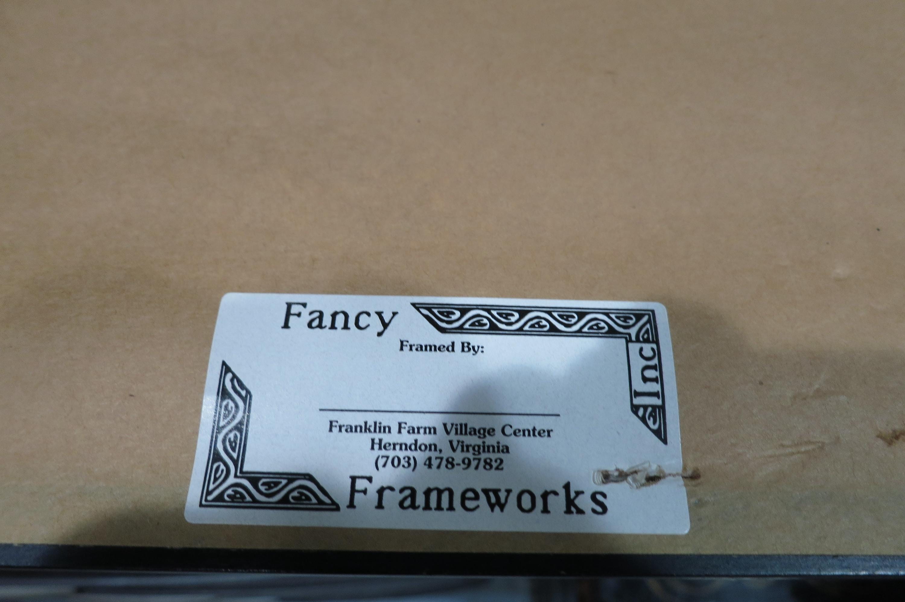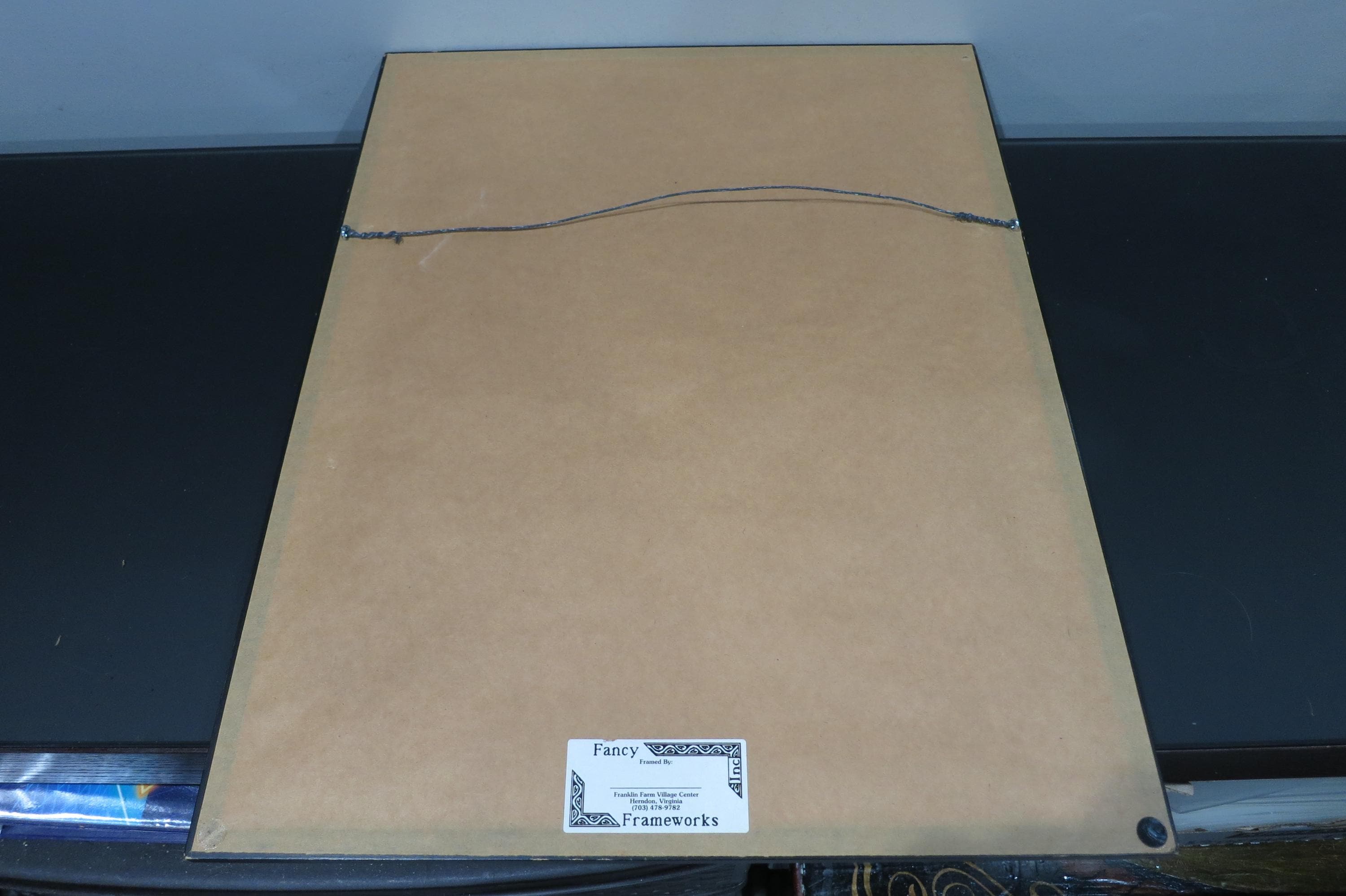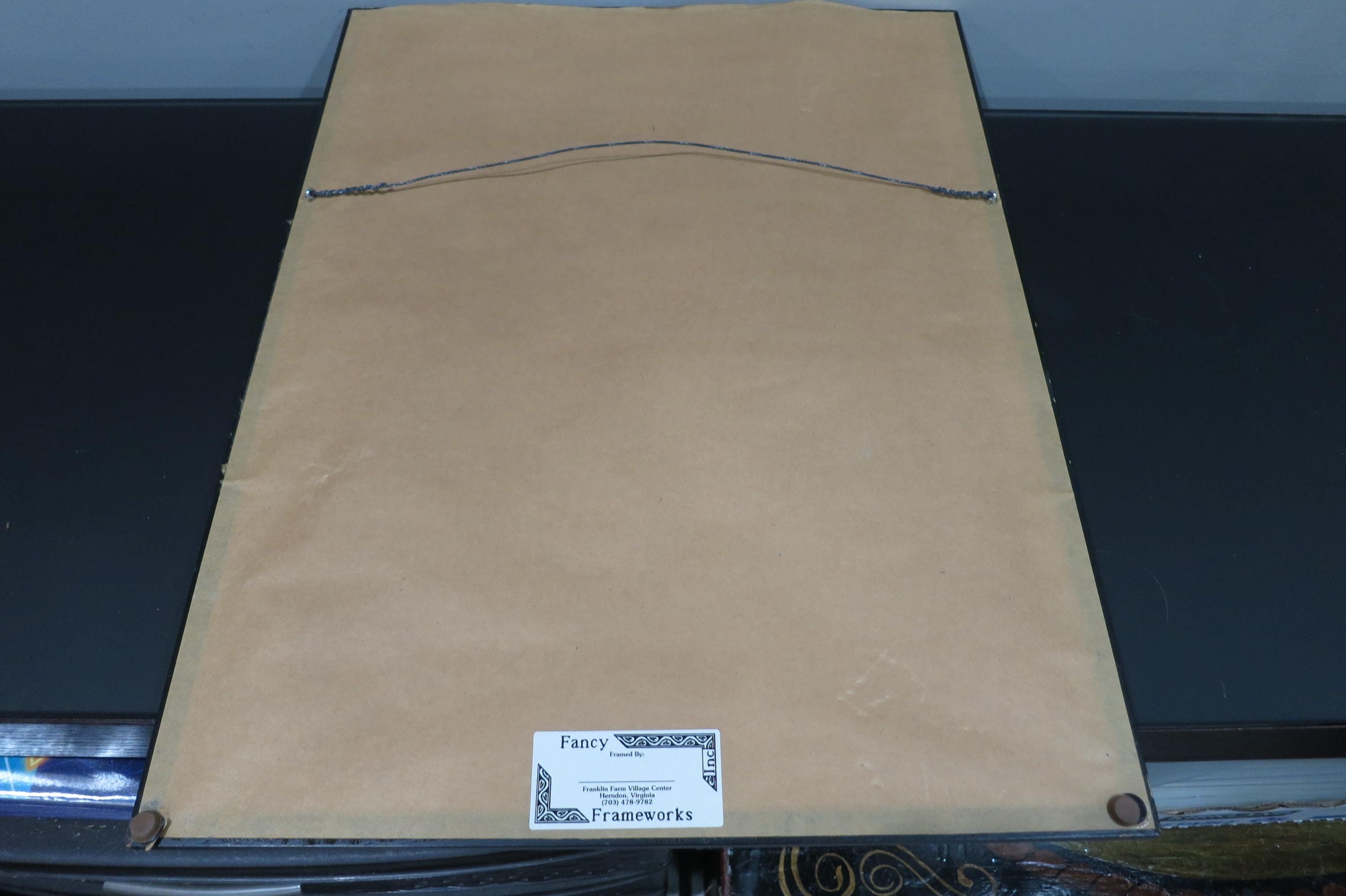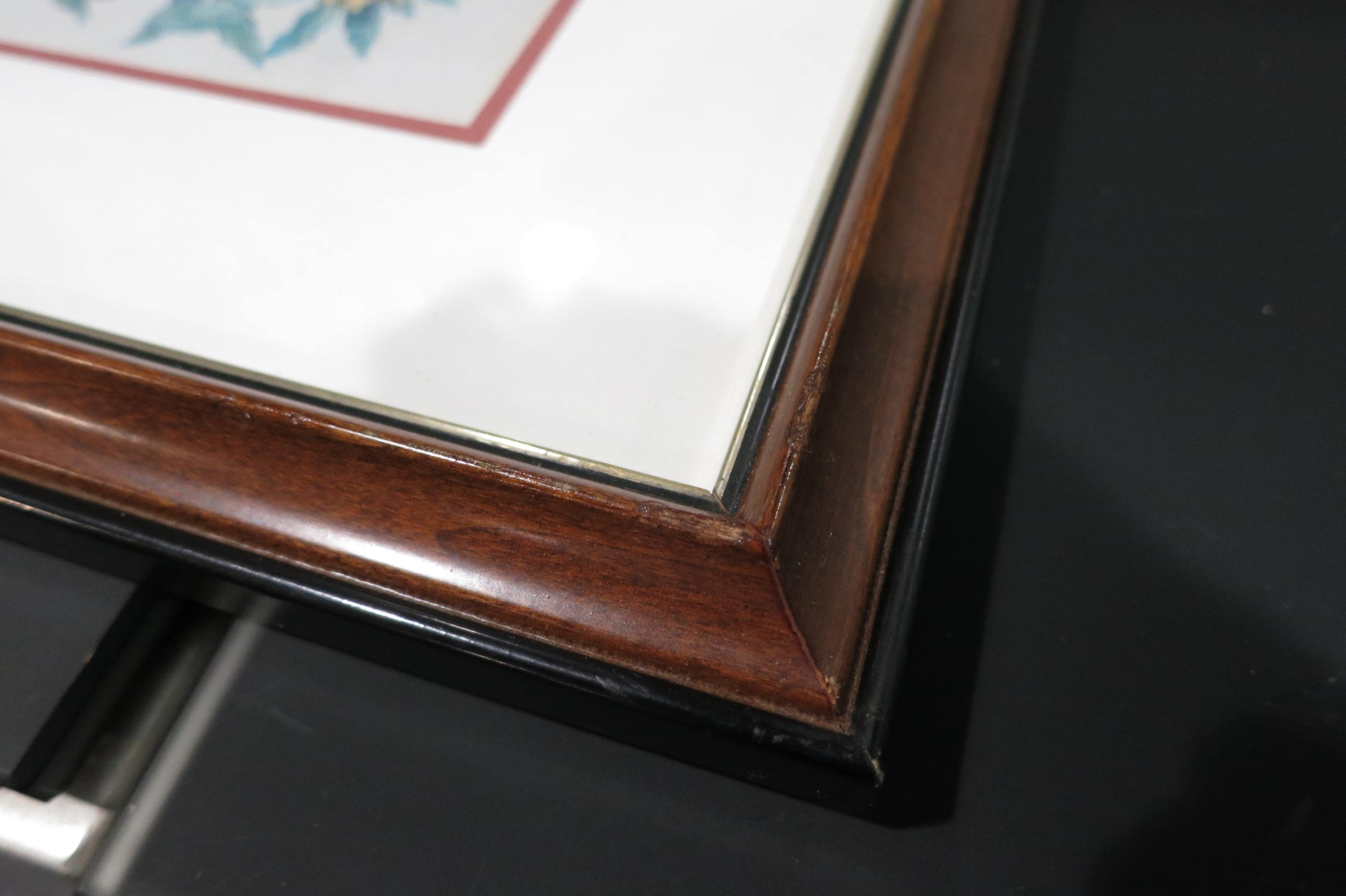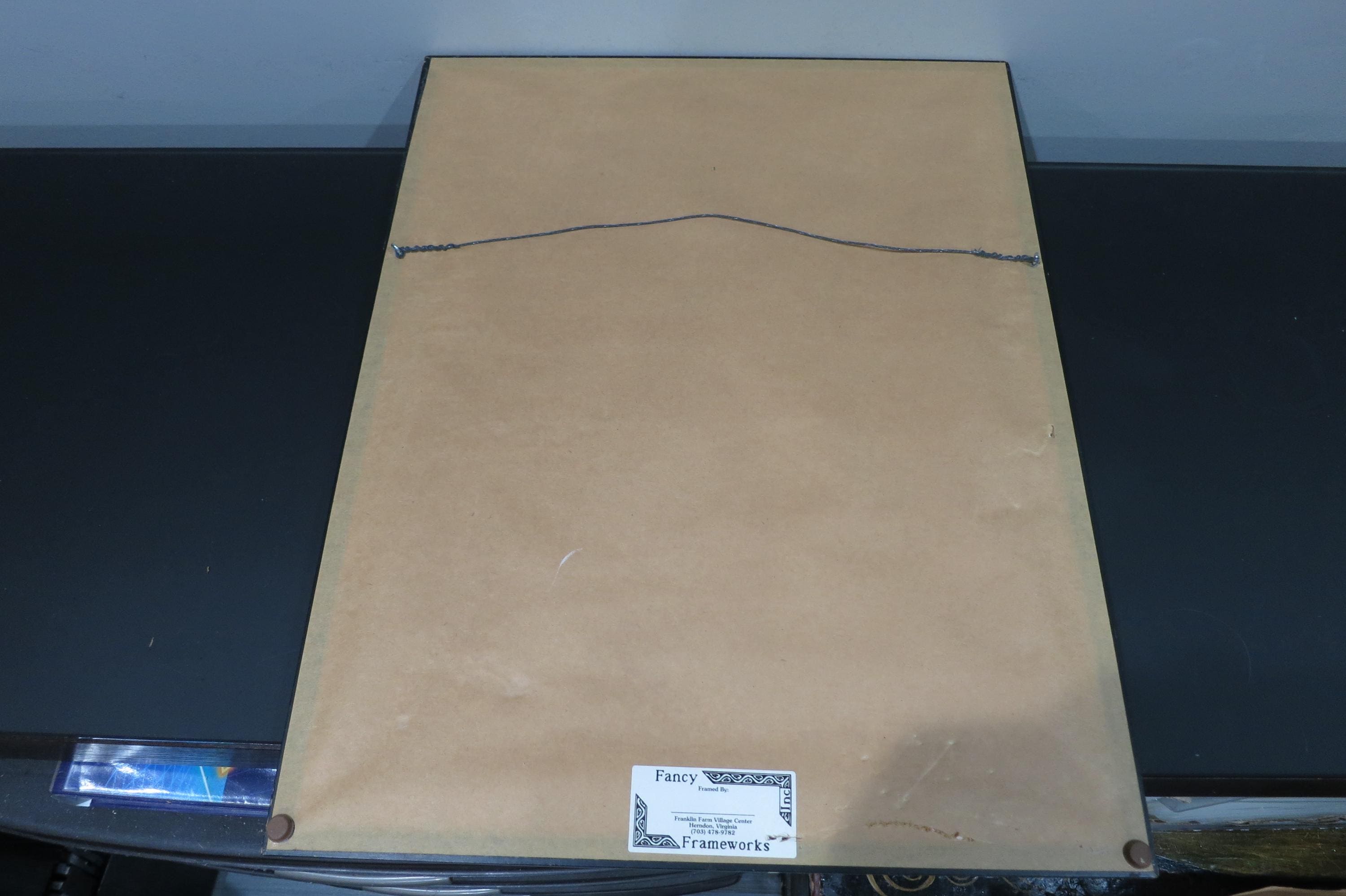 These are all professionally framed by Franklin Farm Village Center. The frames are Walnut/Early American with black edges. Double white and rose mats. They all match and each measures 20 1/2 inches tall and 16 inches wide. A few touched up spots on the wooden frames, all are in excellent condition. Available are May, October and December.