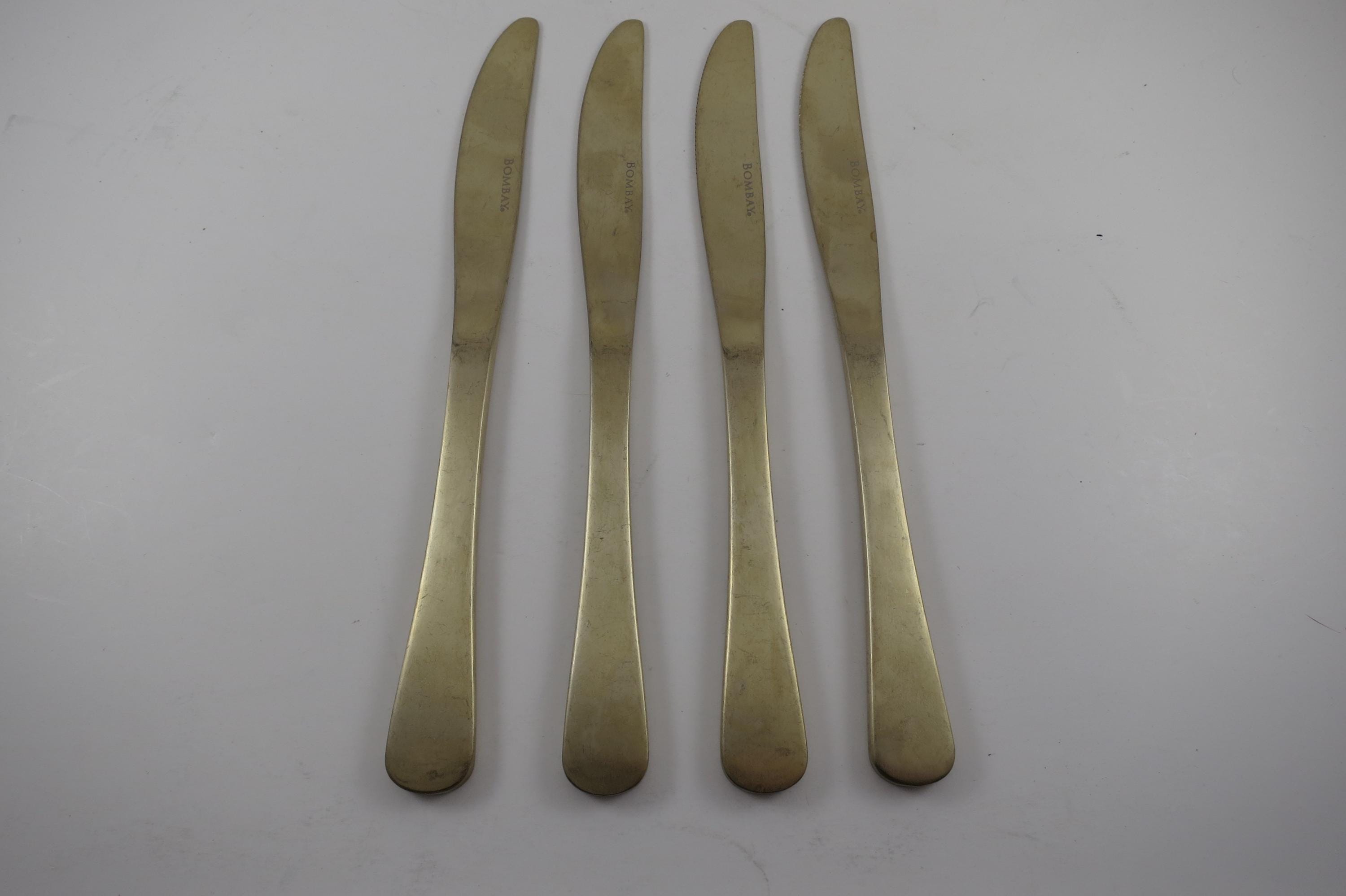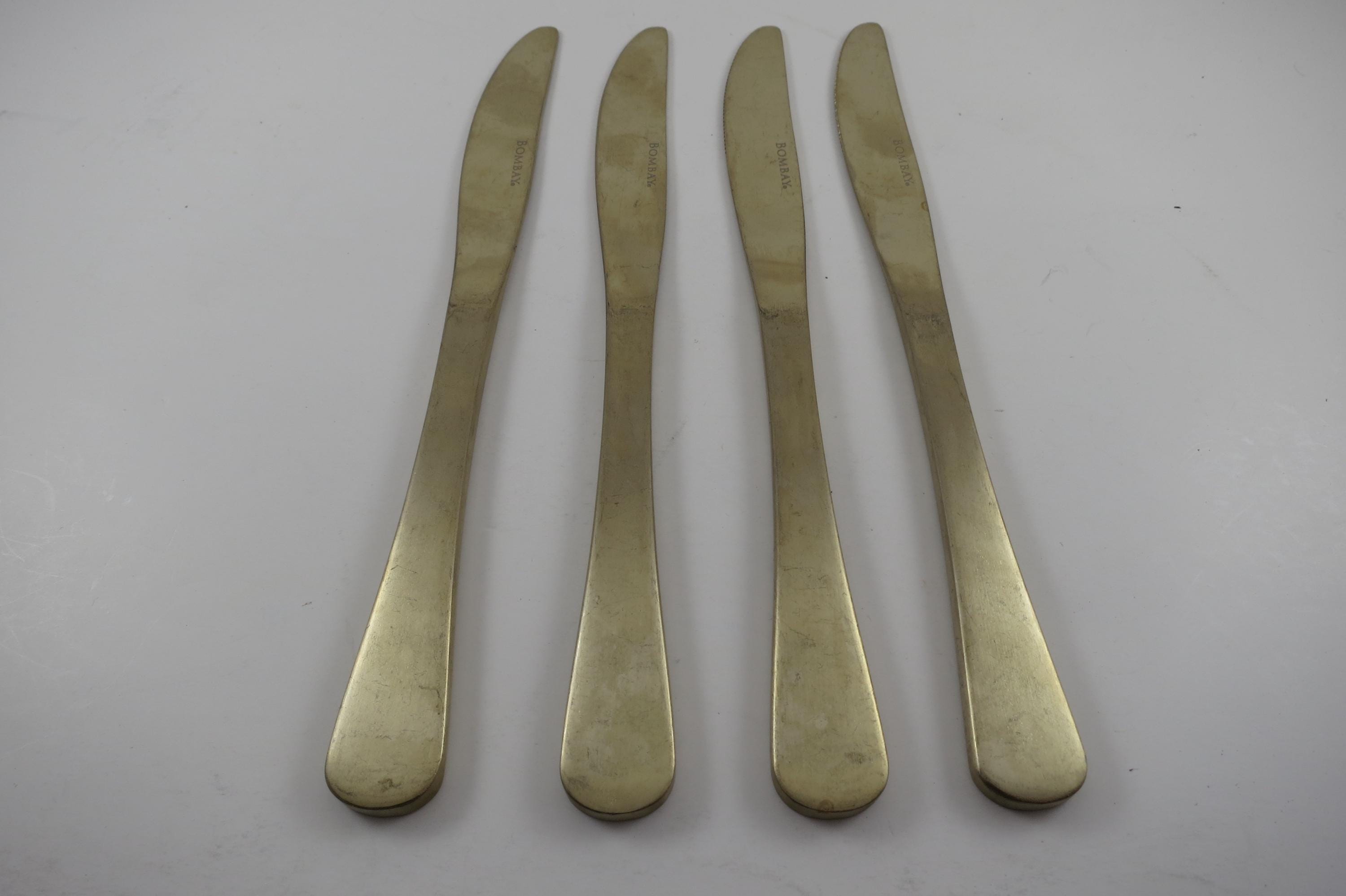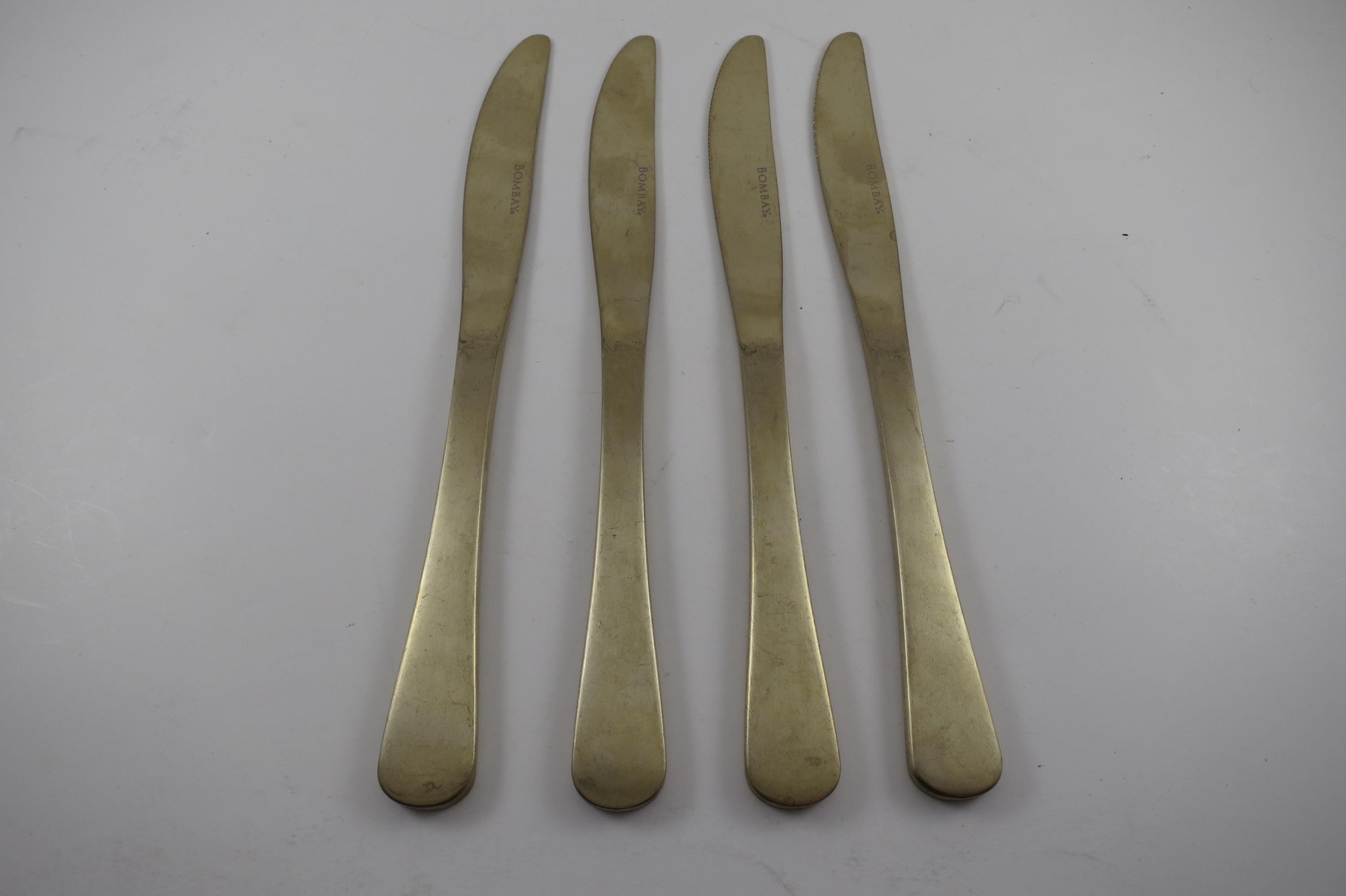 Set of 4 Gold Bombay Santorini Flatware 9 1/4 Inch Knives.