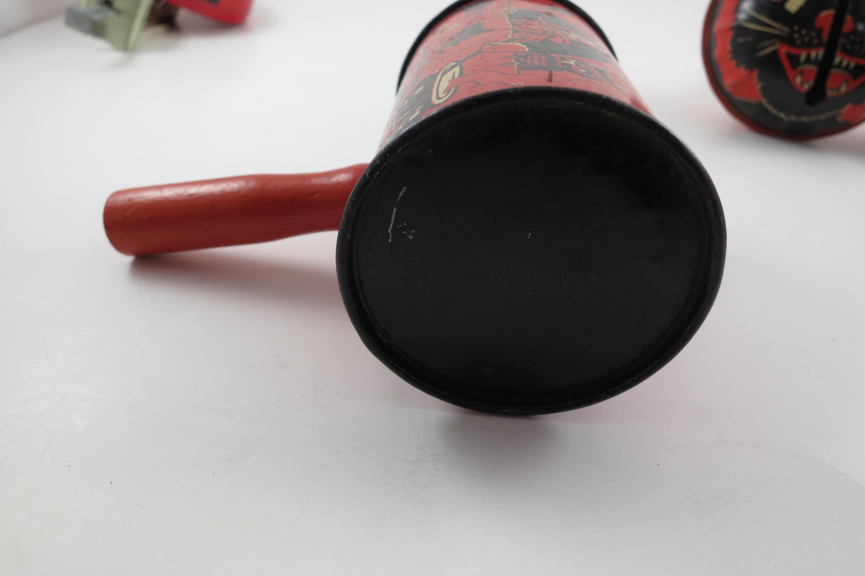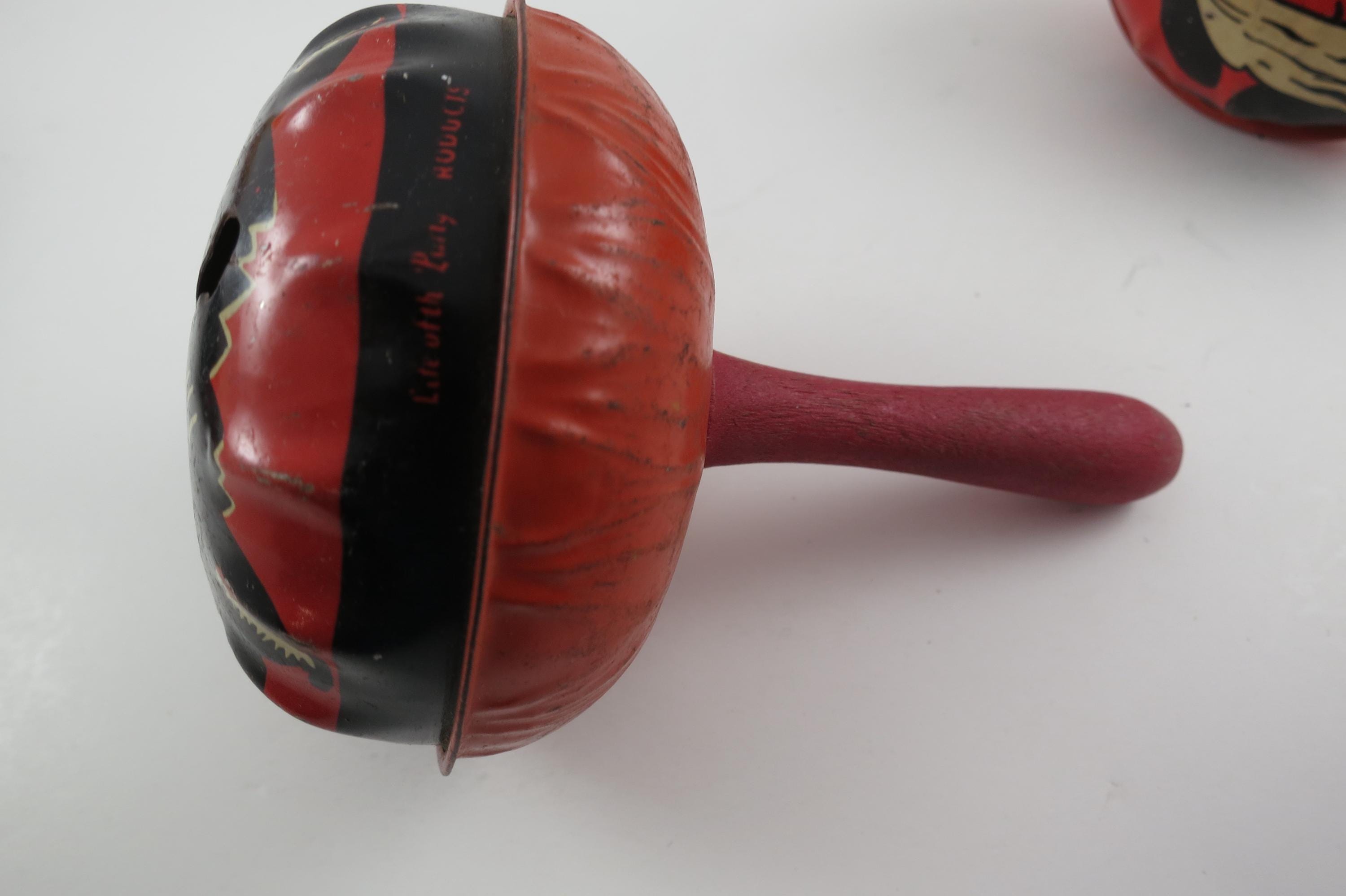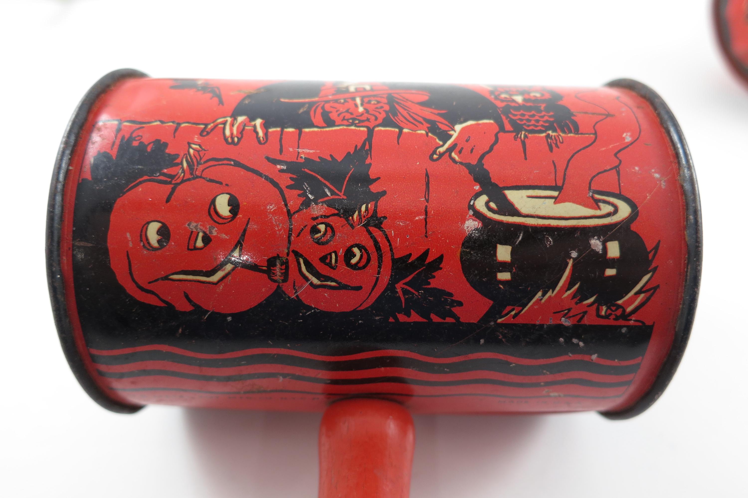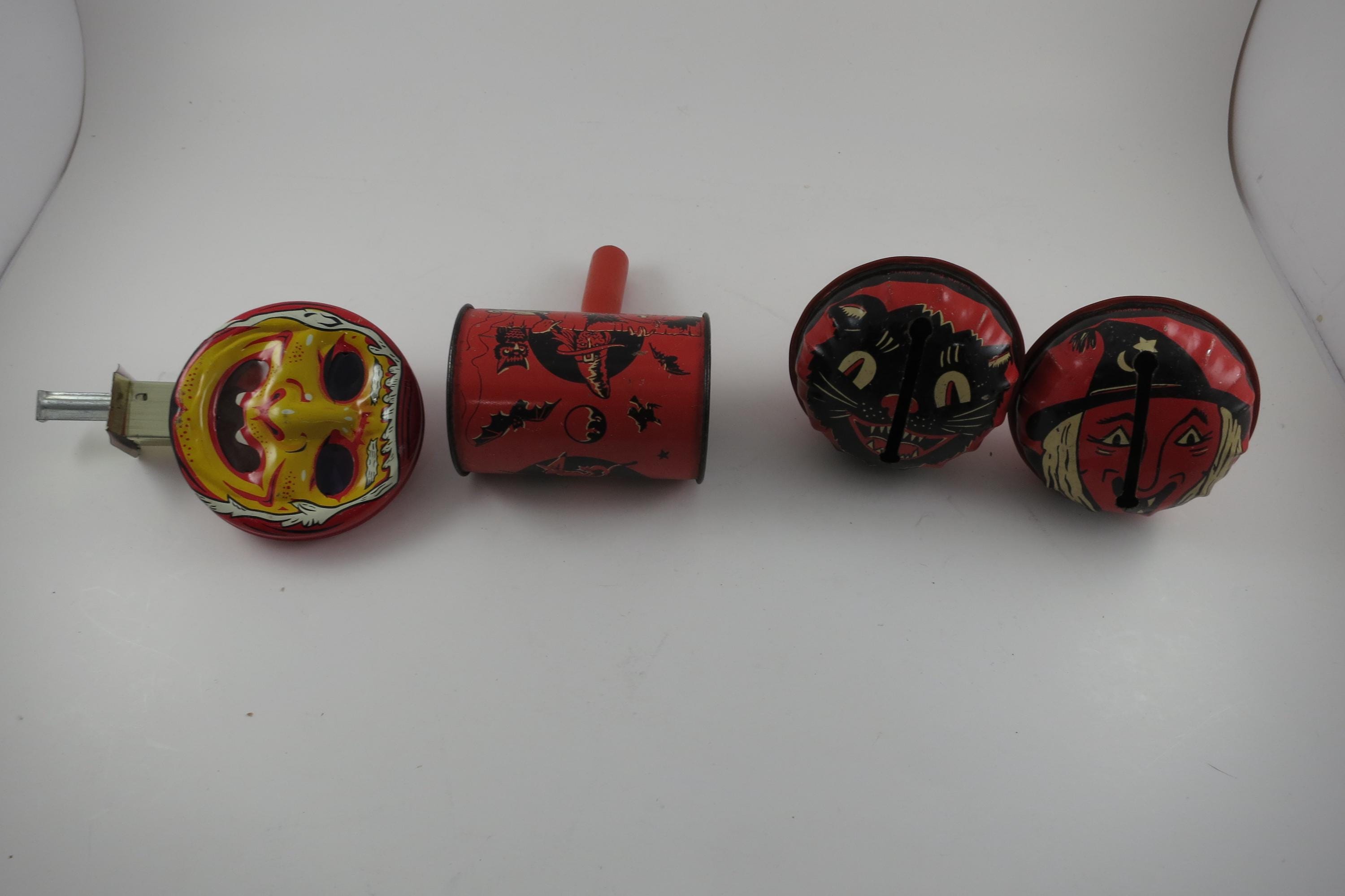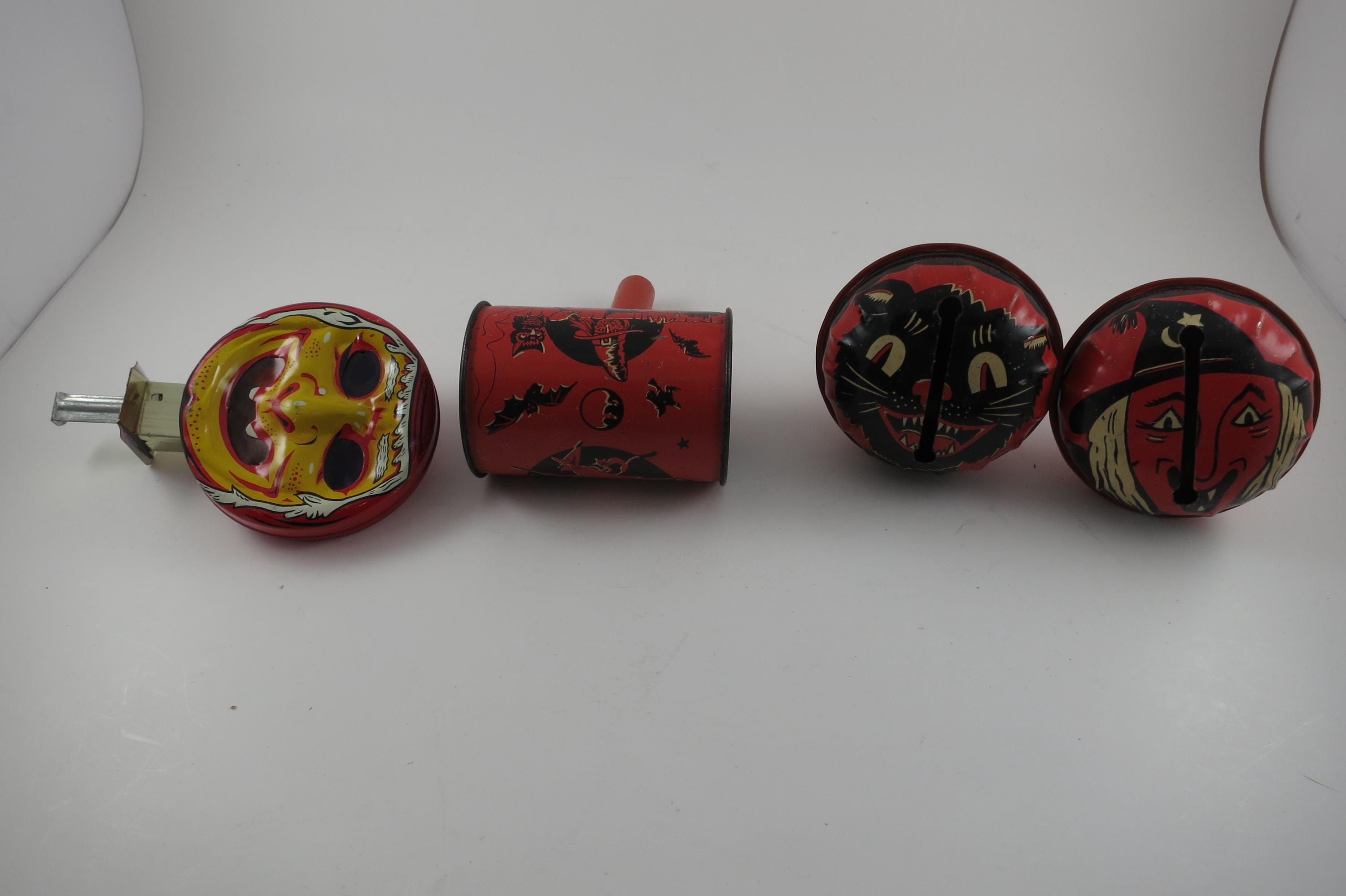 Rare Set of 4 1950's US Metal Toy Company Halloween Themed Noise Makers