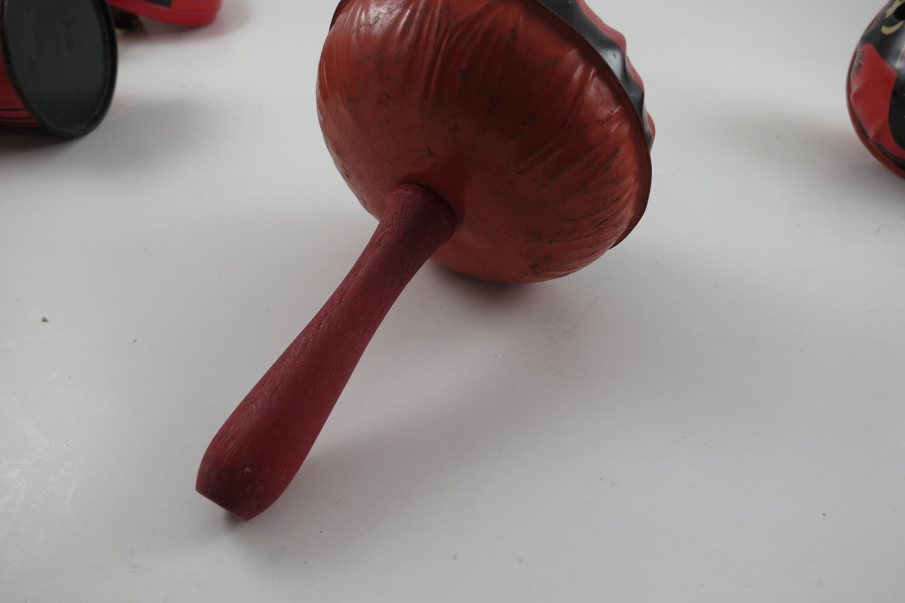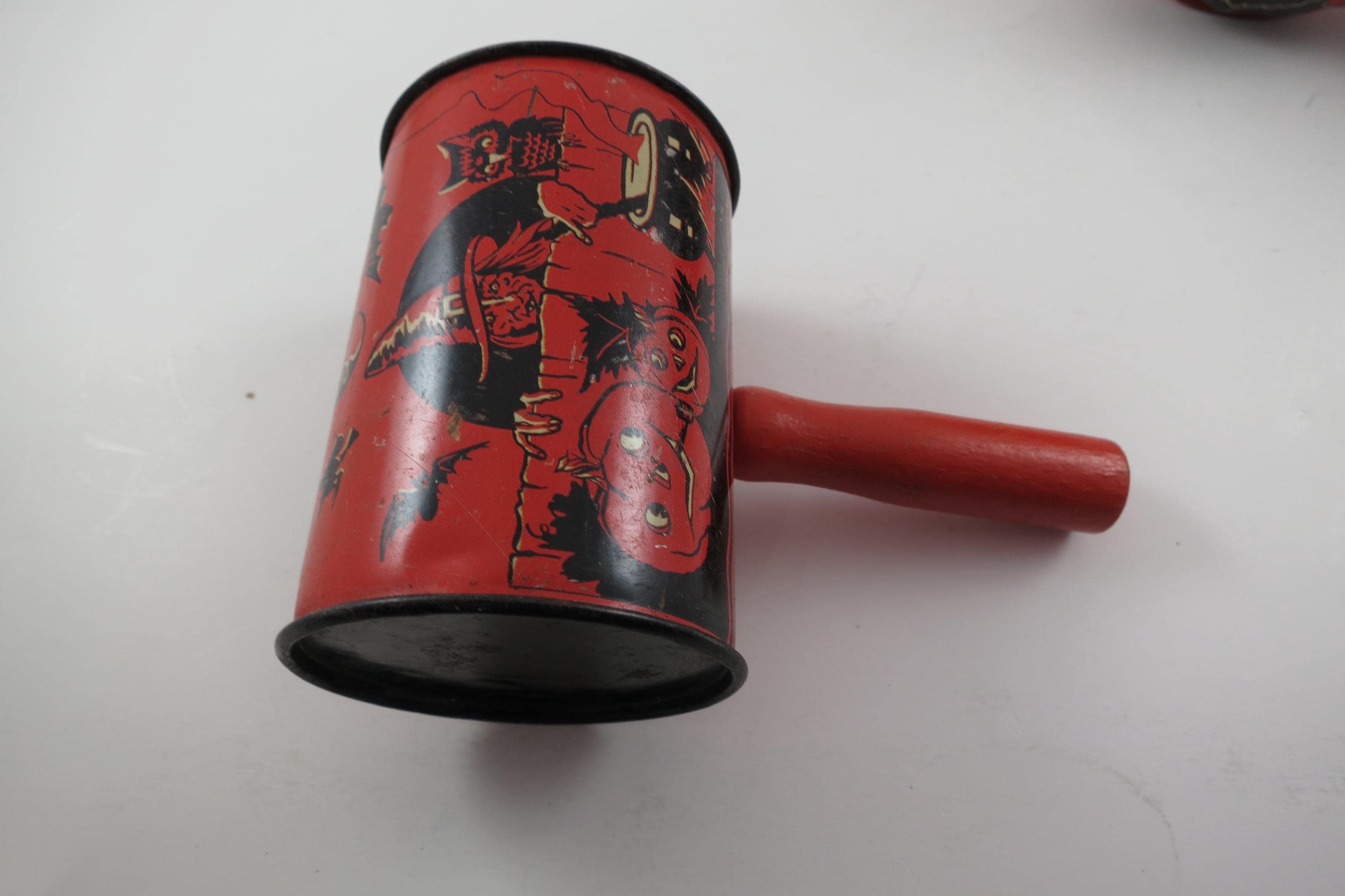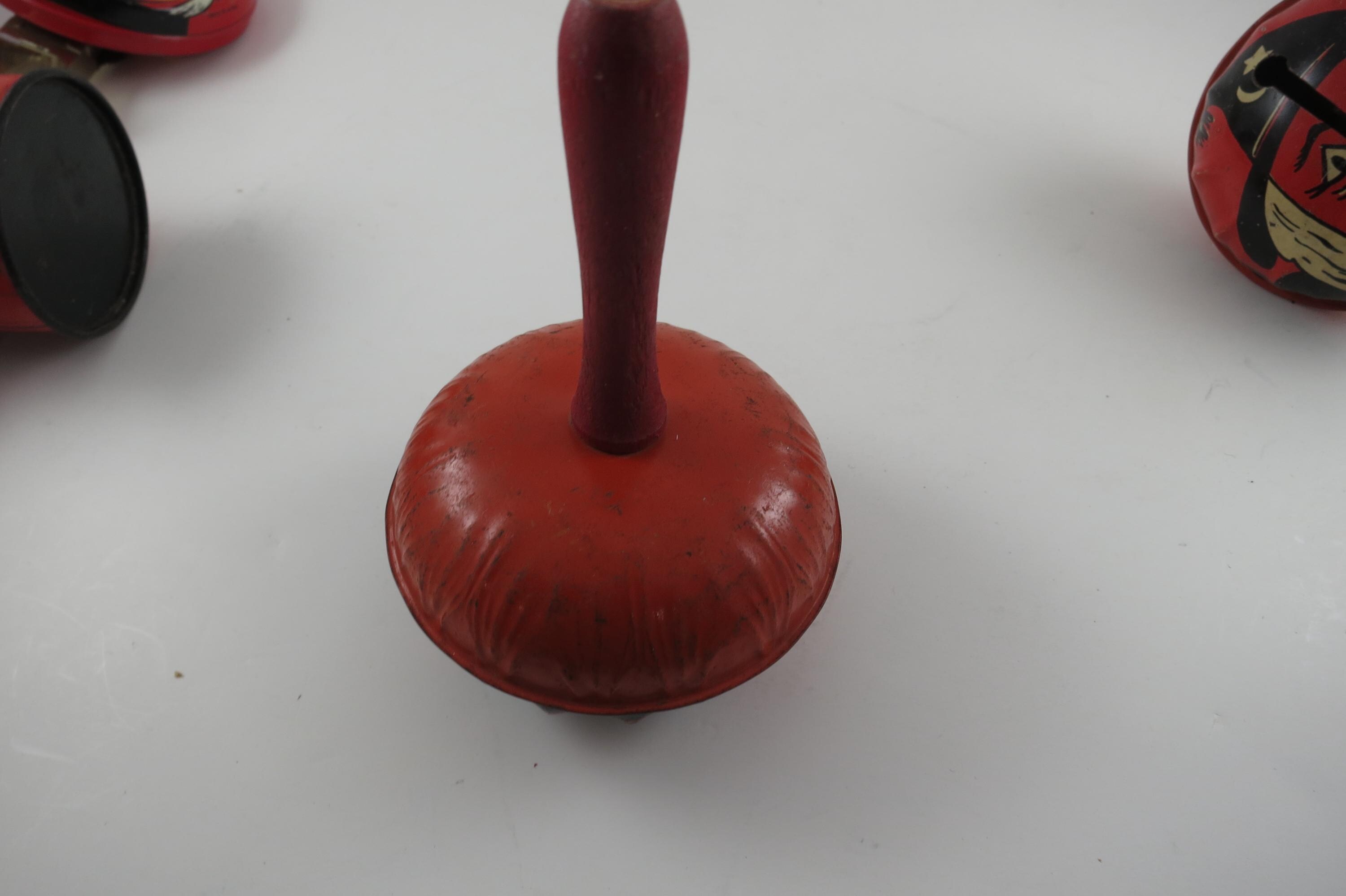 Rare Set of 4 1950's US Metal Toy Company Halloween Themed Noise Makers.