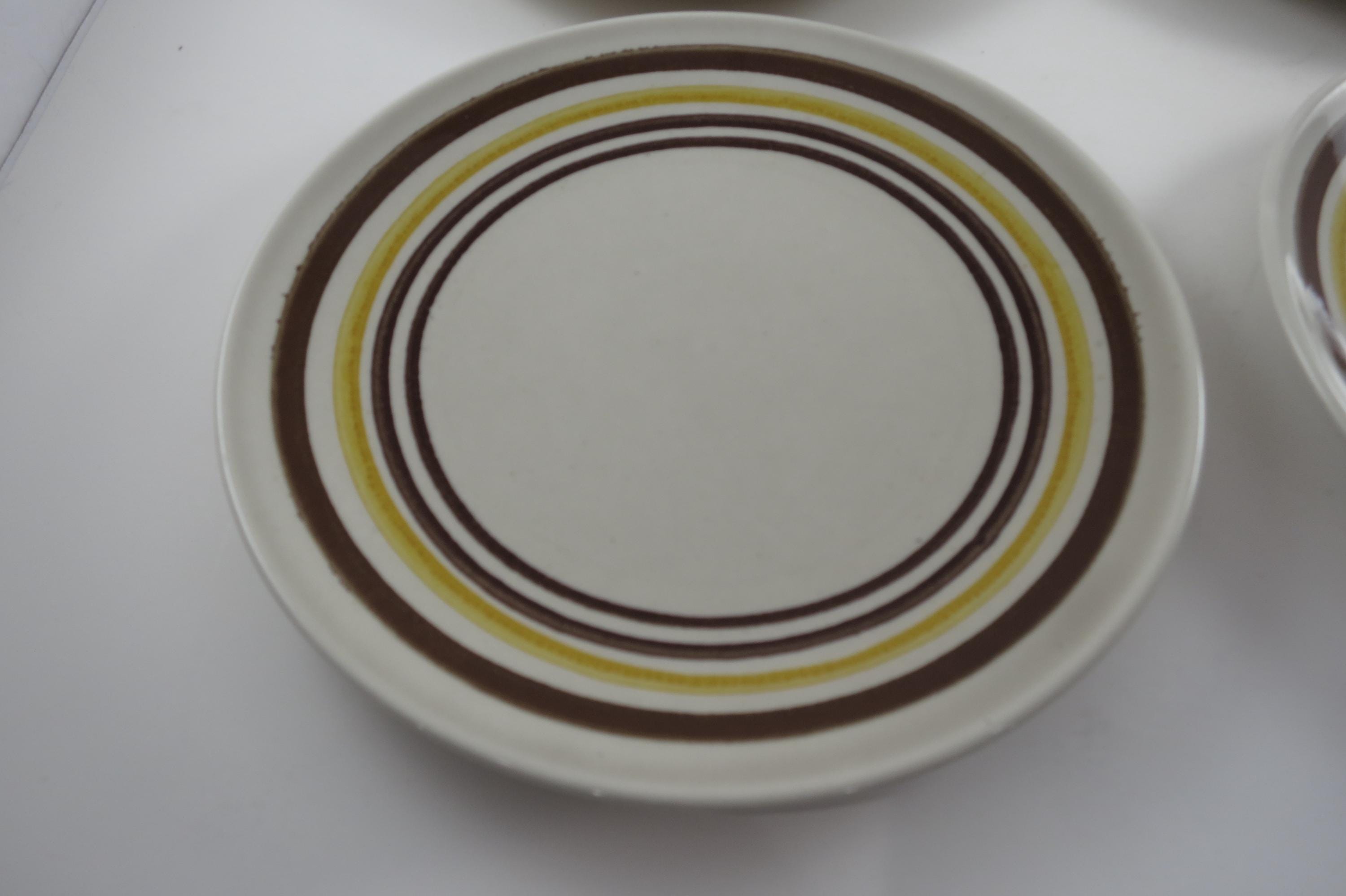 Mid Century Modern pattern with brown and yellow stripes. Good quality Ironstone by TST.
