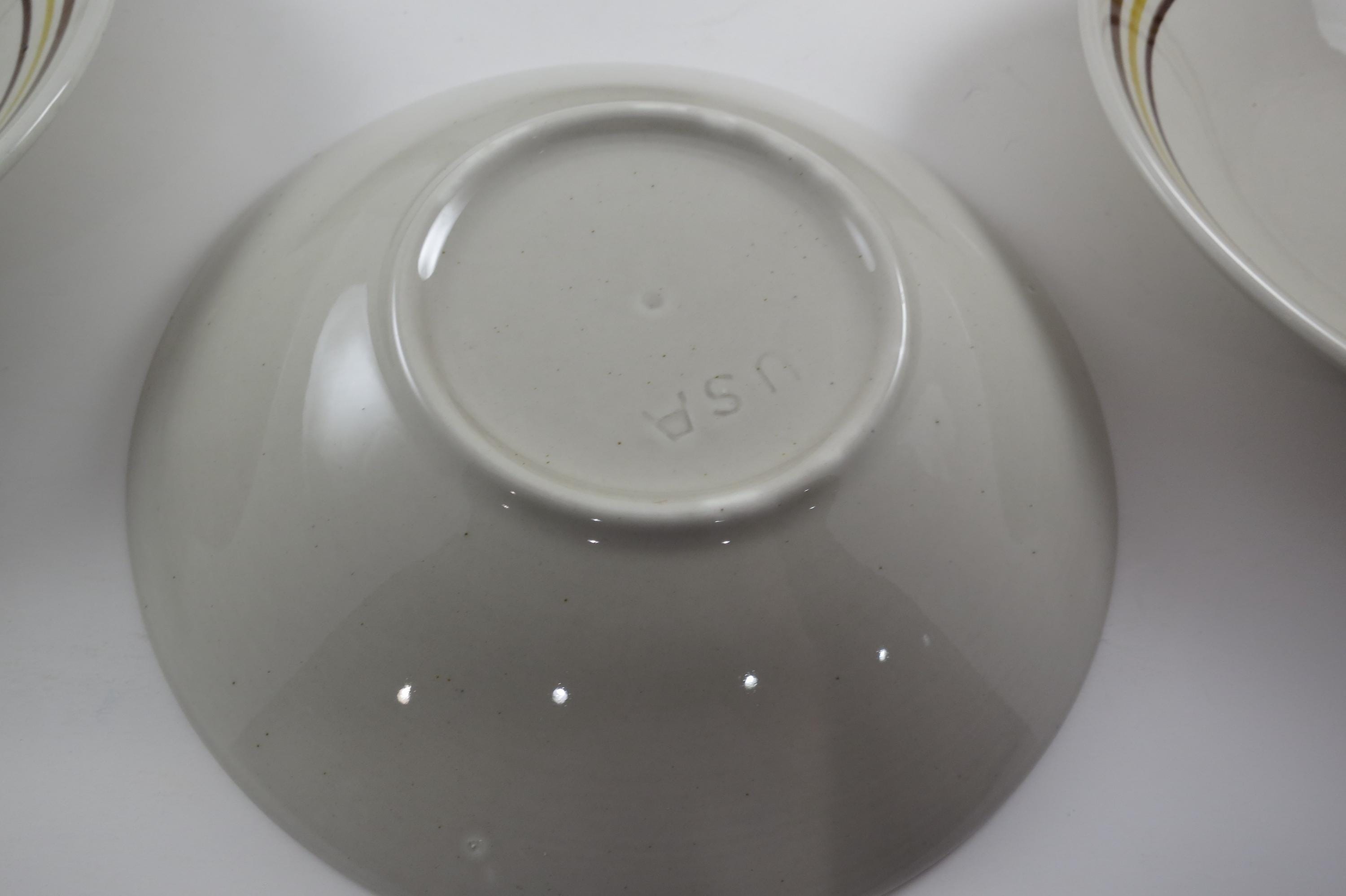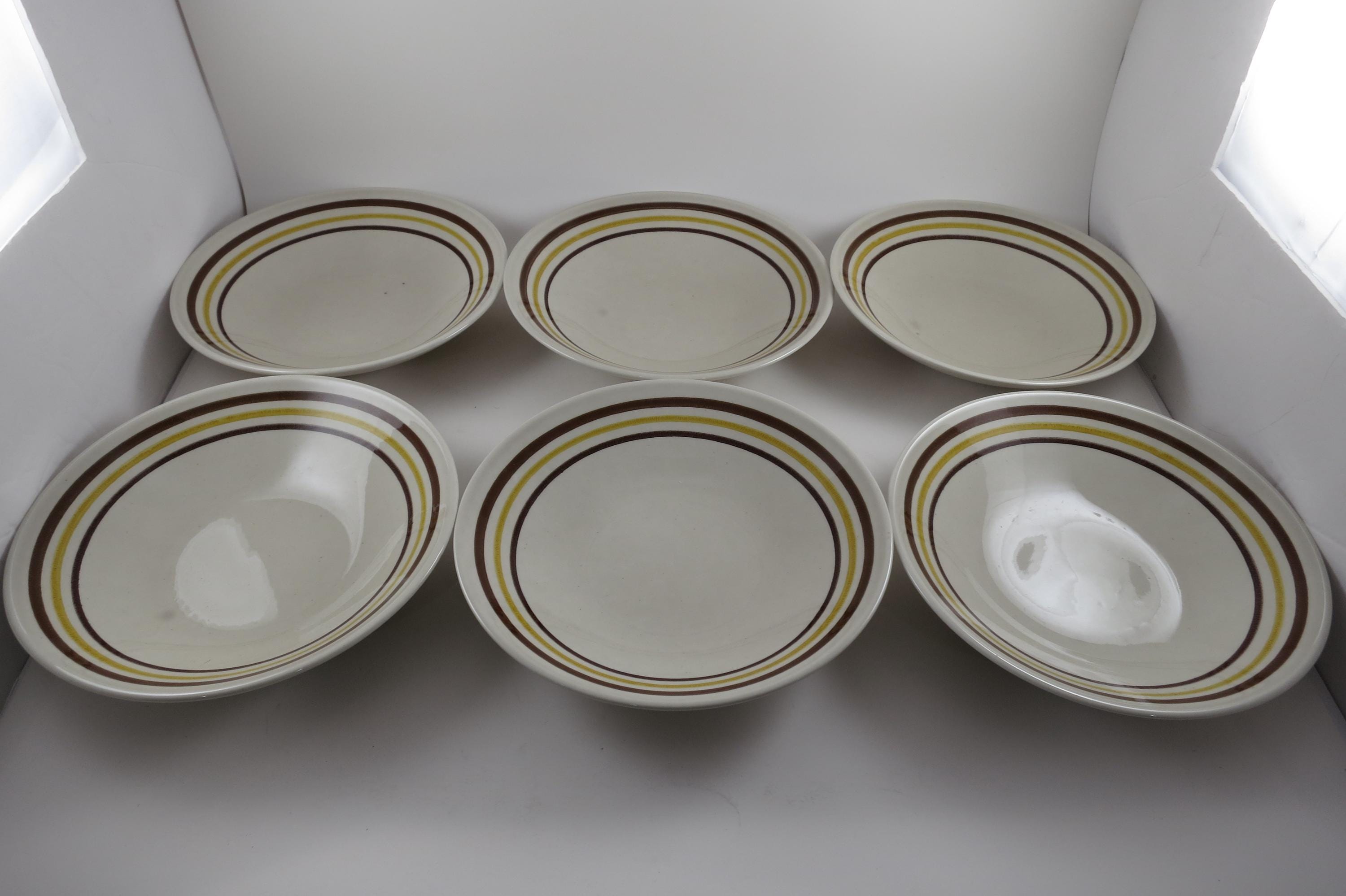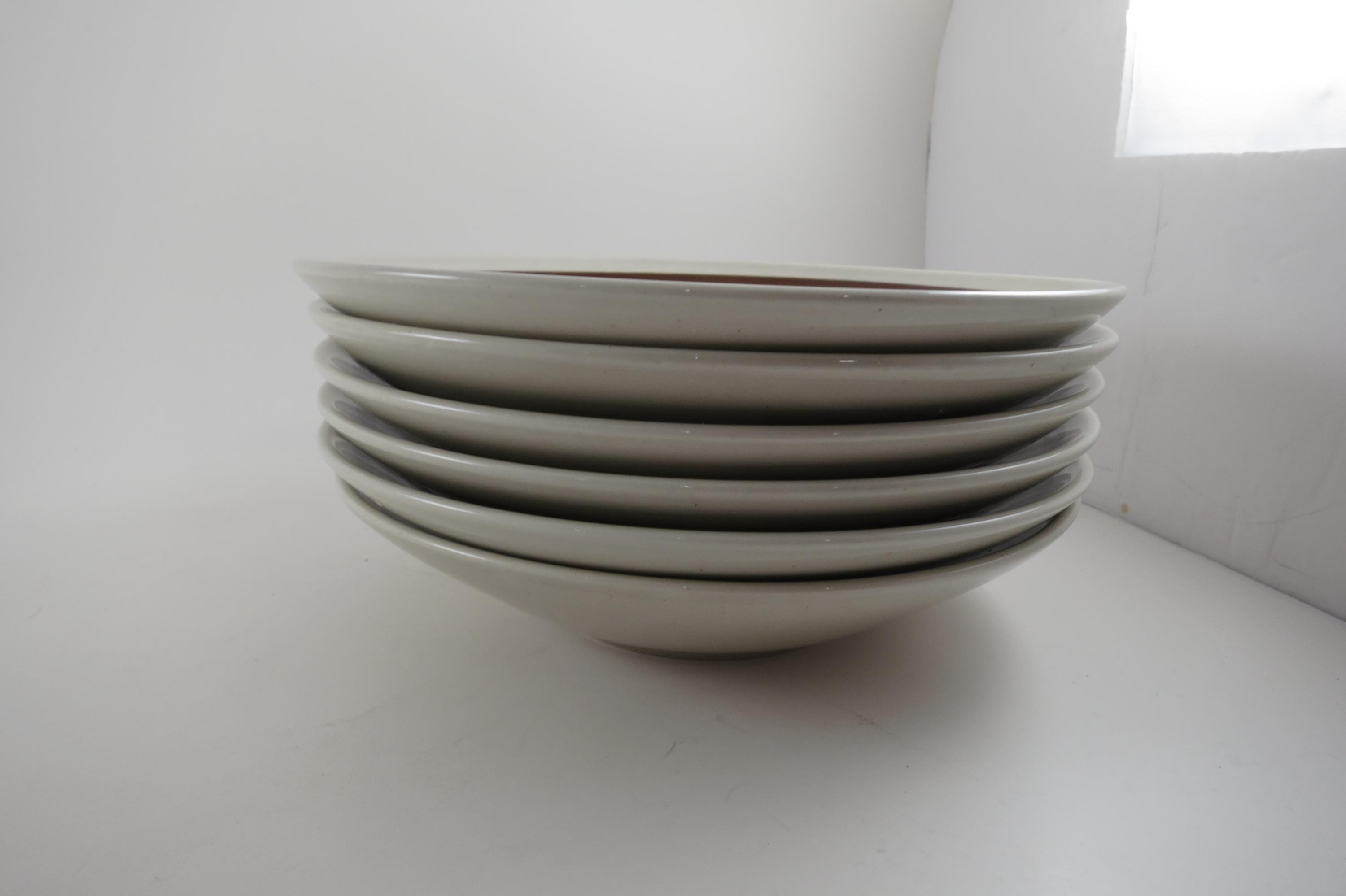 This listing is for Six (6) 7 1/2 Soup/Salad Bowls. These are in excellent used condition, but all six have a brown spot or two under the glaze.