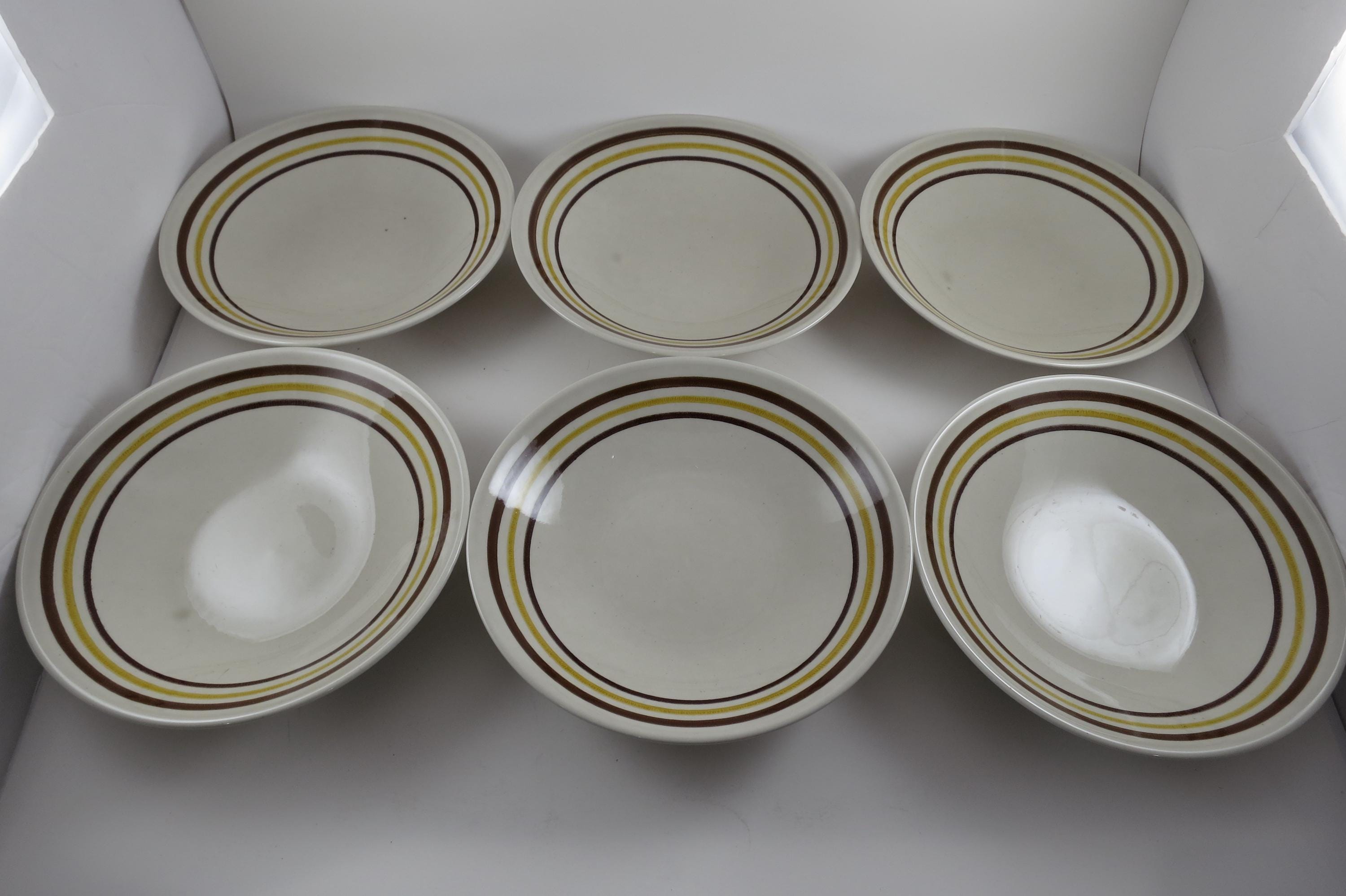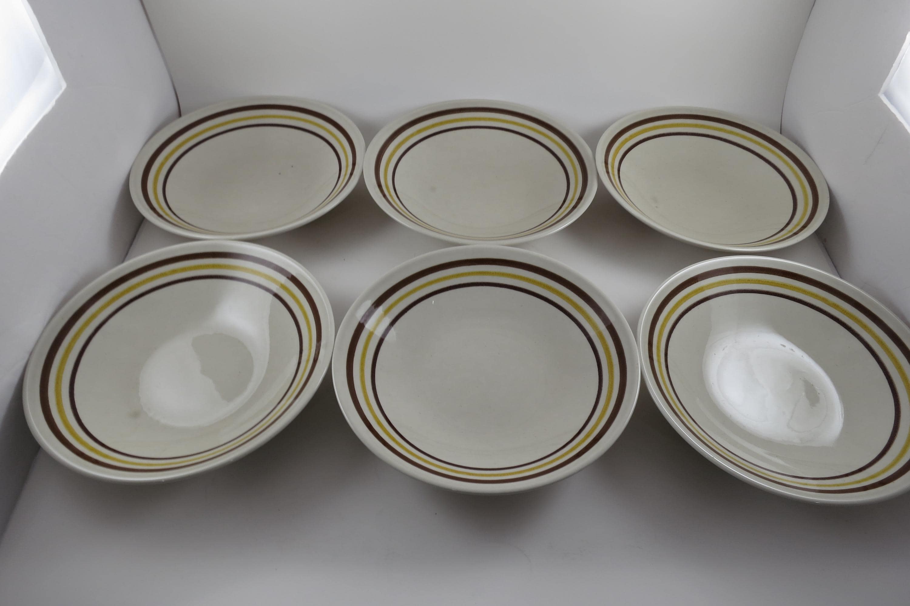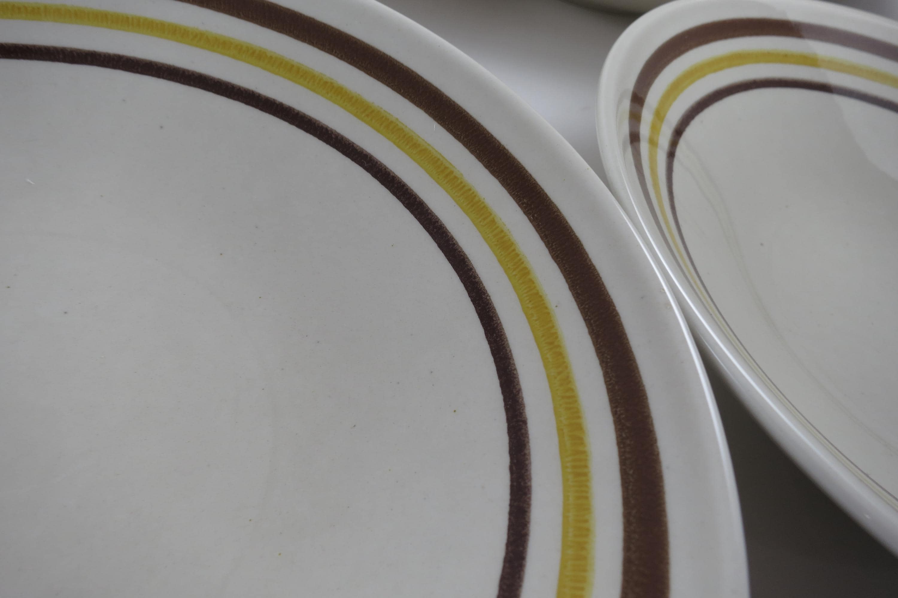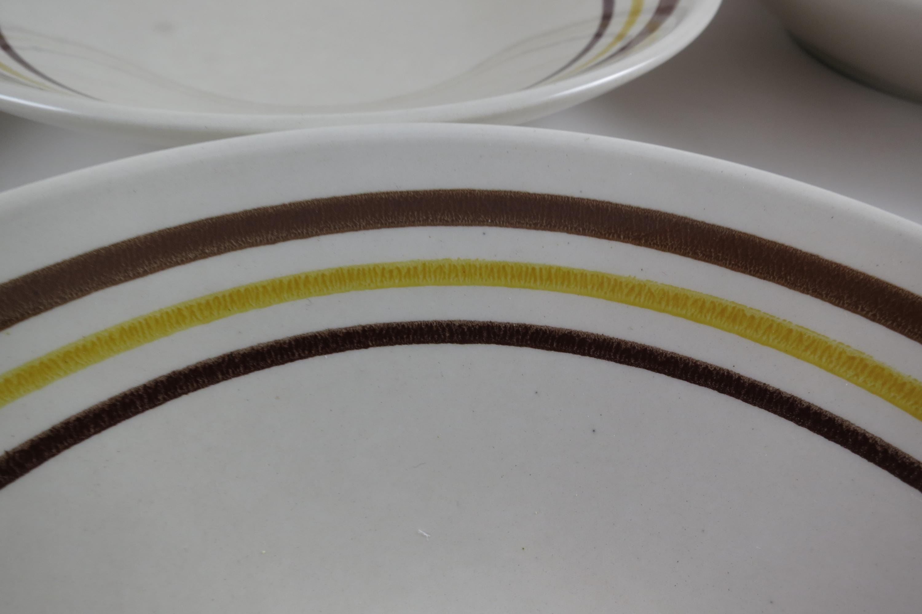 Mid Century Modern pattern with brown and yellow stripes. Good quality Ironstone by TST.