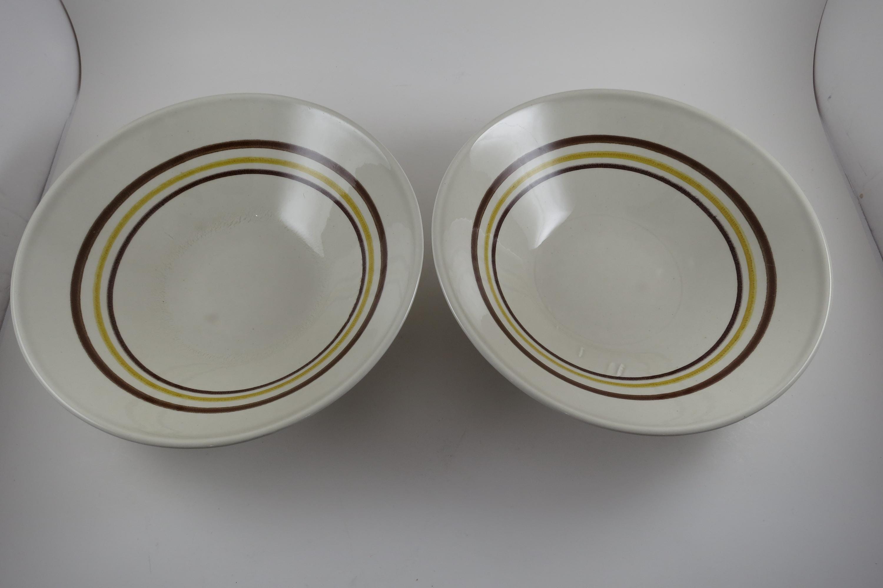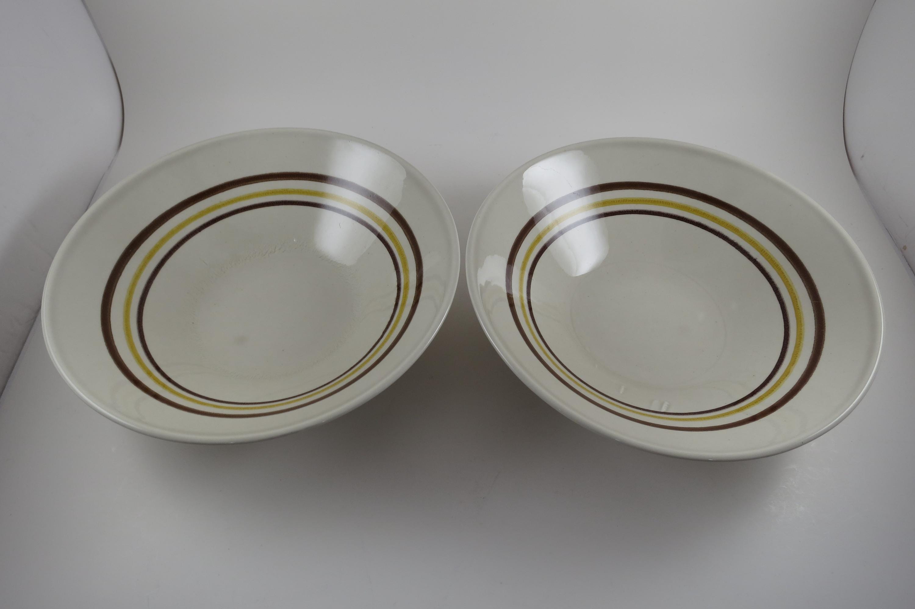 Mid Century Modern pattern with brown and yellow stripes. Good quality Ironstone by TST.