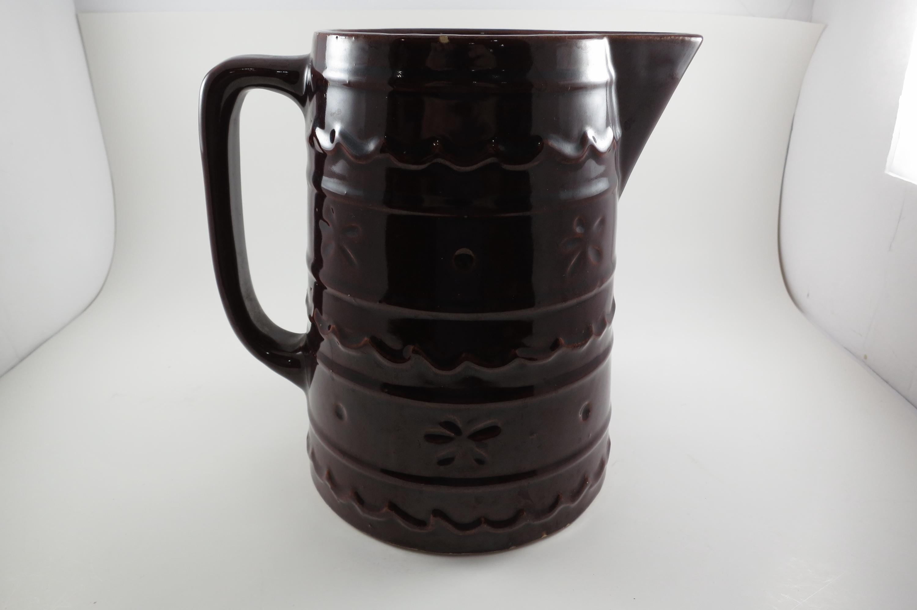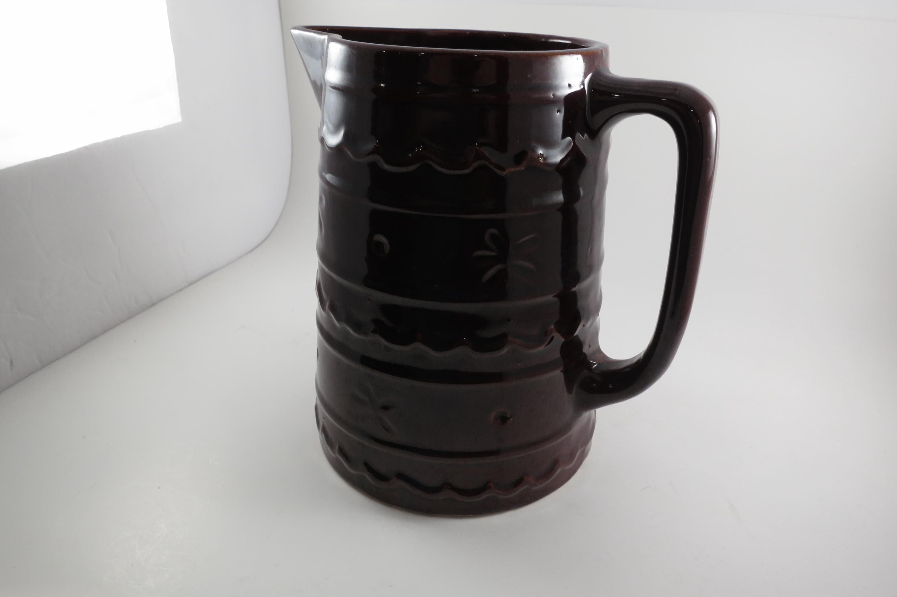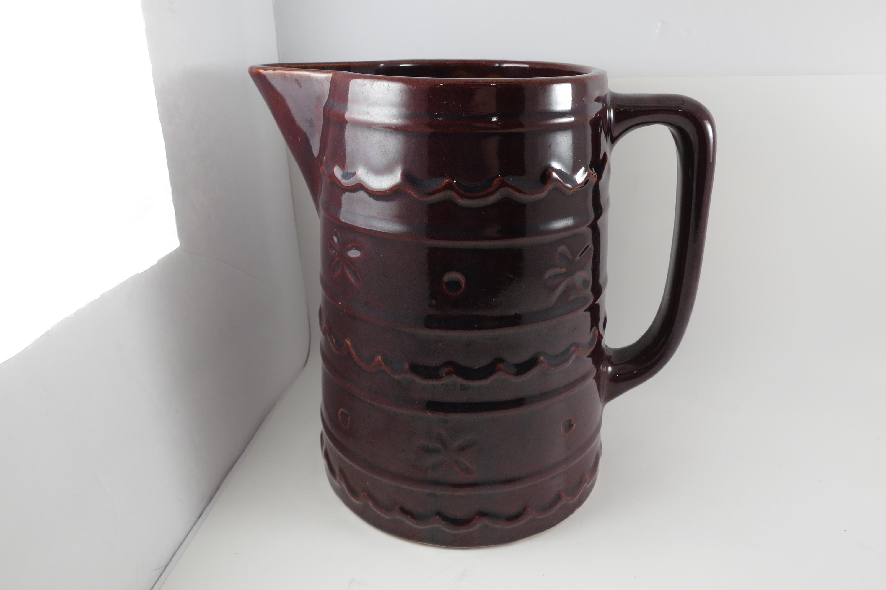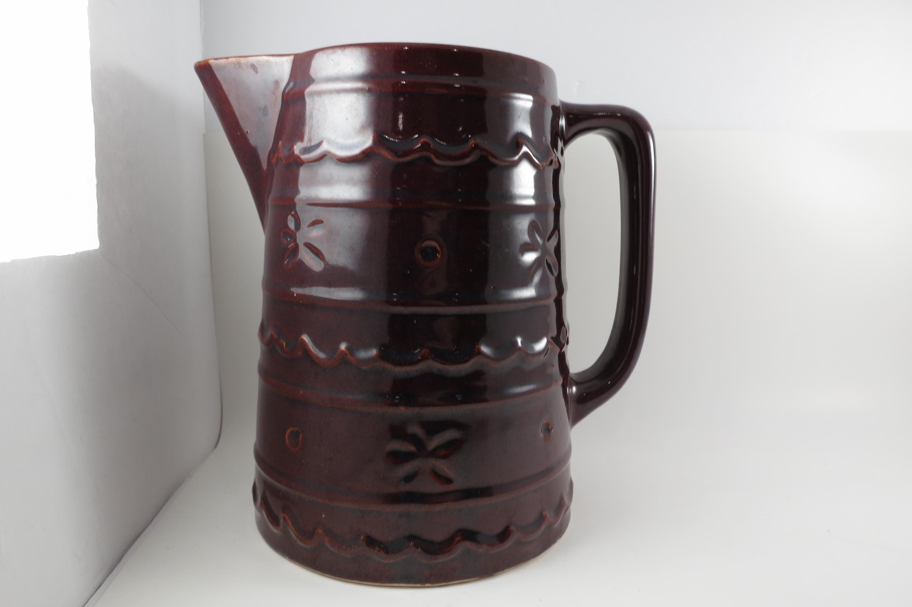 Beautiful Vintage Brown Stoneware Marcrest Pitcher 8 Inches Tall Excellent Condition. Measures 8 1/4 inches wide. Excellent condition, no damages.
