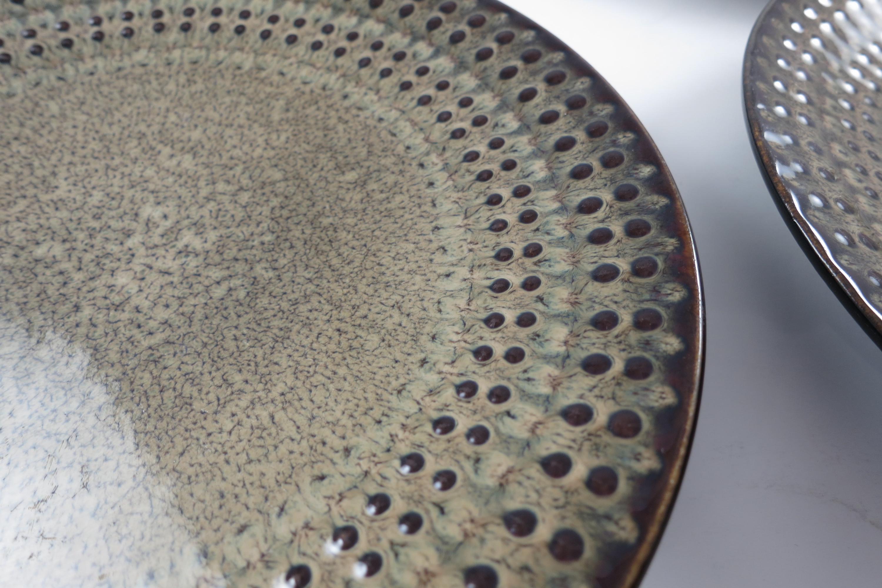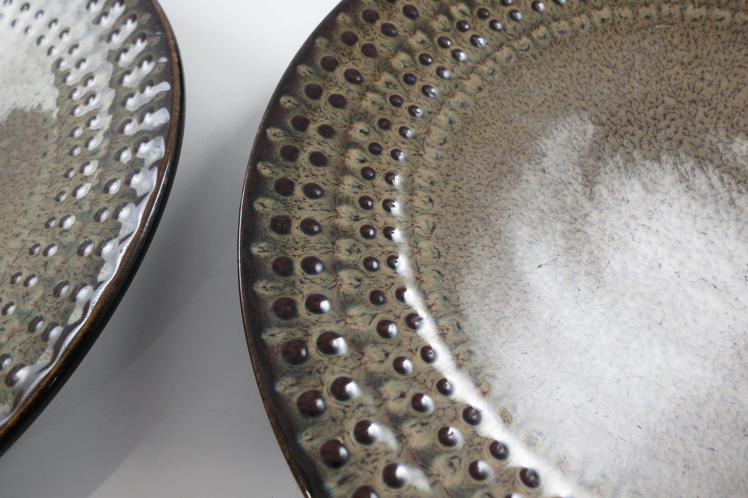 These are in great condition with no chips, cracks or damages. They measure 8 1/2 inches in diameter.