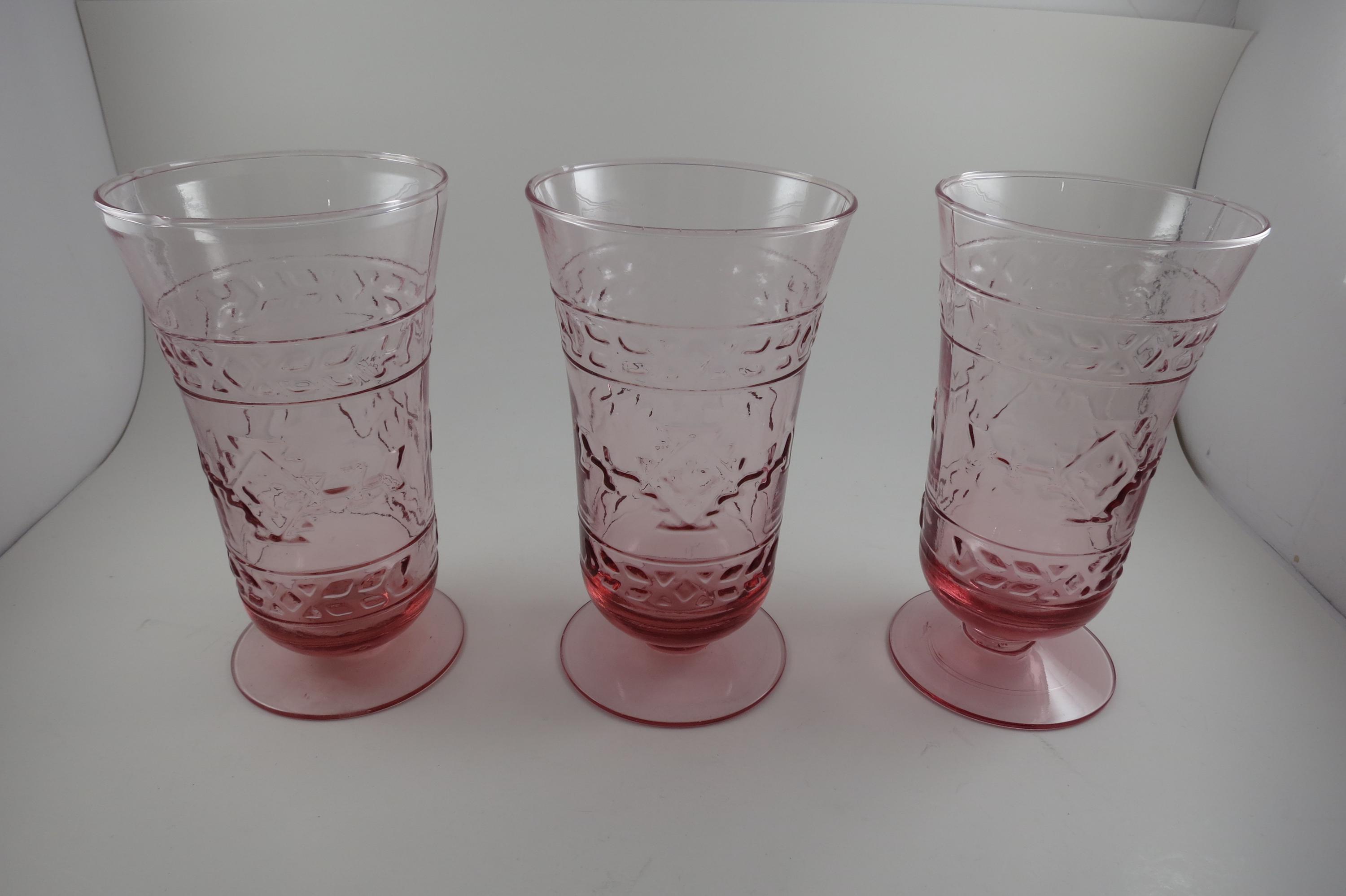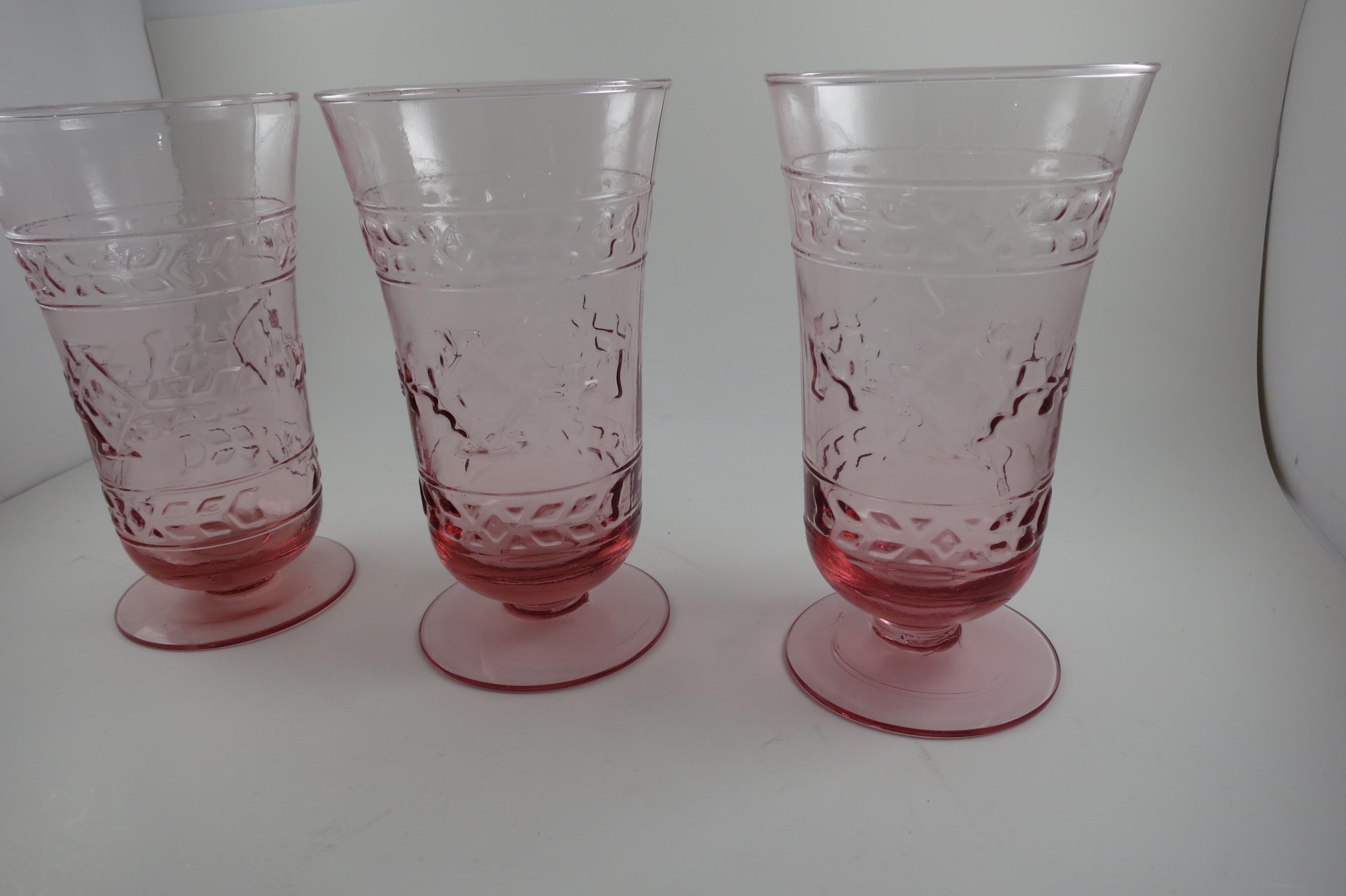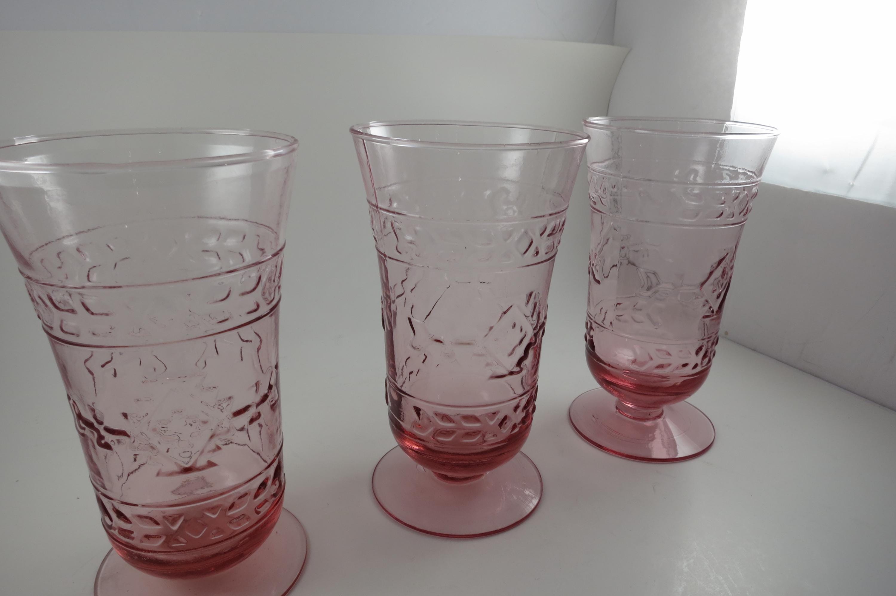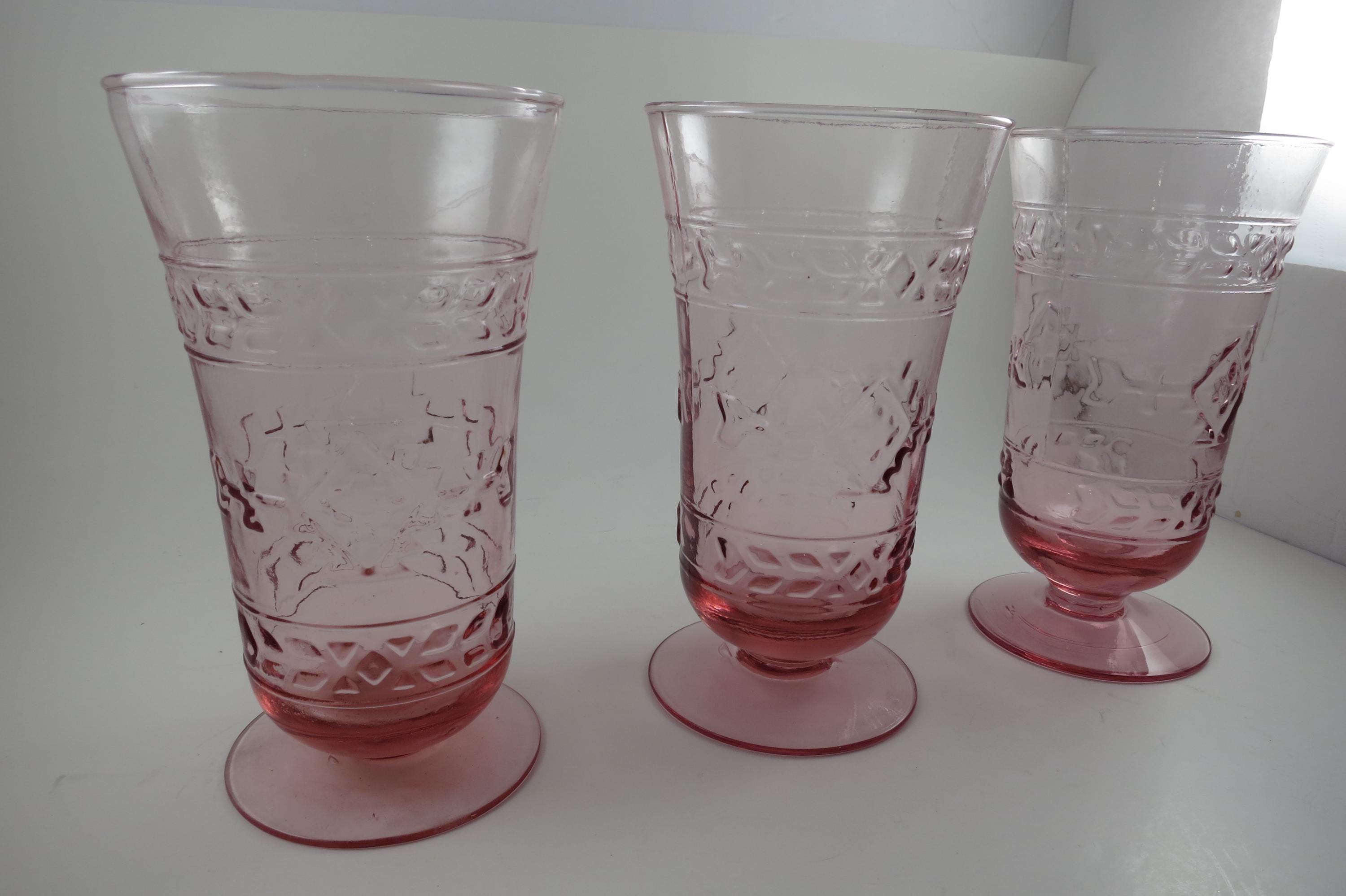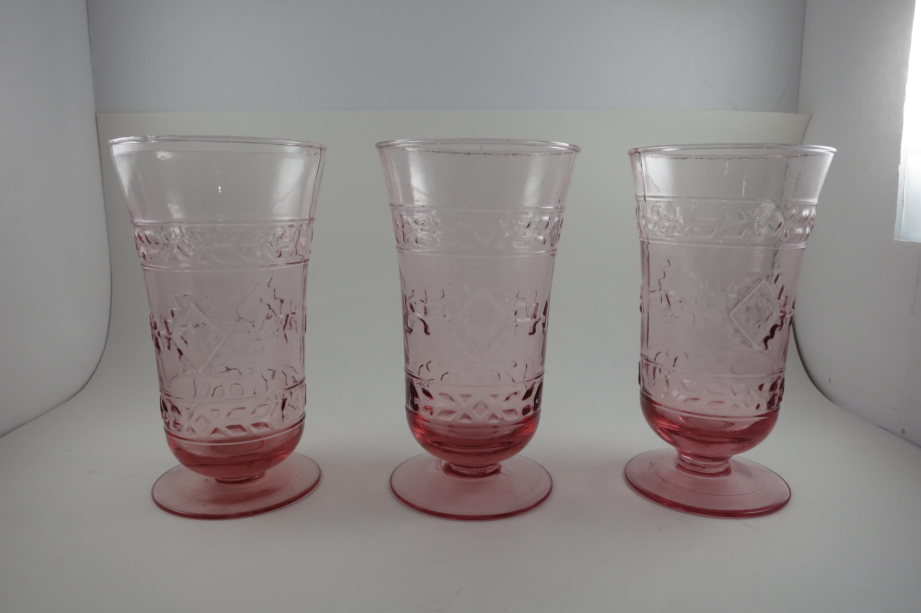 Set of Three Vintage Mikasa Pink Adirondack Aztec Print Goblet Glasses.