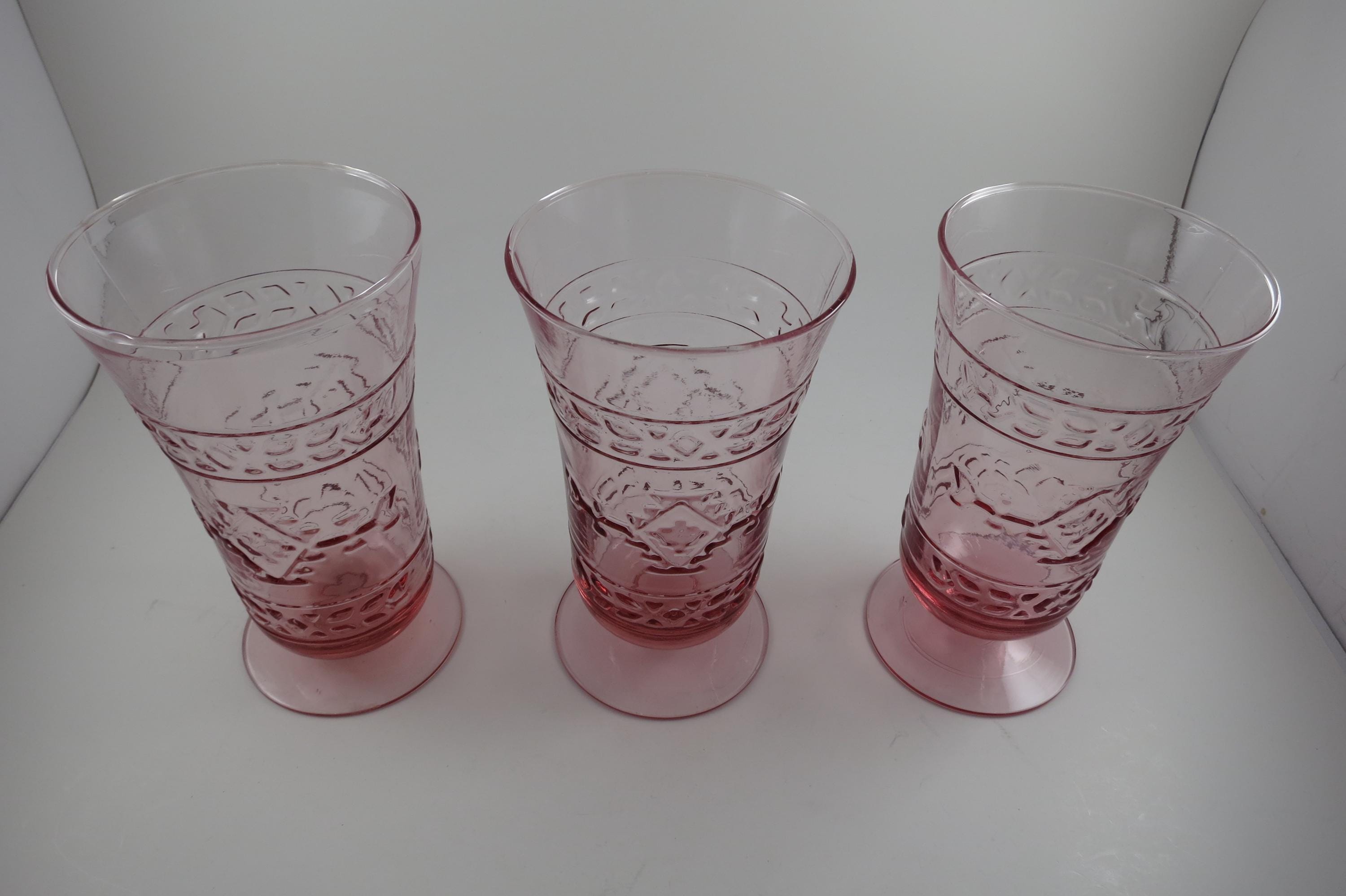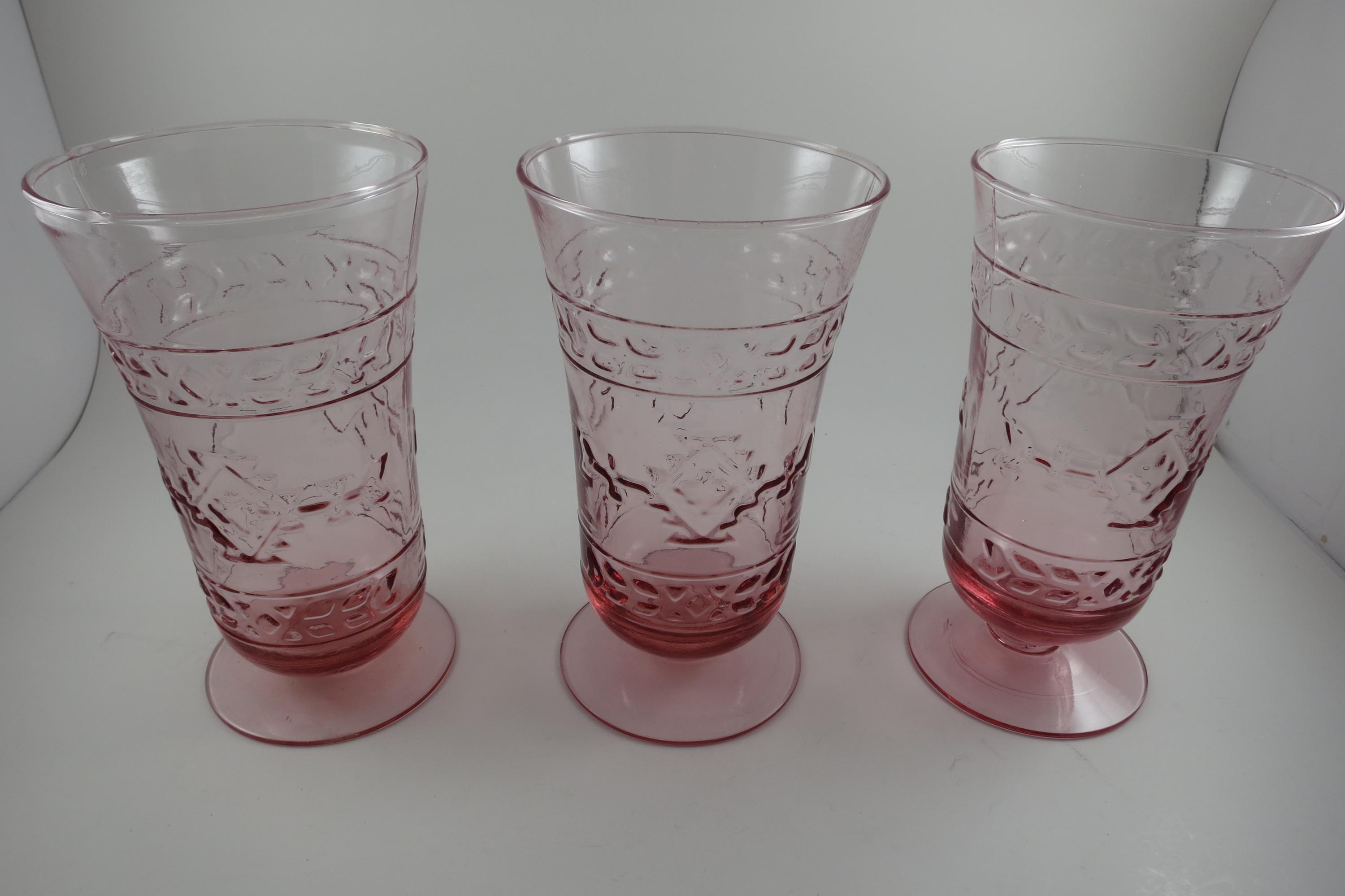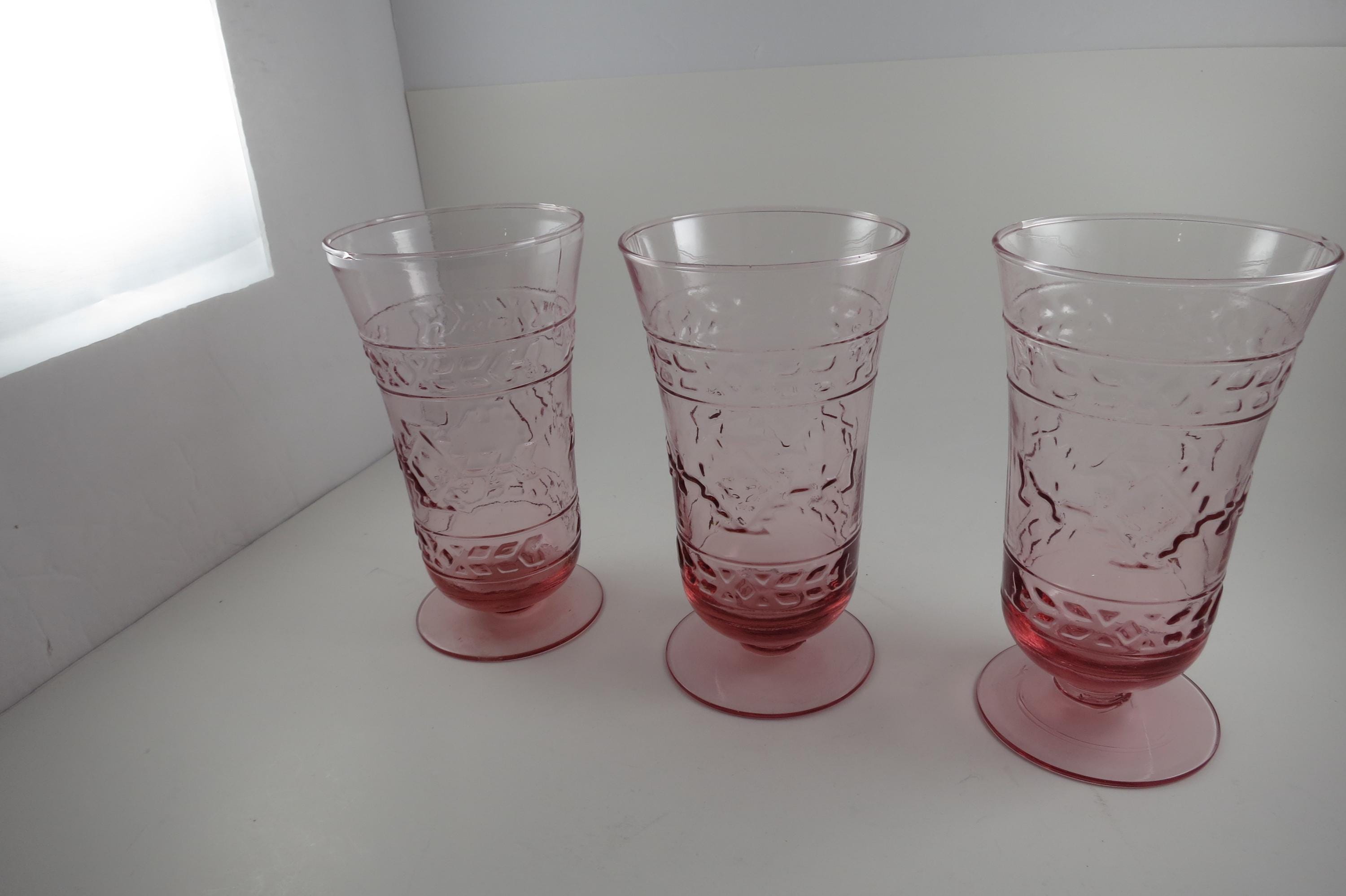 These measure 7 inches tall and look great in almost any setting. This listing is for a set of three glasses, all in beautiful condition. No chips, cracks or damages.