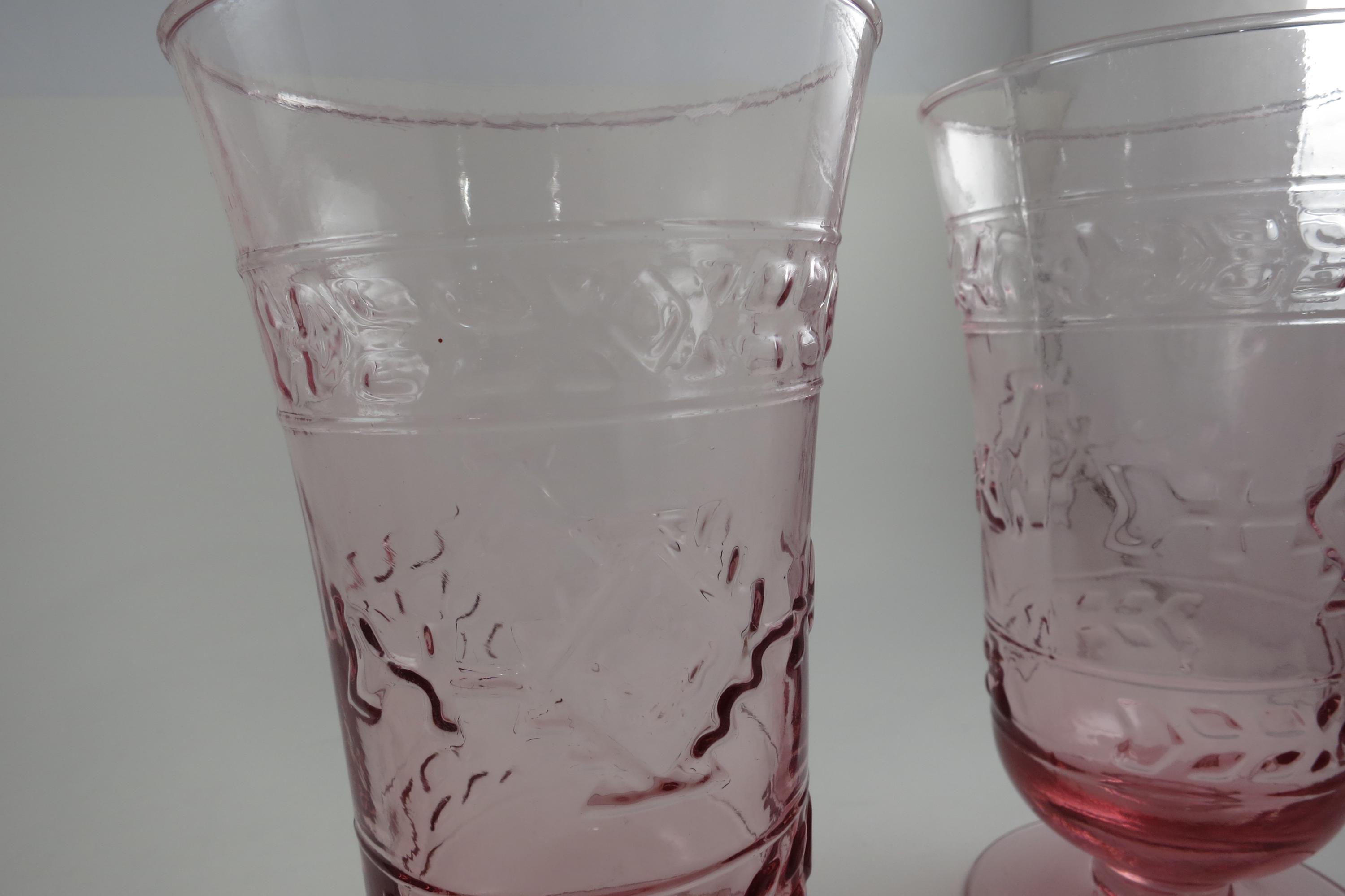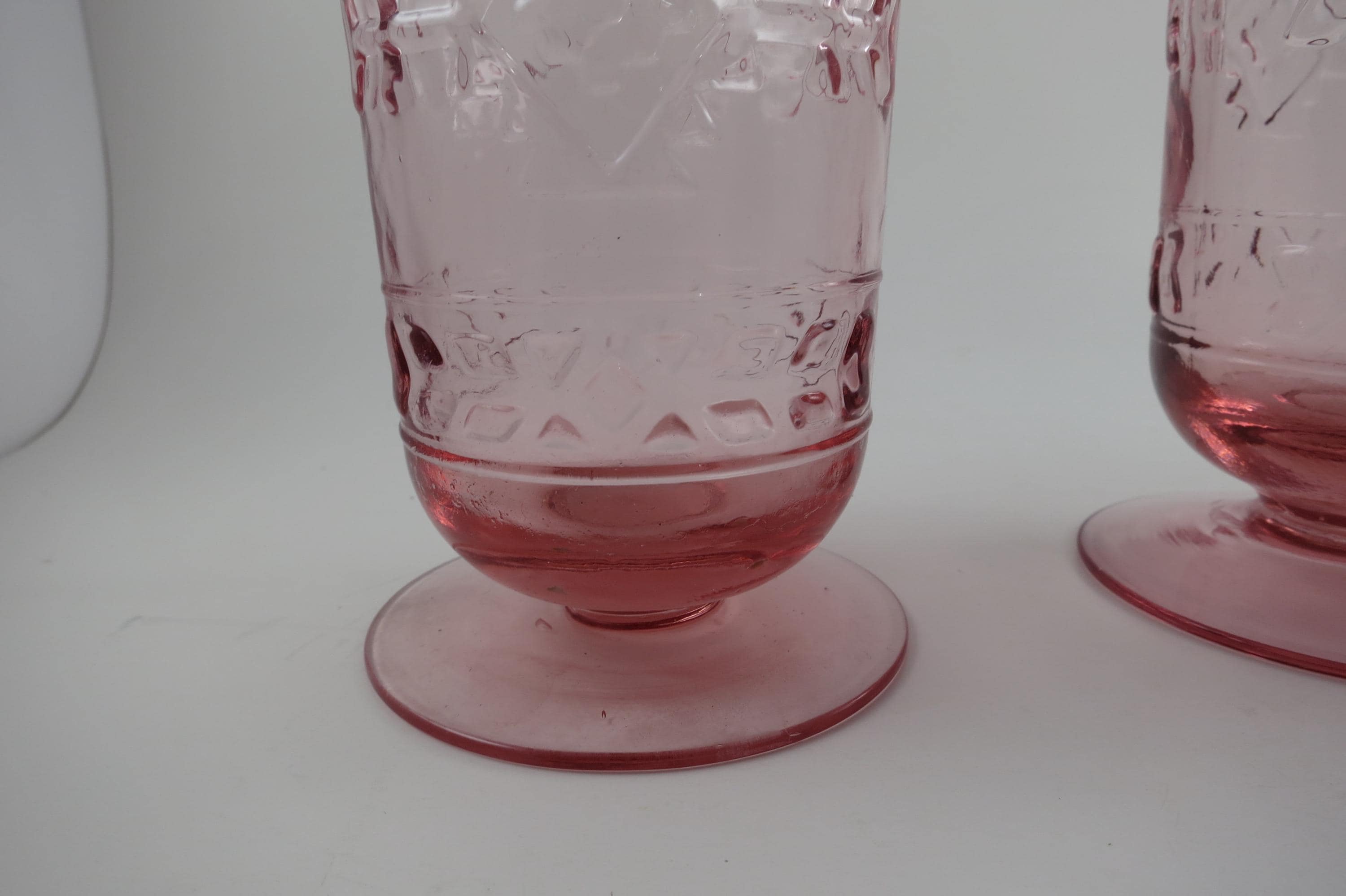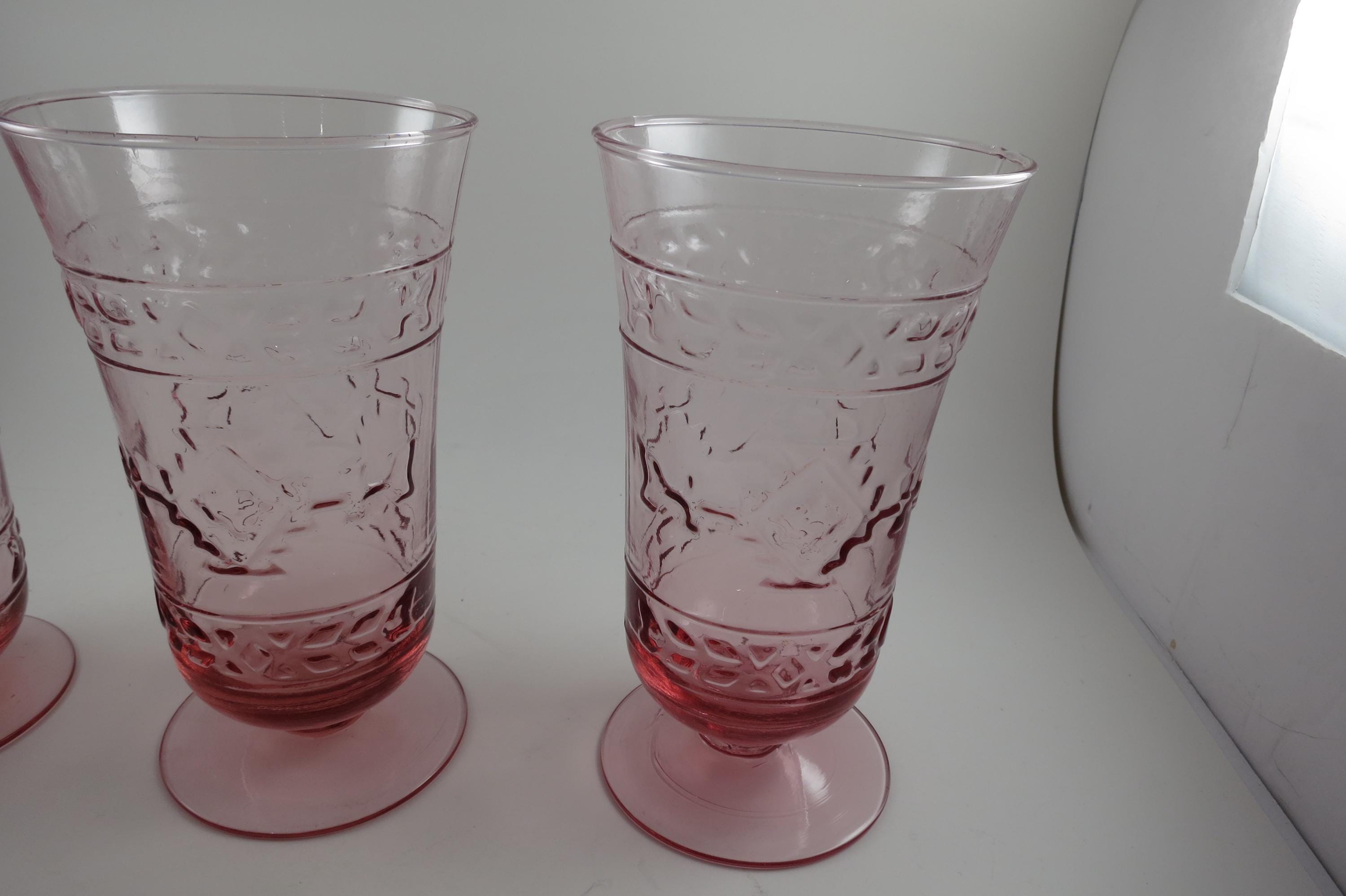 Set of Four Vintage Mikasa Pink Adirondack Aztec Print Goblet Glasses