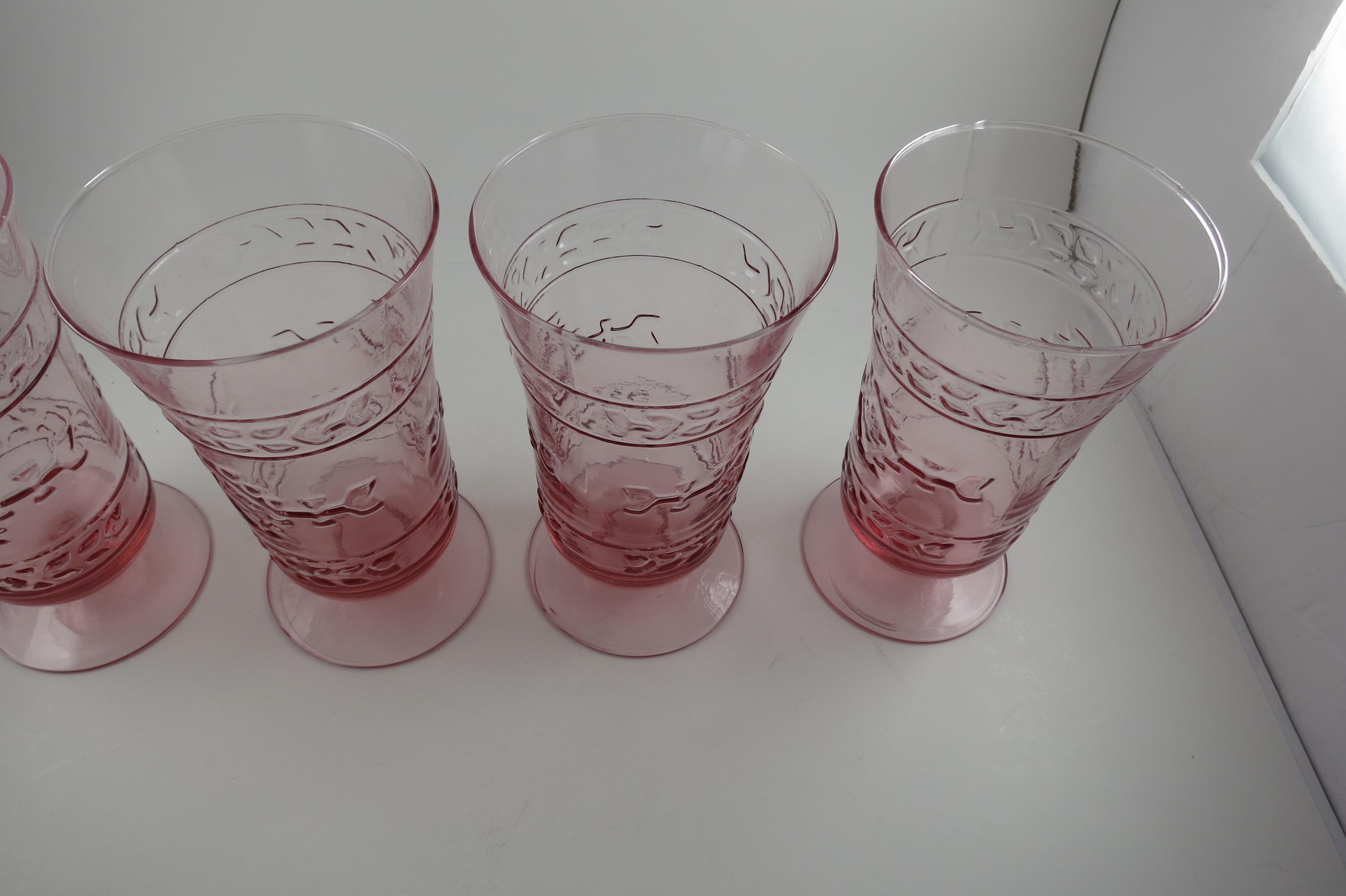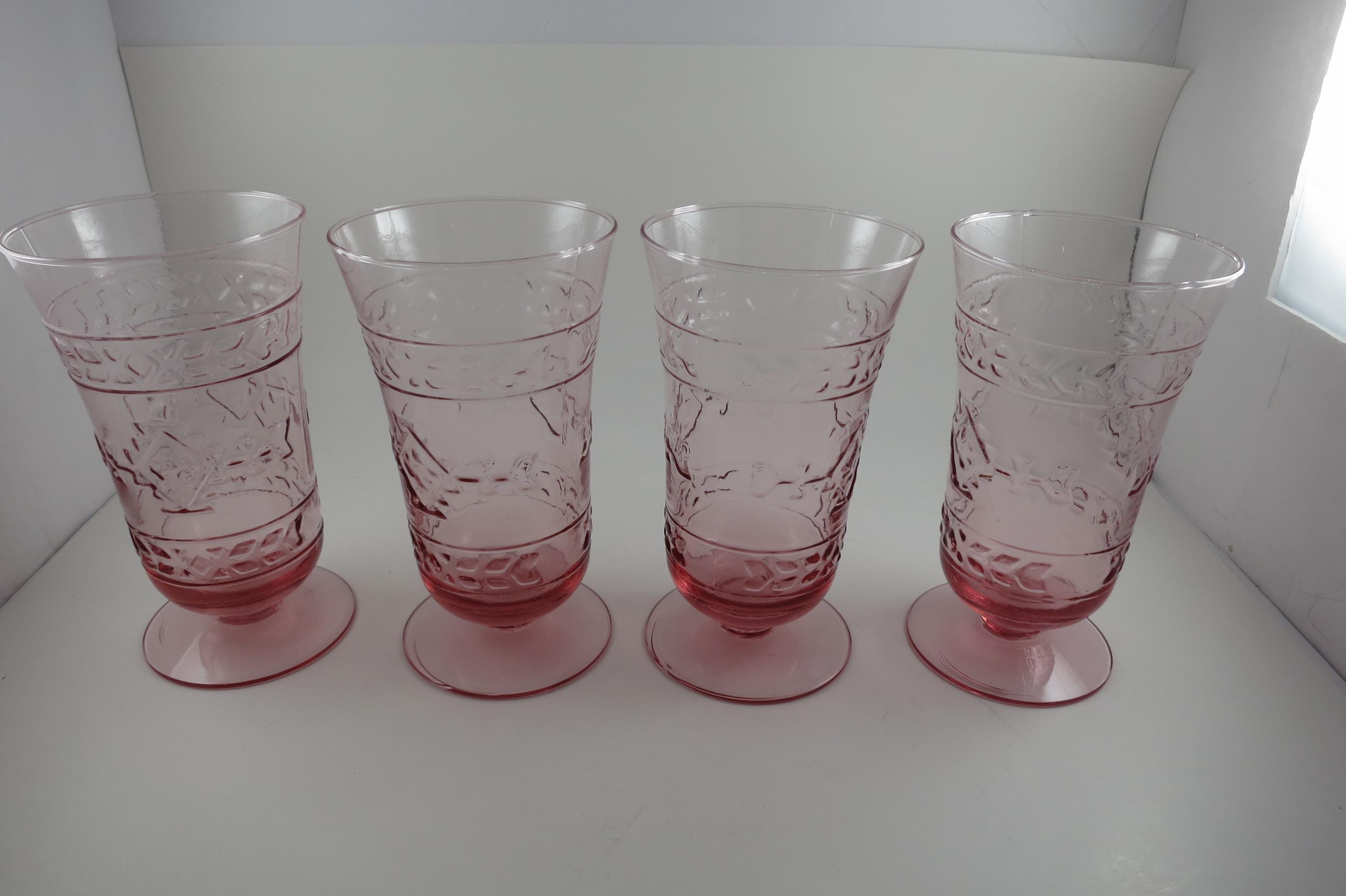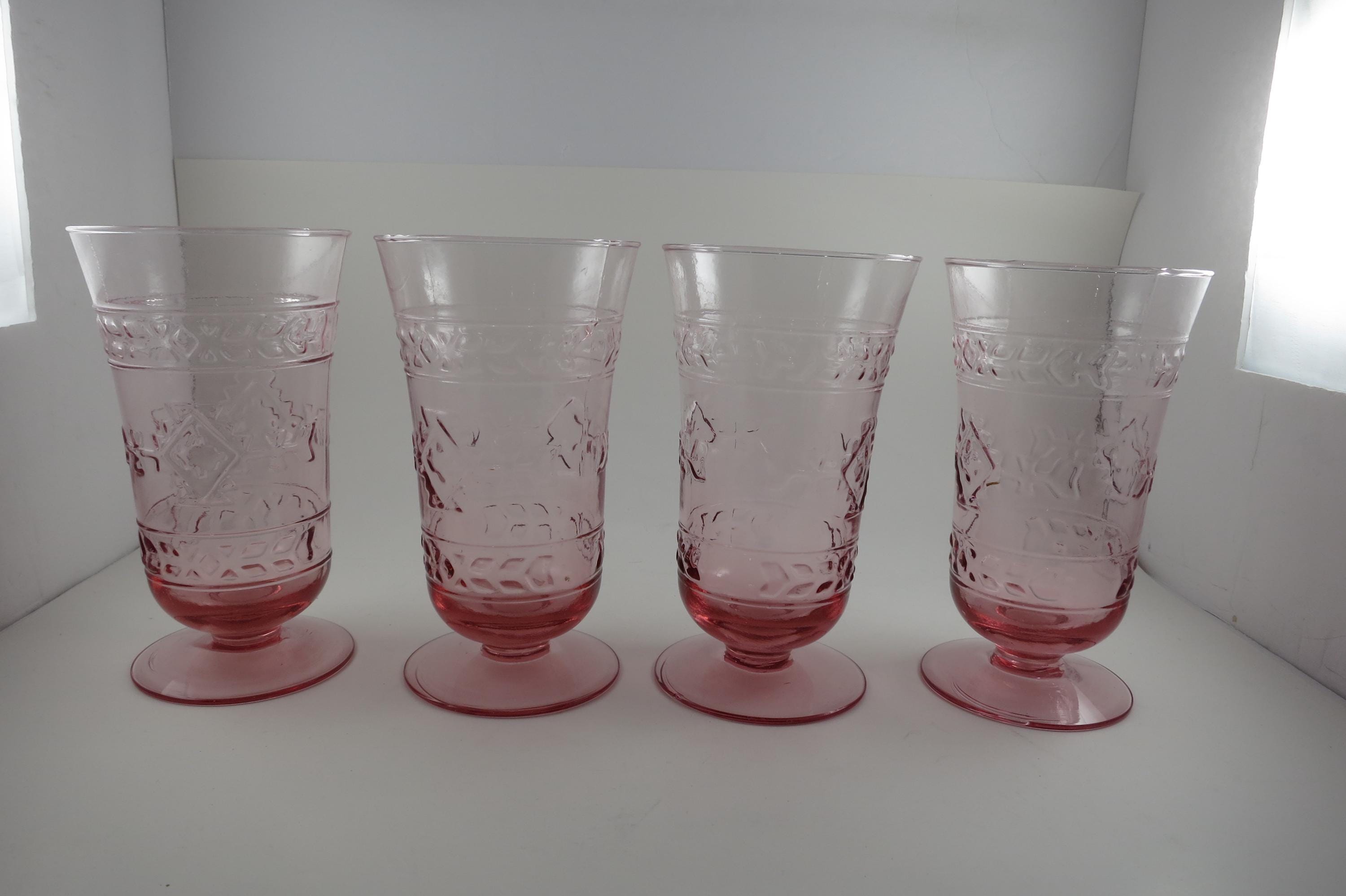 These measure 7 inches tall and look great in almost any setting. This listing is for a set of four glasses, all in beautiful condition. No chips, cracks or damages.