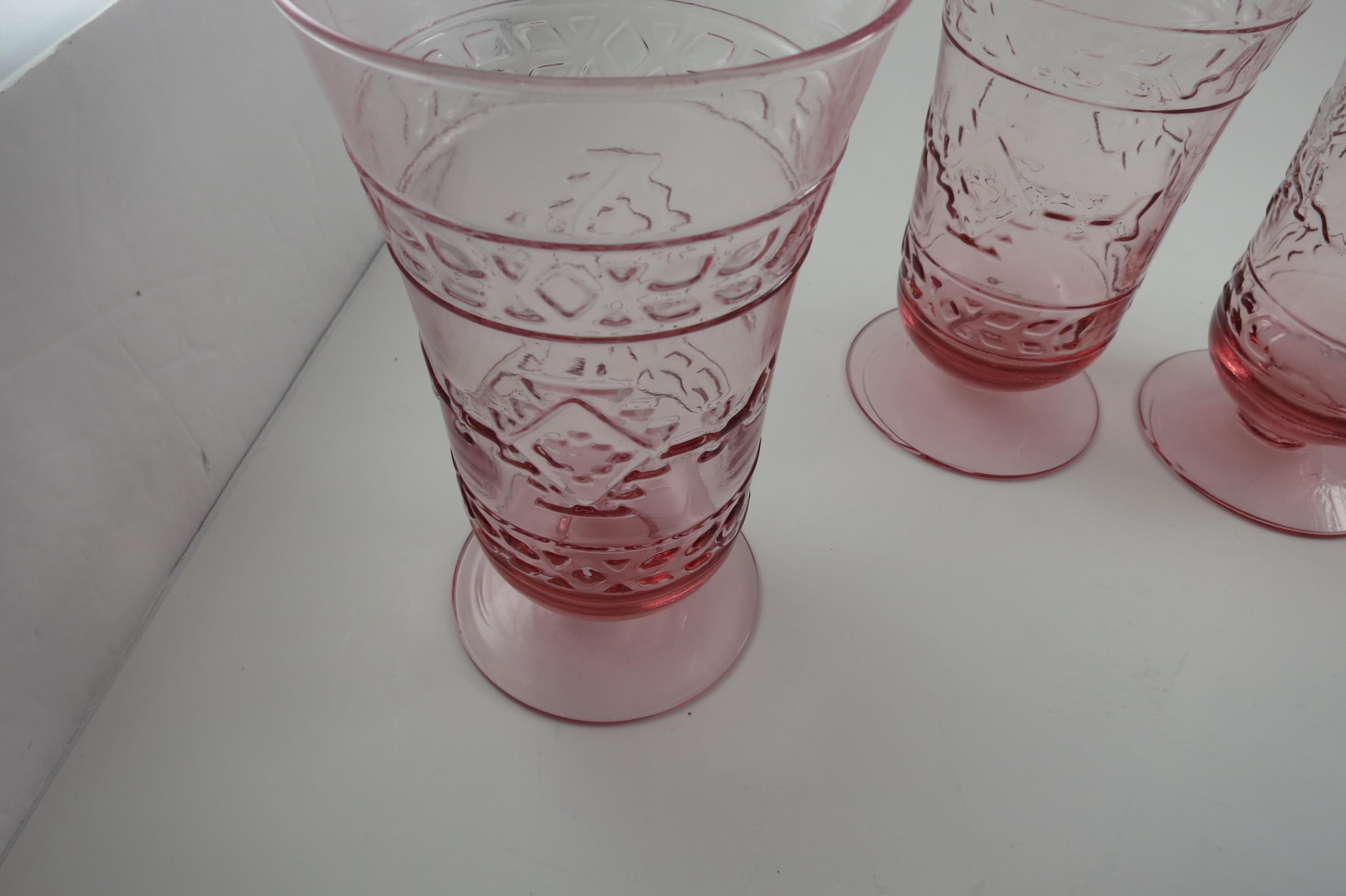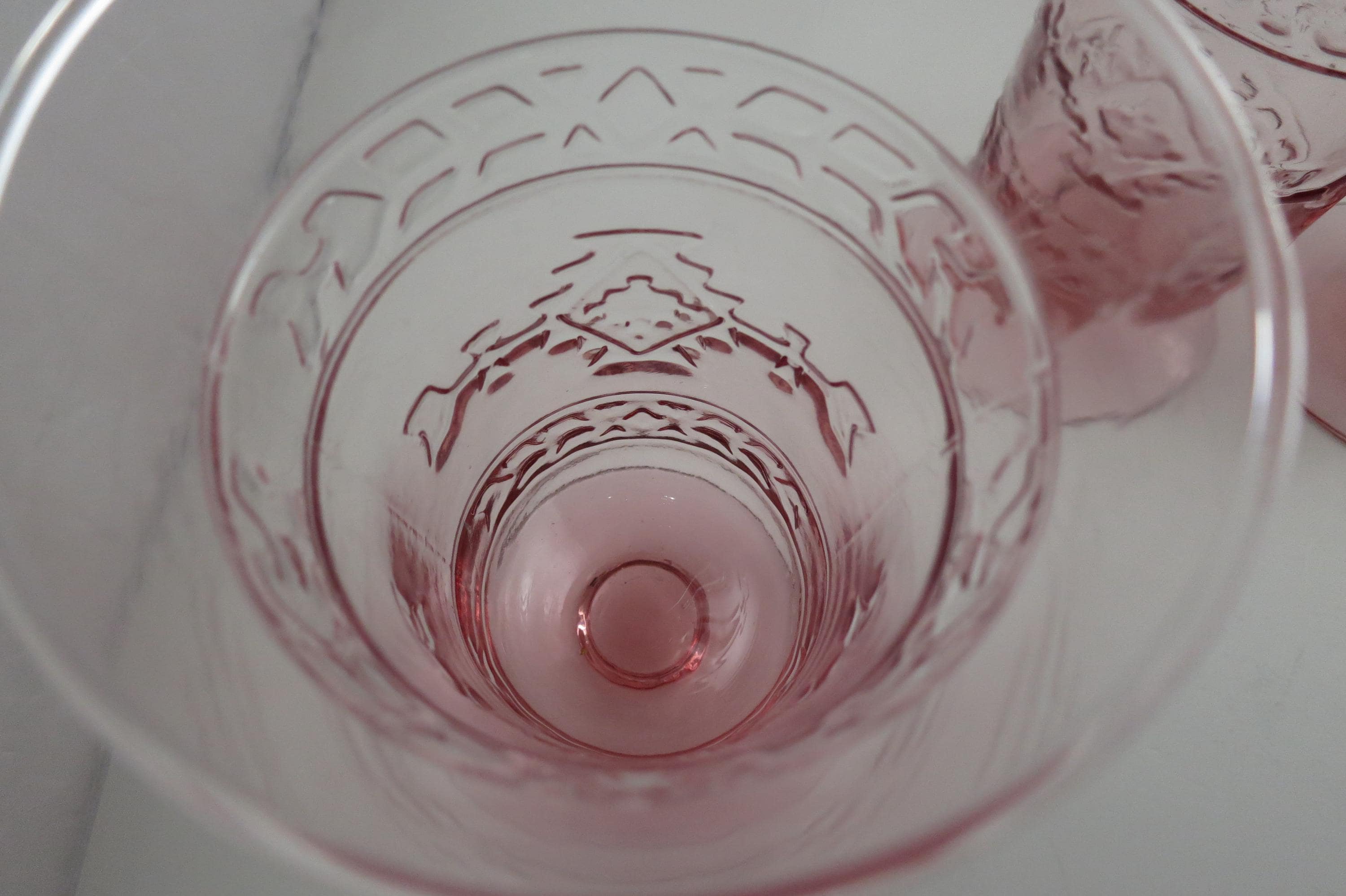 Set of Four Vintage Mikasa Pink Adirondack Aztec Print Goblet Glasses