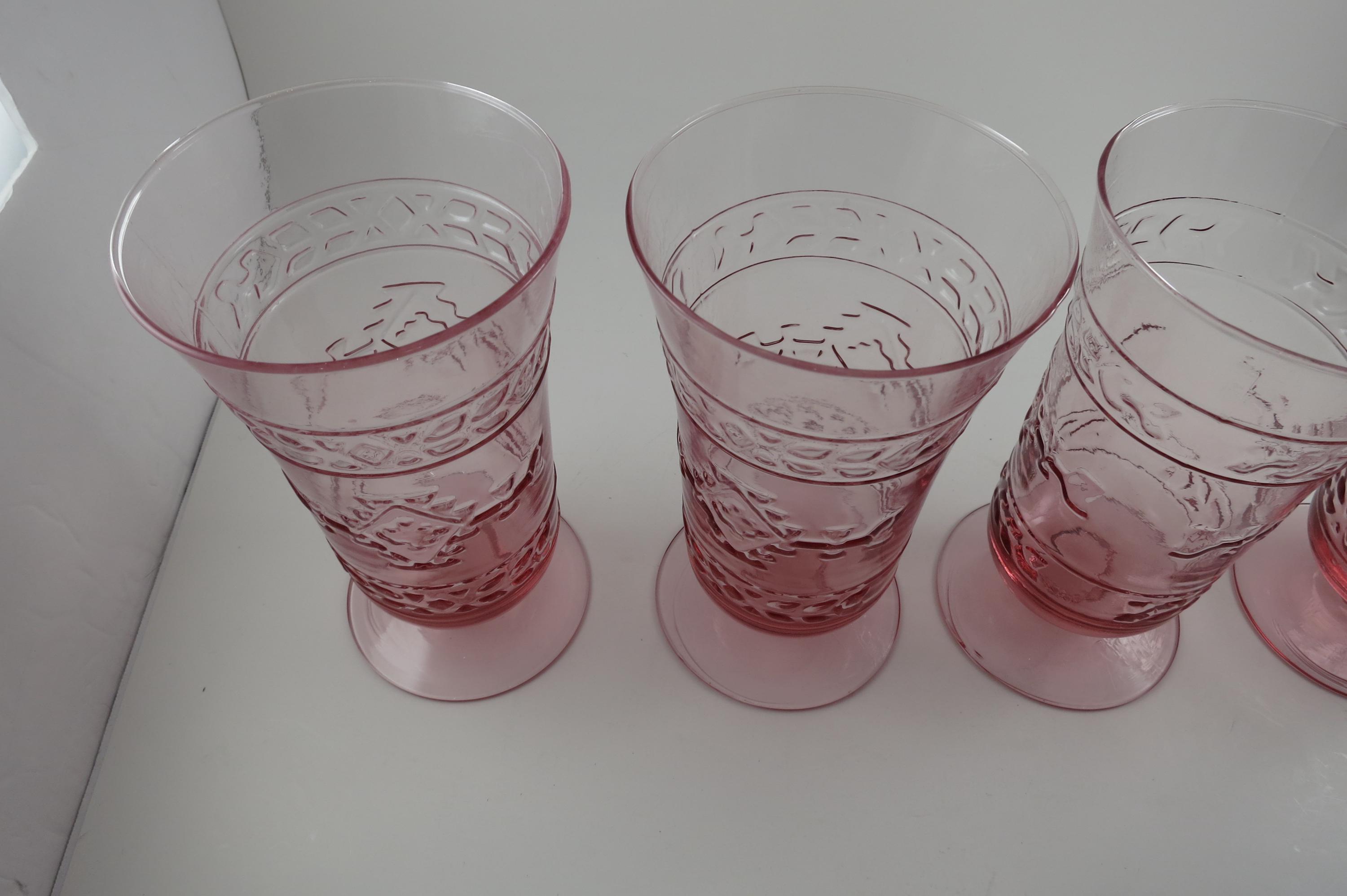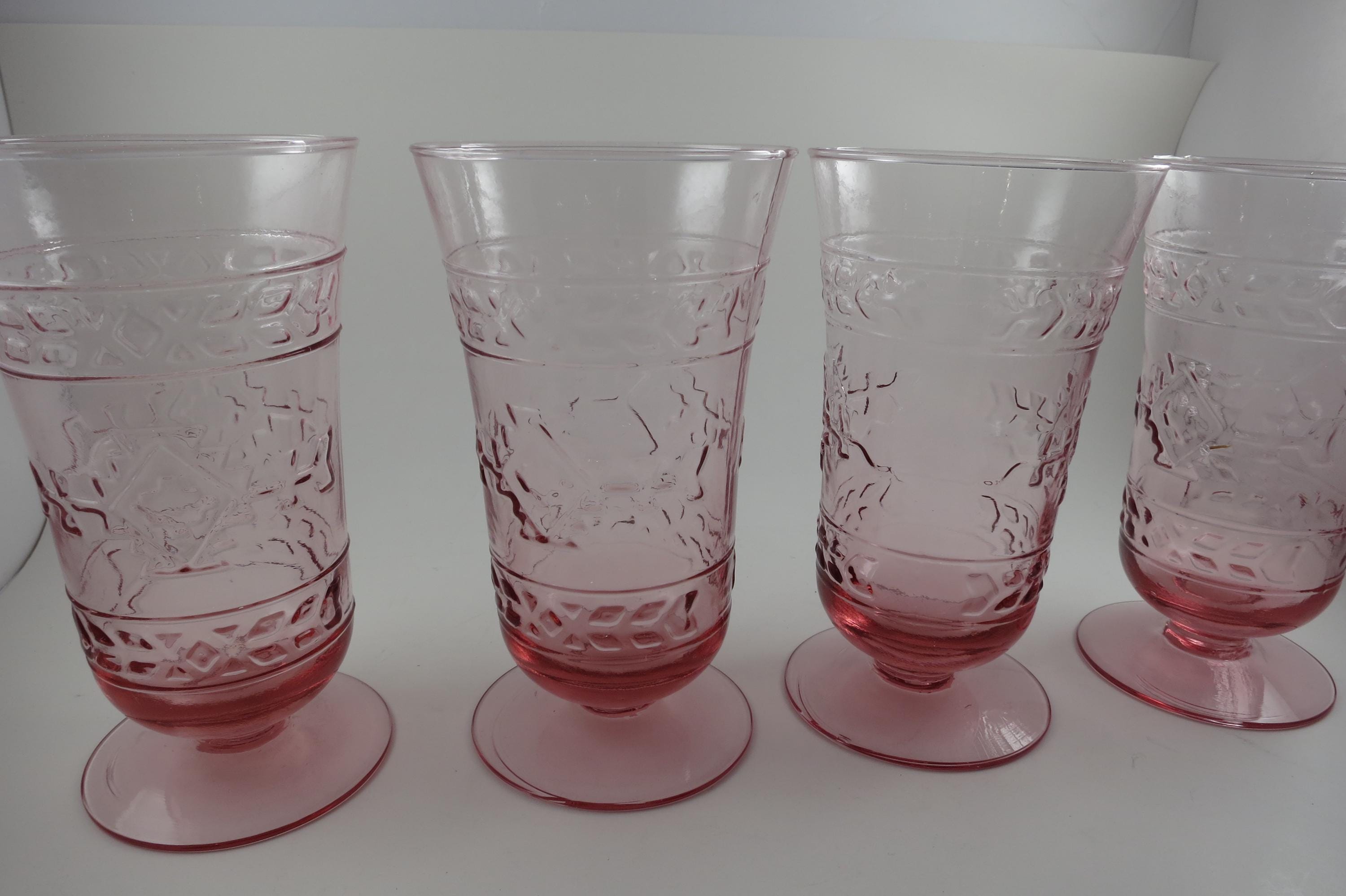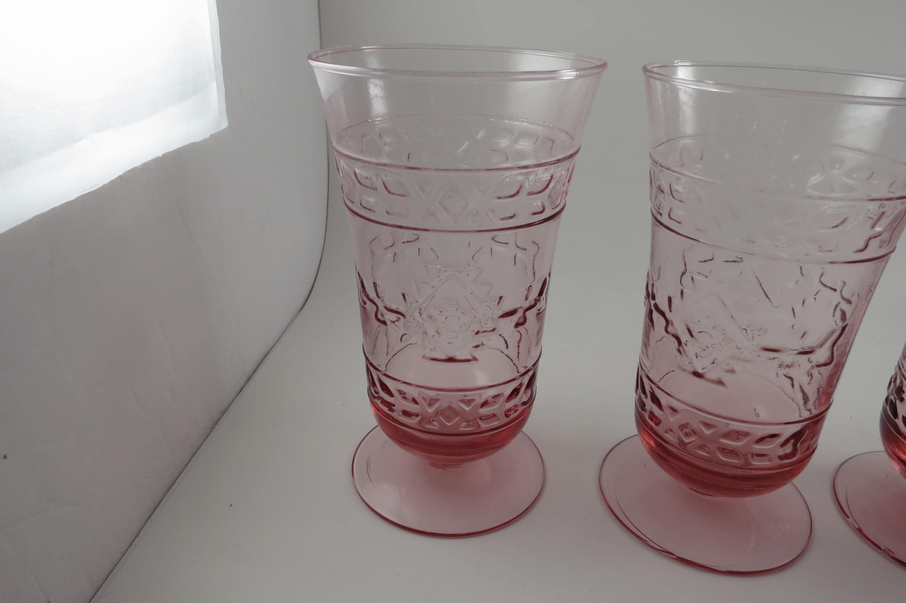 Set of Four Vintage Mikasa Pink Adirondack Aztec Print Goblet Glasses.