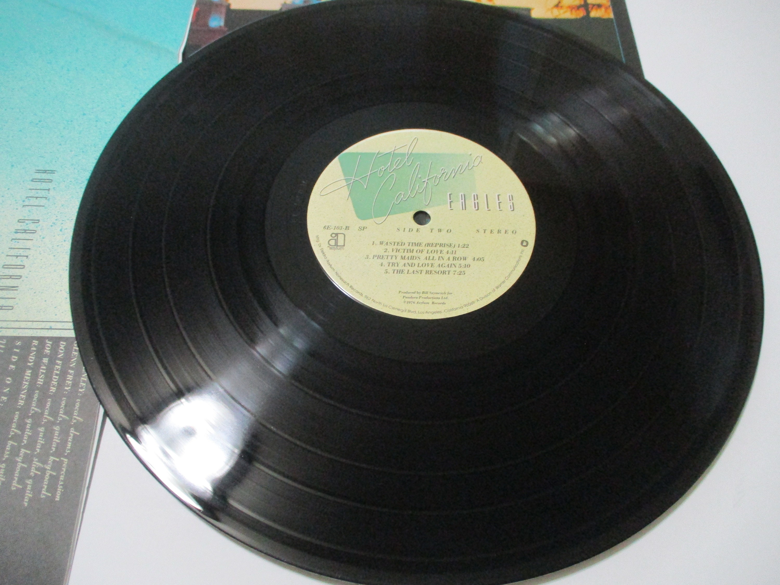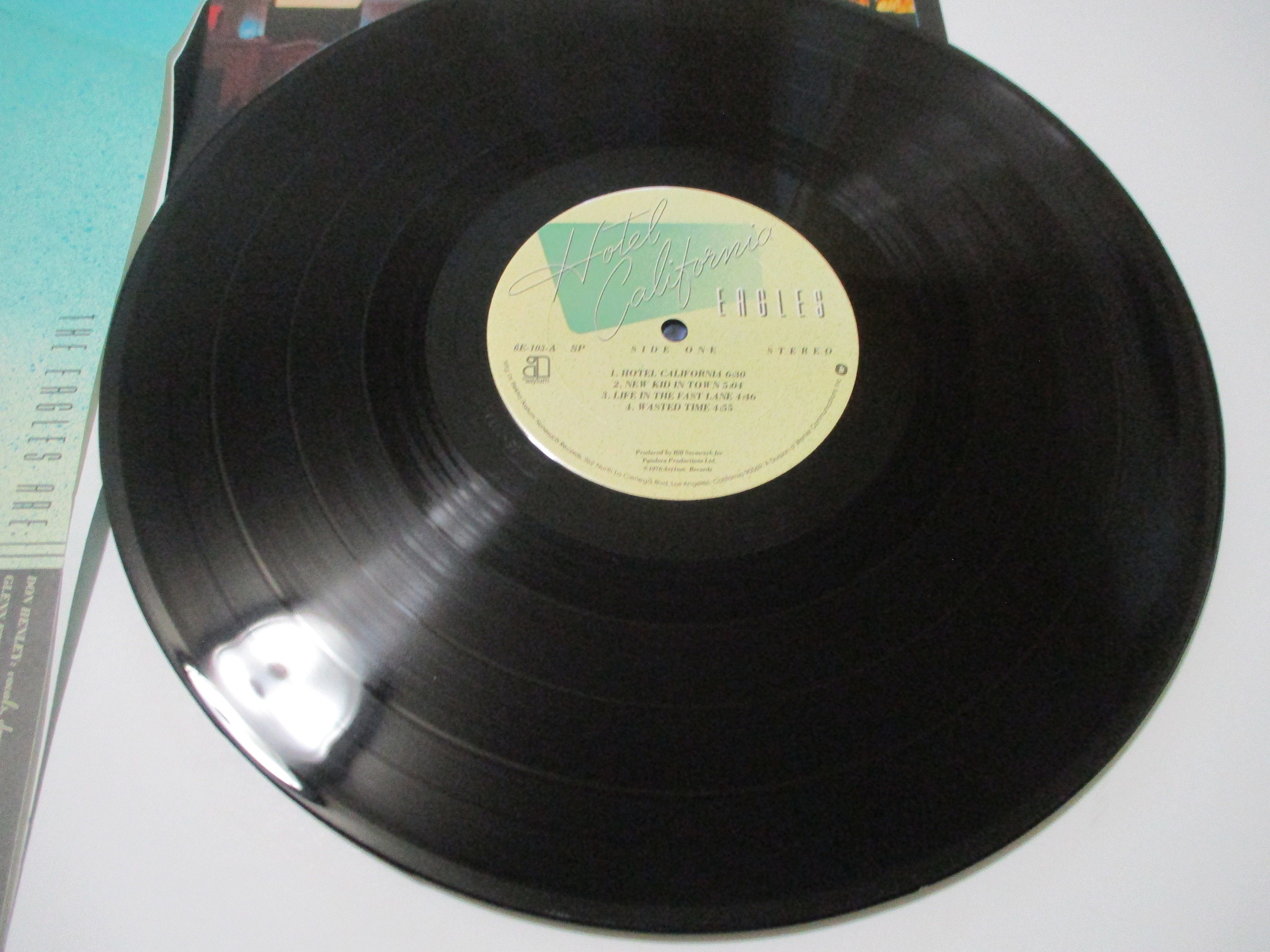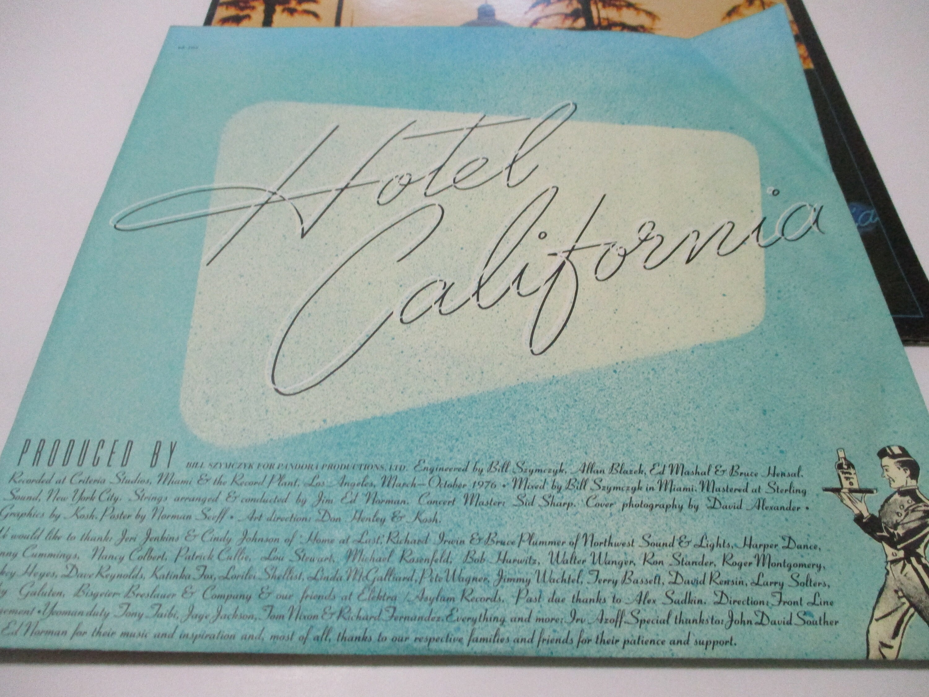 Vintage 1976 Vinyl LP Record The Eagles Hotel California Near Mint Condition. Original gate fold cover is in excellent condition and includes the original inner paper sleeve and the original poster. Record is Near Mint!! Original Pressing!! Tracks are as follows