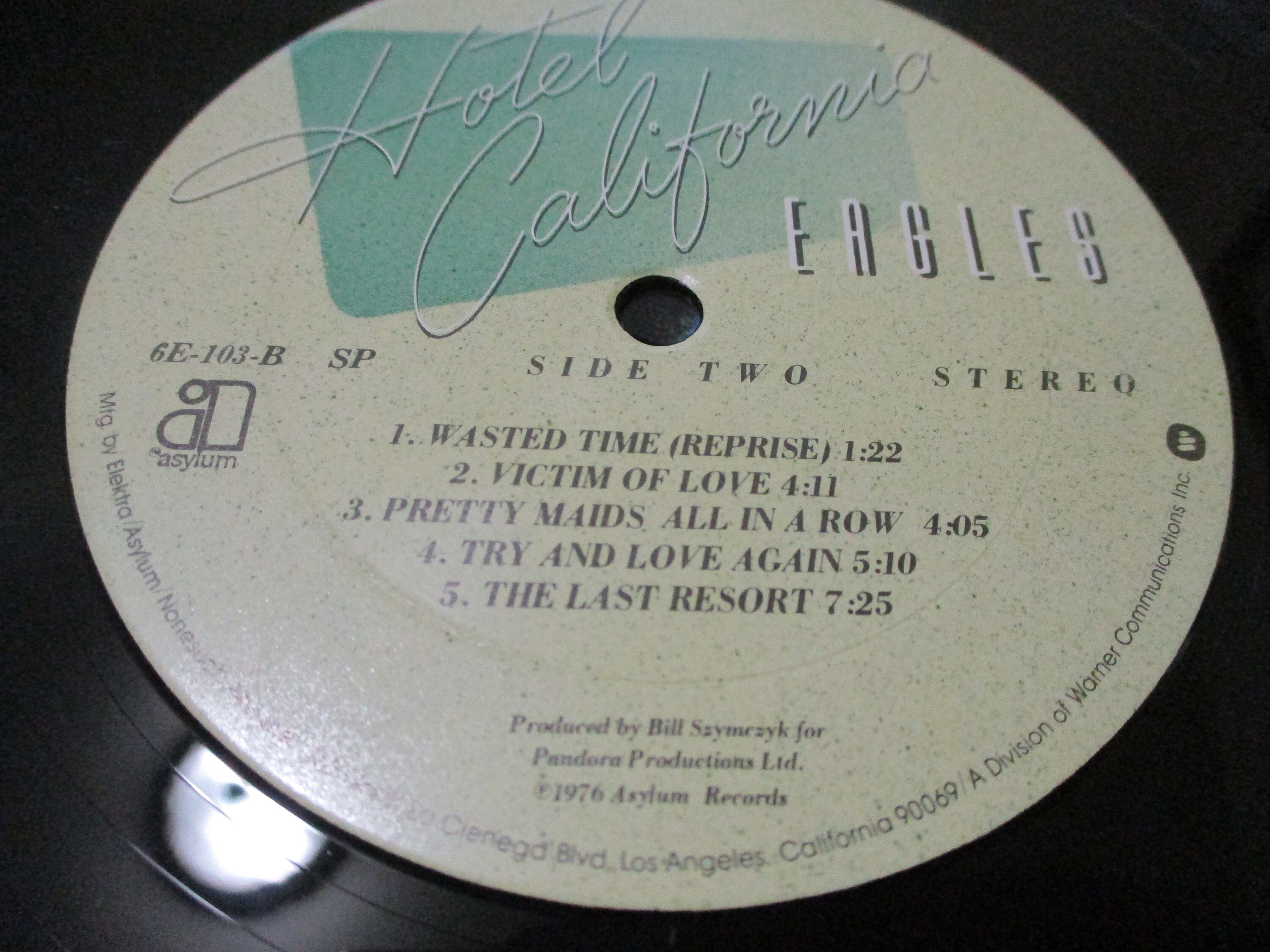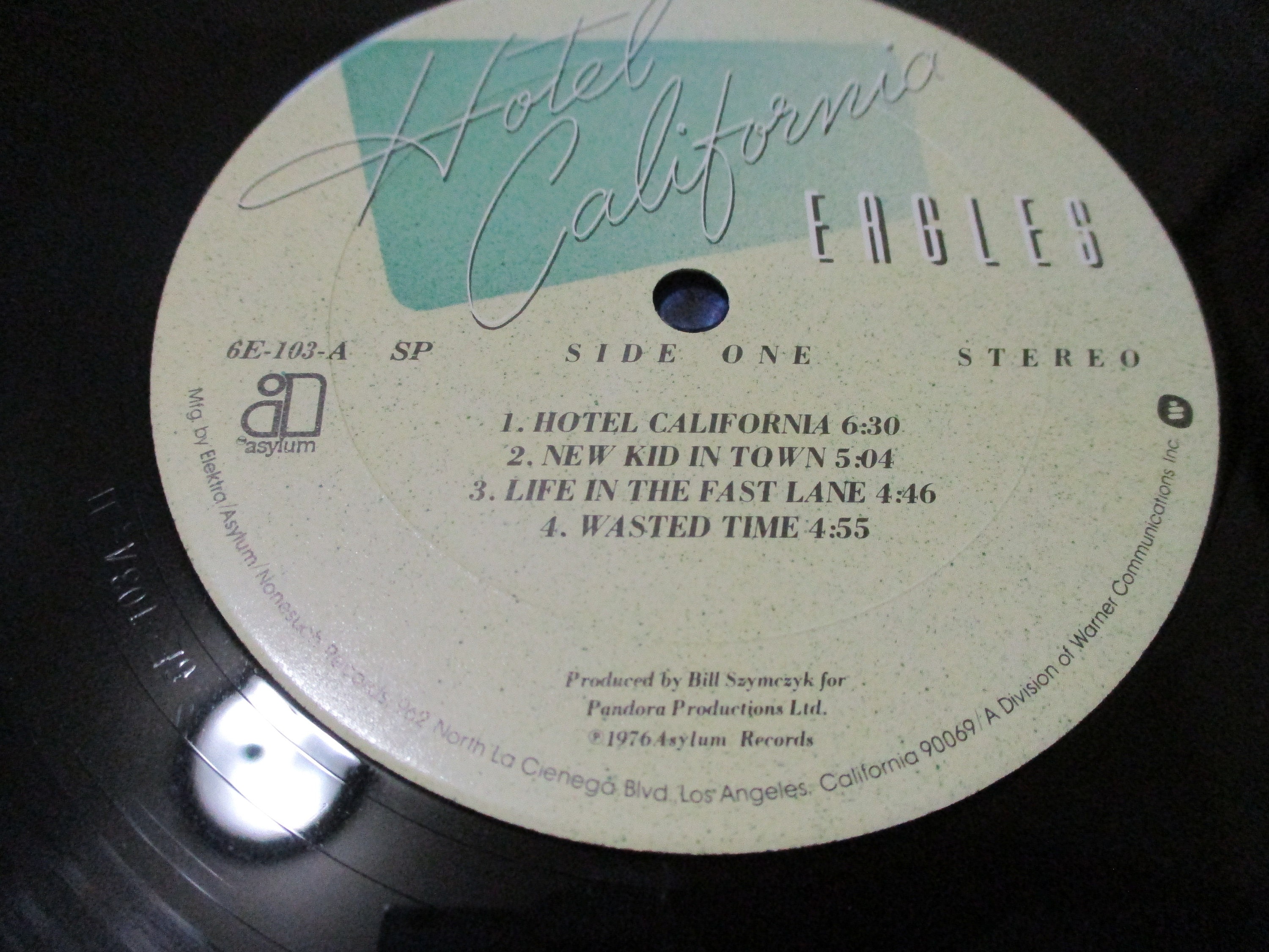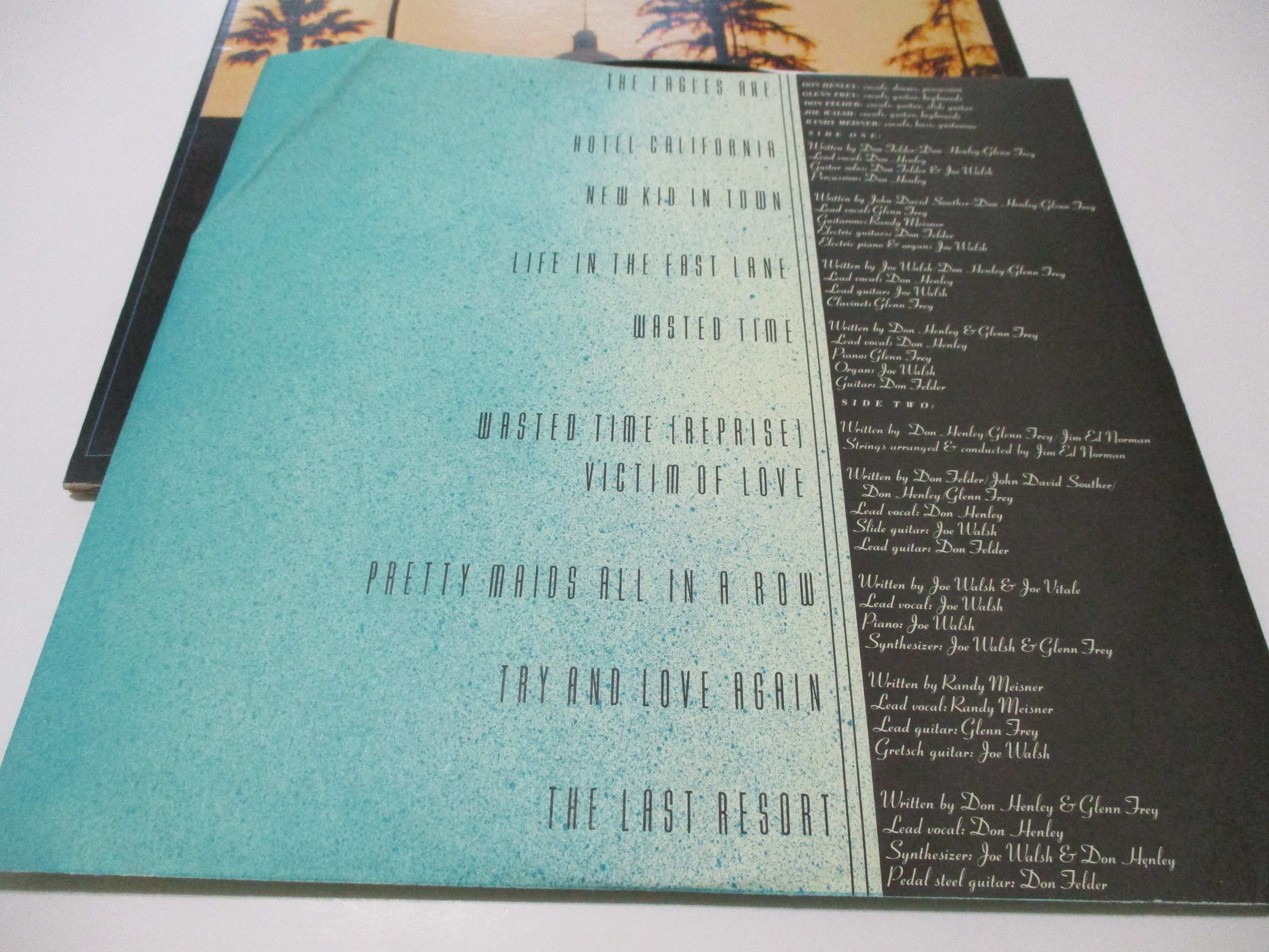 Vintage 1976 Vinyl LP Record The Eagles Hotel California Near Mint Condition. Original gate fold cover is in excellent condition and includes the original inner paper sleeve and the original poster. Record is Near Mint!! Original Pressing!! Tracks are as follows