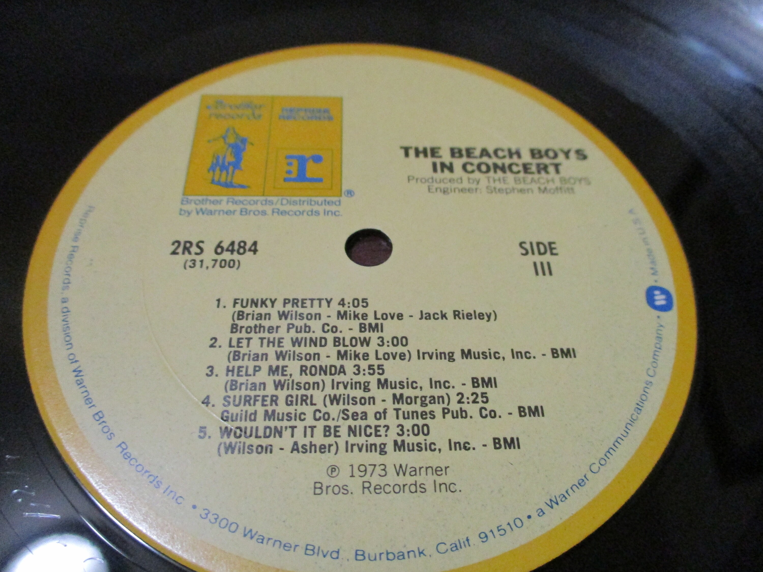 Vintage 1973 Vinyl LP Record The Beach Boys In Concert Two Record Set Excellent Condition. Original gate fold cover is in excellent condition and includes both inner paper sleeves. Both records are in excellent condition as well. Tracks are as follows