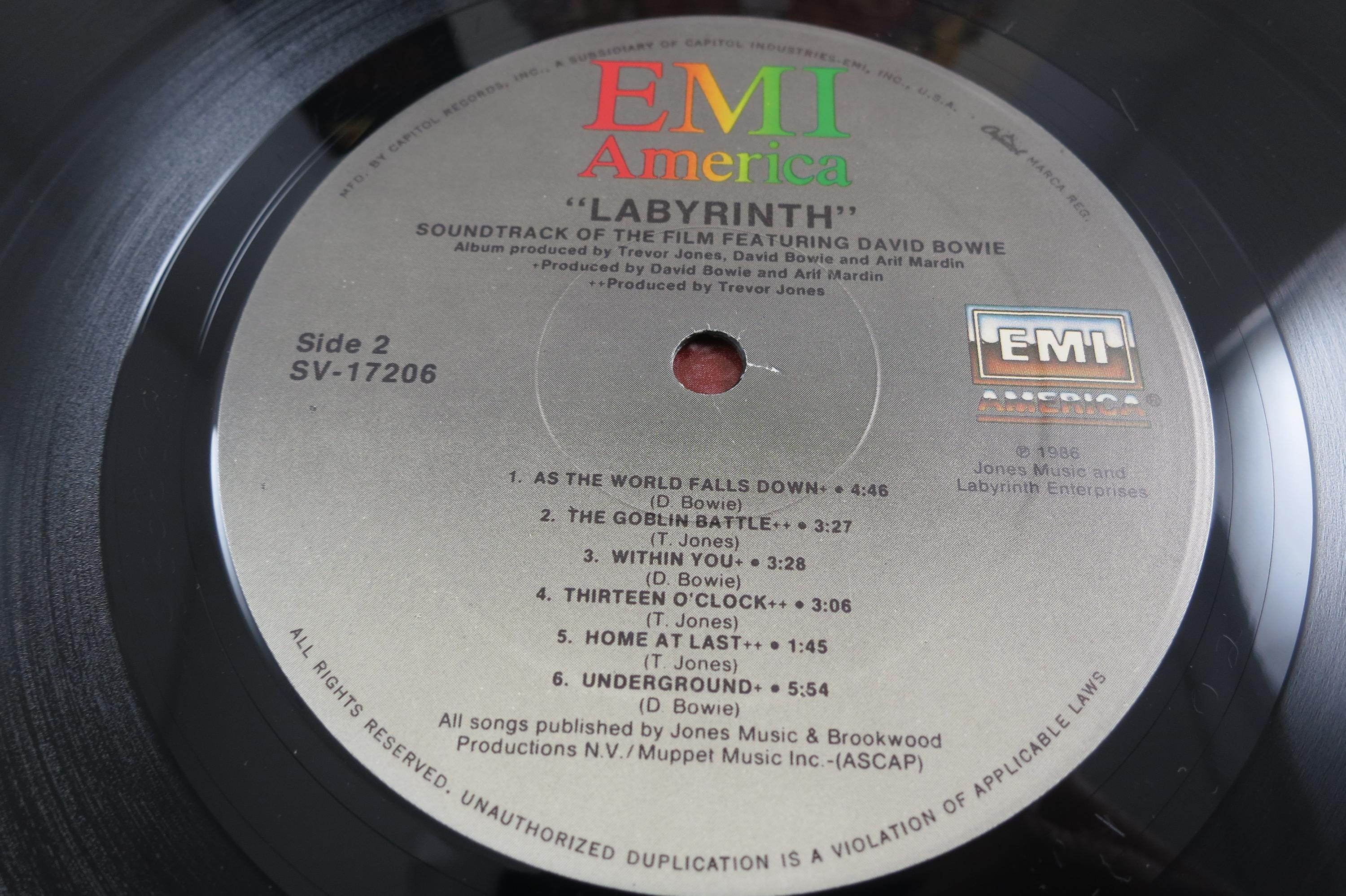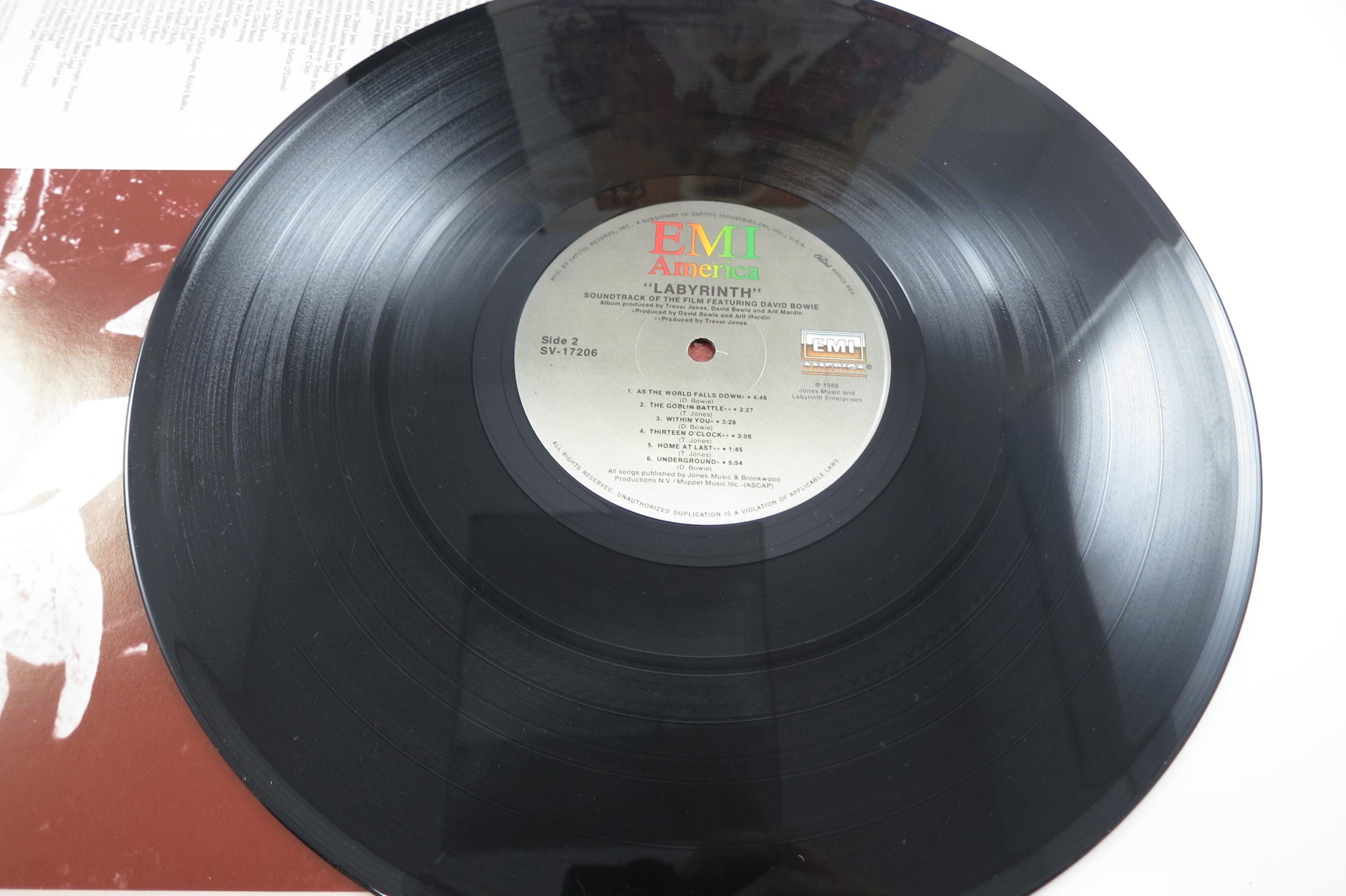 Vintage 1986 Vinyl LP Record Labyrinth Original Soundtrack Jim Henson David Bowie Near Mint Condition. Original cover is in excellent condition and includes the original inner paper sleeve. Graded excellent for a round punch top right of the cover. Record is Near Mint. Rare Soundtrack!! Tracks are as follows
