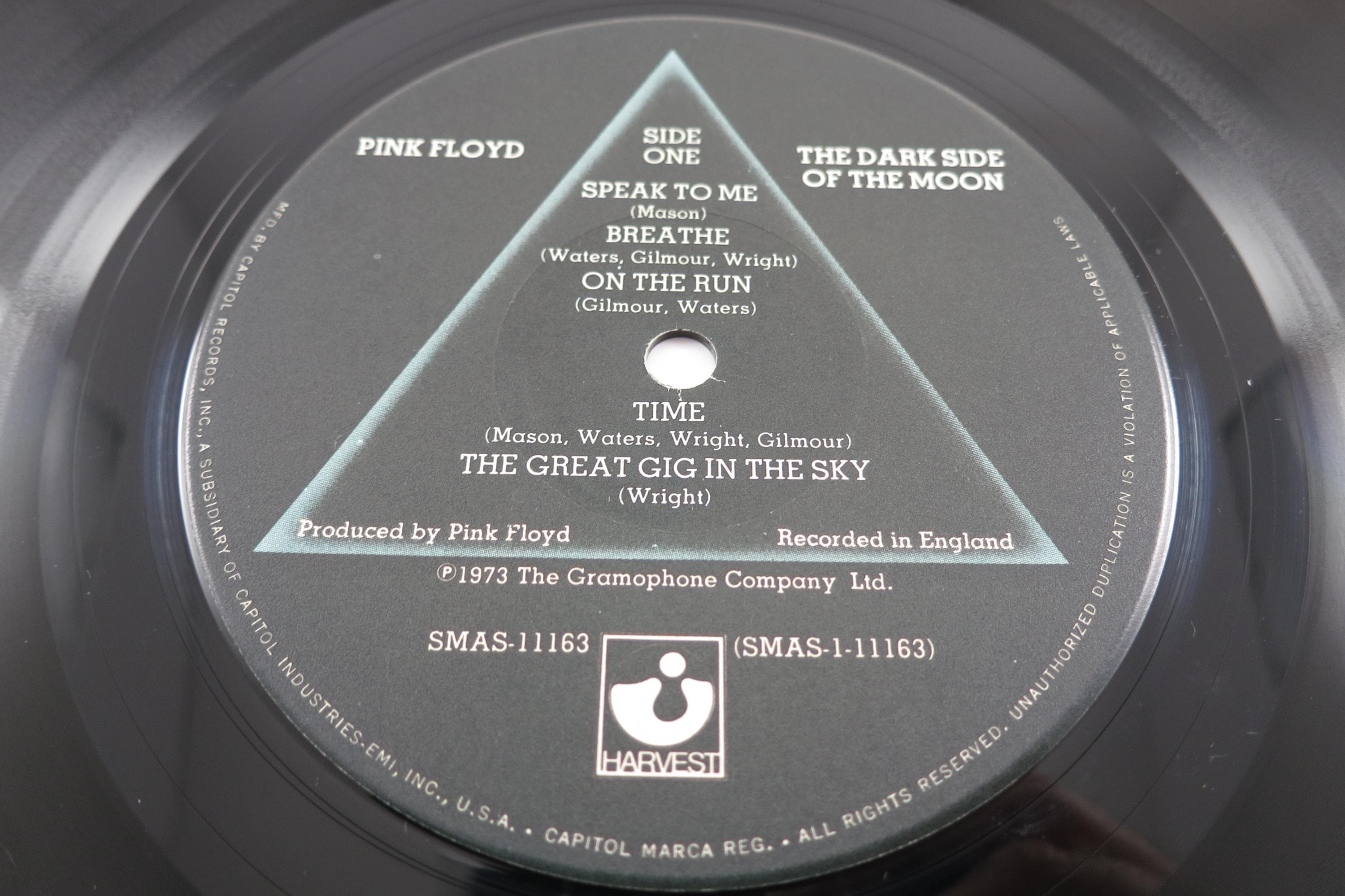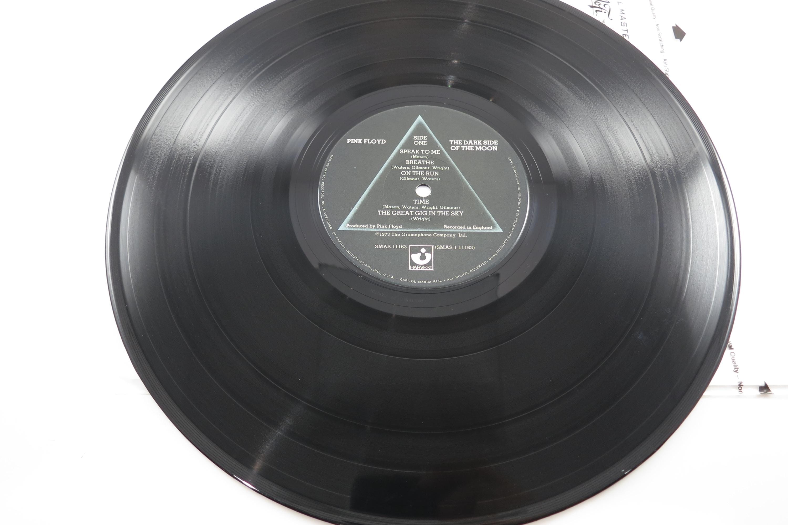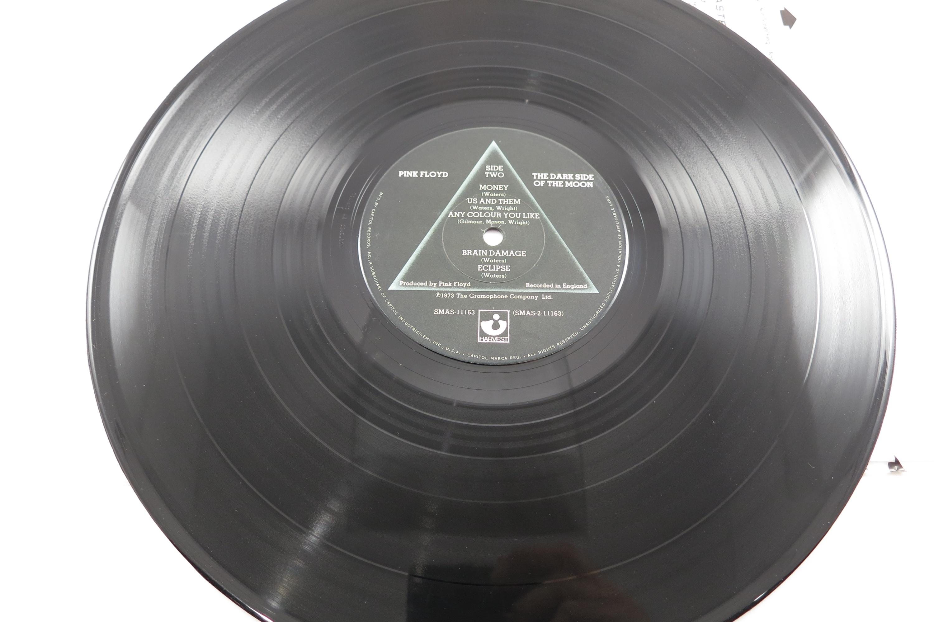 Vintage 1973 Vinyl LP Record Pink Floyd Dark Side of The Moon Excellent Condition w/ Both Posters. Original cover is in excellent condition and the record is excellent. Includes the original pink poster which is also in excellent condition. Also includes the original Green Poster, and the two original stickers!! Exceptional Copy! Tracks are as follows