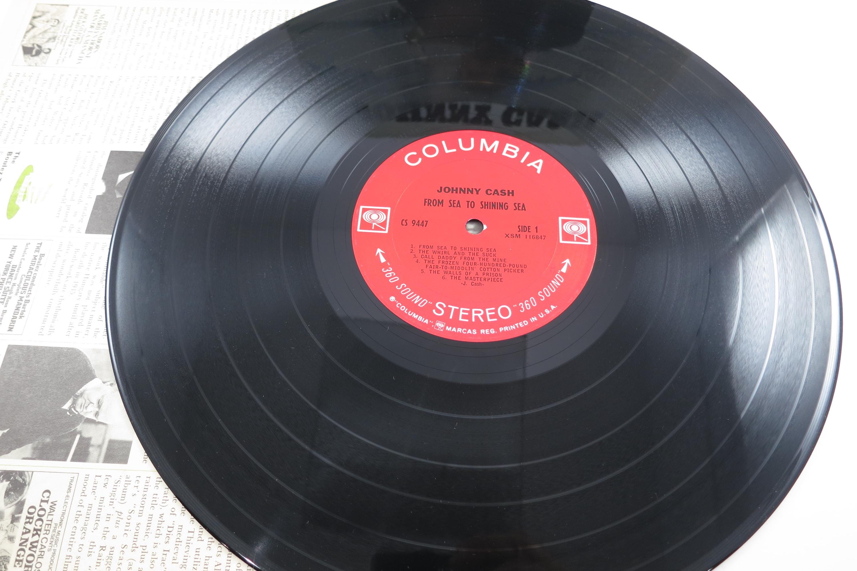 Vintage 1968 Vinyl LP Record From Sea to Shining Sea Johnny Cash Stereo Pressing. Original cover is in excellent condition and includes the original inner paper sleeve. Record is excellent as well. 360 Sound Stereo Pressing. Tracks are as follows