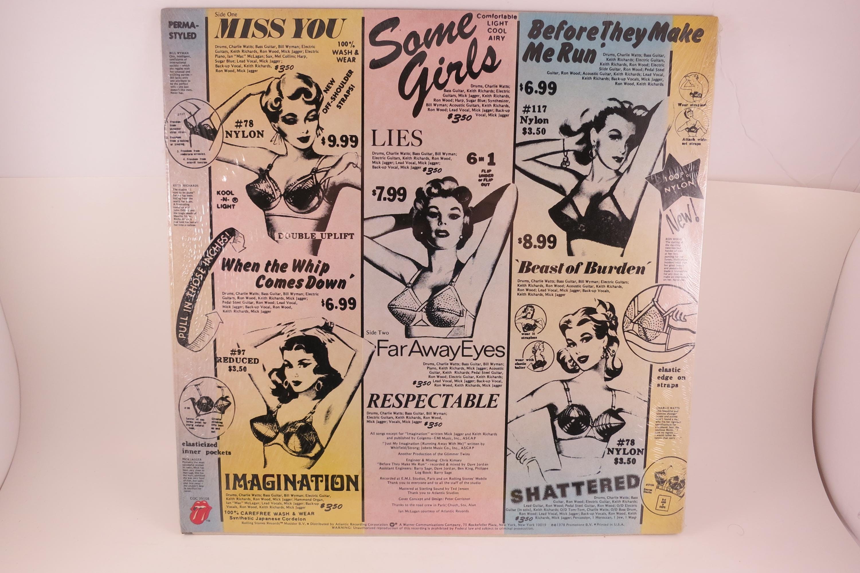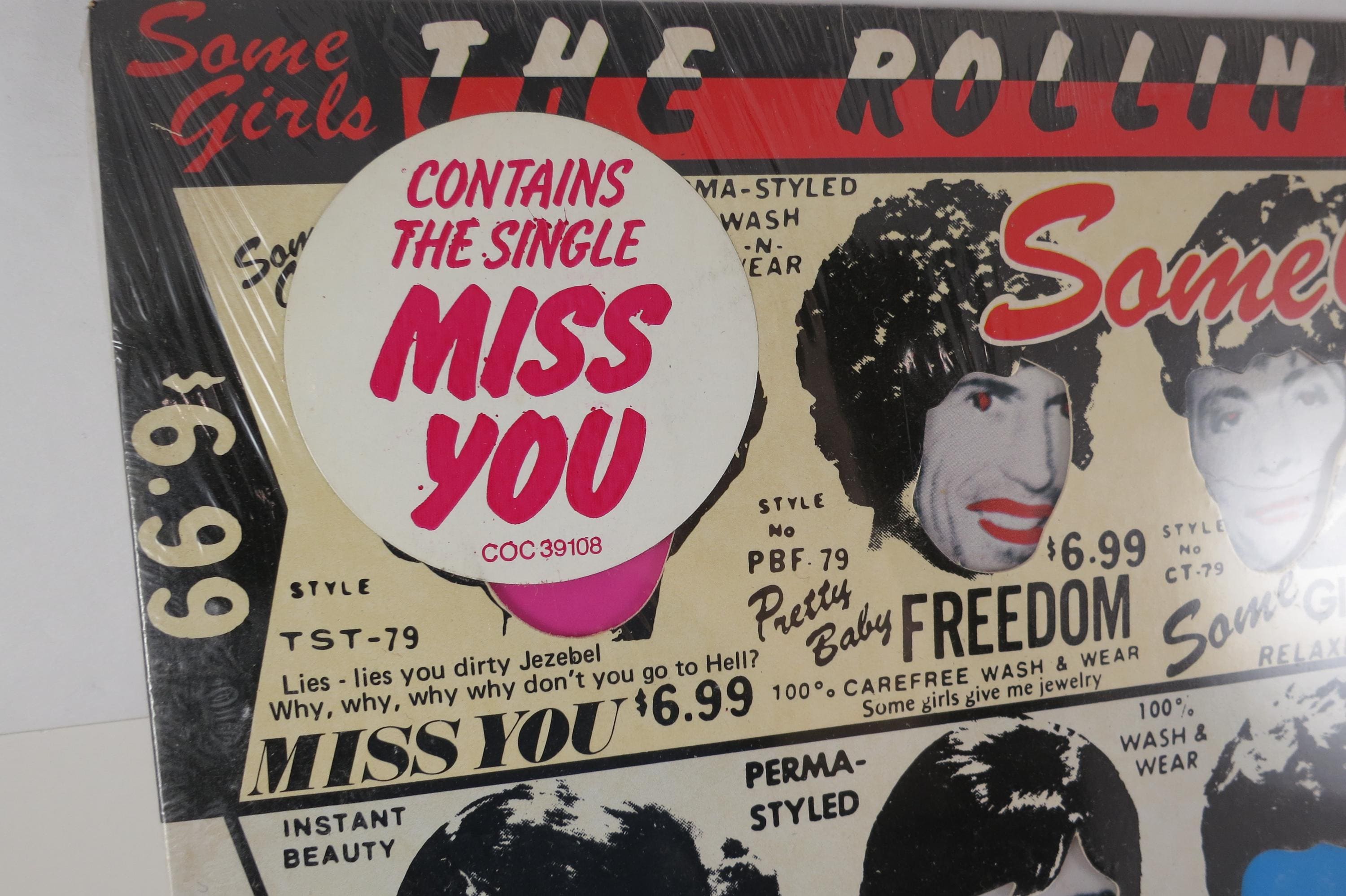 Vintage 1978 Rolling Stones 'Some Girls' LP Vinyl Record: Diecut Cover Shrink Hype Sticker