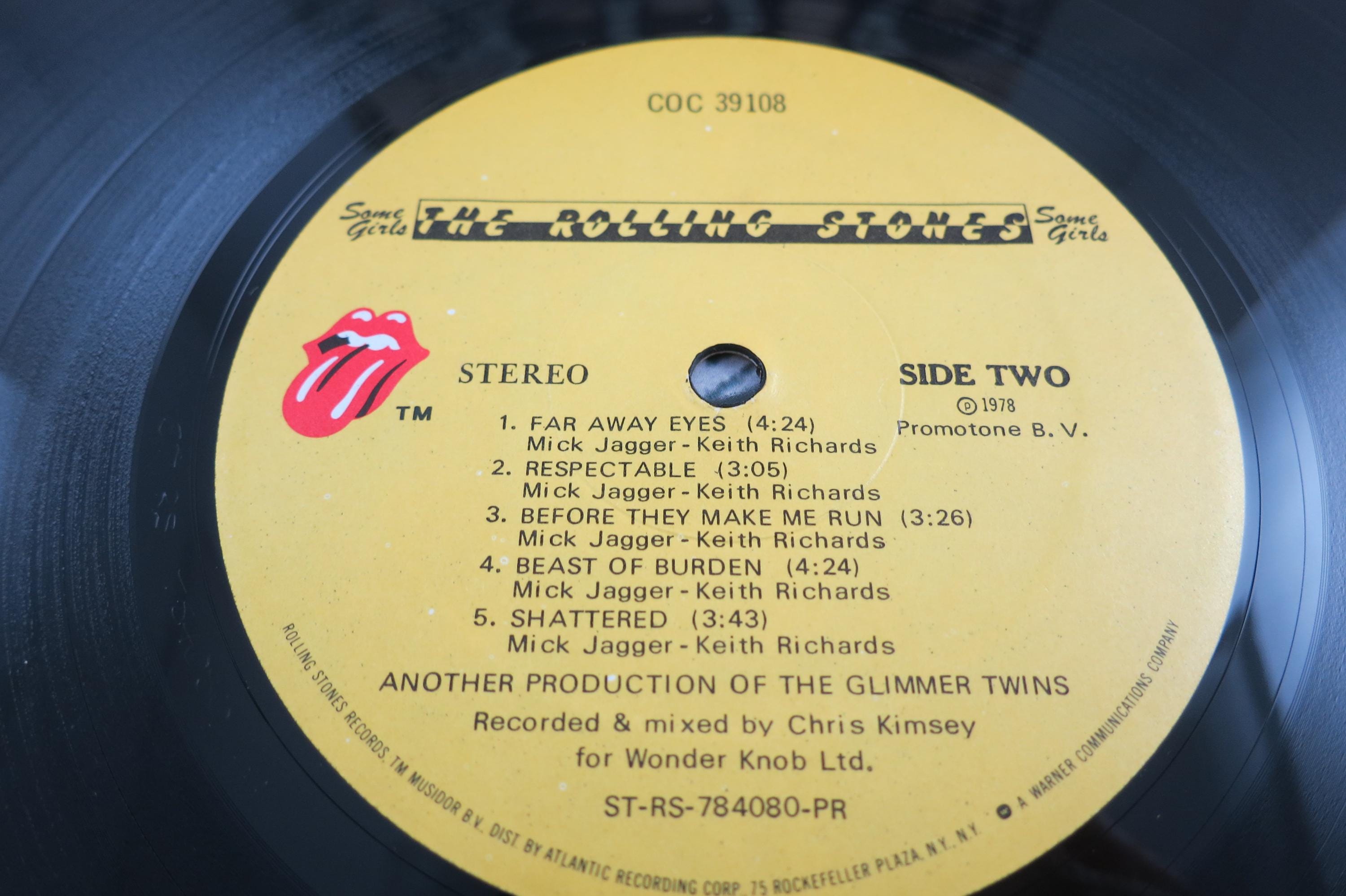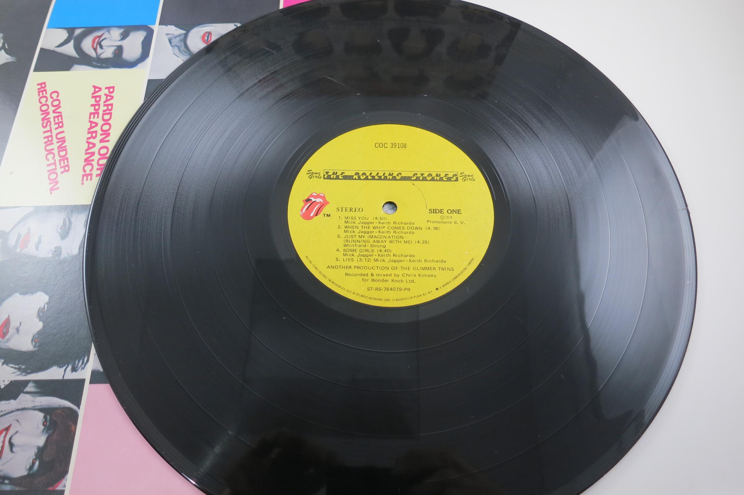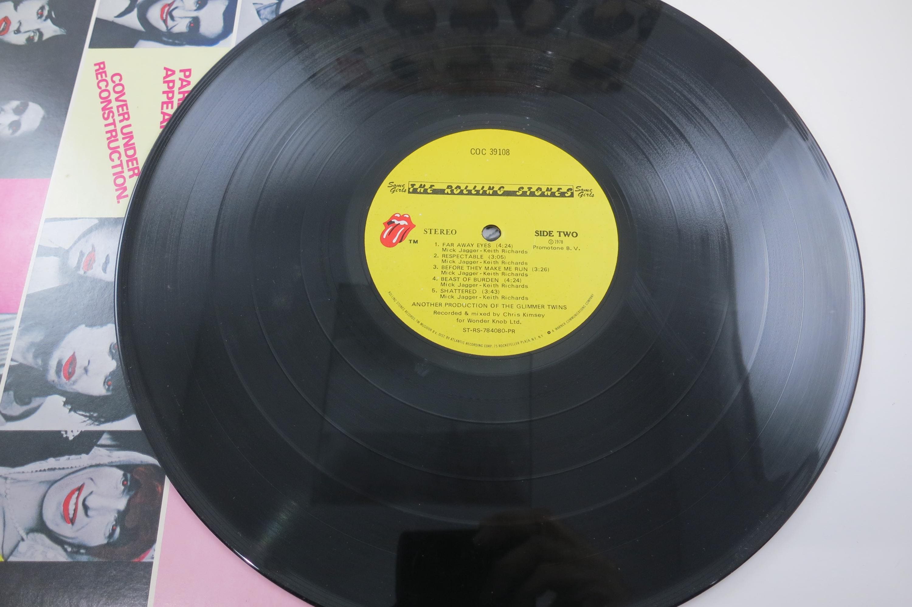 Vintage 1978 LP Record The Rolling Stones Some Girls. Original cover is in excellent condition and includes the inner sleeve, factory shrink wrap and hype sticker. Record is excellent. Tracks are as follows