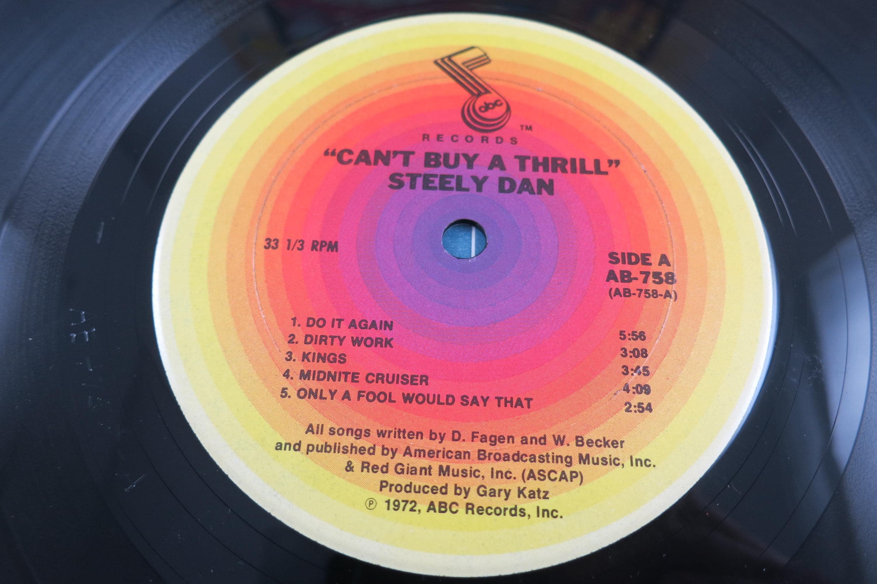 Vintage 1974 Vinyl LP Record Steely Dan Can't Buy A Thrill In Shrink. Original cover is In excellent plus condition and includes the inner paper sleeve and factory shrink wrap. This is an early gate fold cover pressing. Record is excellent plus and plays perfect. A very nice example! Tracks are as follows