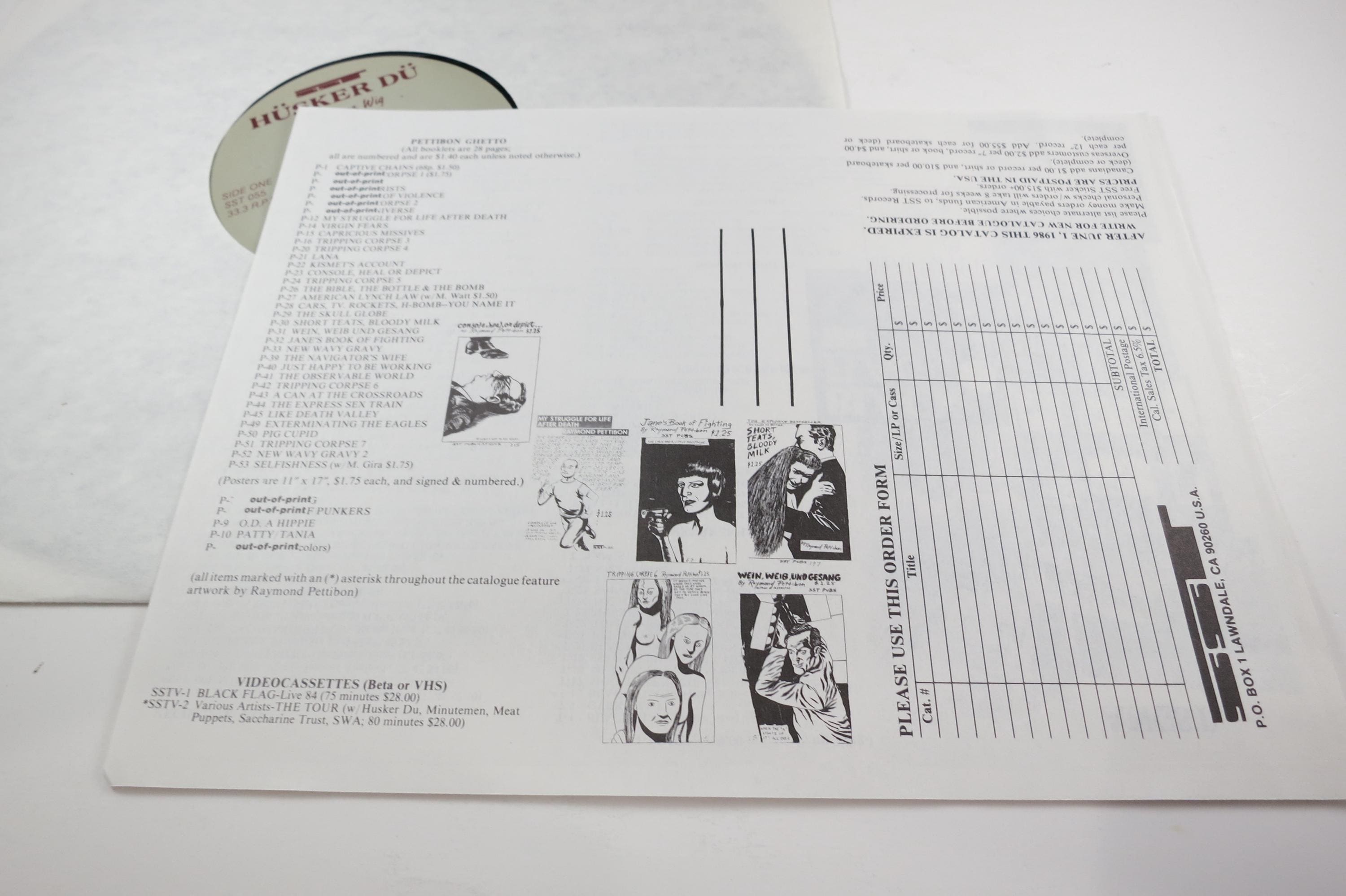 Original cover is in Near Mint condition and includes the inner paper sleeve, lyric sheet and the SST Merchandise form. Record is Near Mint and is Brown Translucent Vinyl. Fabulous Copy of this record! Tracks are as follows