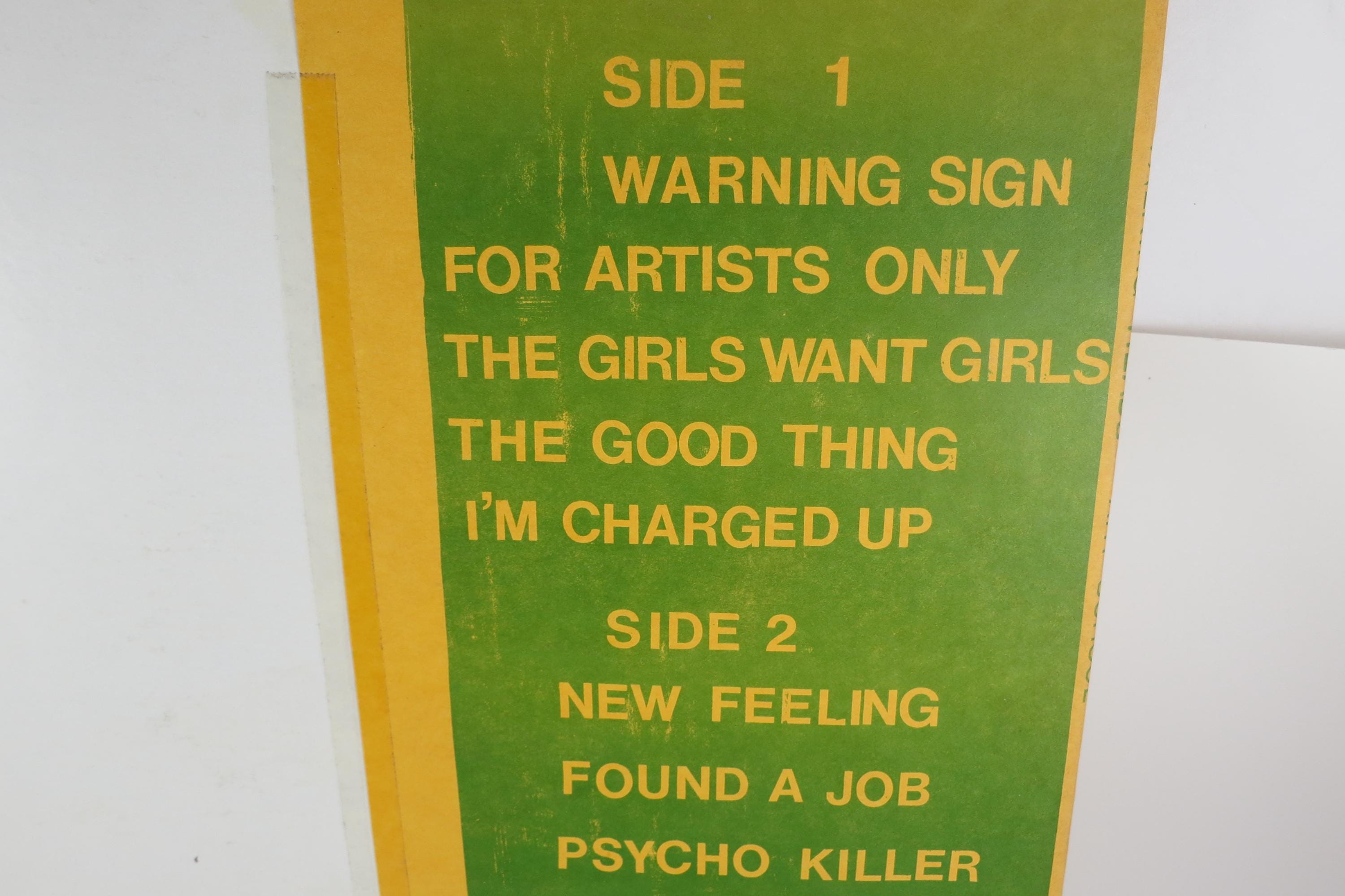 Vintage 1979 Talking Heads Vinyl LP: Art School Yellow Green Splatter Live Release.