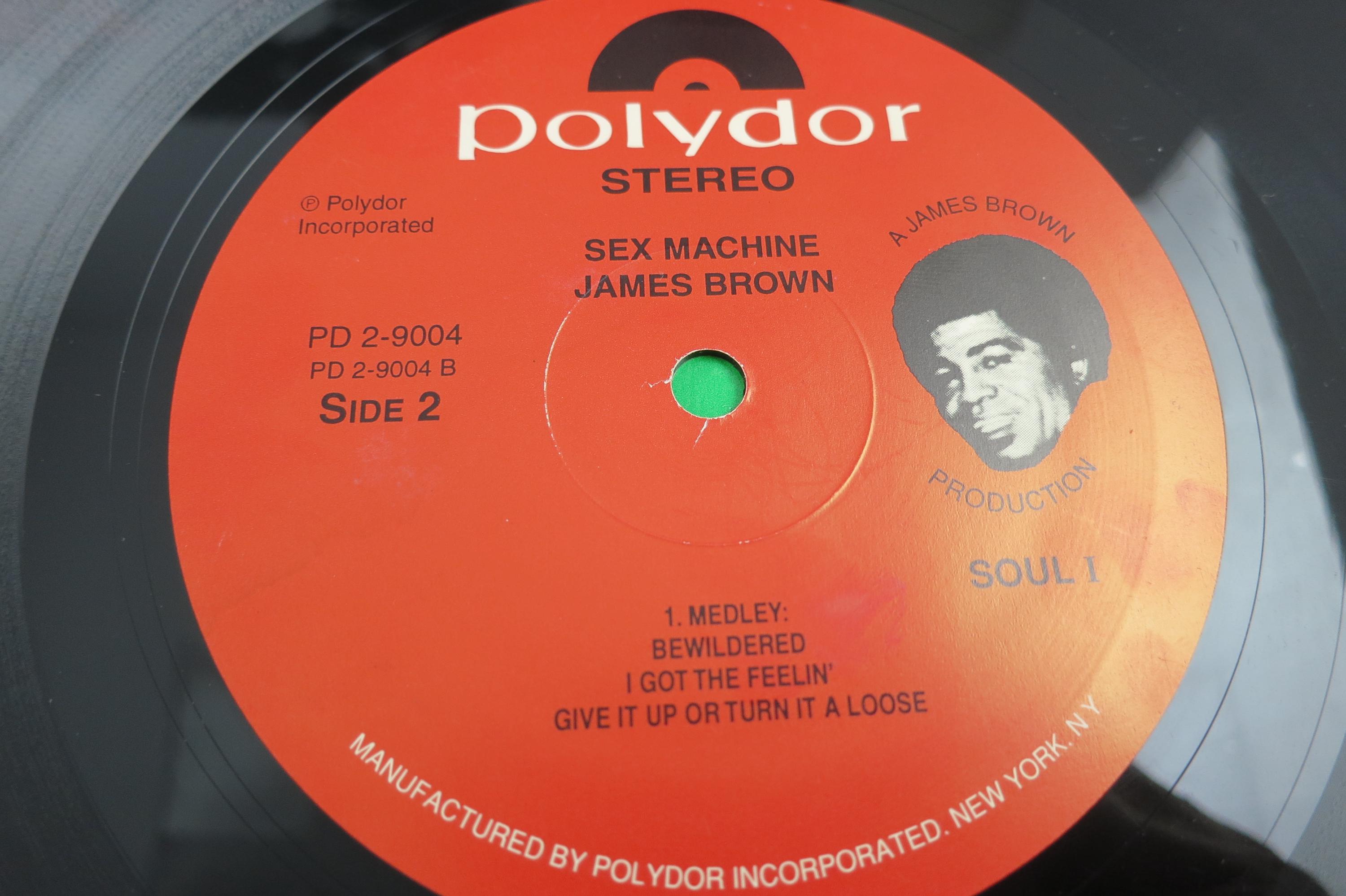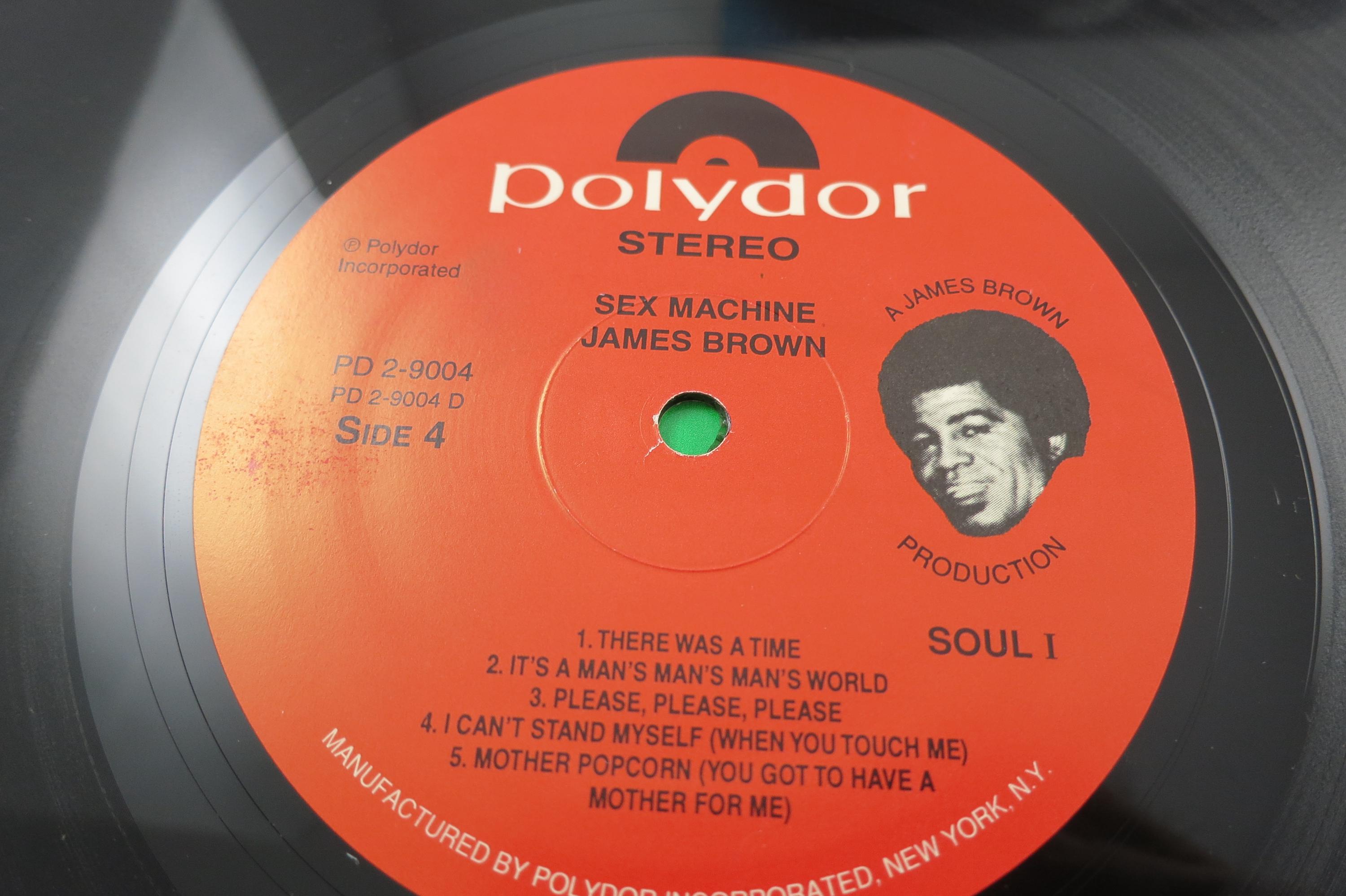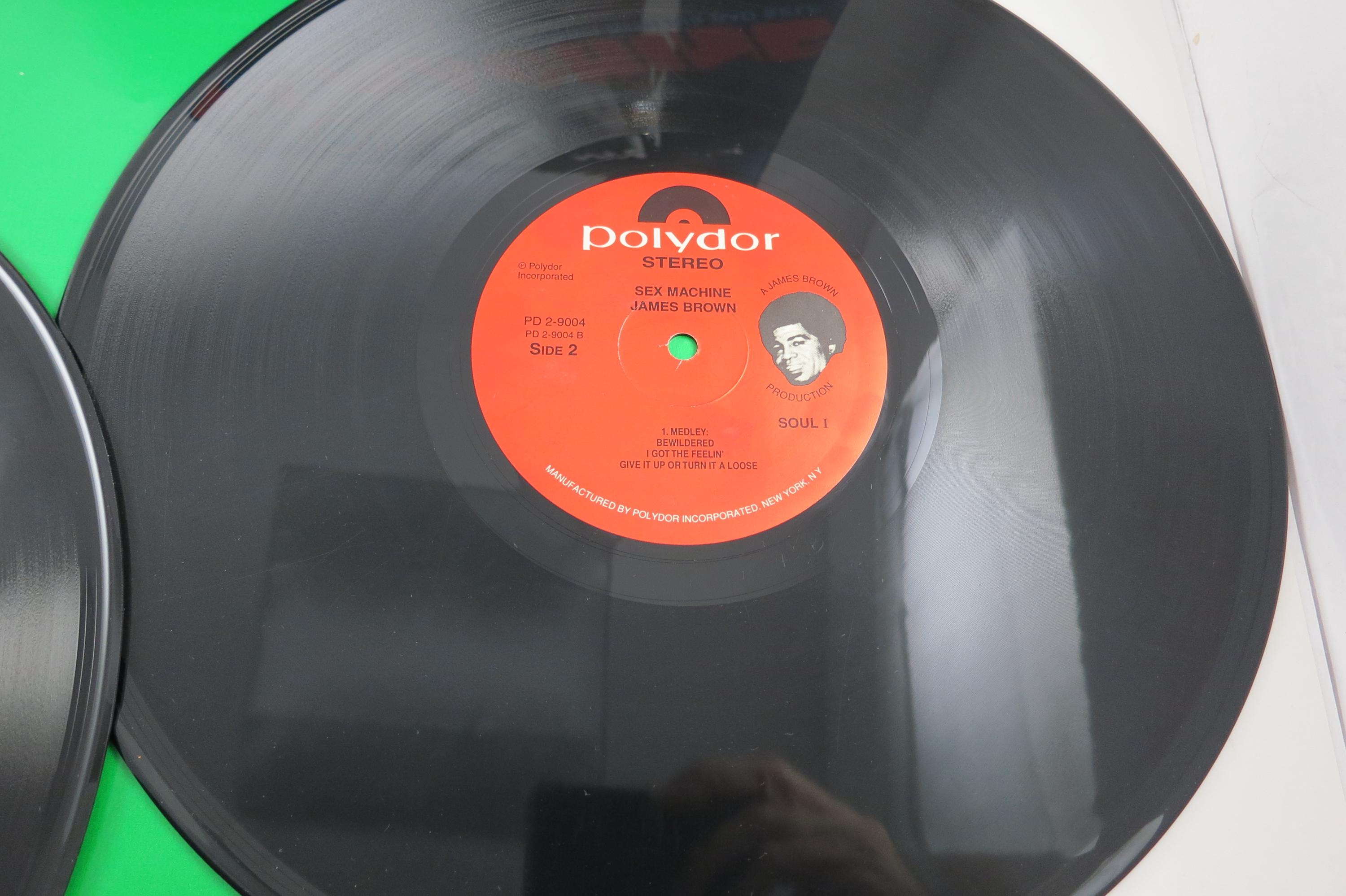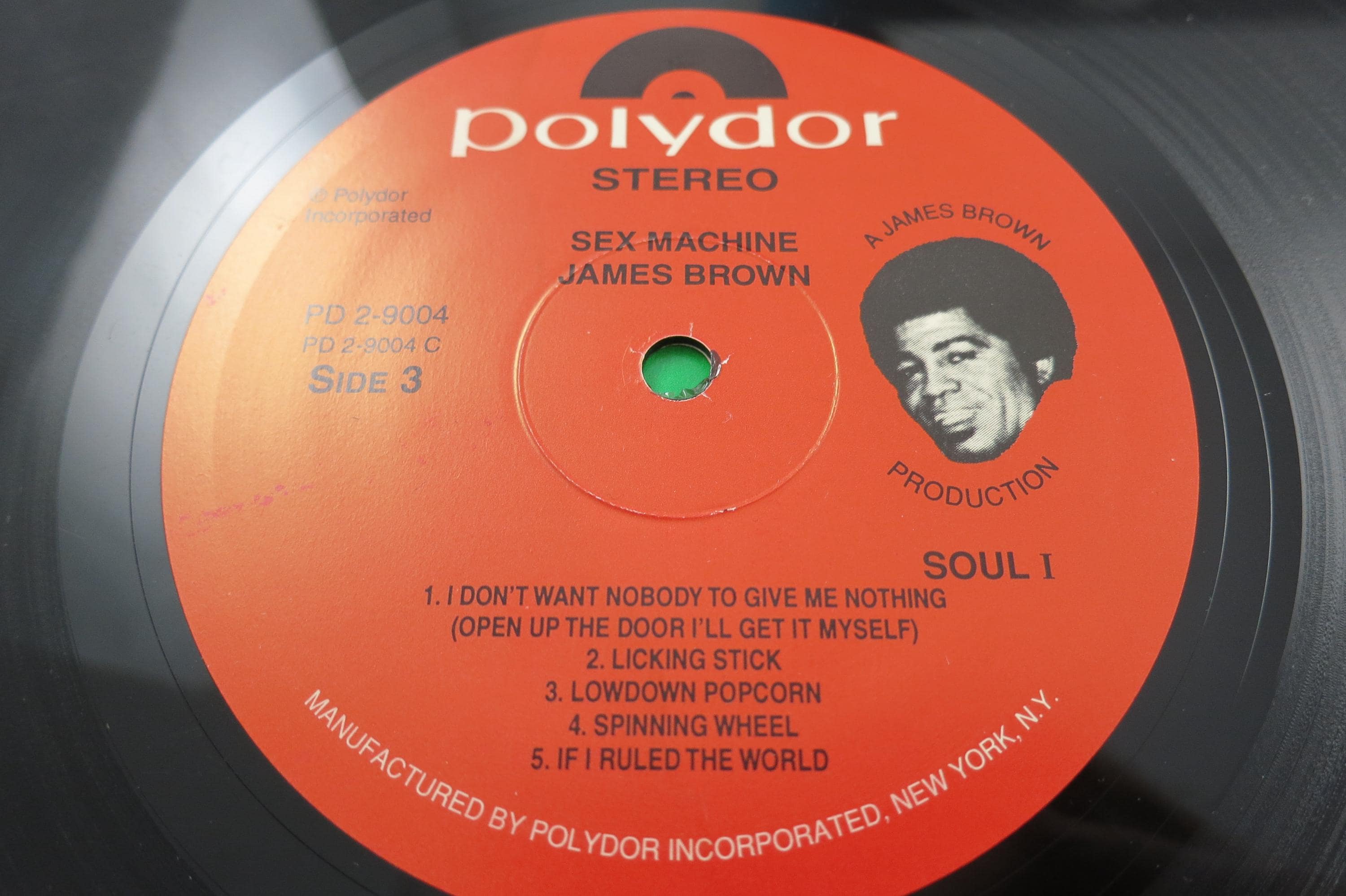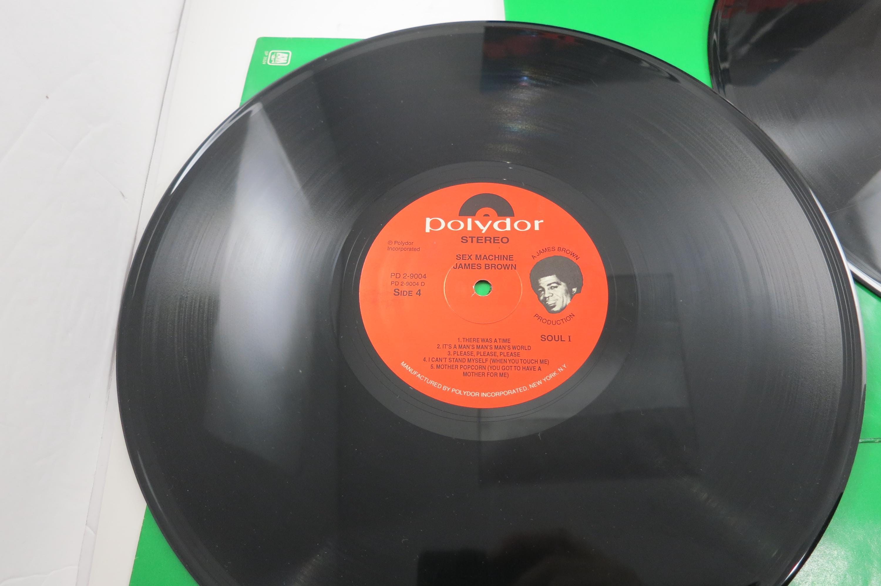 Vintage 1977 Vinyl LP Record Set Sex Machine James Brown Excellent Condition. Original gate fold cover is in POOR condition and includes the inner paper sleeves. Cover is wavy from old water damage. Records are both excellent with light marks. Tracks are as follows
