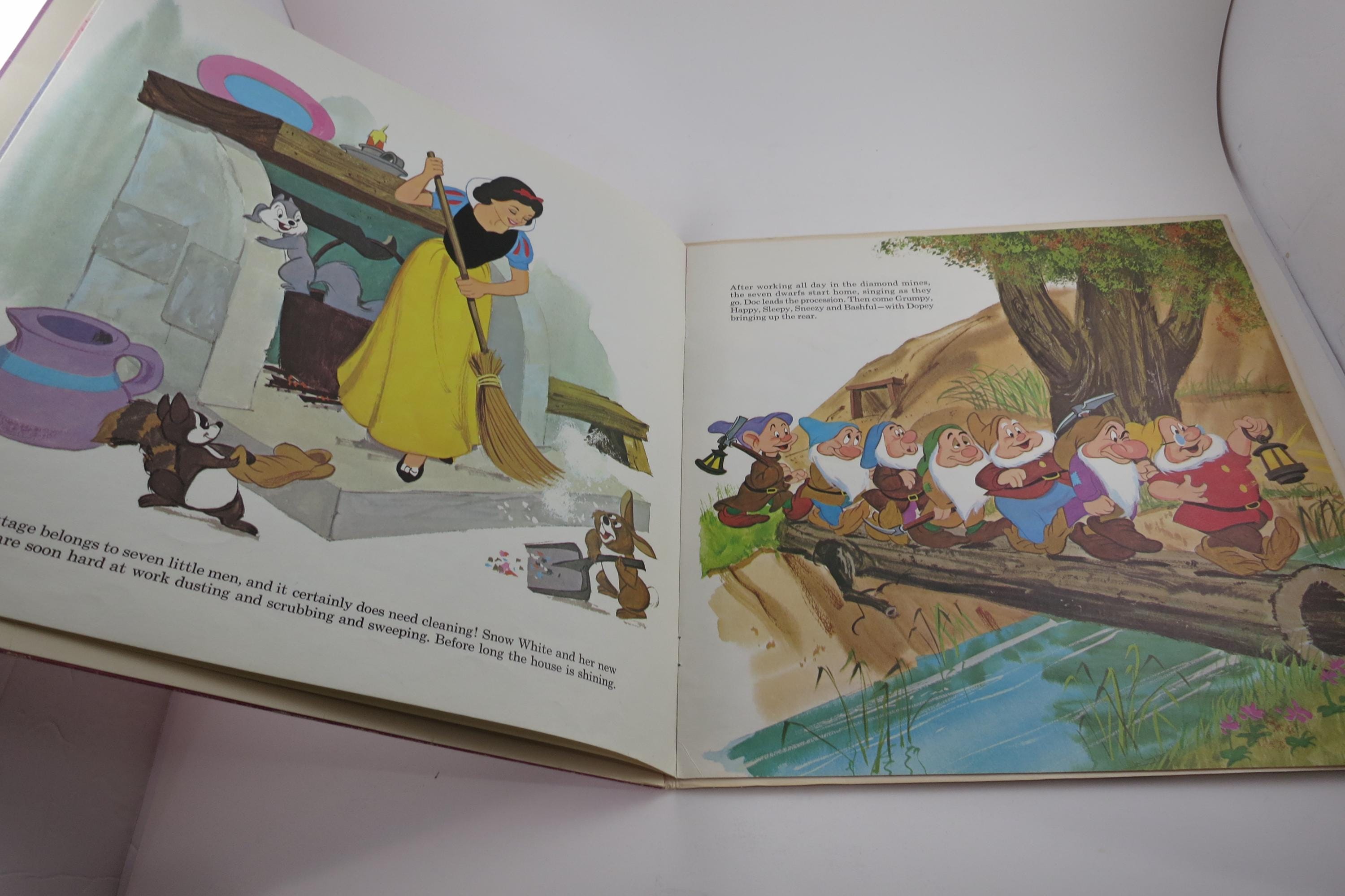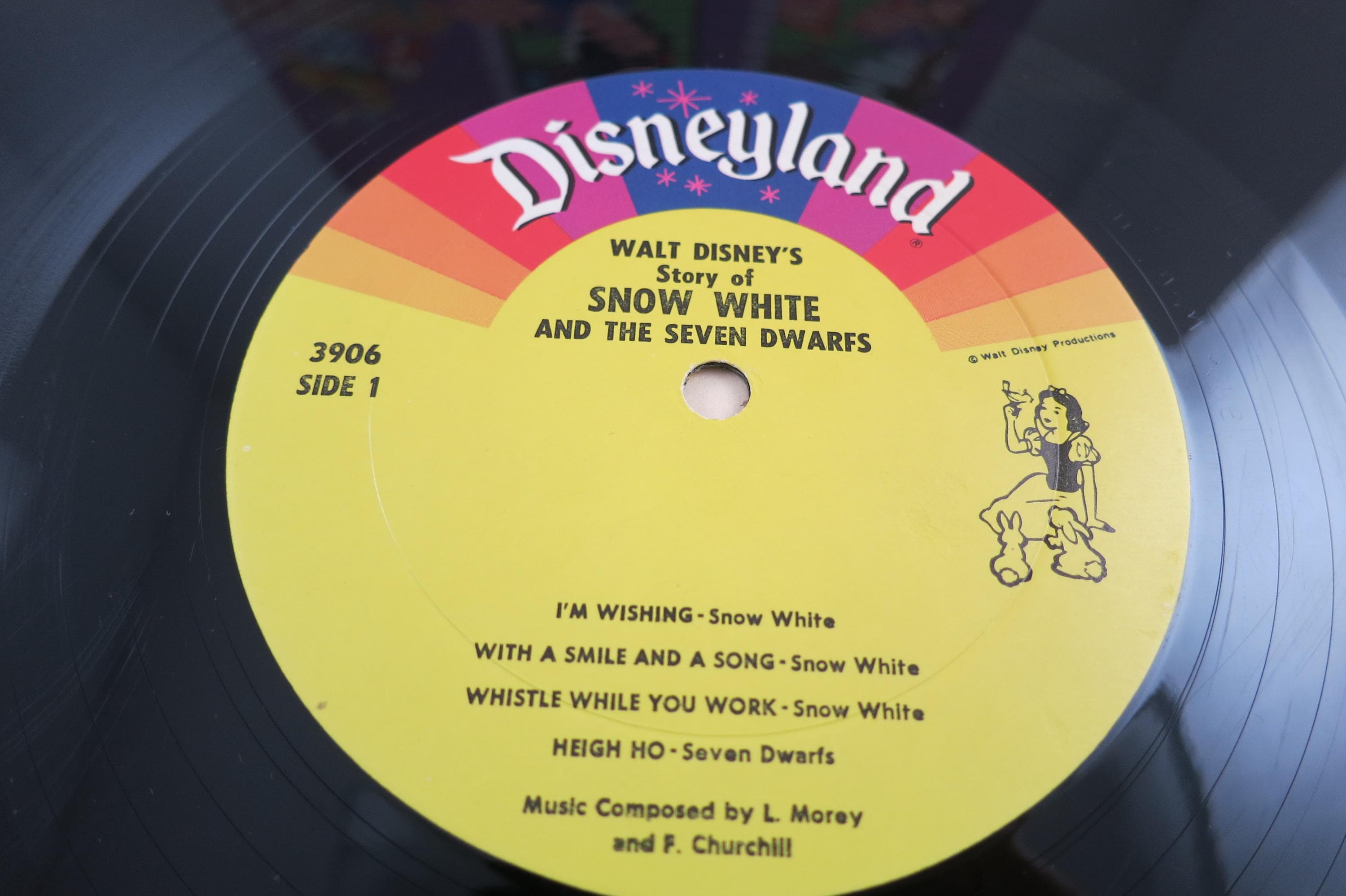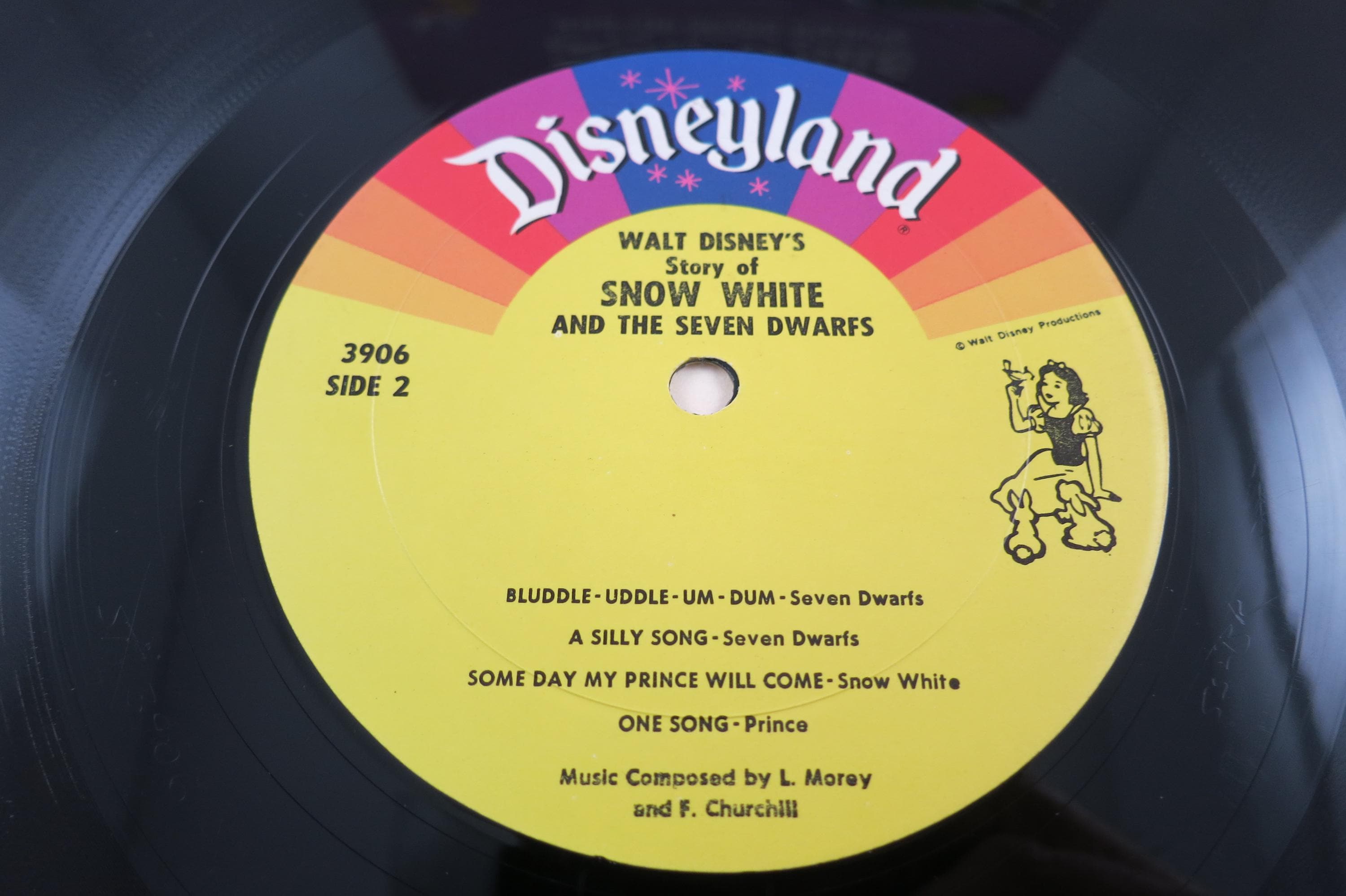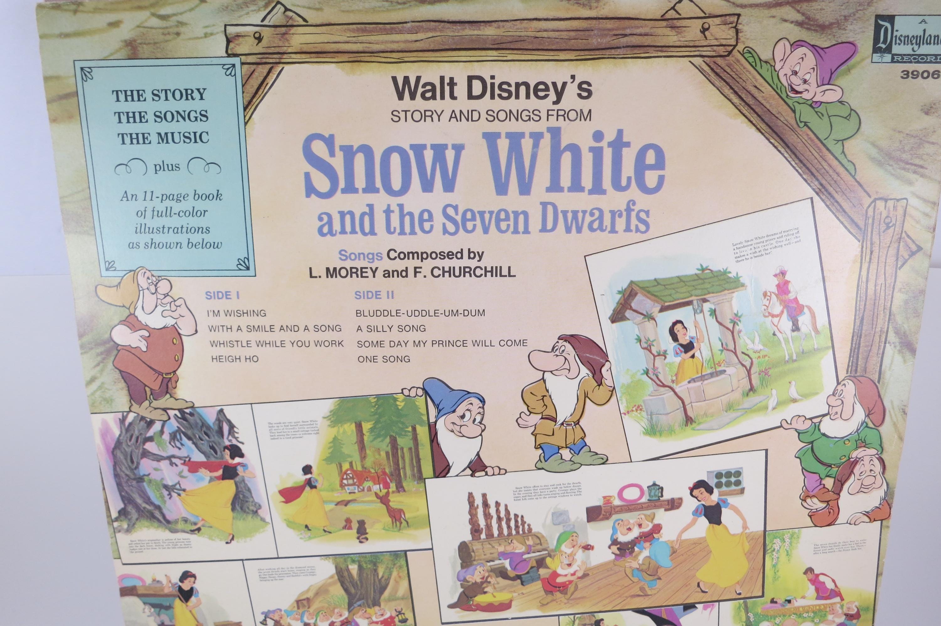 Vintage 1969 Vinyl LP Children's Record Walt Disney Snow White and the Seven Dwarfs with Picture Book. Original gate fold cover is in excellent condition and includes the inner paper sleeve, as well as the original 11 page picture book. Record is fair with scuffs and marks. Tracks are as follows