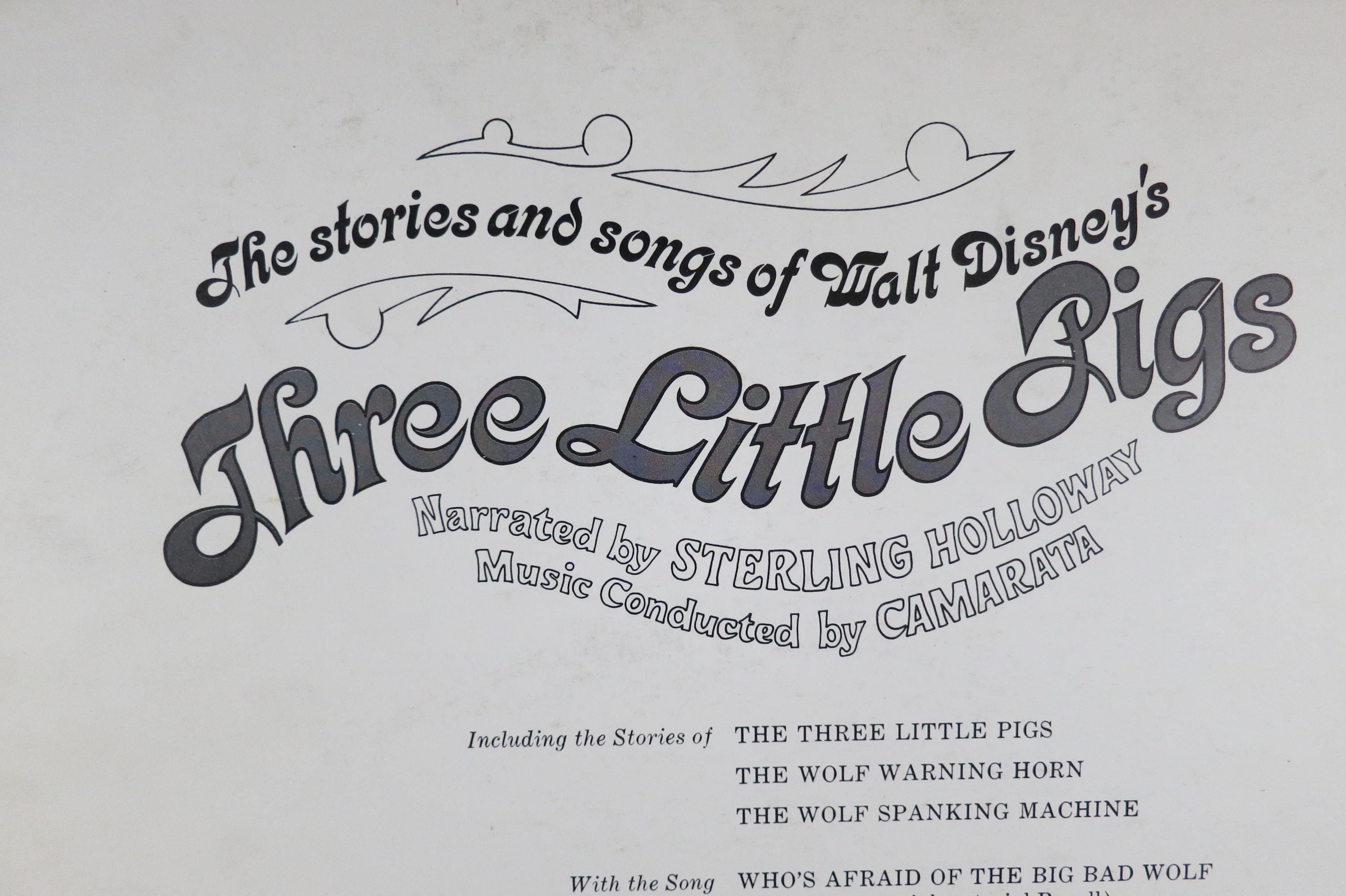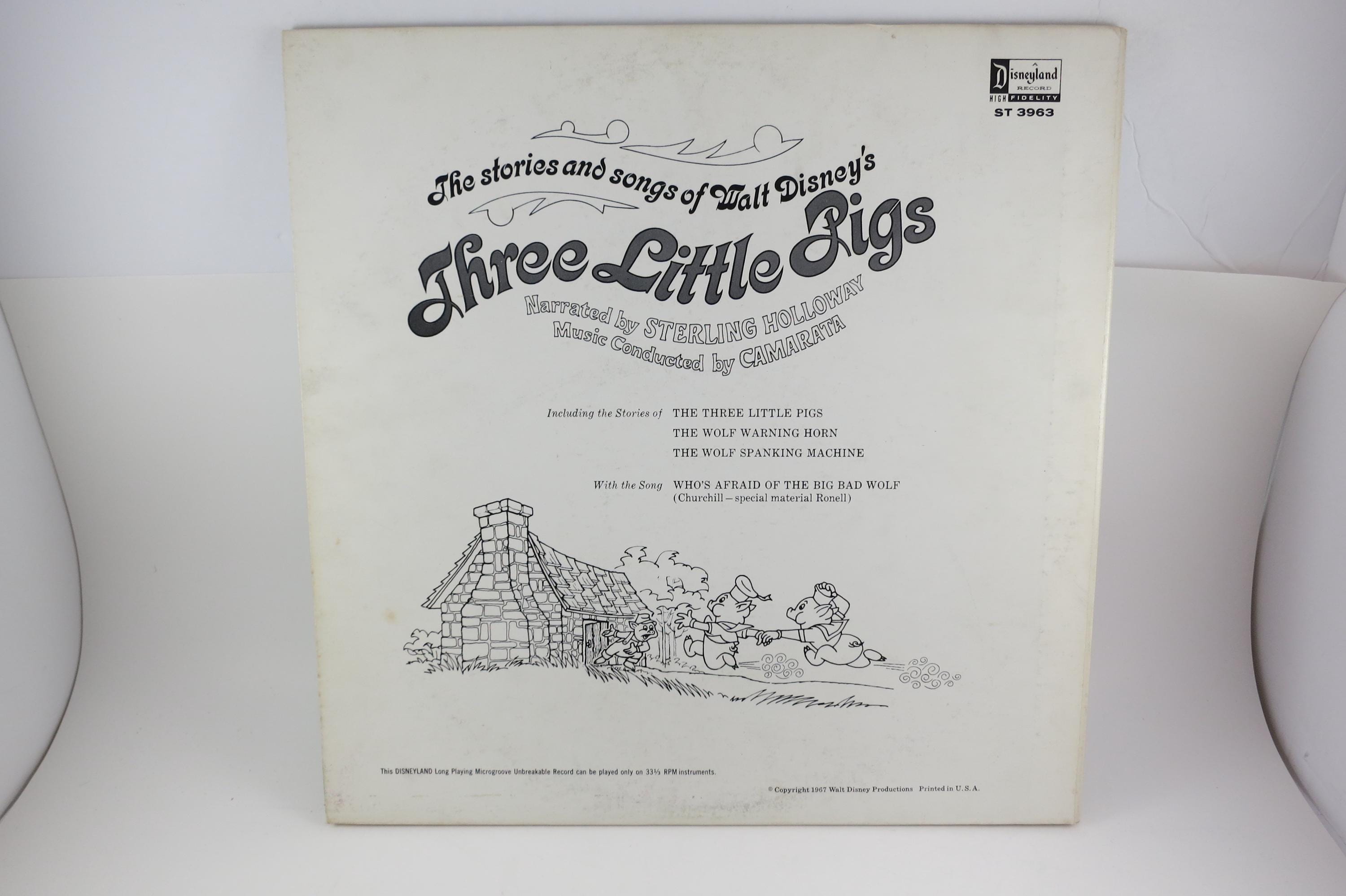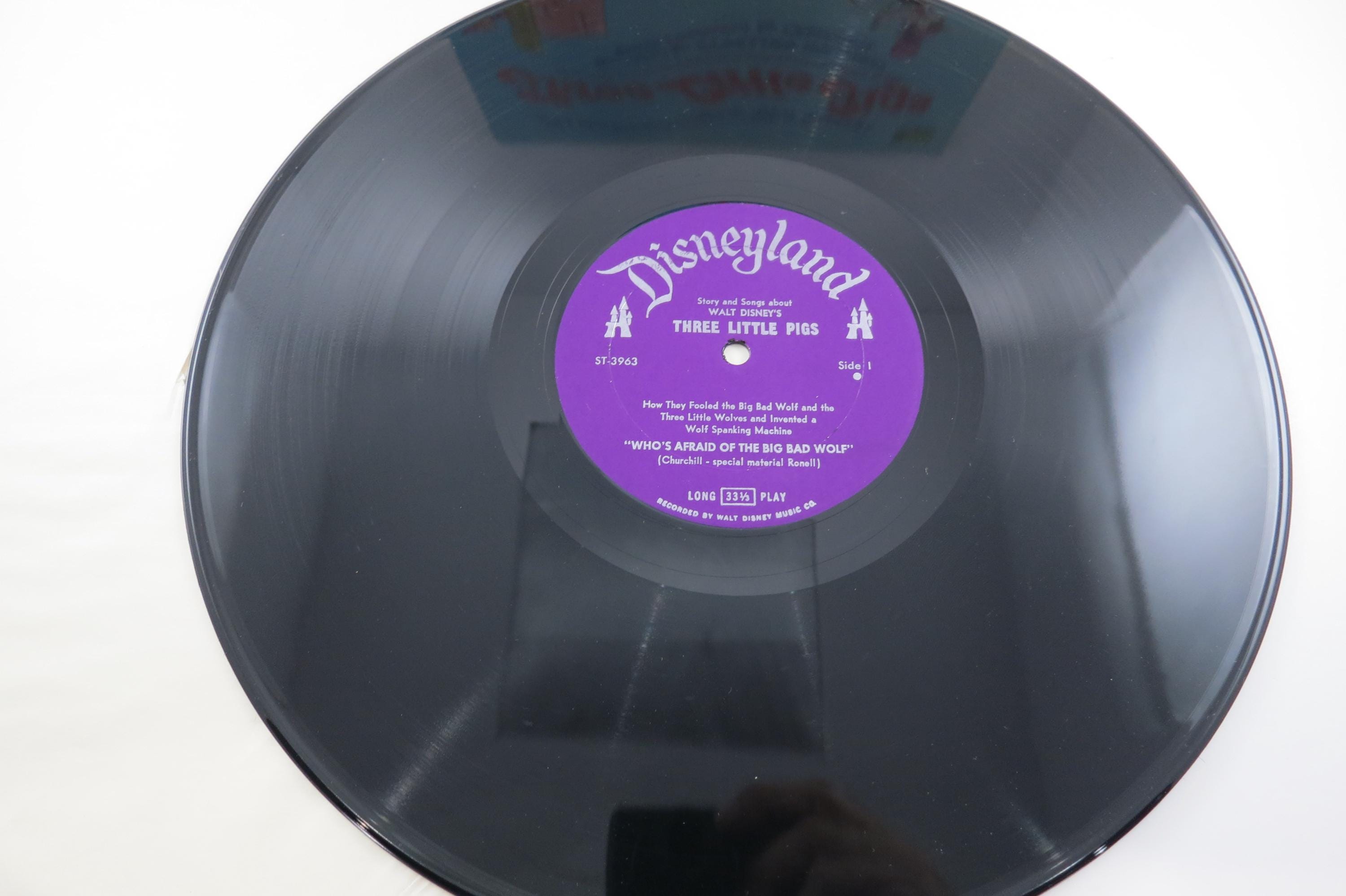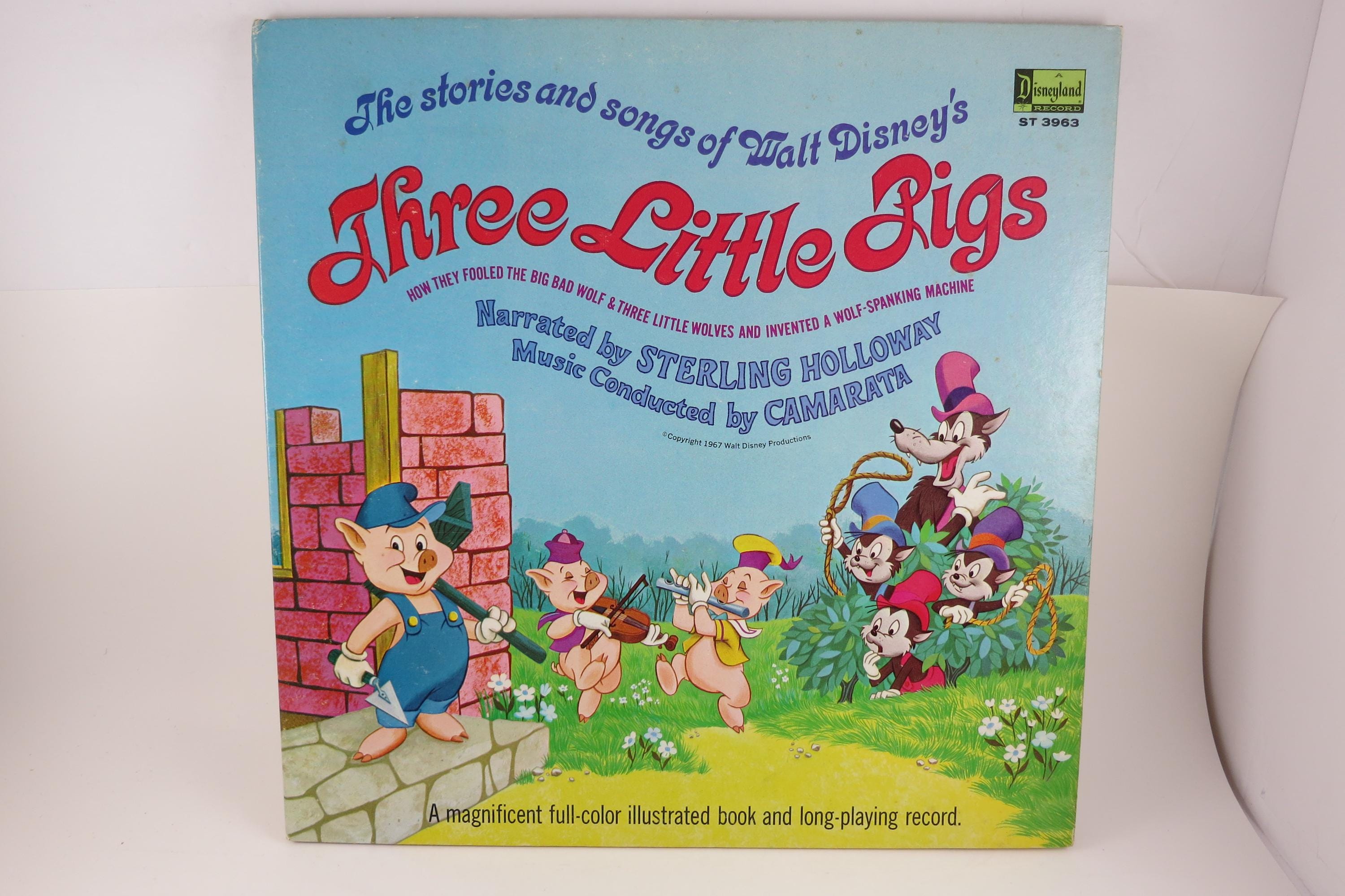 Vintage 1967 Children's LP Record Three Little Pigs Disneyland Records With Color Illustrated Book Excellent Condition. Original cover is in excellent condition and includes the full color picture book. Record is excellent as well. Great gift or addition to any collection. Tracks are as follows