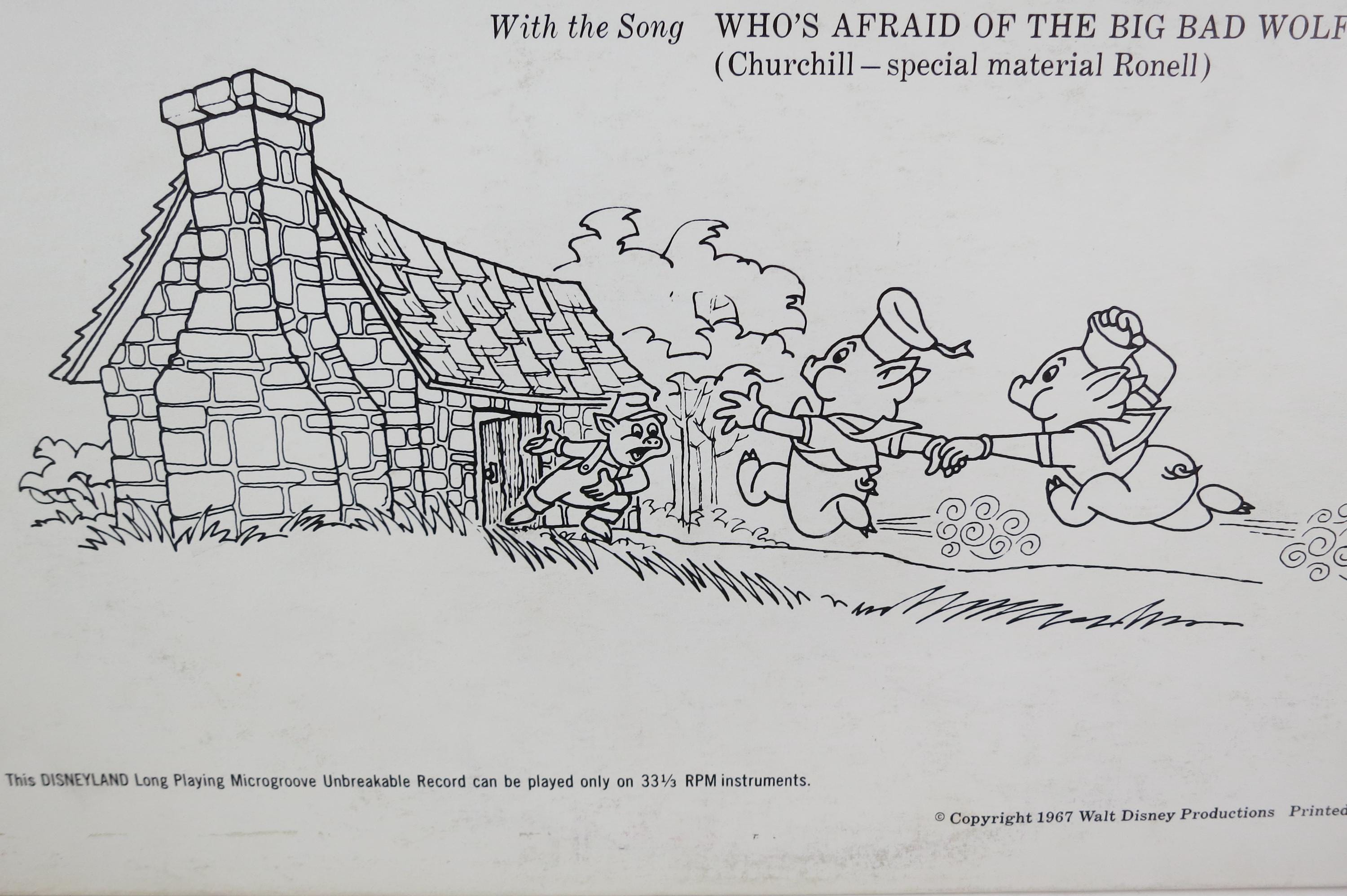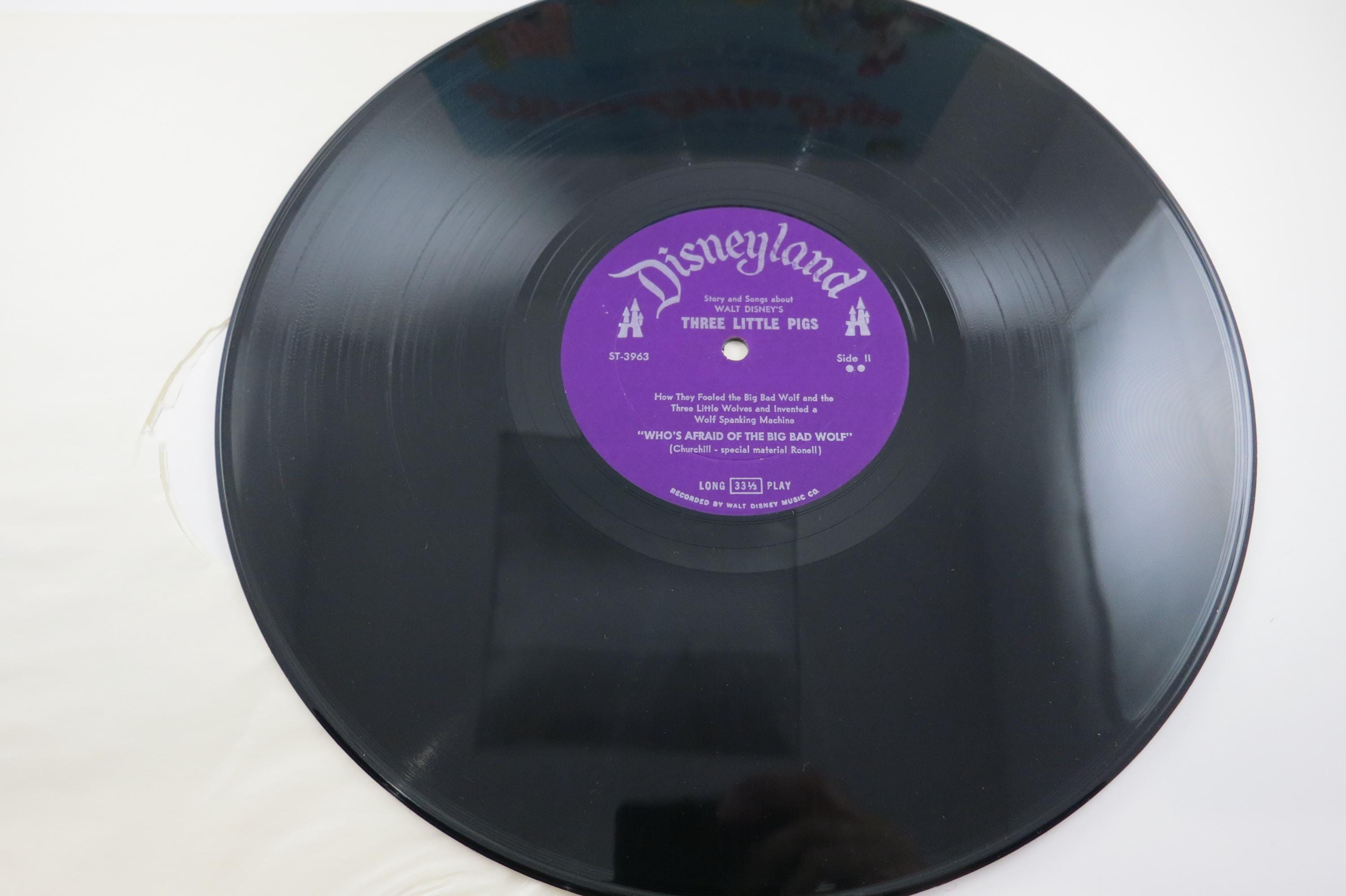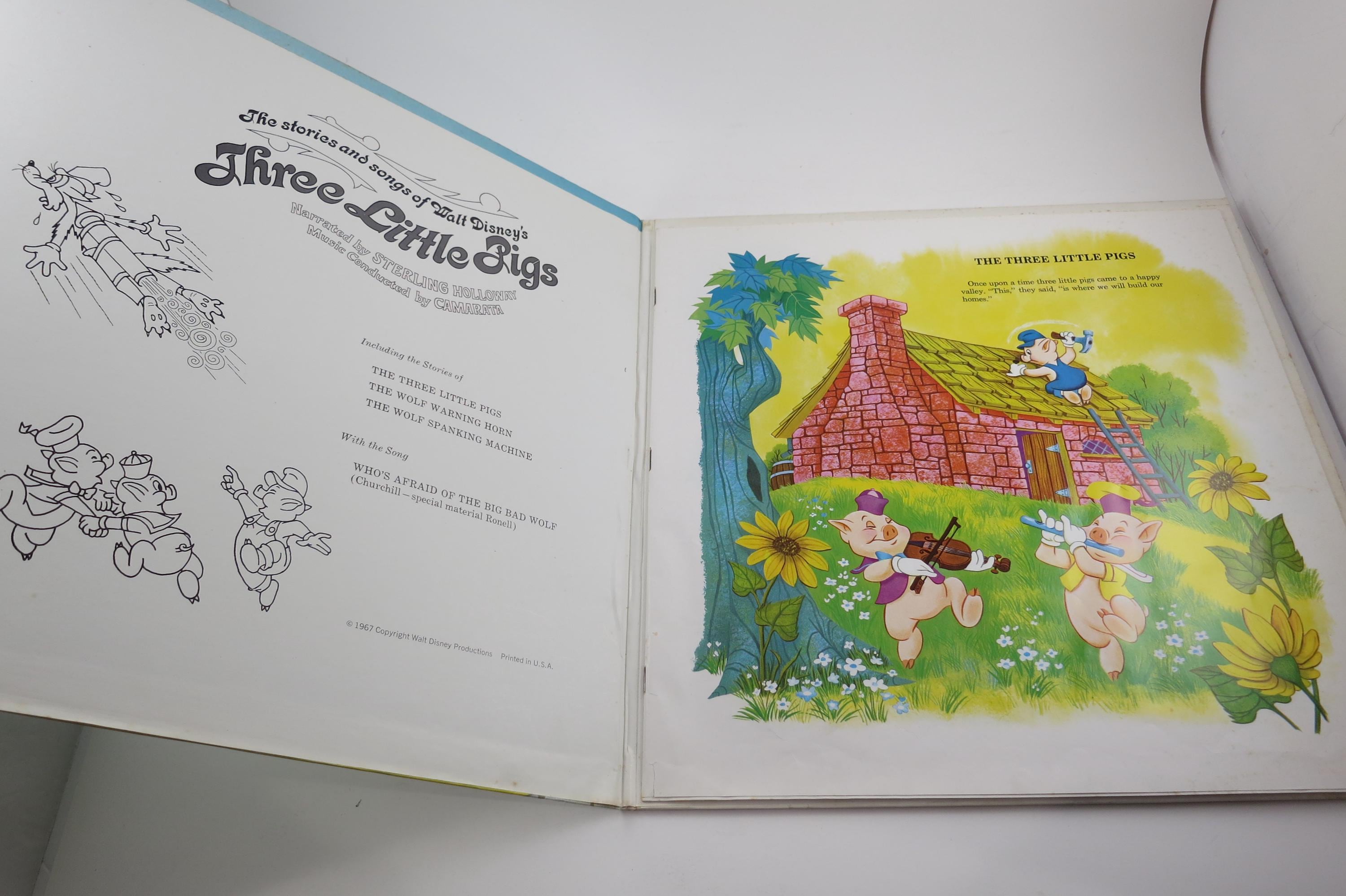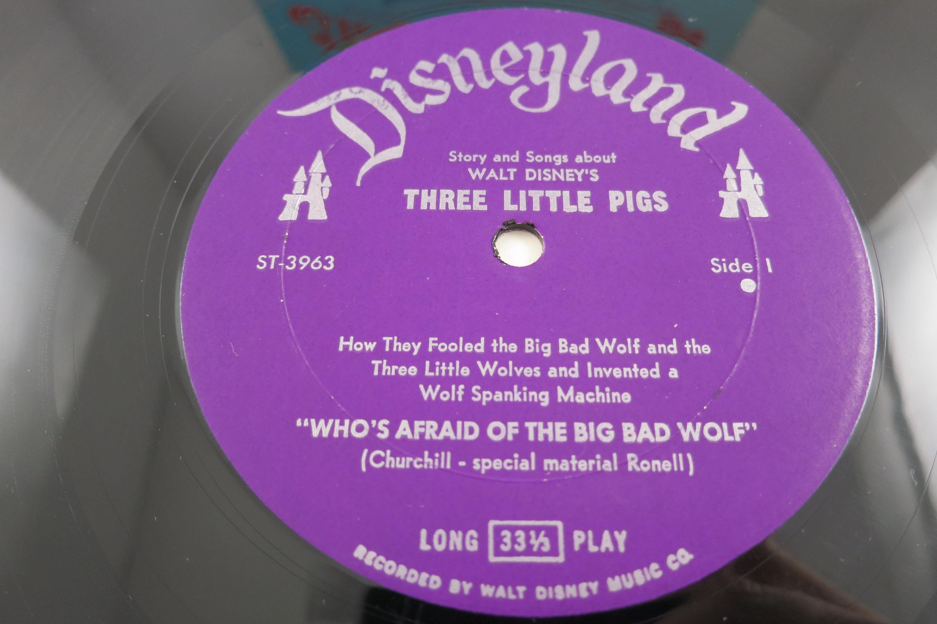 Vintage 1967 Children's LP Record Three Little Pigs Disneyland Records With Color Illustrated Book Excellent Condition. Original cover is in excellent condition and includes the full color picture book. Record is excellent as well. Great gift or addition to any collection. Tracks are as follows