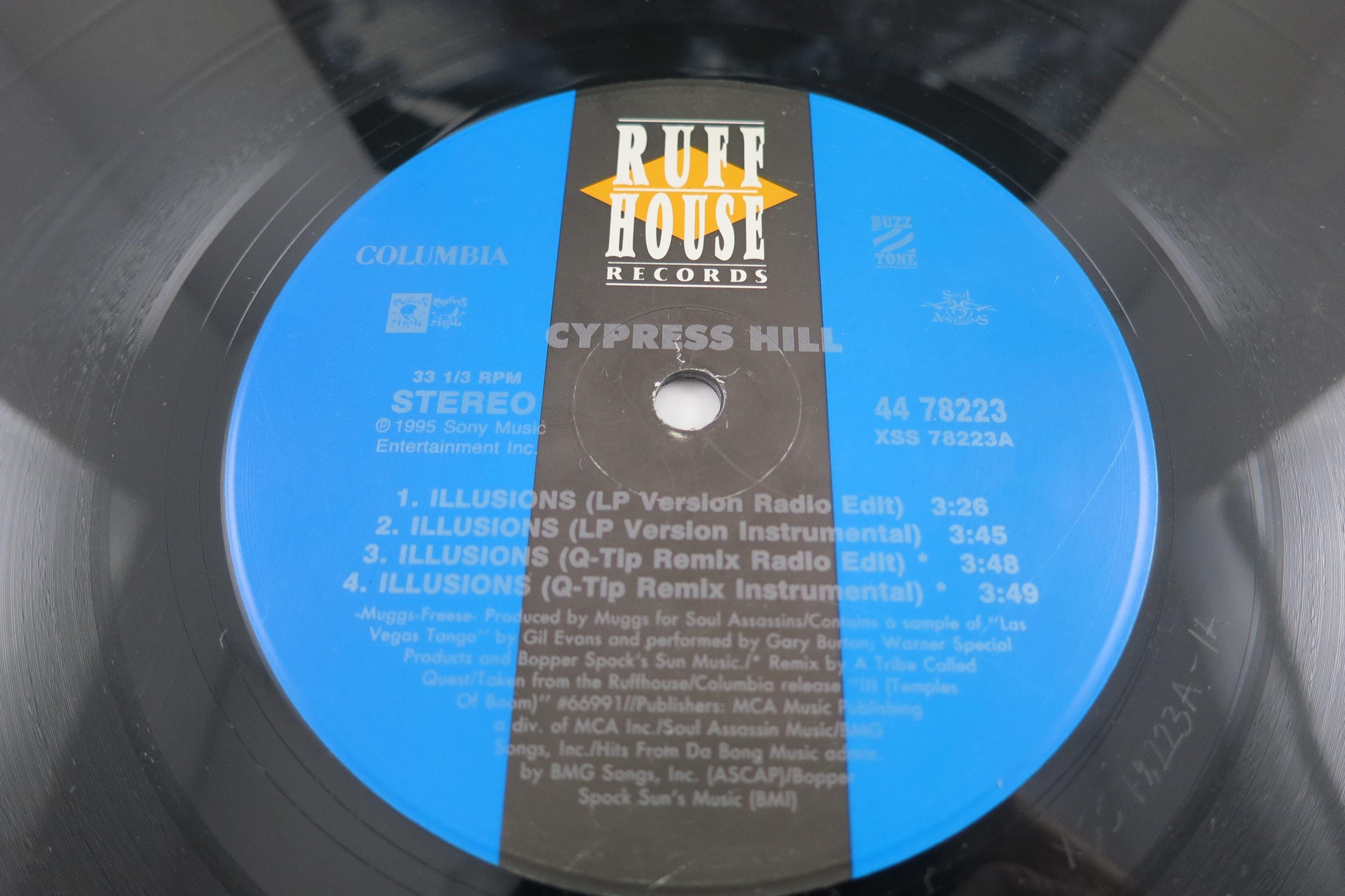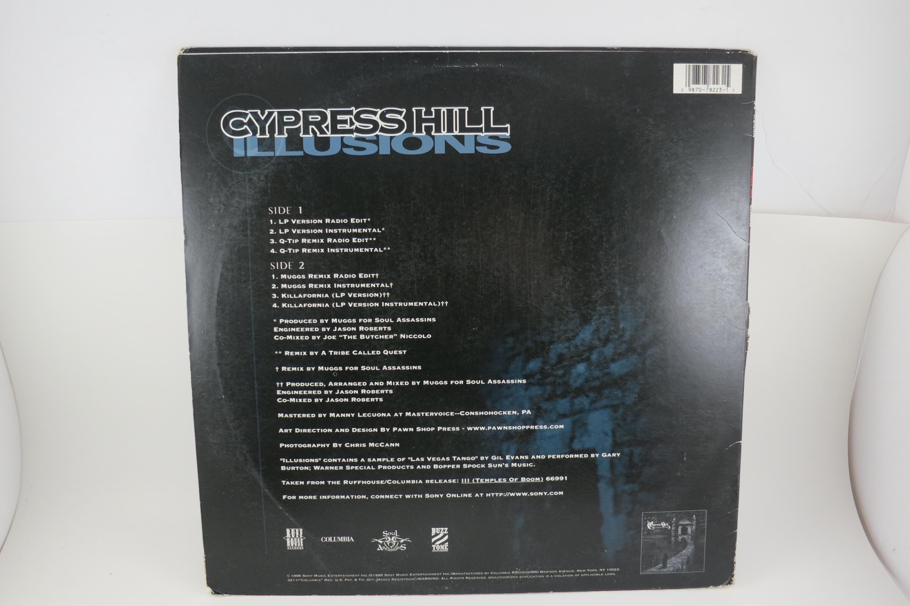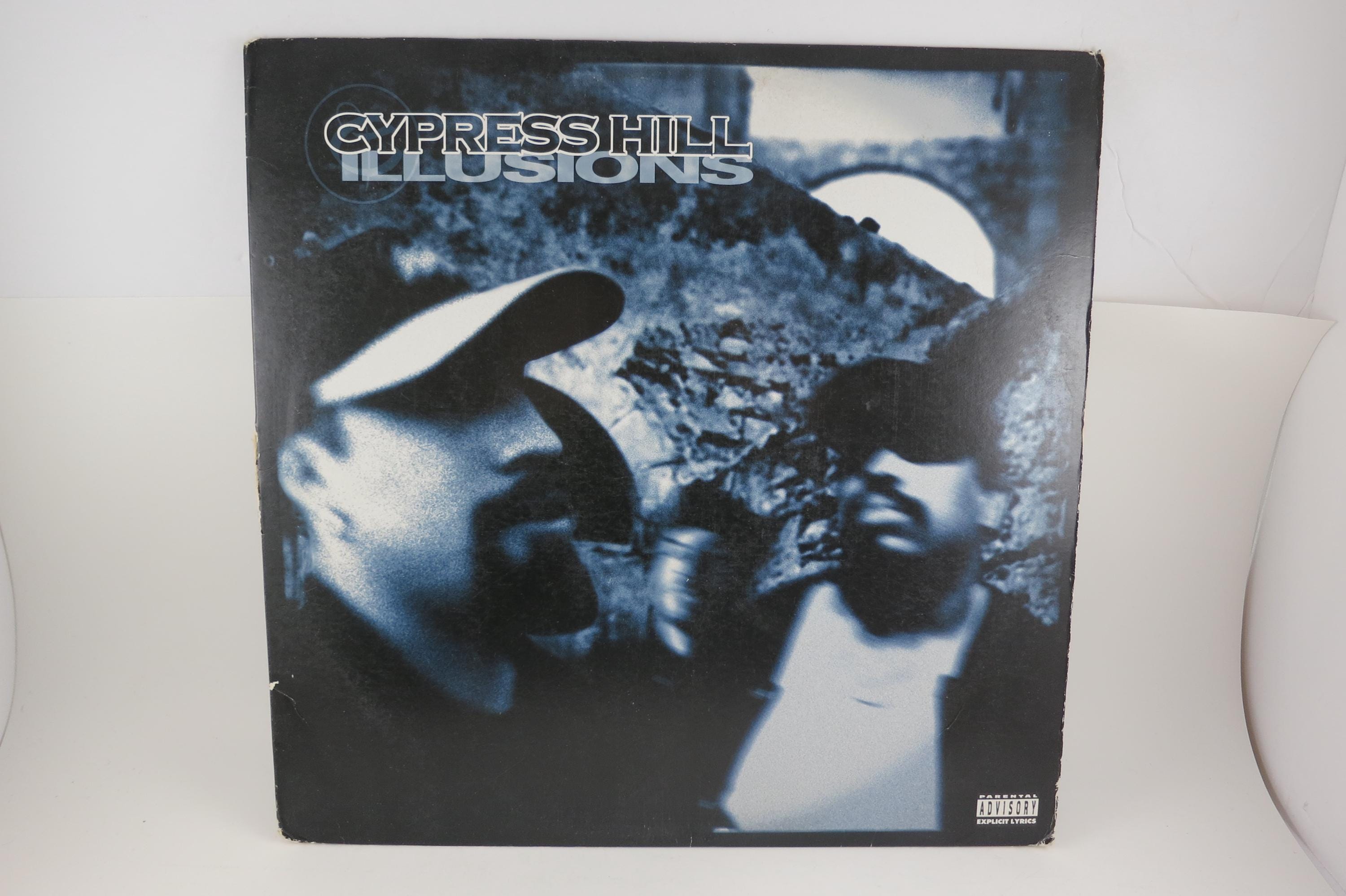 1996 Vinyl EP Record Illusions Cypress Hill. Original cover is in very good condition and includes the inner paper sleeve. Record is very good plus. Tracks are as follows