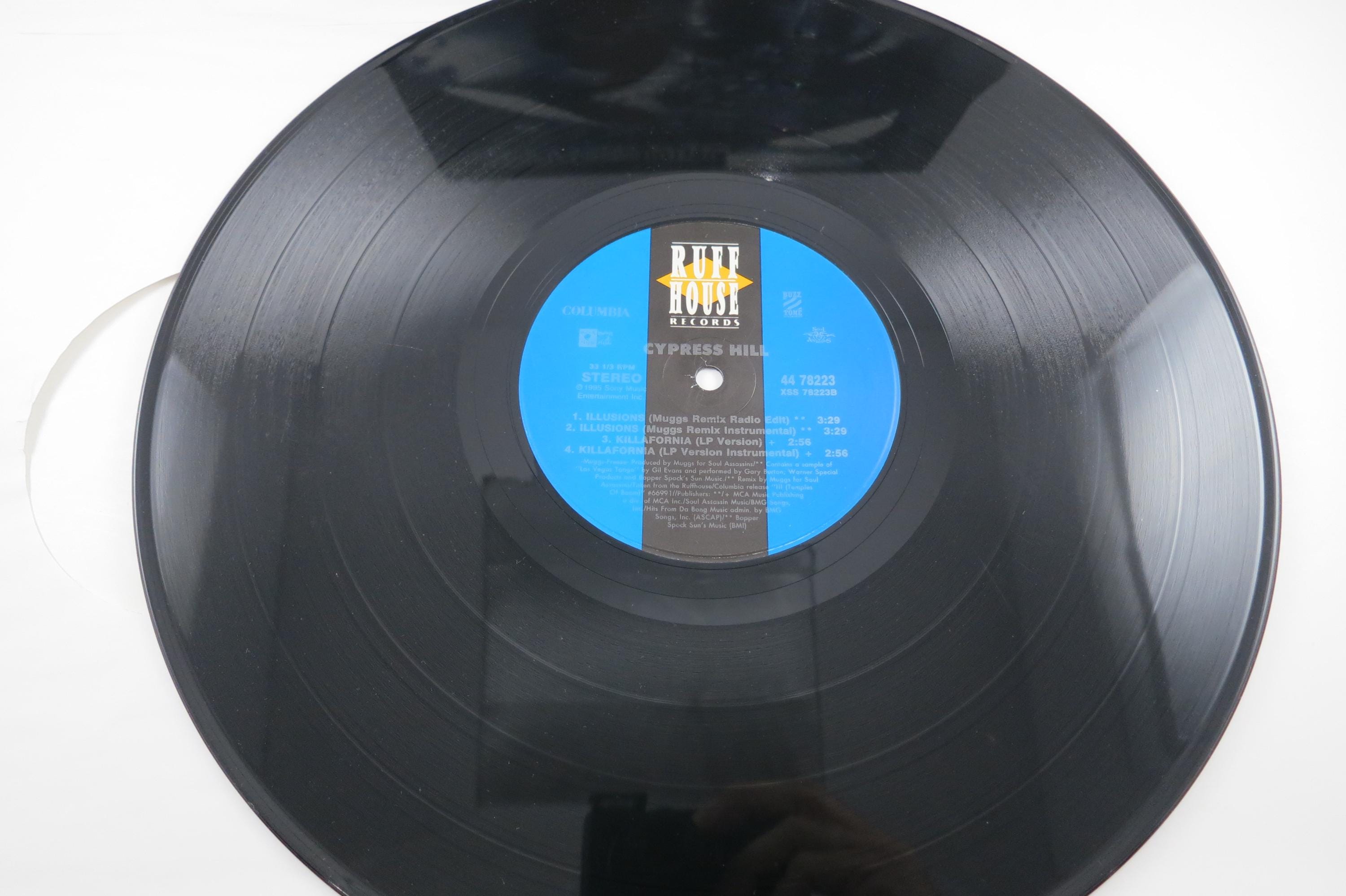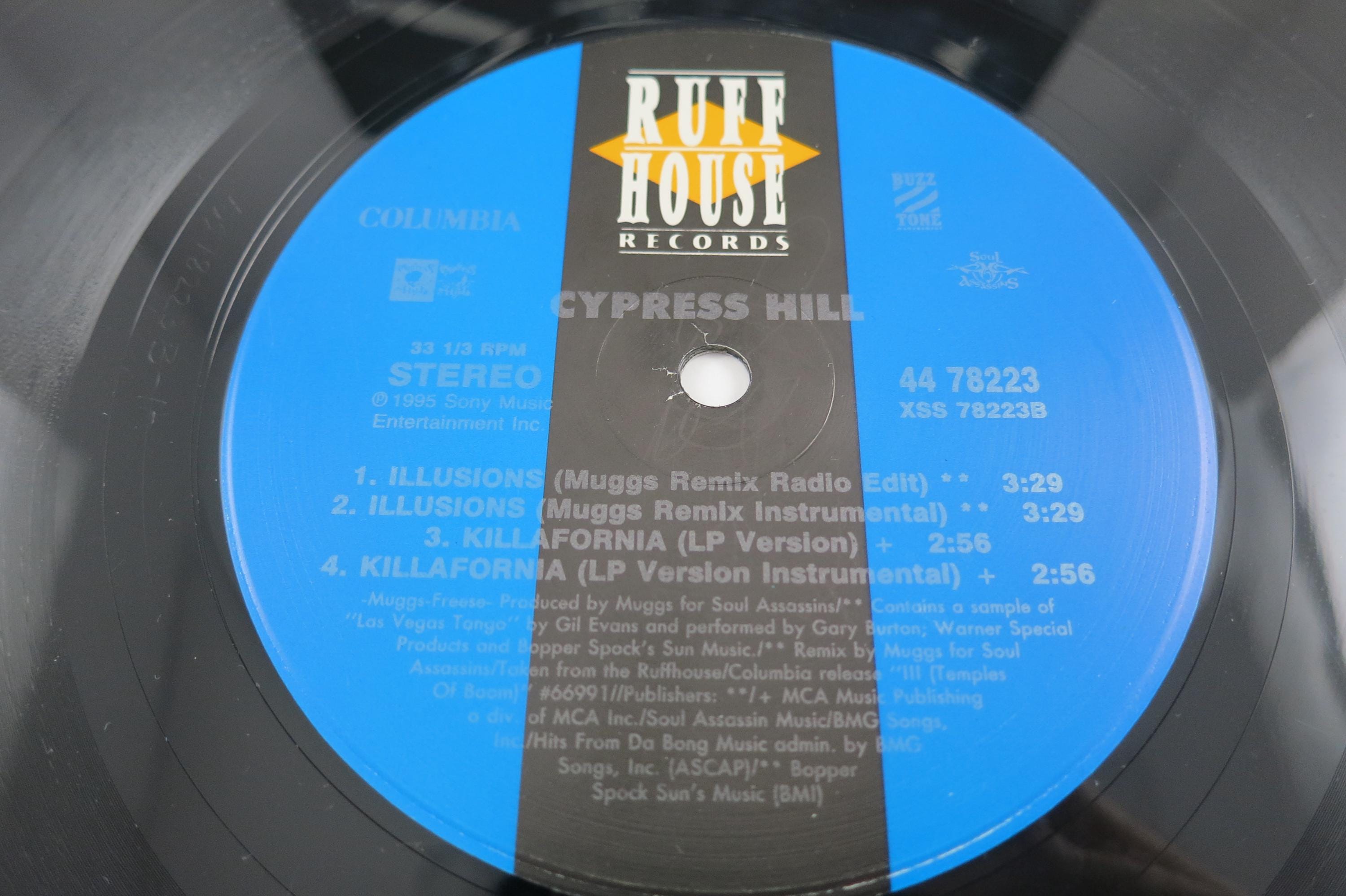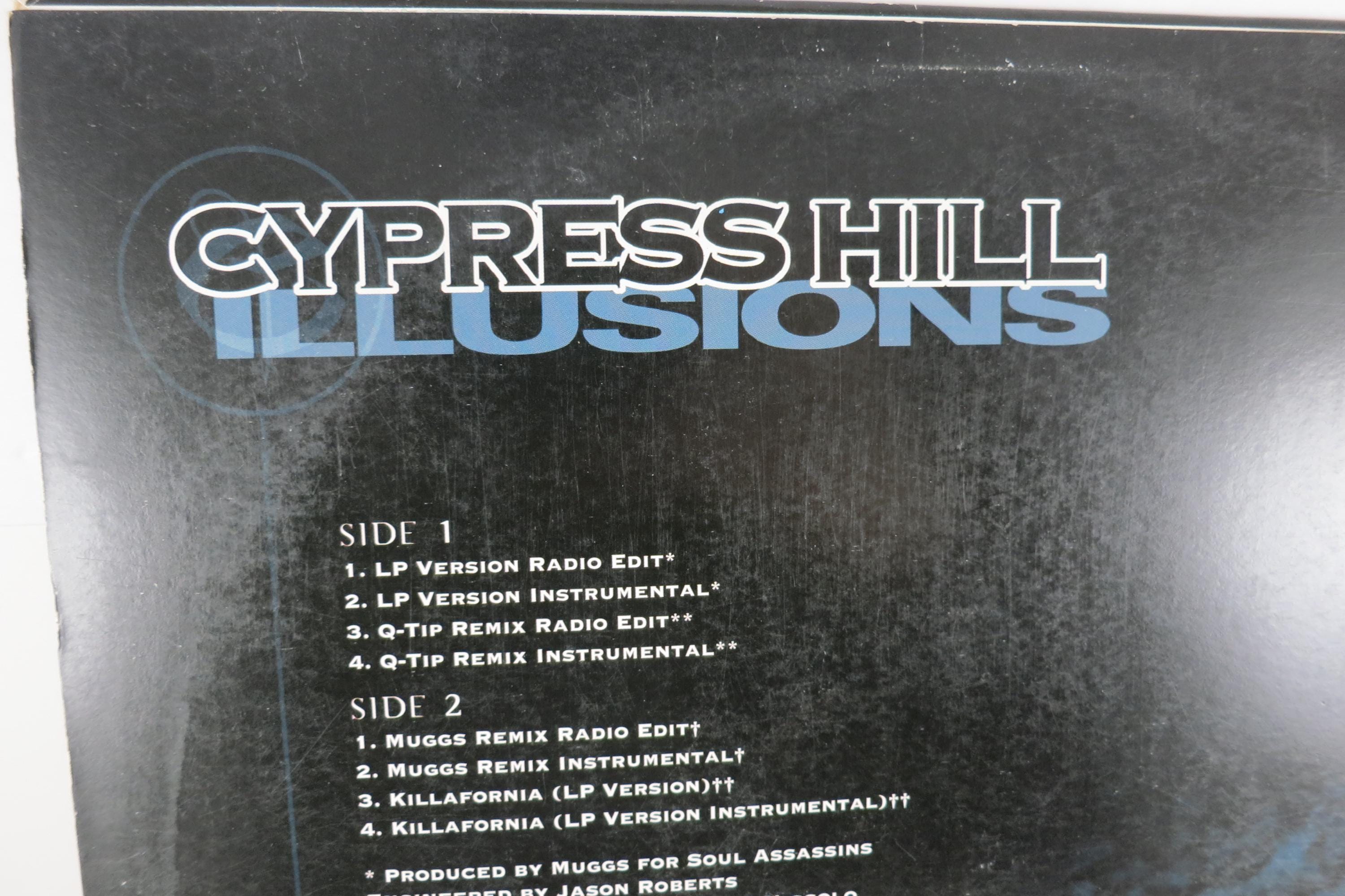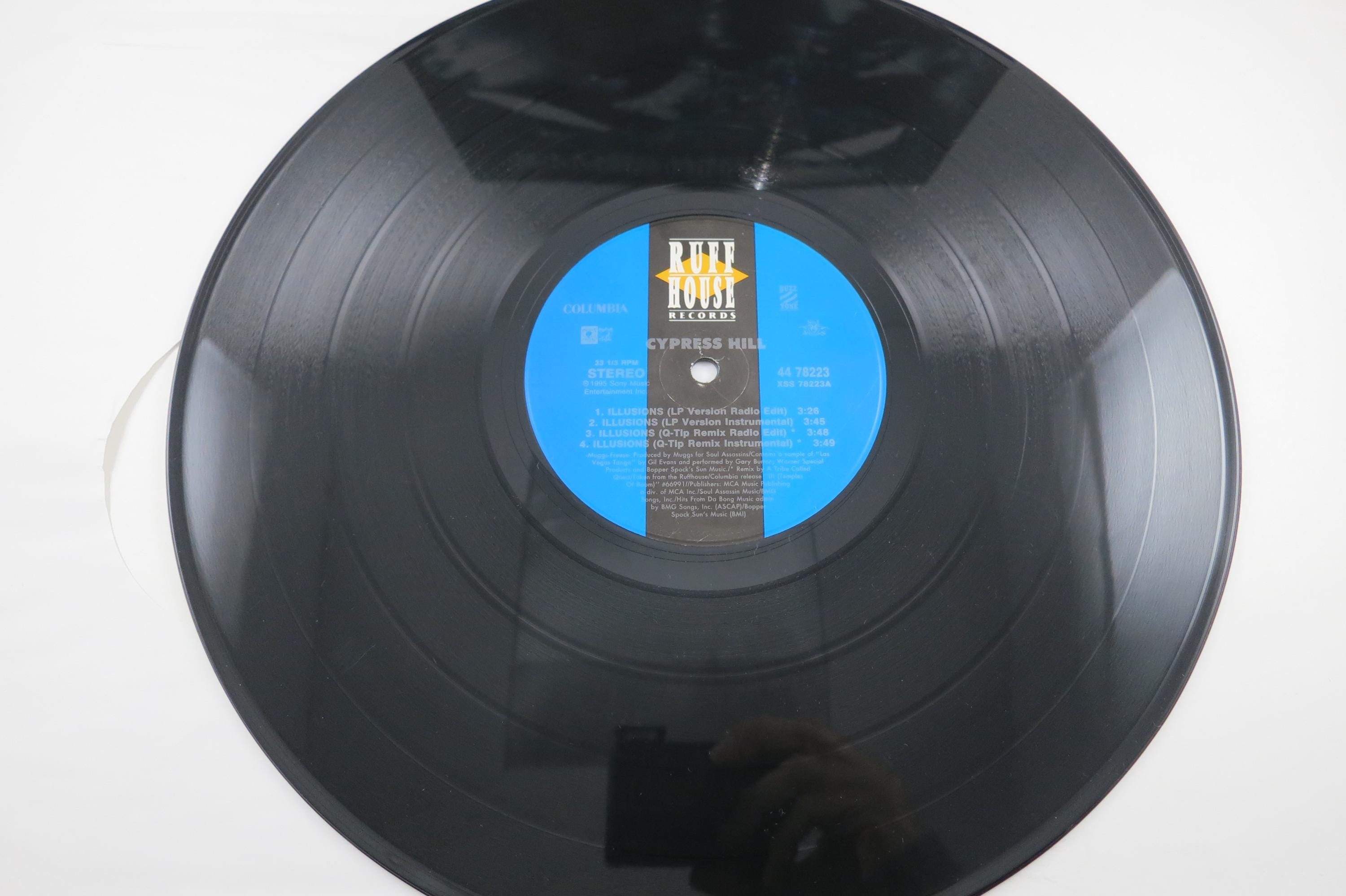 1996 Vinyl EP Record Illusions Cypress Hill. Original cover is in very good condition and includes the inner paper sleeve. Record is very good plus. Tracks are as follows