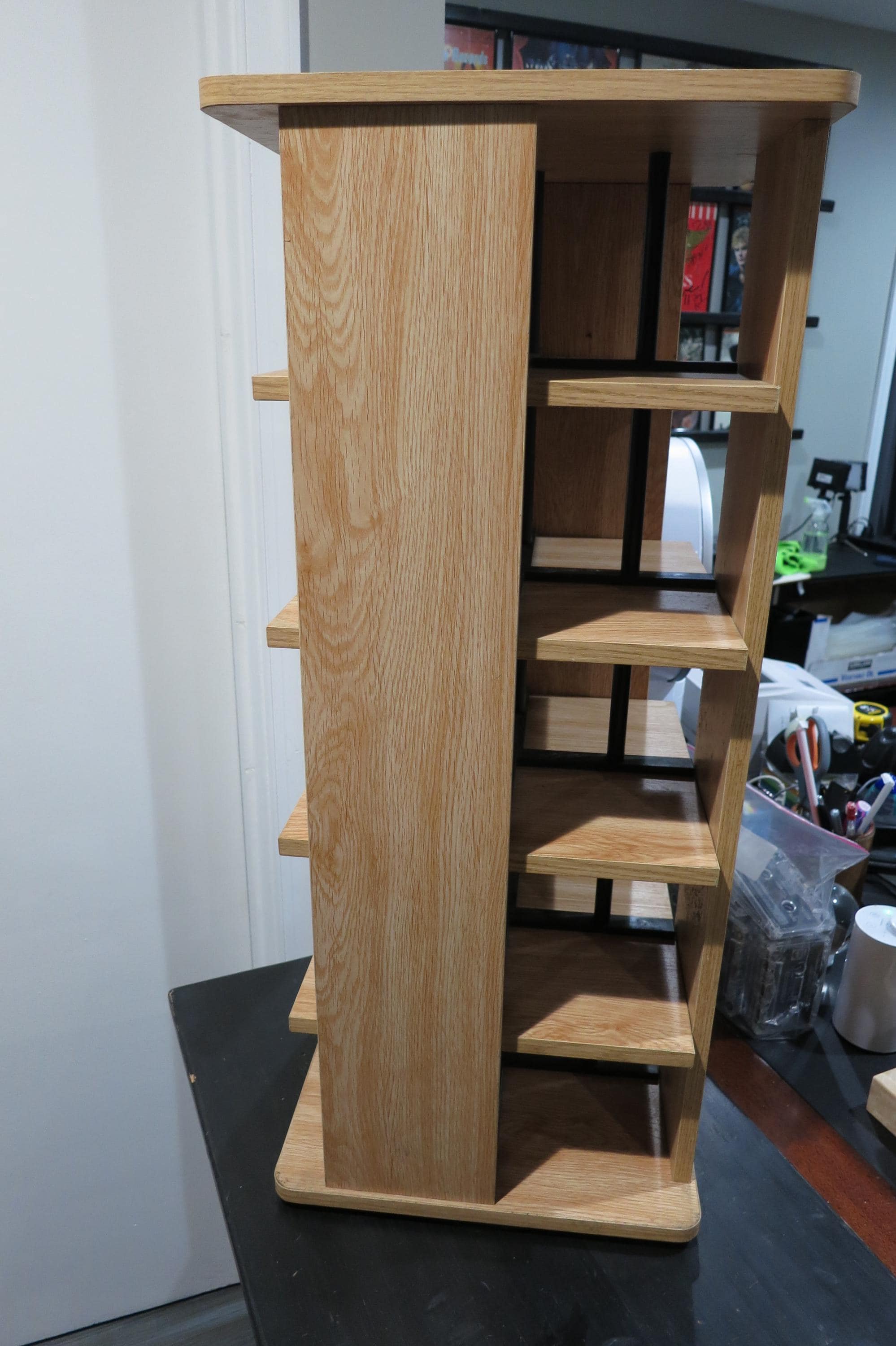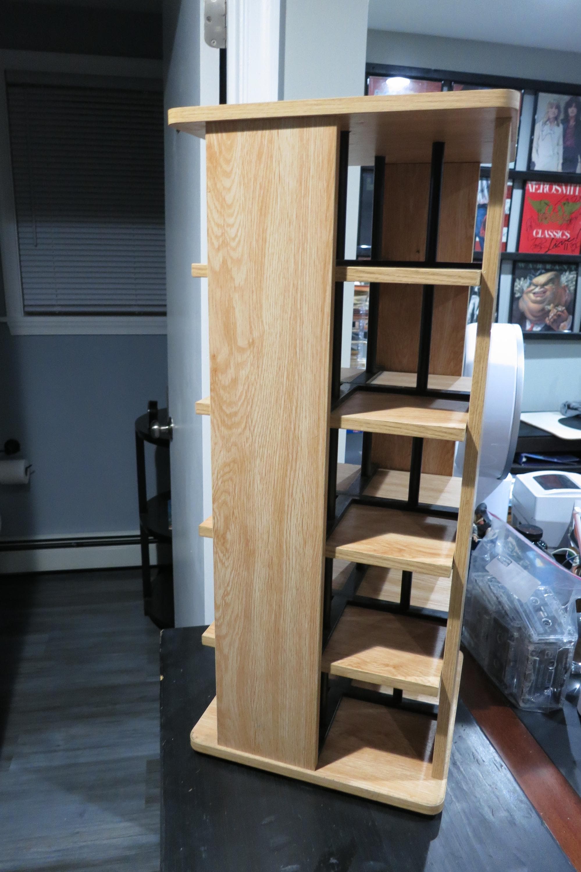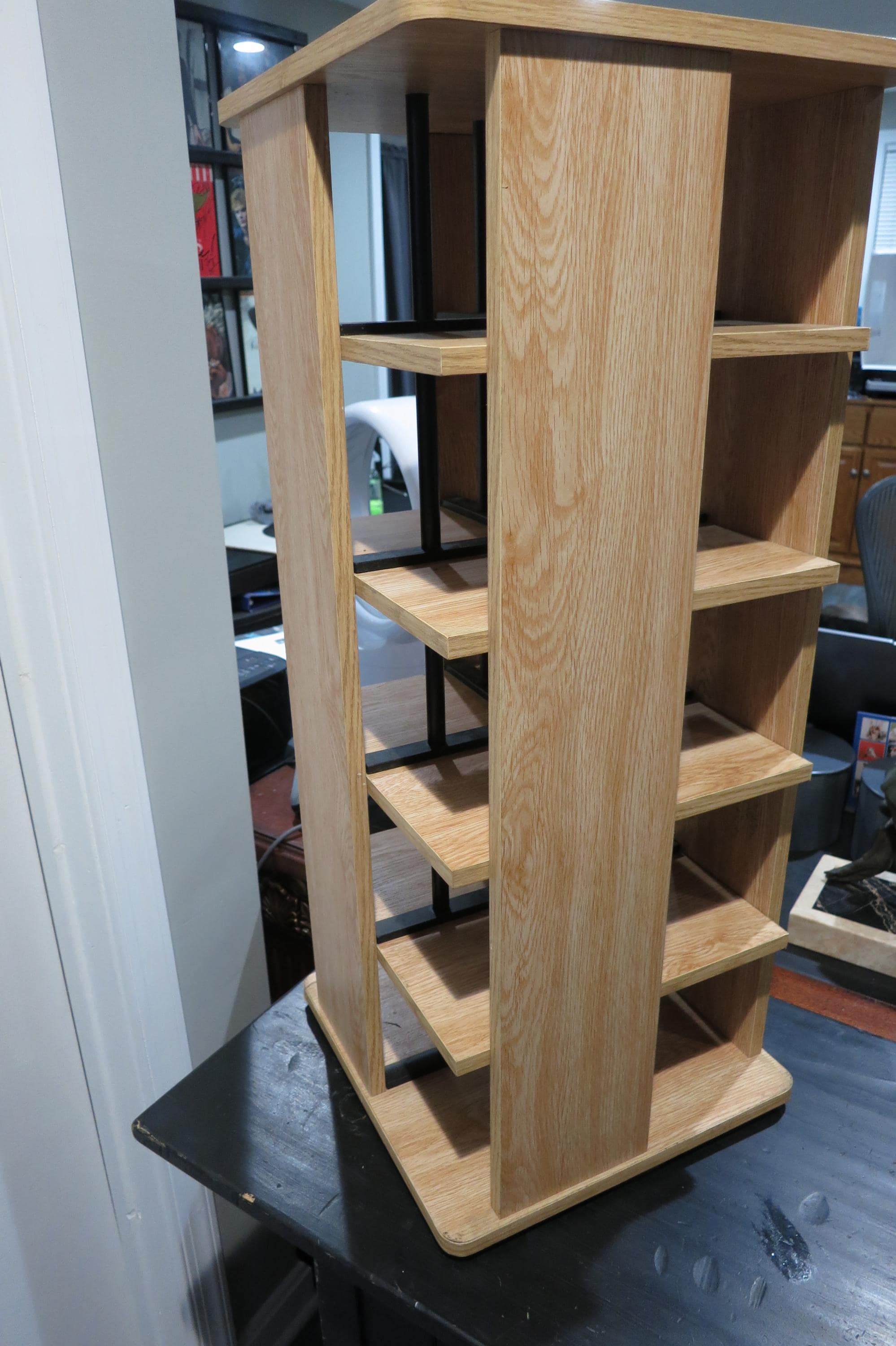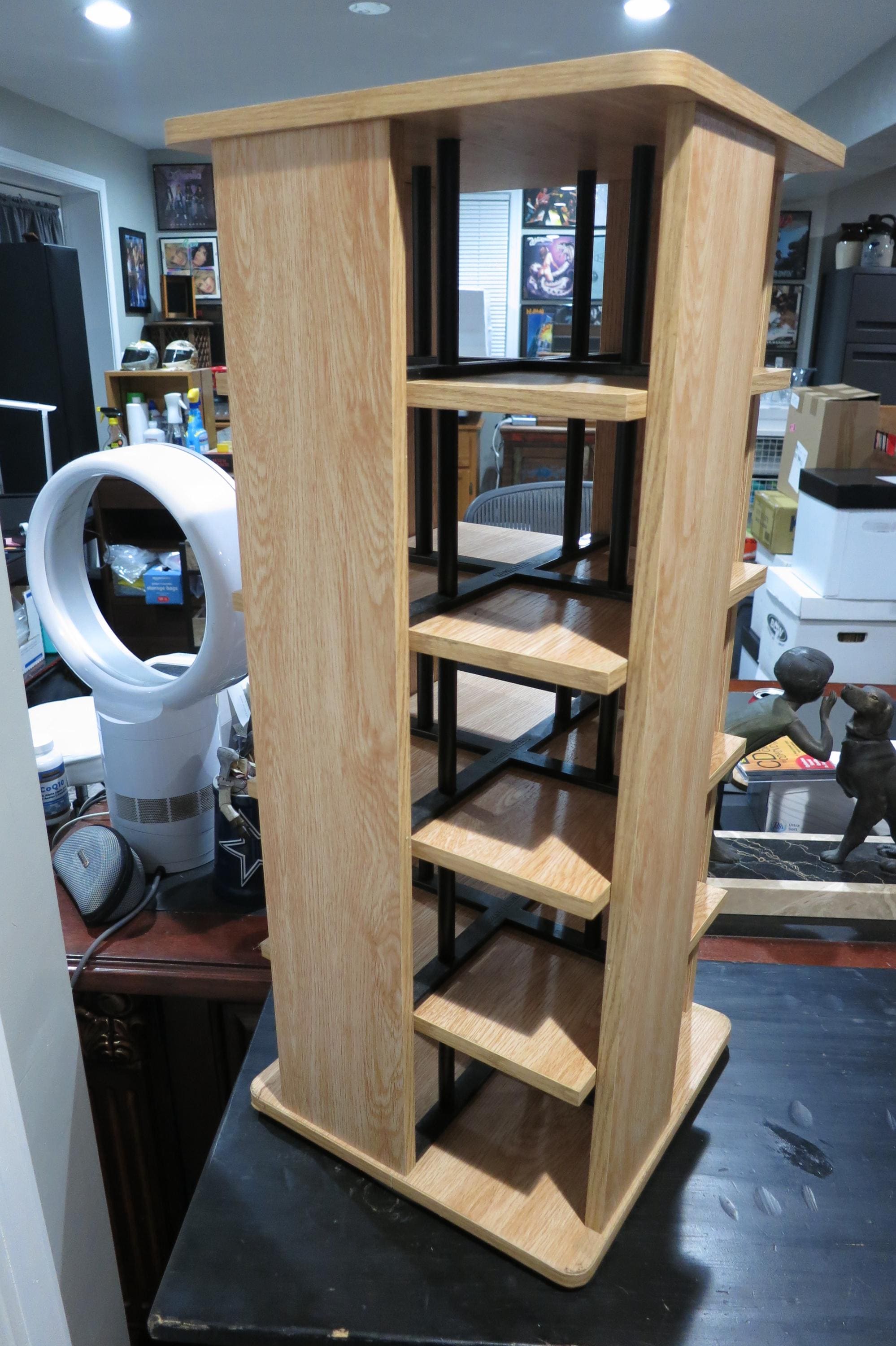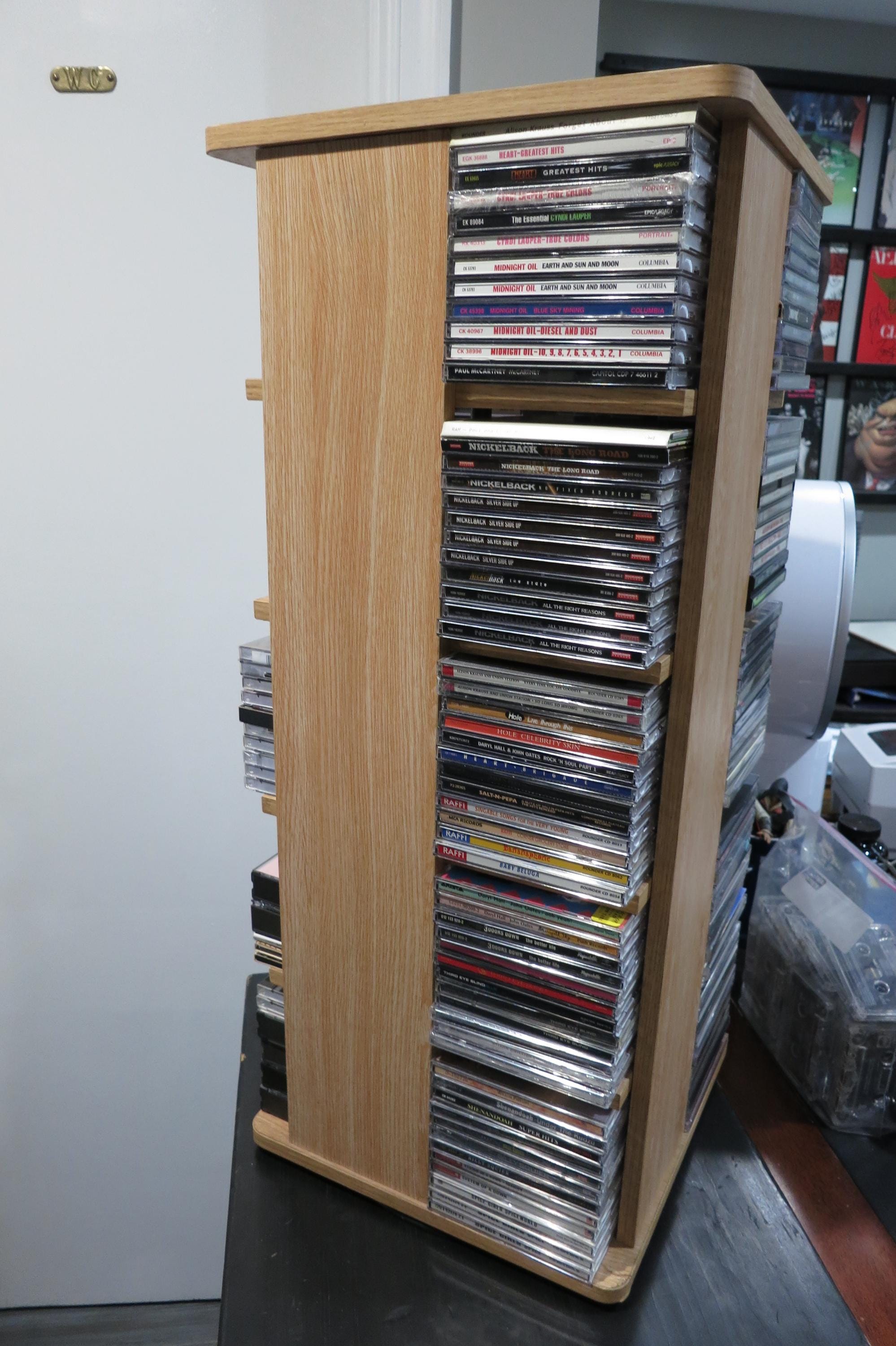 Vintage Case Logic Rotating Solid Wood CD Tower Holds 240 Discs Top of the Line. Very nice way to display/hold your favorite cd's! This was one of the largest of it's time. It measures 28 1/4 inches tall, 12 1/4 by 12 1/4 and weighs 22 pounds without any discs! Quality Piece made by Case Logic. Has 20 sections, 5 each side, each space holds 12 discs. Total storage capacity of 240 discs, singles, doubles, even triples. Very sturdy and nice looking.