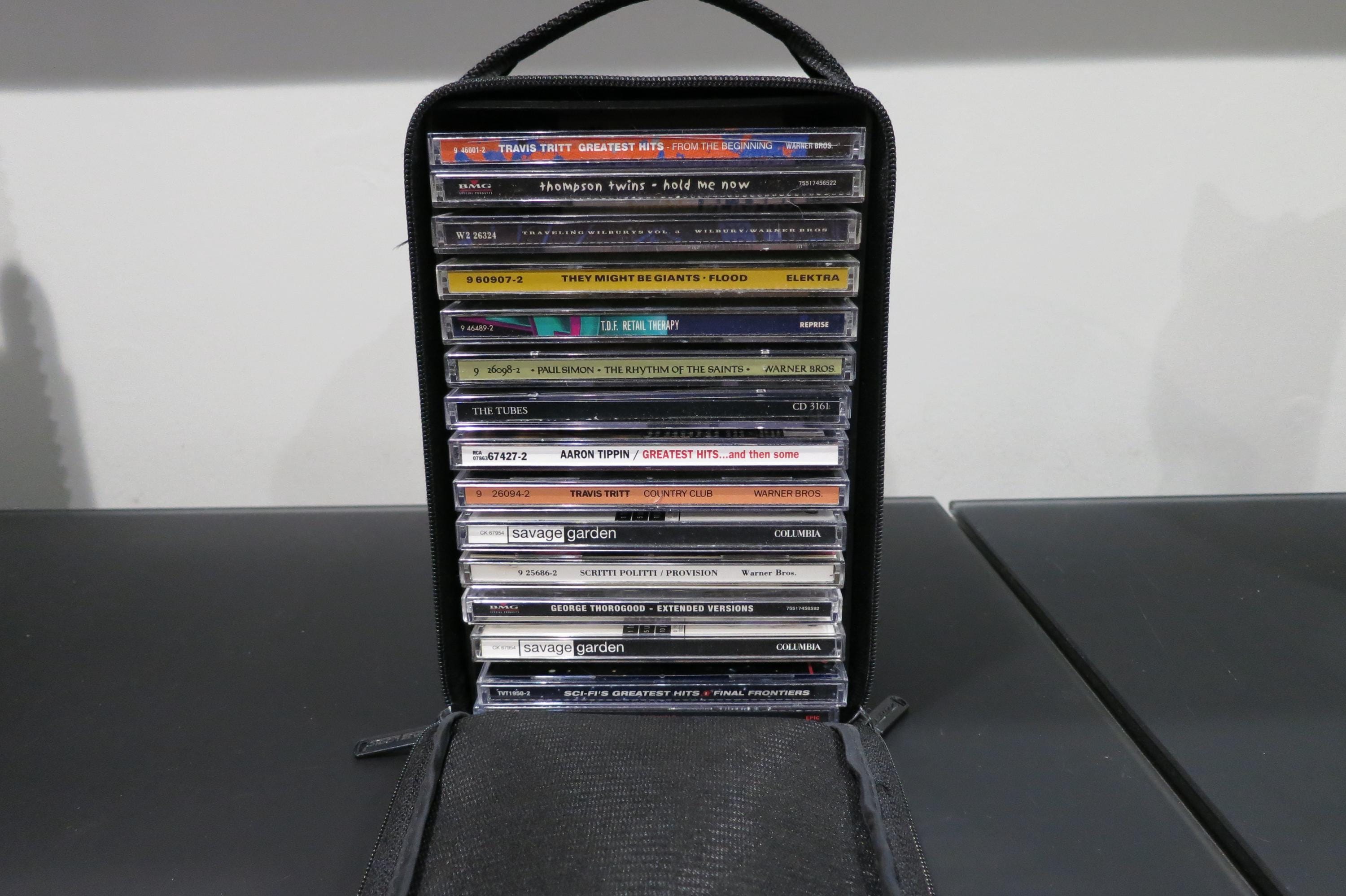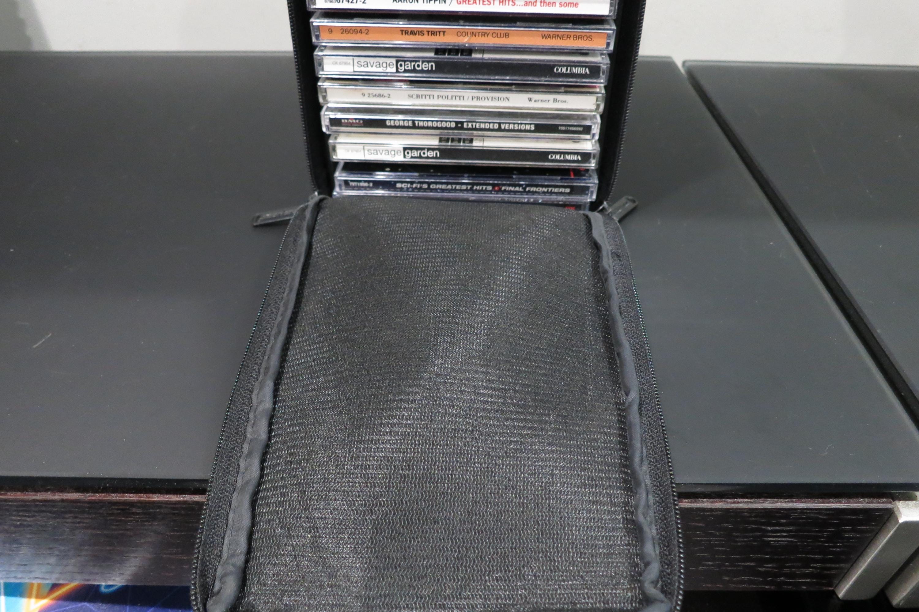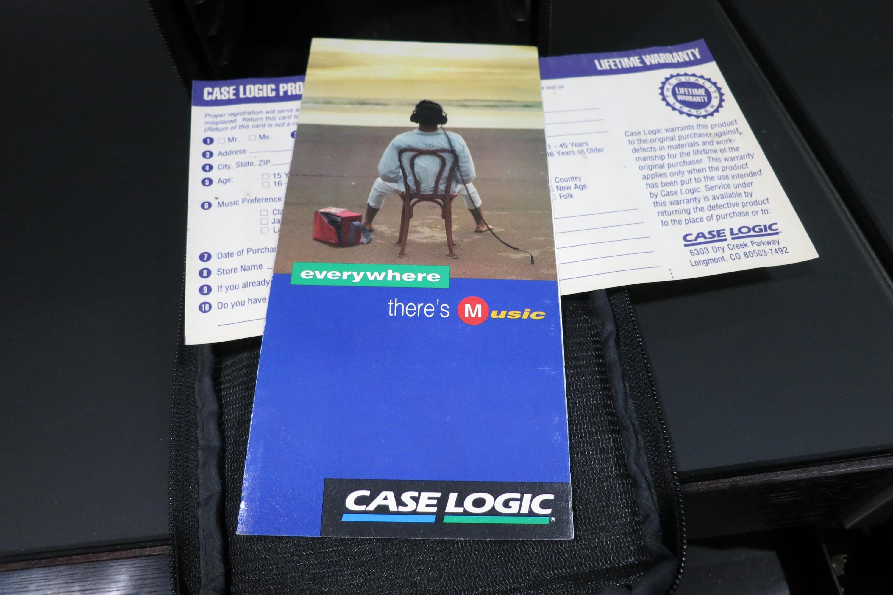 1990's Case It Black CD Carrying Case Holds 15 CD's Compact Excellent Condition. This is a compact case that can hold 11 regular and 2 double discs or 15 regular discs in their cases. It has a carrying handle and a front pocket for light storage.