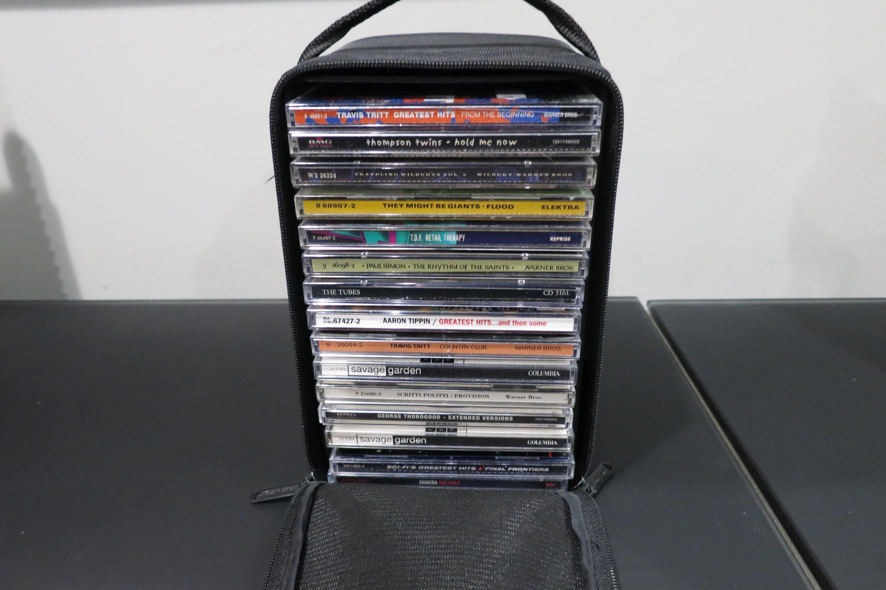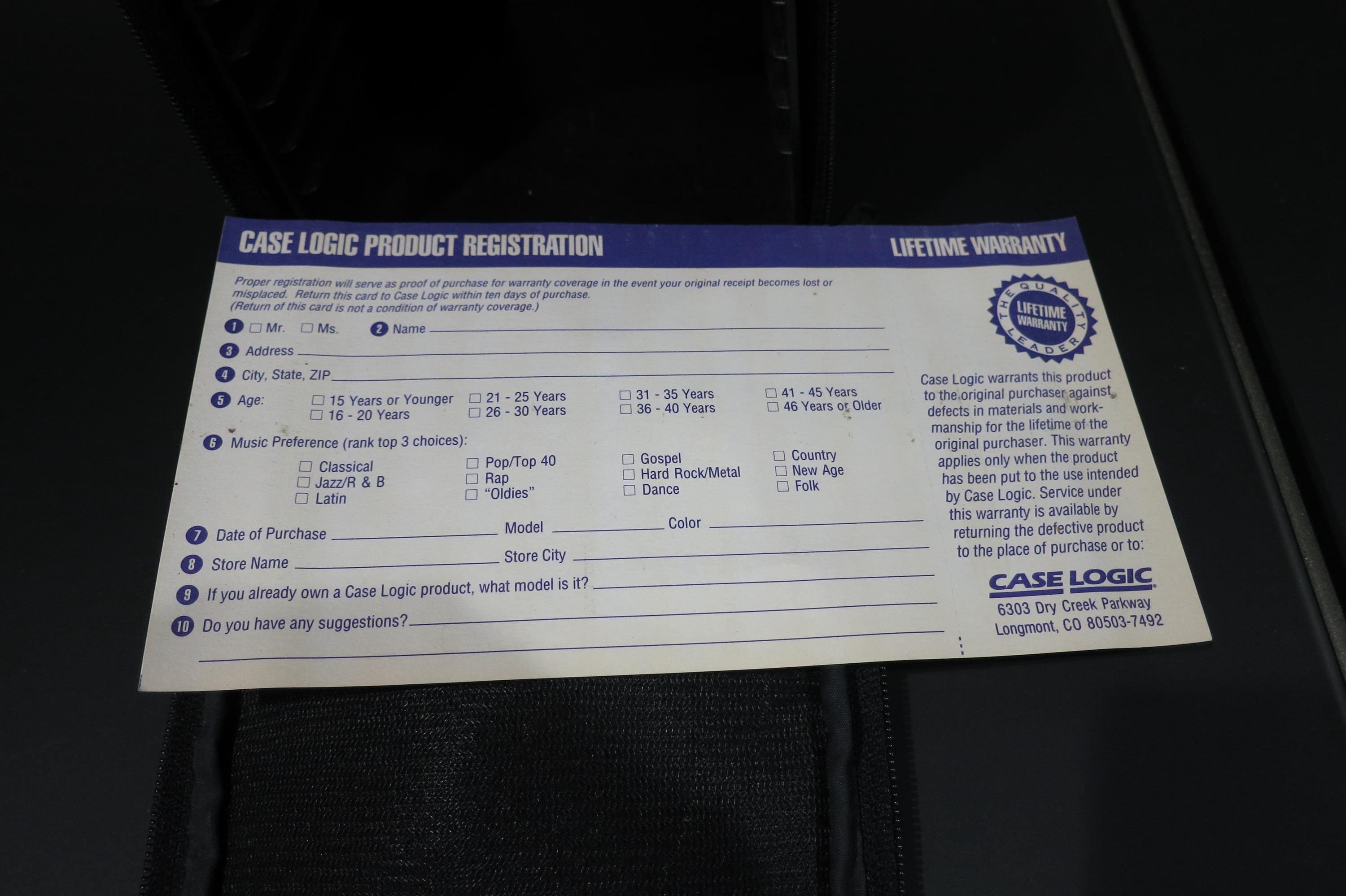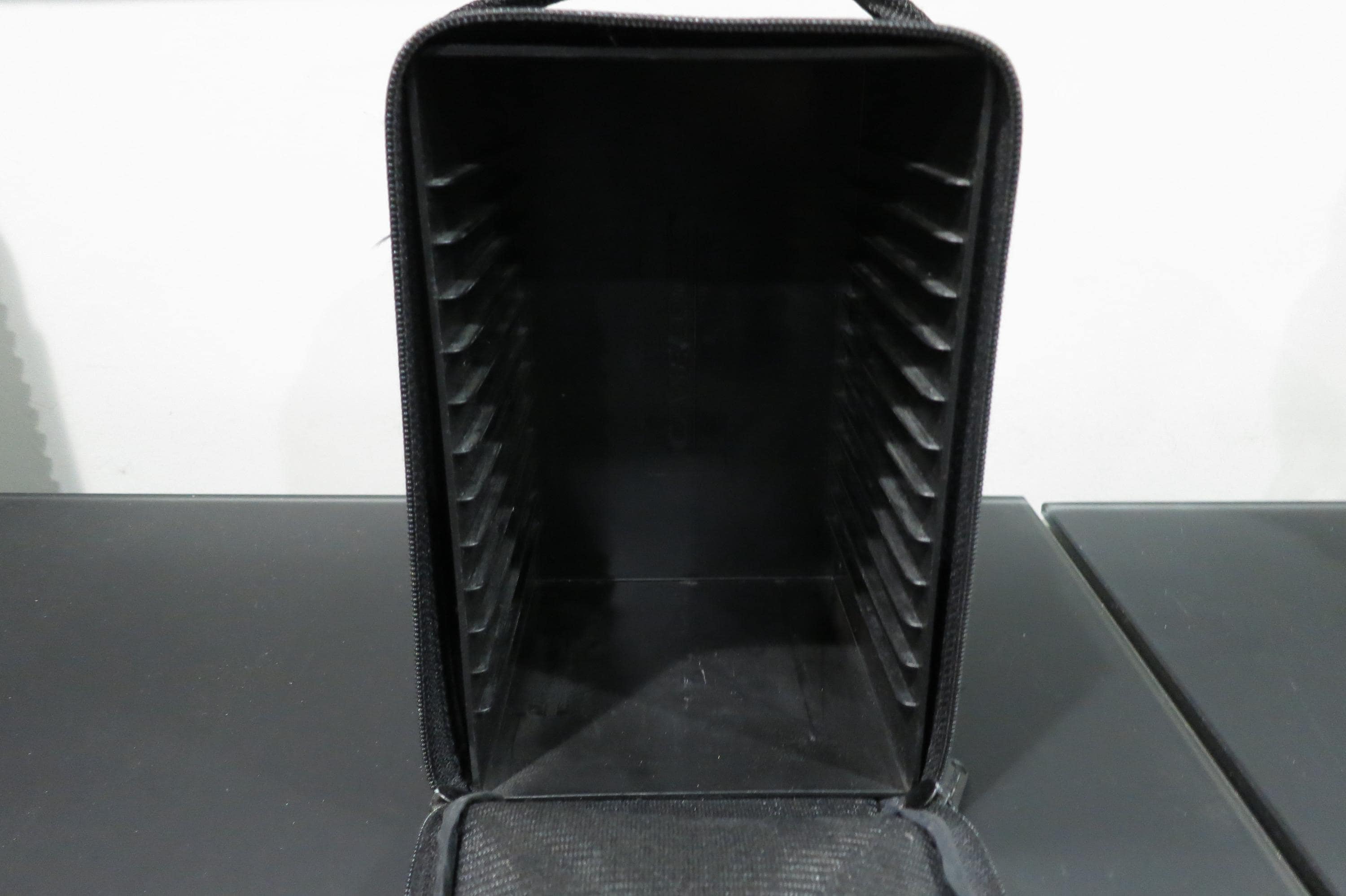 1990's Case It Black CD Carrying Case Holds 15 CD's Compact Excellent Condition. This is a compact case that can hold 11 regular and 2 double discs or 15 regular discs in their cases. It has a carrying handle and a front pocket for light storage.
