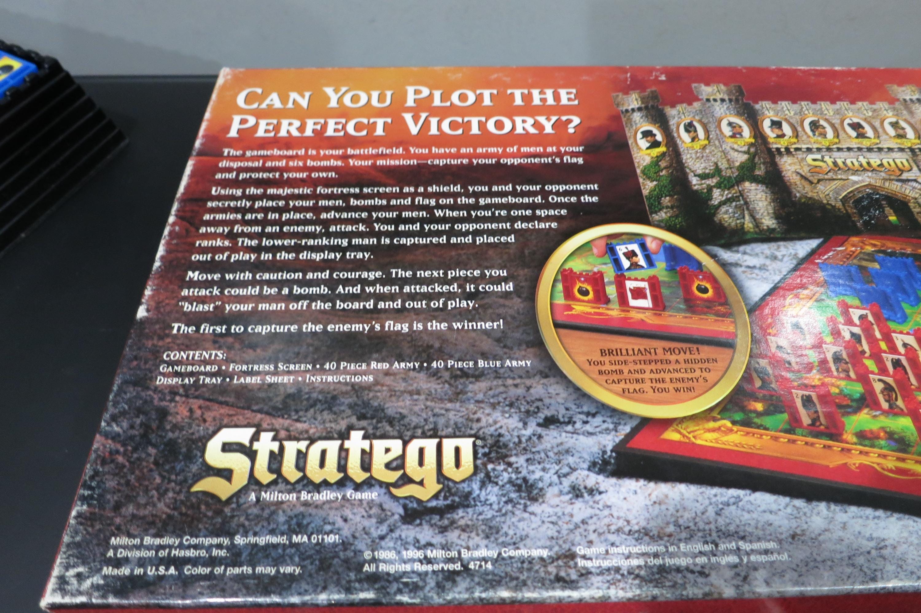 Vintage 1996 Milton Bradley Board Game Stratego Fascinating Two Handed Strategy Game. Great game that provides hours of entertainment. 100% Complete!! Box is in excellent condition as well. Has one replacement piece, a blue number 6.