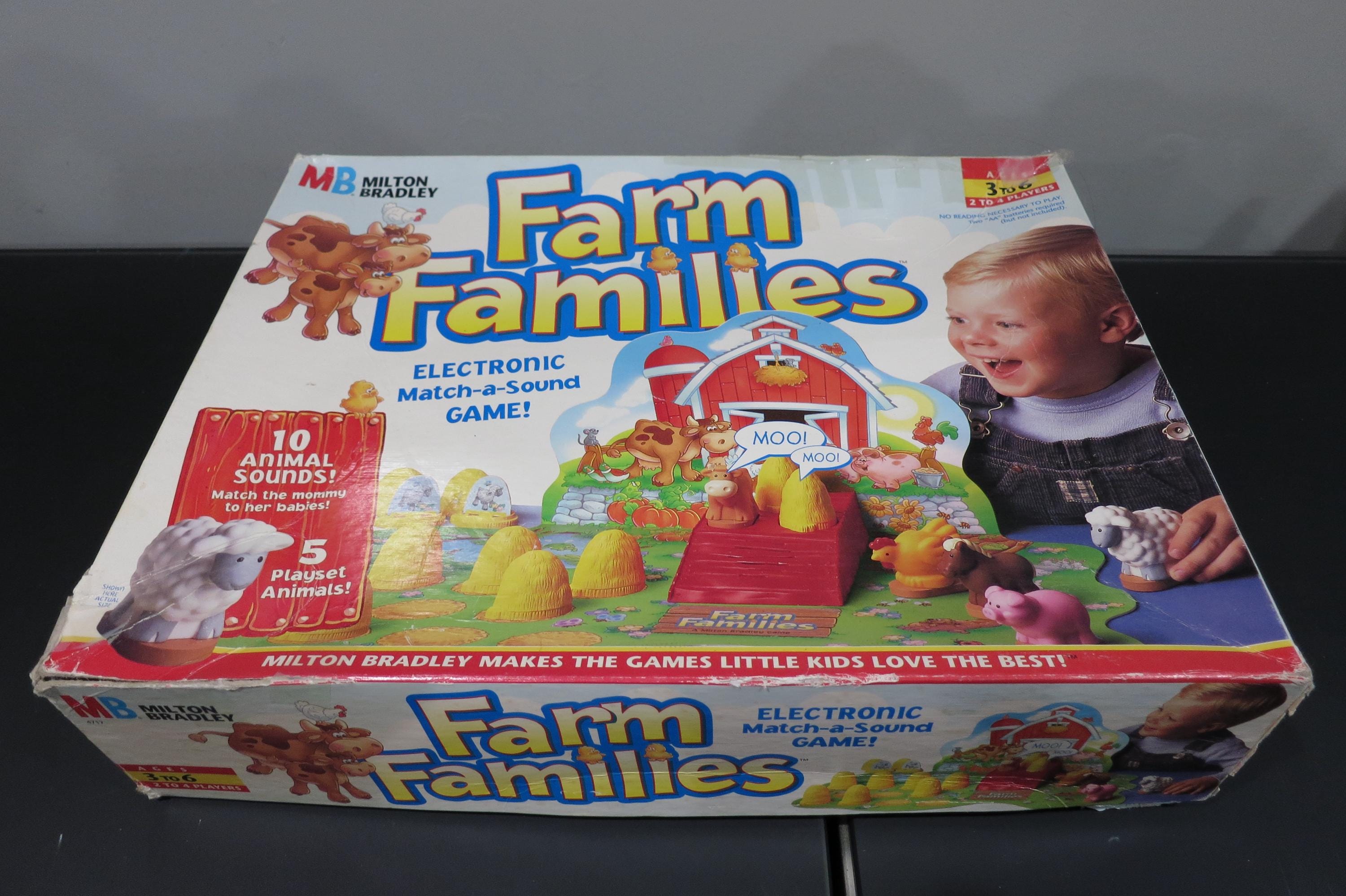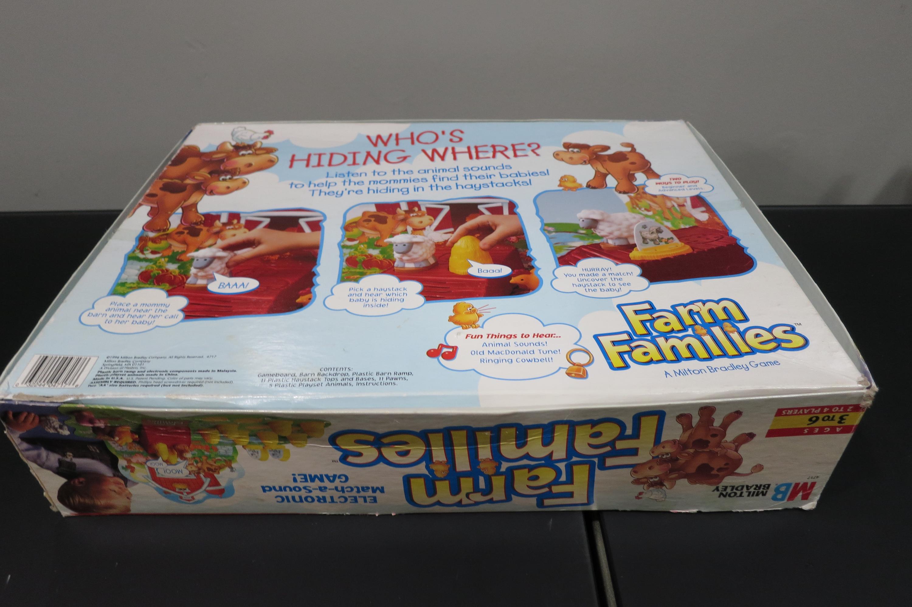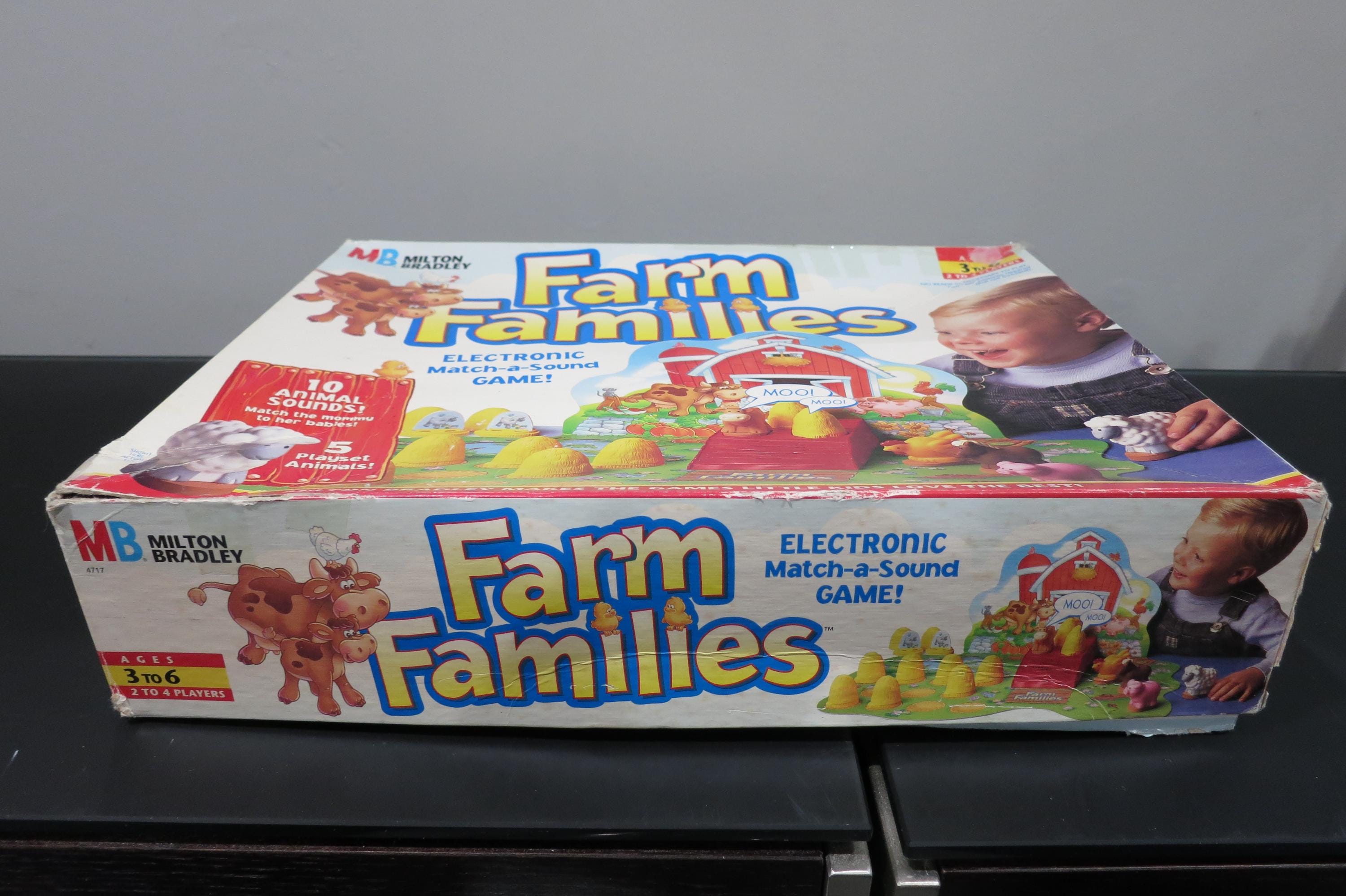 1996 Milton Bradley Farm Families Game Complete and Works Electronic Matching Animals. Box is taped and in poor condition, game contents are in great shape and the electronics work well. Neat game!!