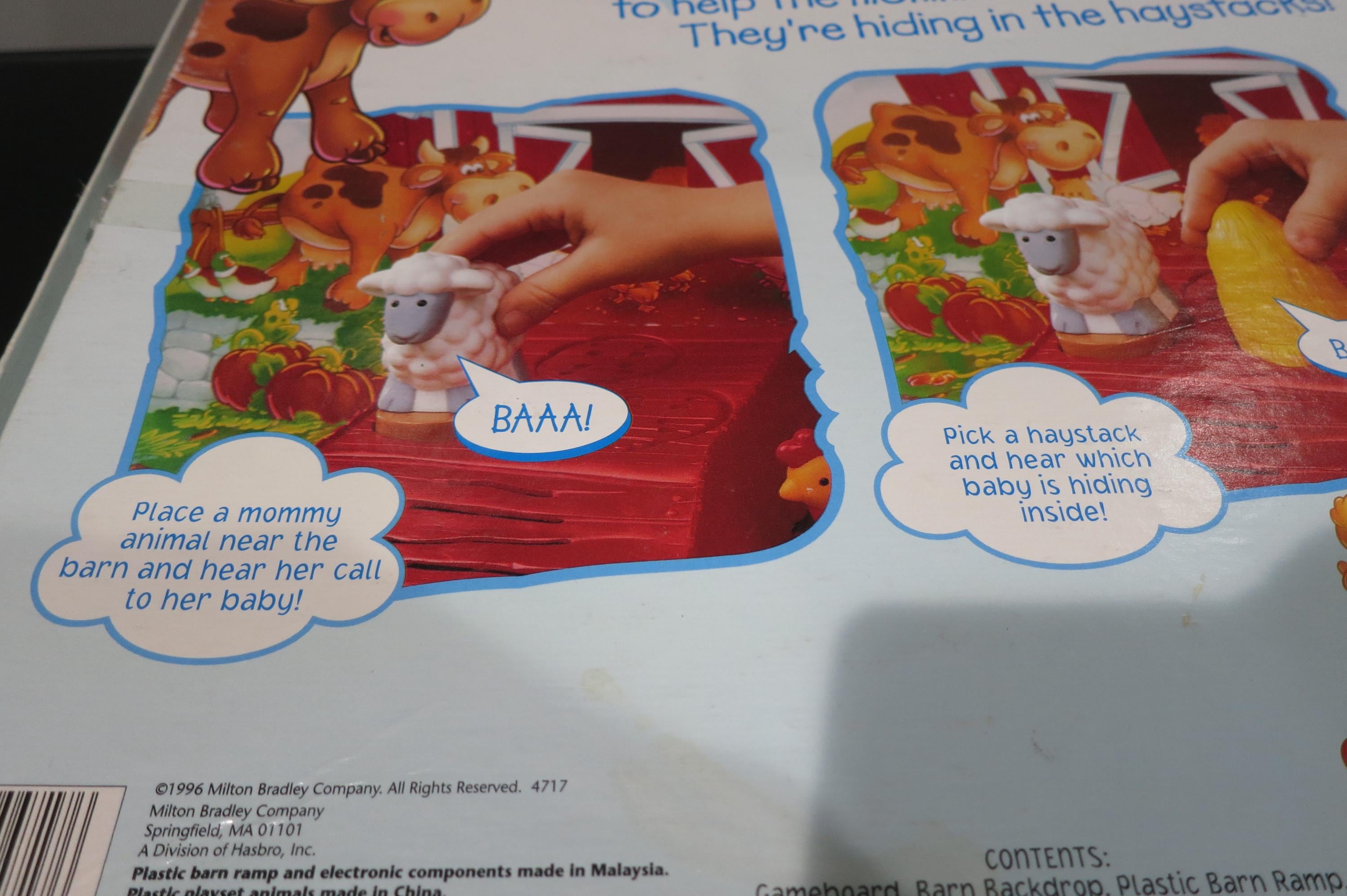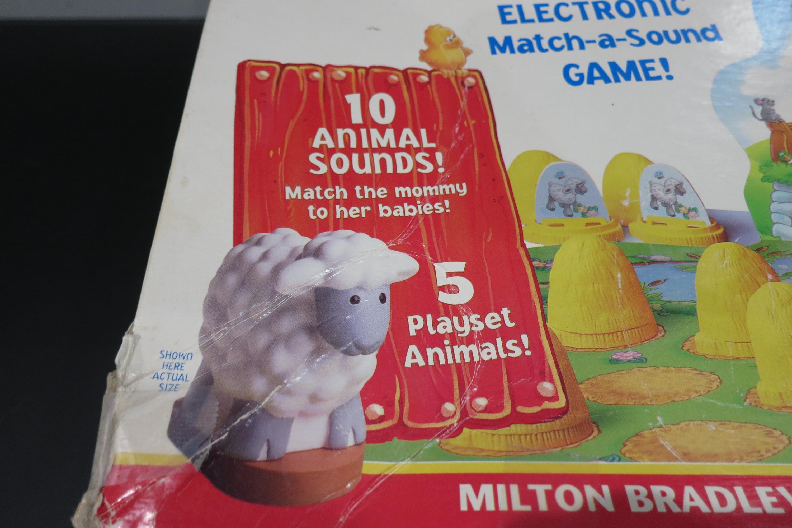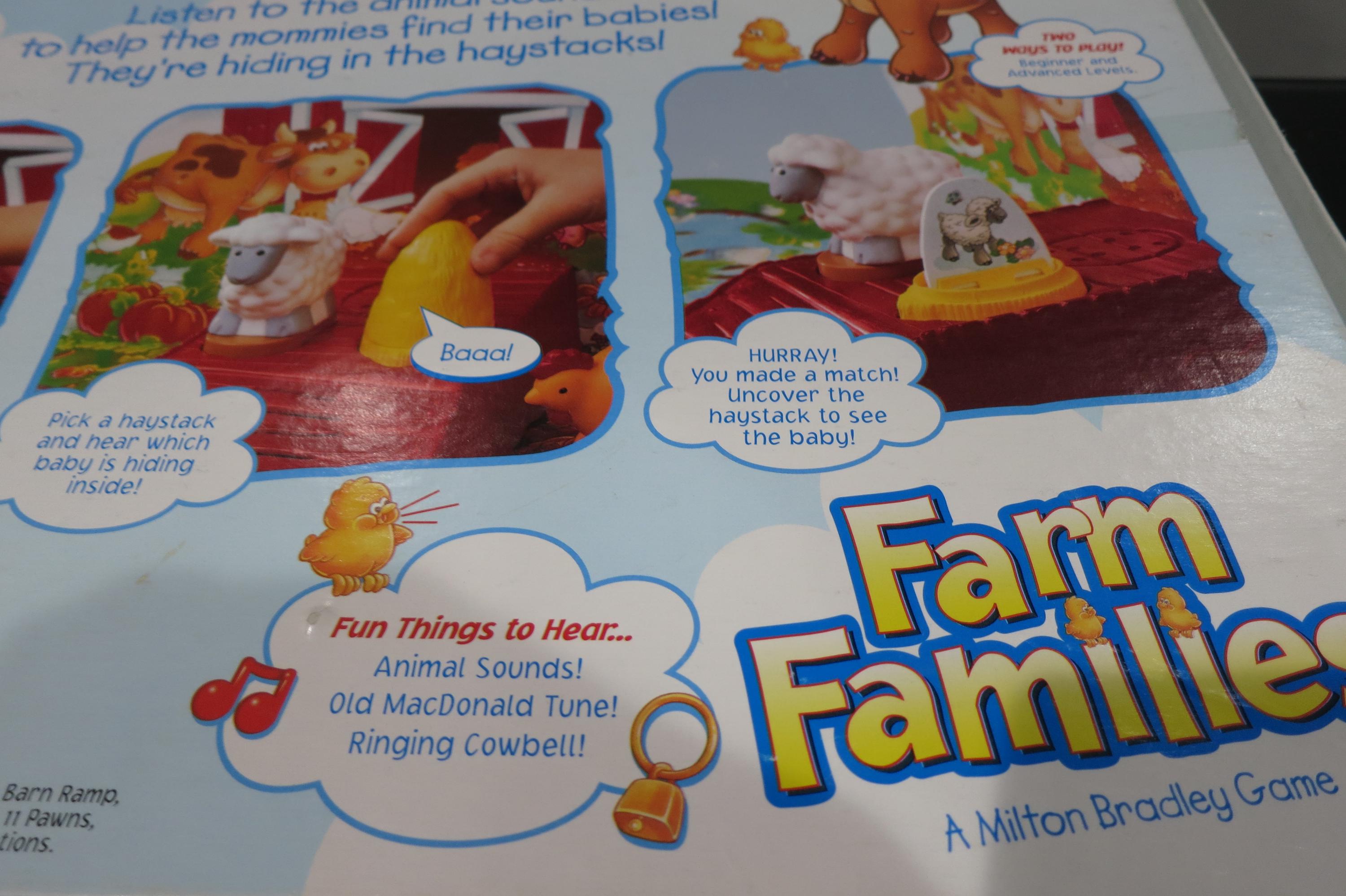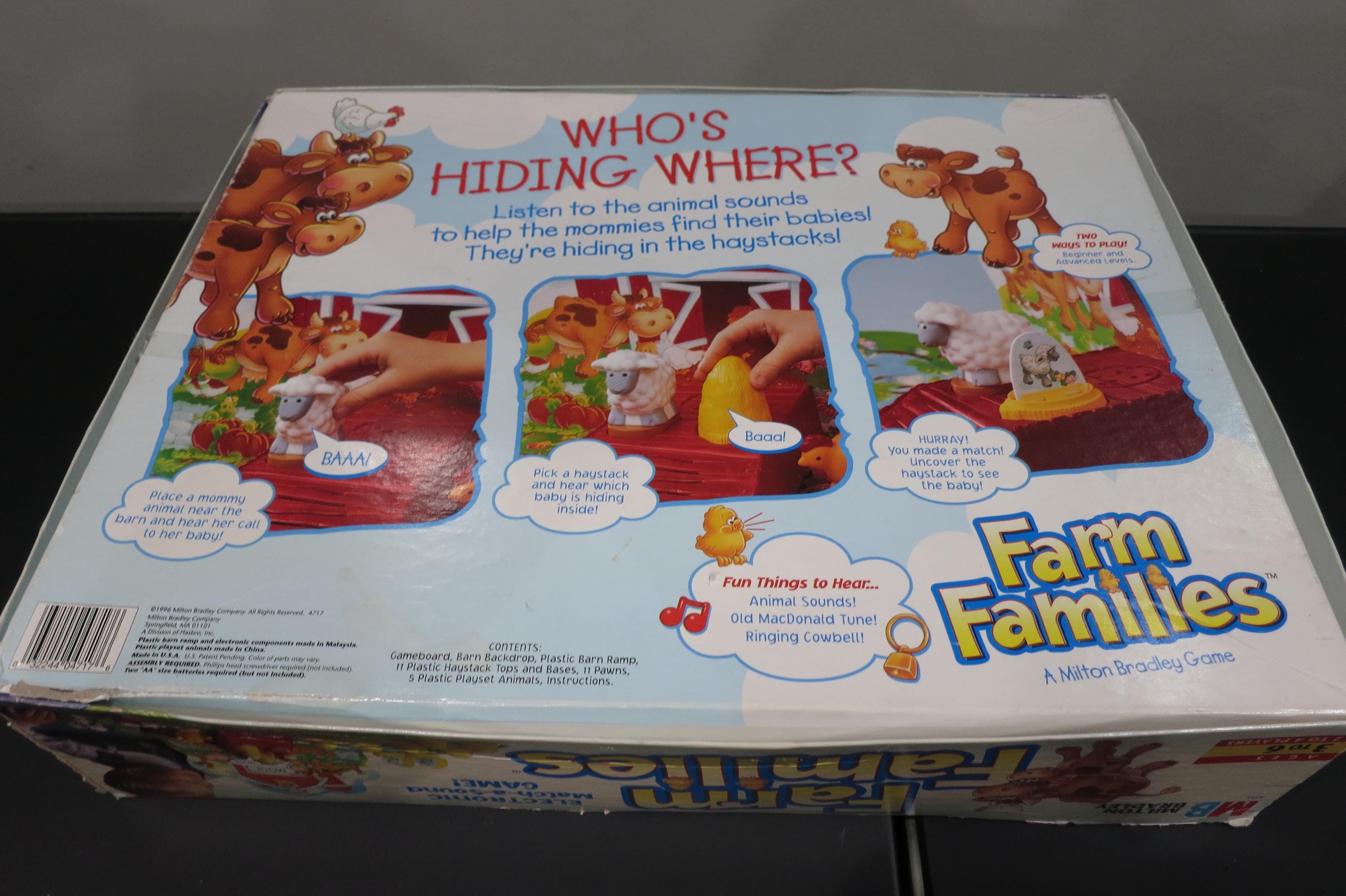 1996 Milton Bradley Farm Families Game Complete and Works Electronic Matching Animals. Box is taped and in poor condition, game contents are in great shape and the electronics work well. Neat game!!