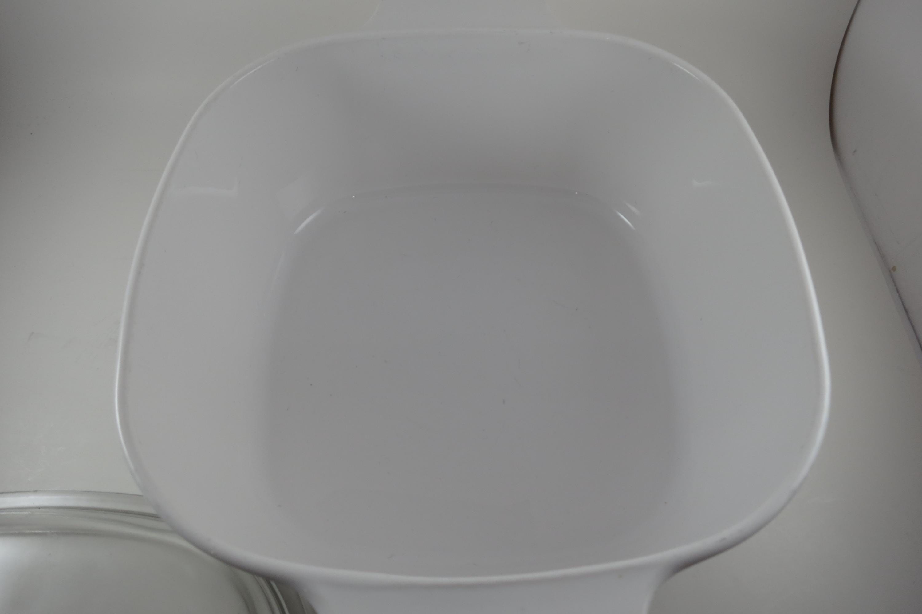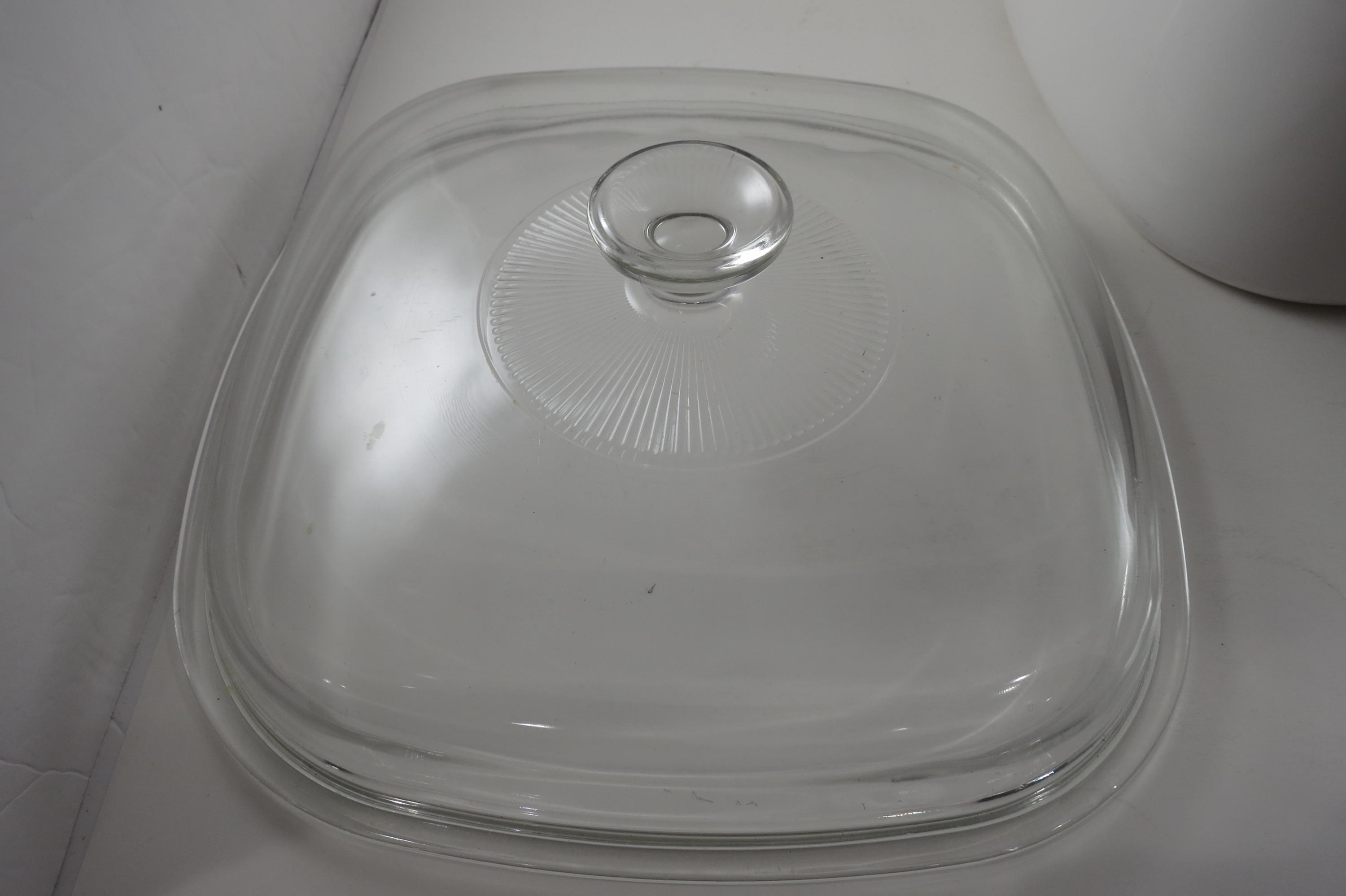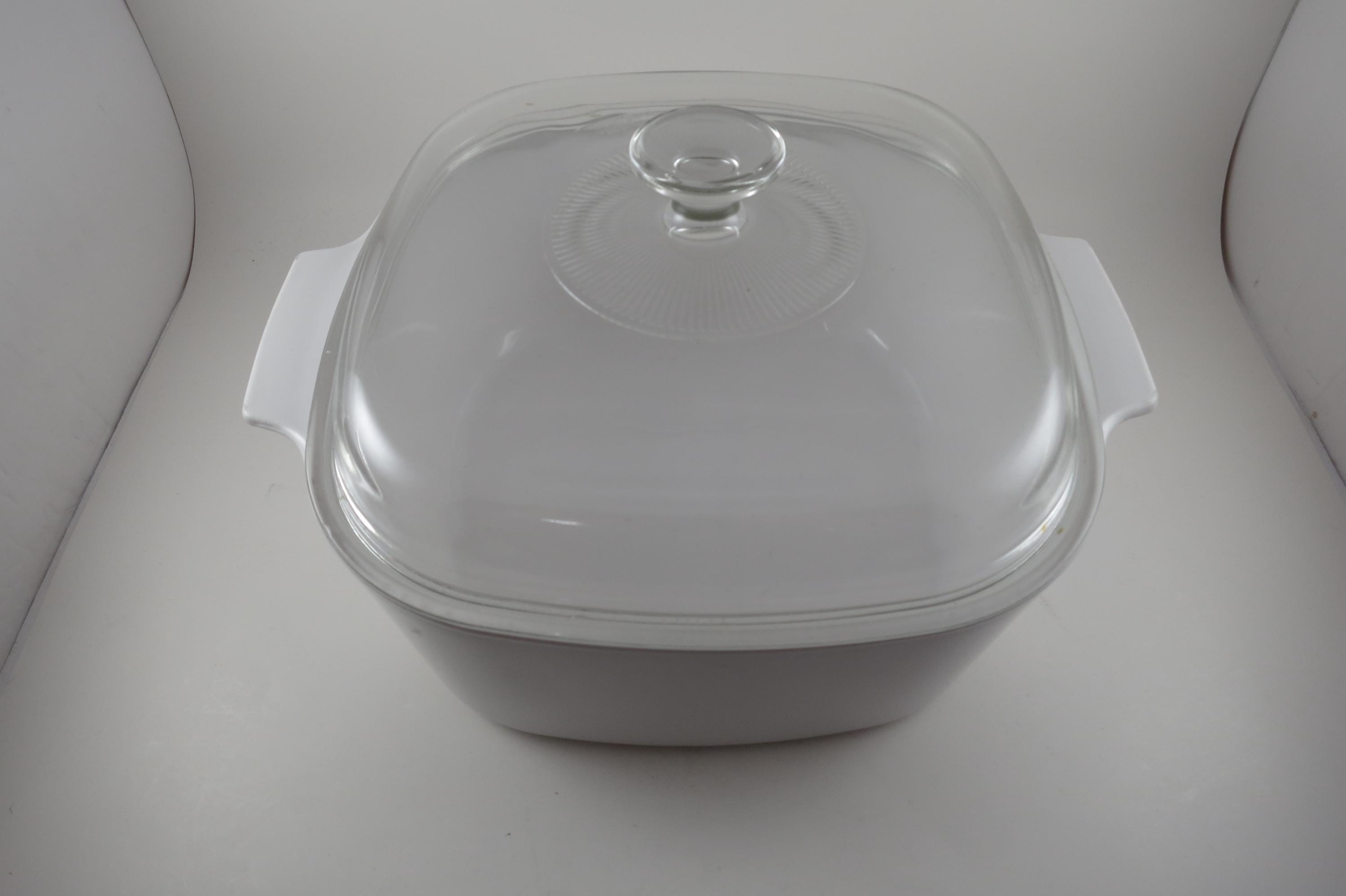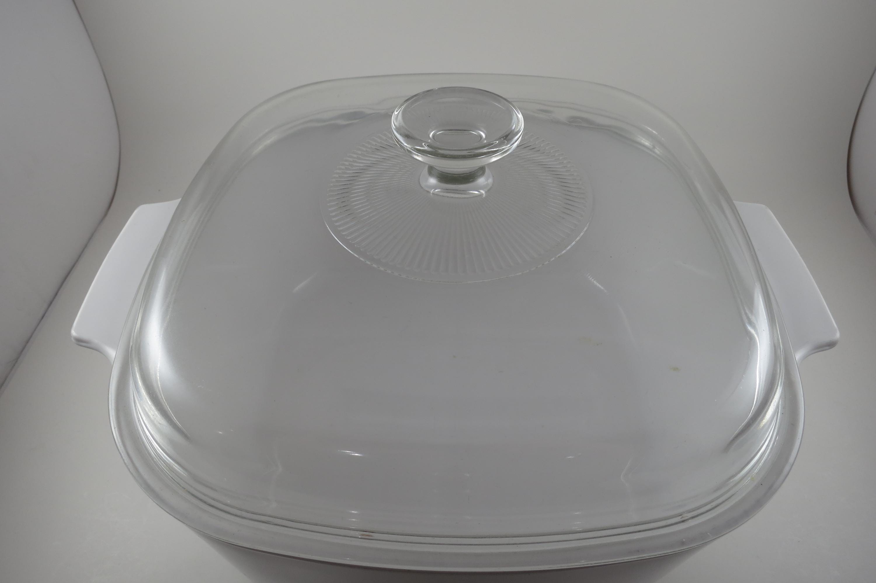 Vintage Corning Ware Dutch Oven: 5 Quart Liter All/Just White with Glass Lid. Large 5 Quart Dutch Oven, complete with the original glass lid. Shows light use wear. Ready to keep using or display!