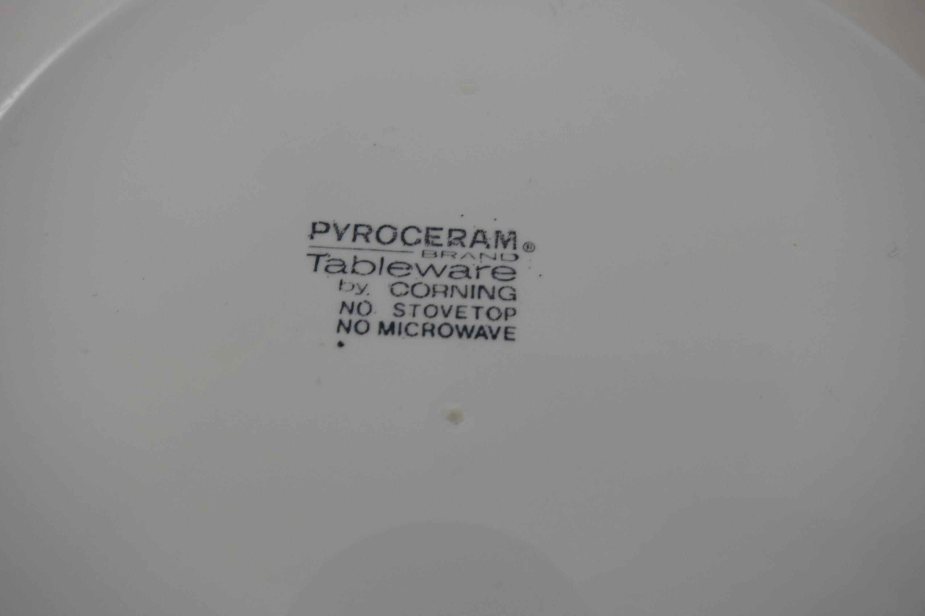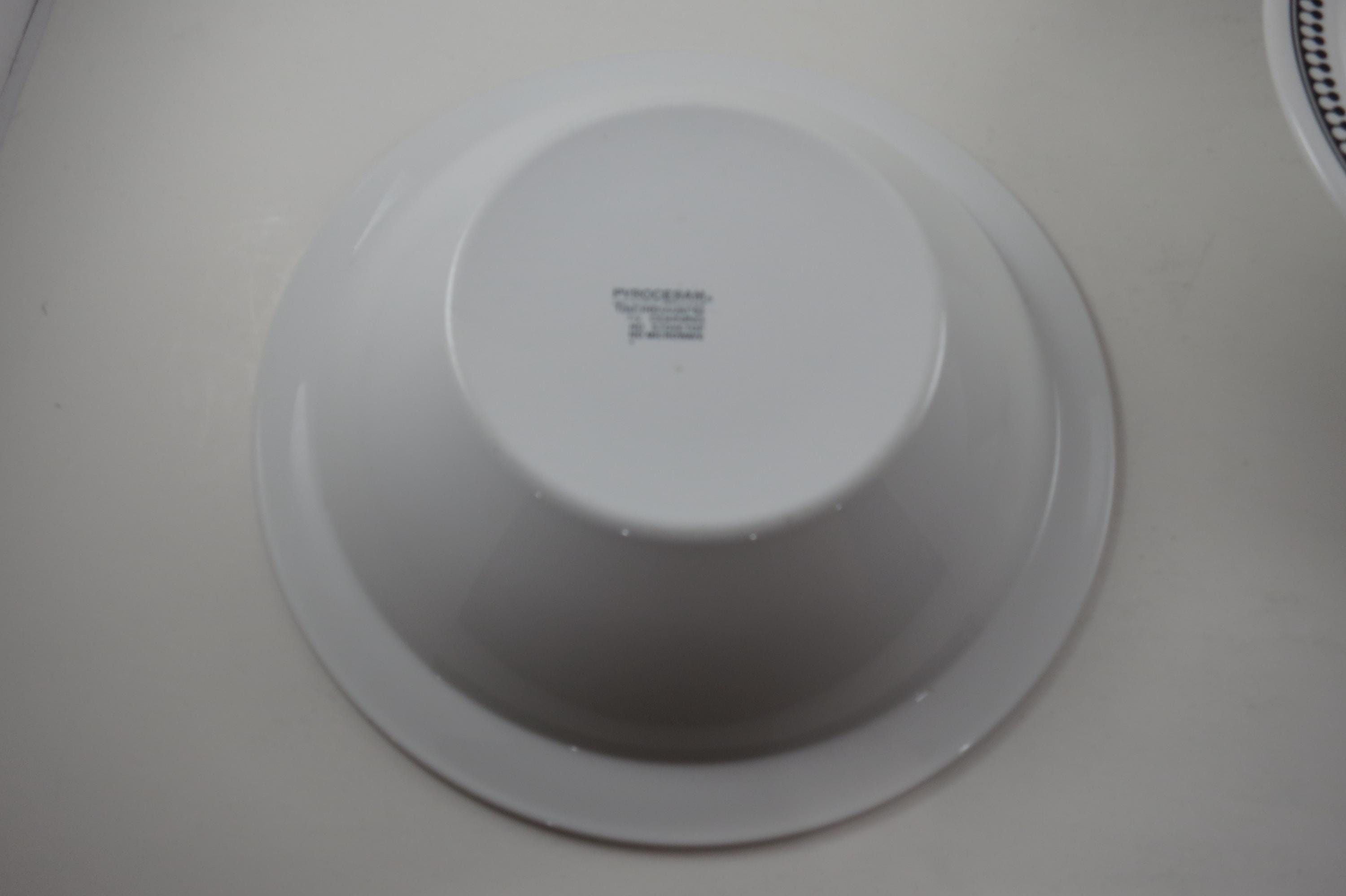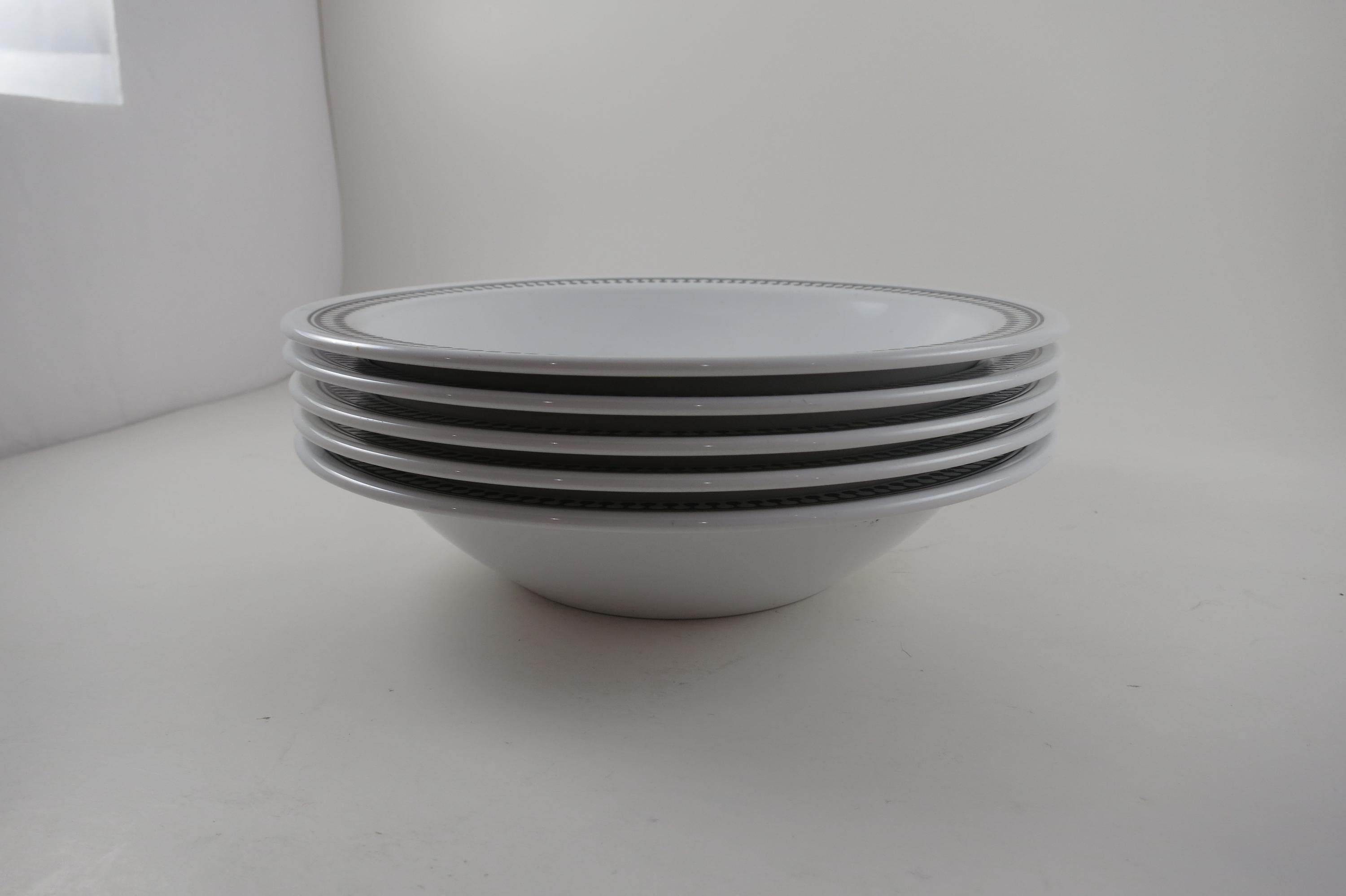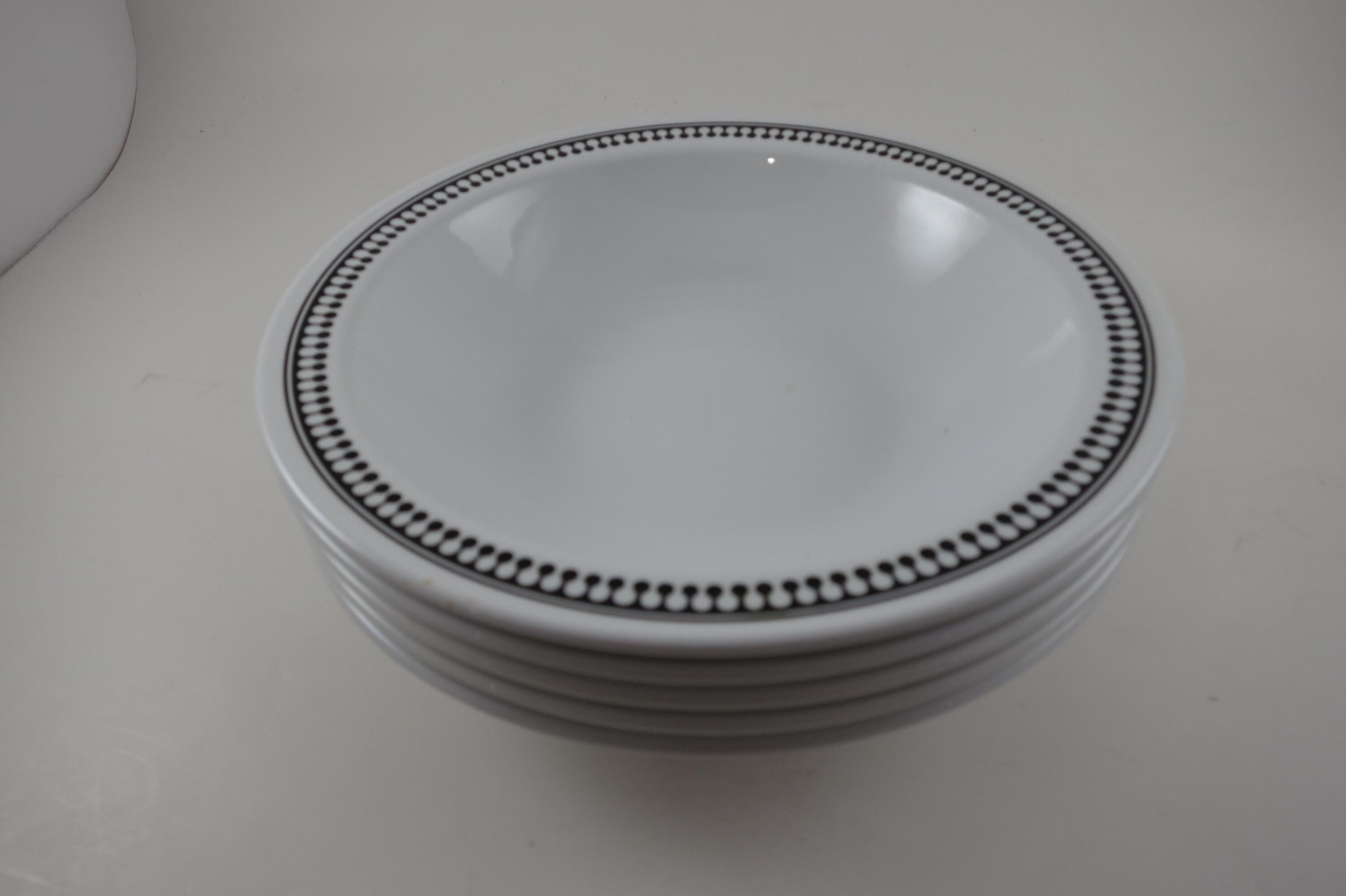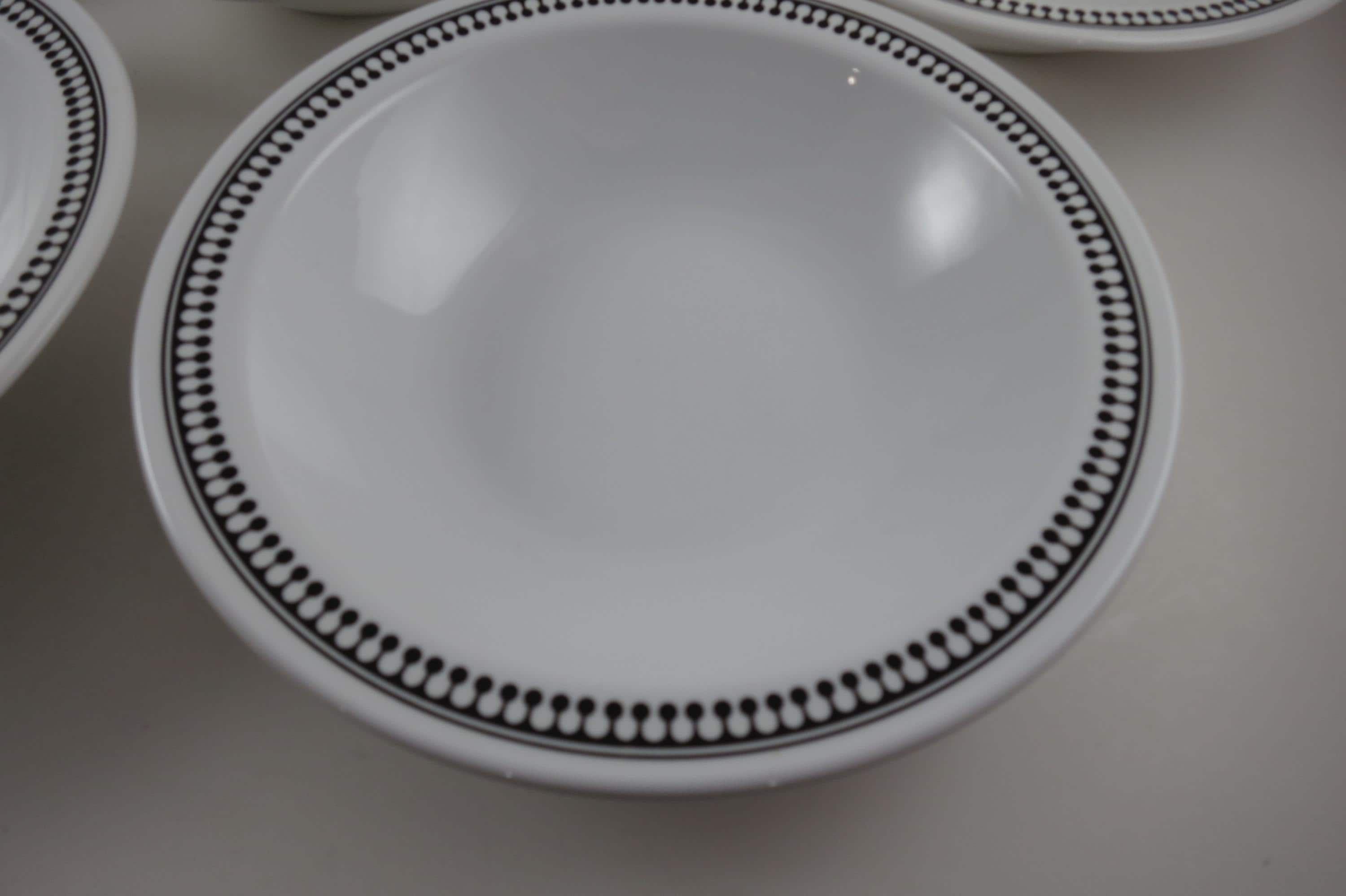 Set of Five Pyroceram Brand Corning Black Knight 7 Inch Soup Bowls. These are in excellent condition with No chips, cracks or damages. Beautiful Pattern! Listing is for a set of five 7 Inch Soup Bowls.