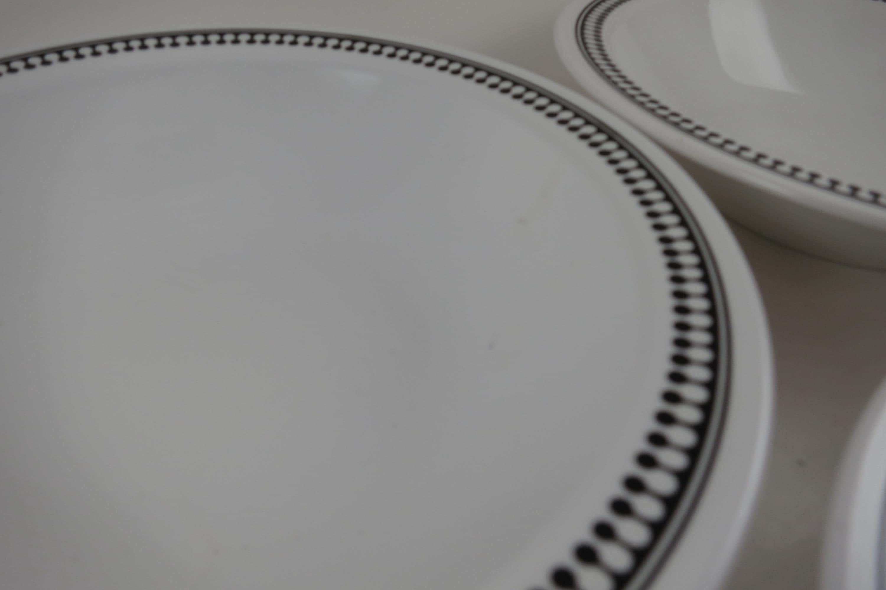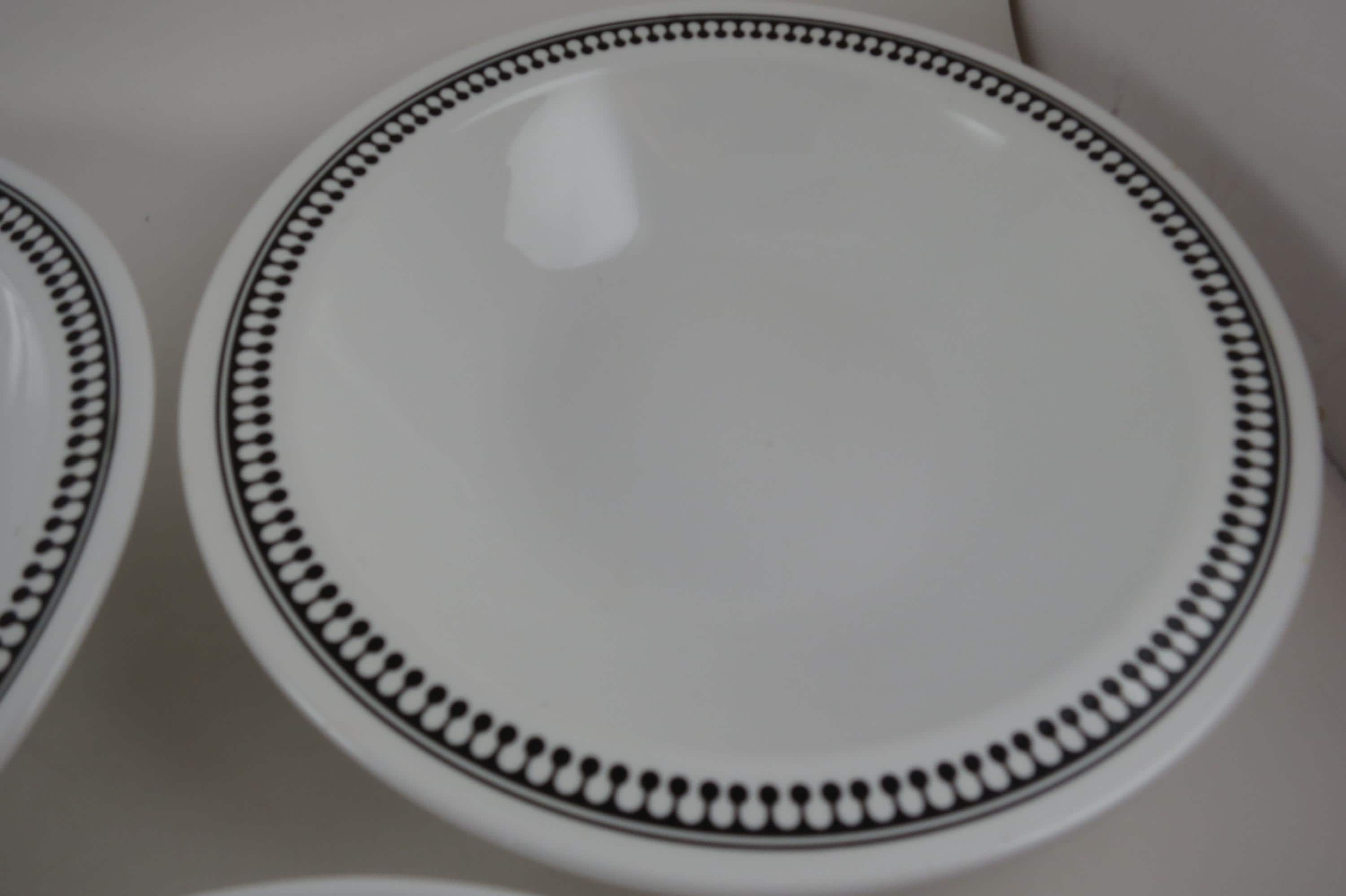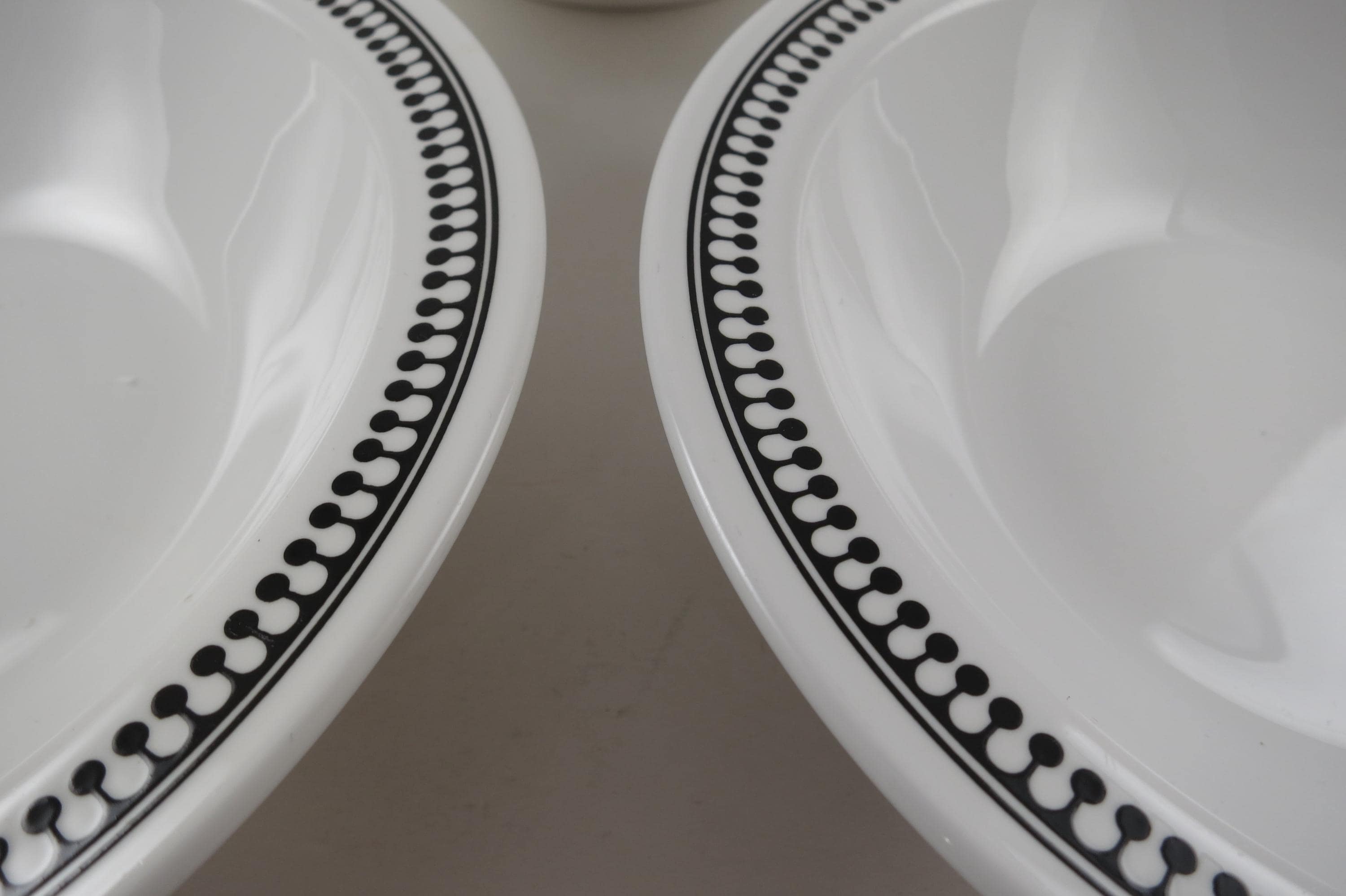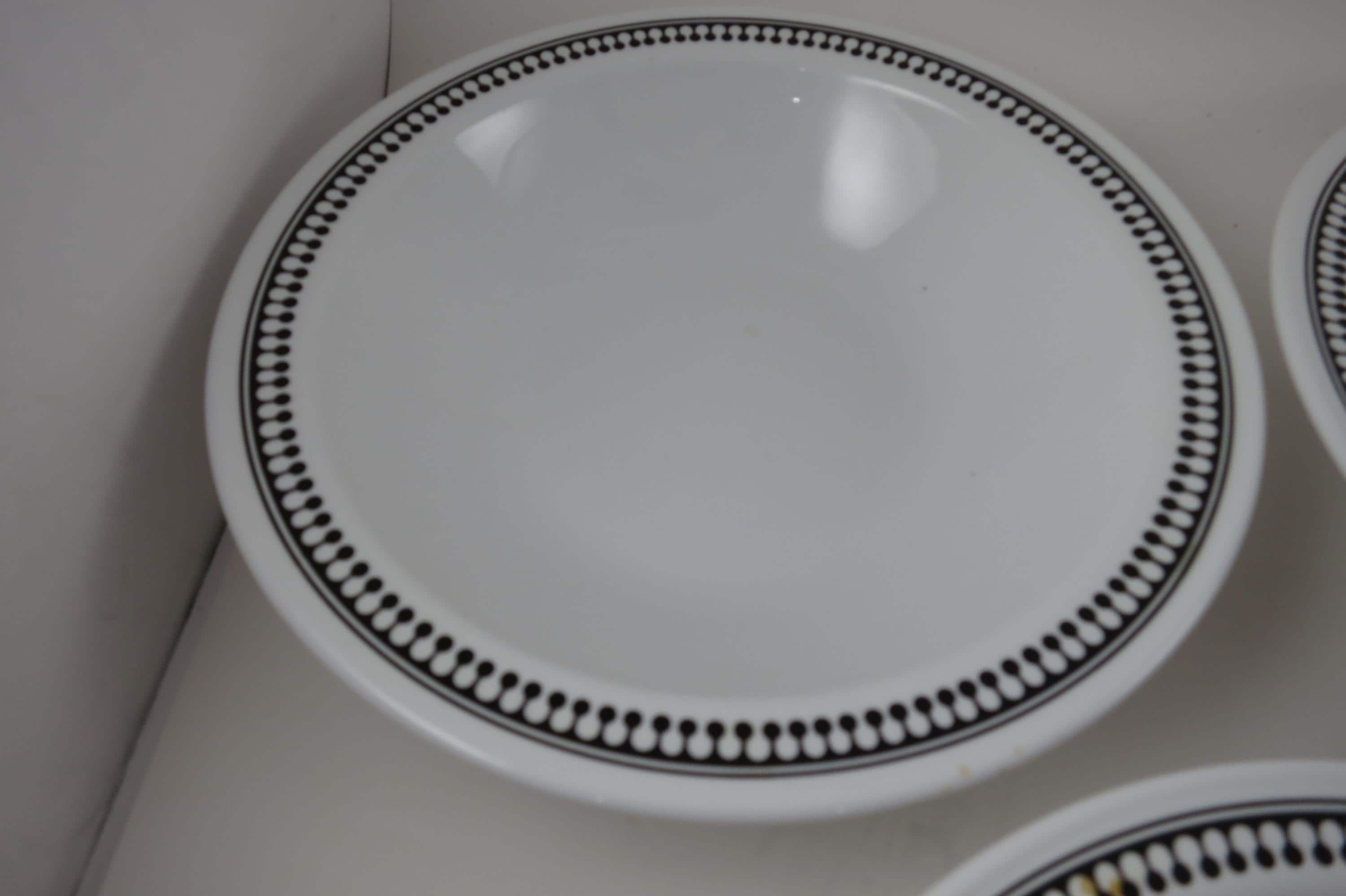 Set of Five Pyroceram Brand Corning Black Knight 7 Inch Soup Bowls. These are in excellent condition with No chips, cracks or damages. Beautiful Pattern! Listing is for a set of five 7 Inch Soup Bowls.
