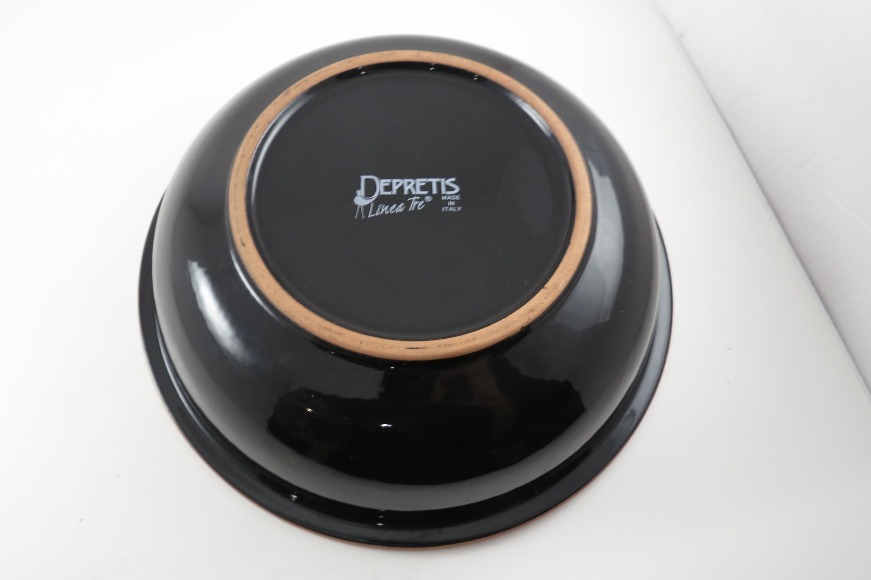 Vintage Depretis Linea Tre Black Italian Stoneware 10 Inch Rimmed Bowl.