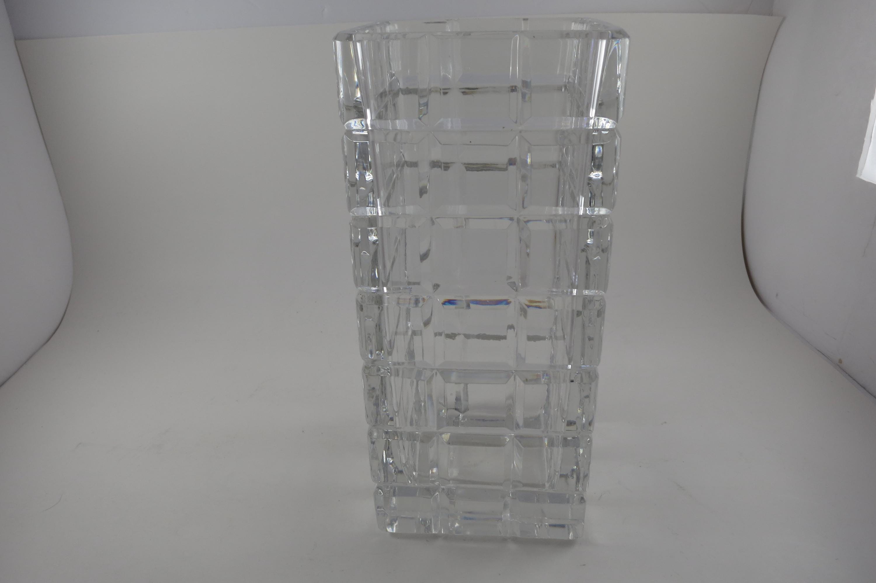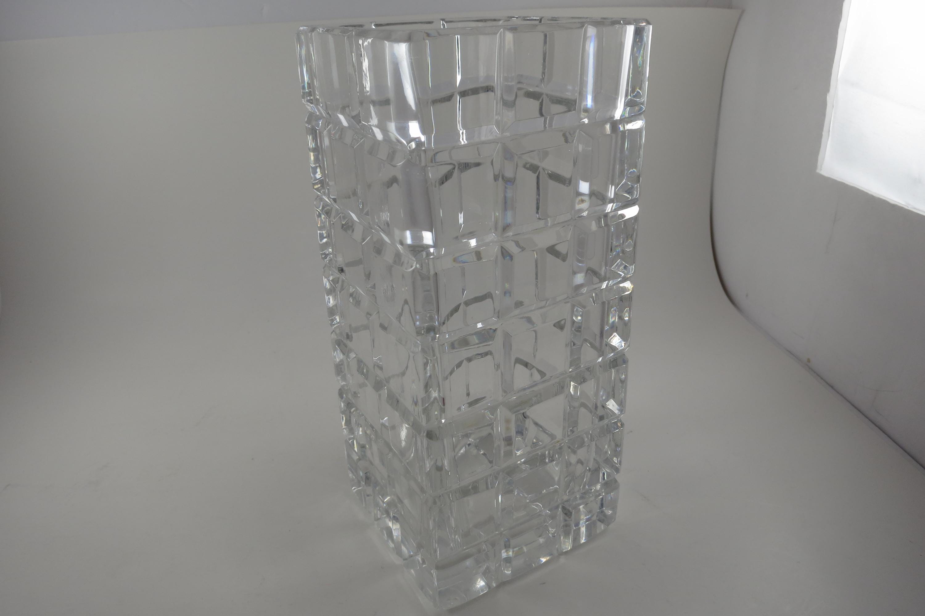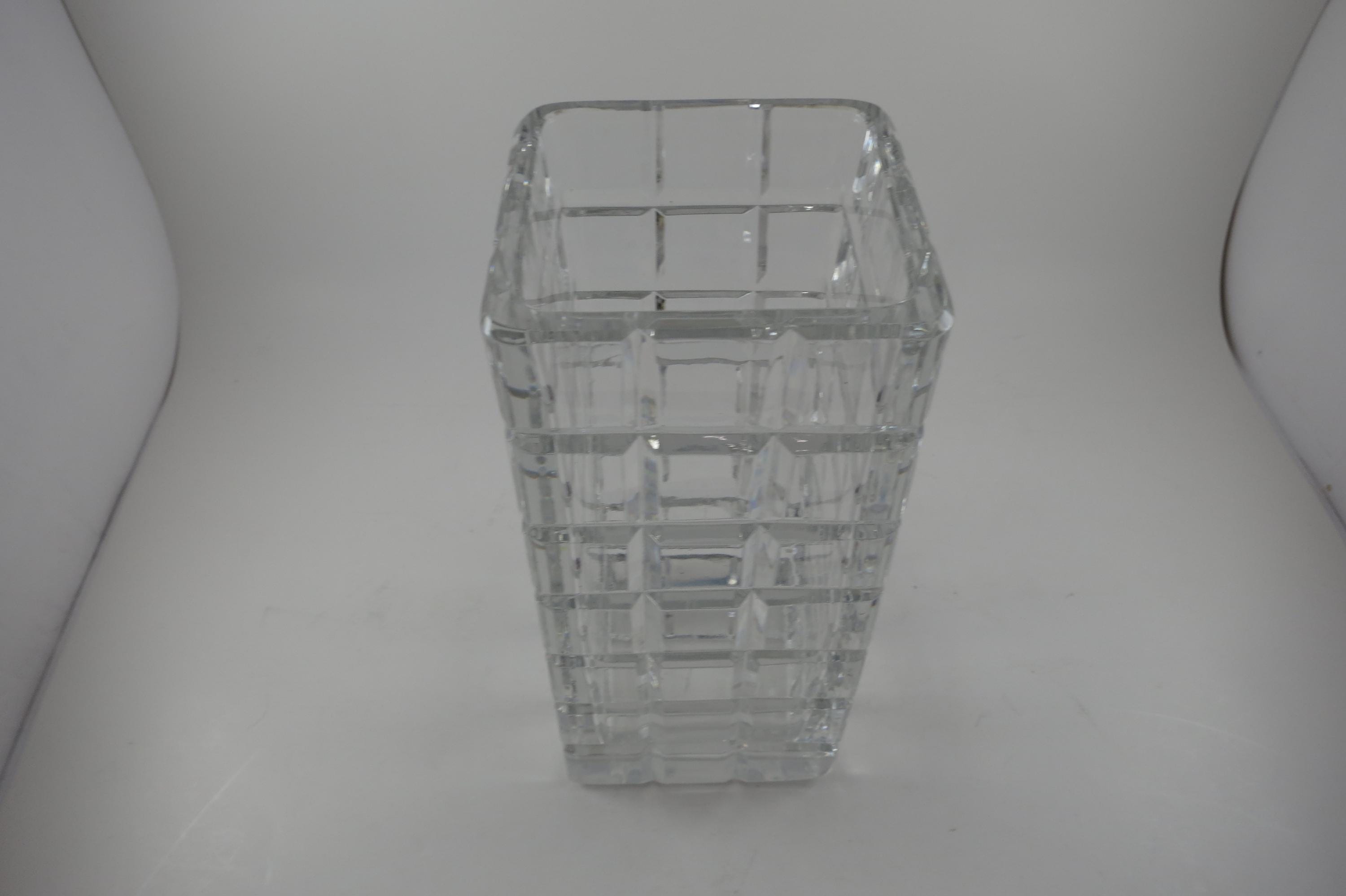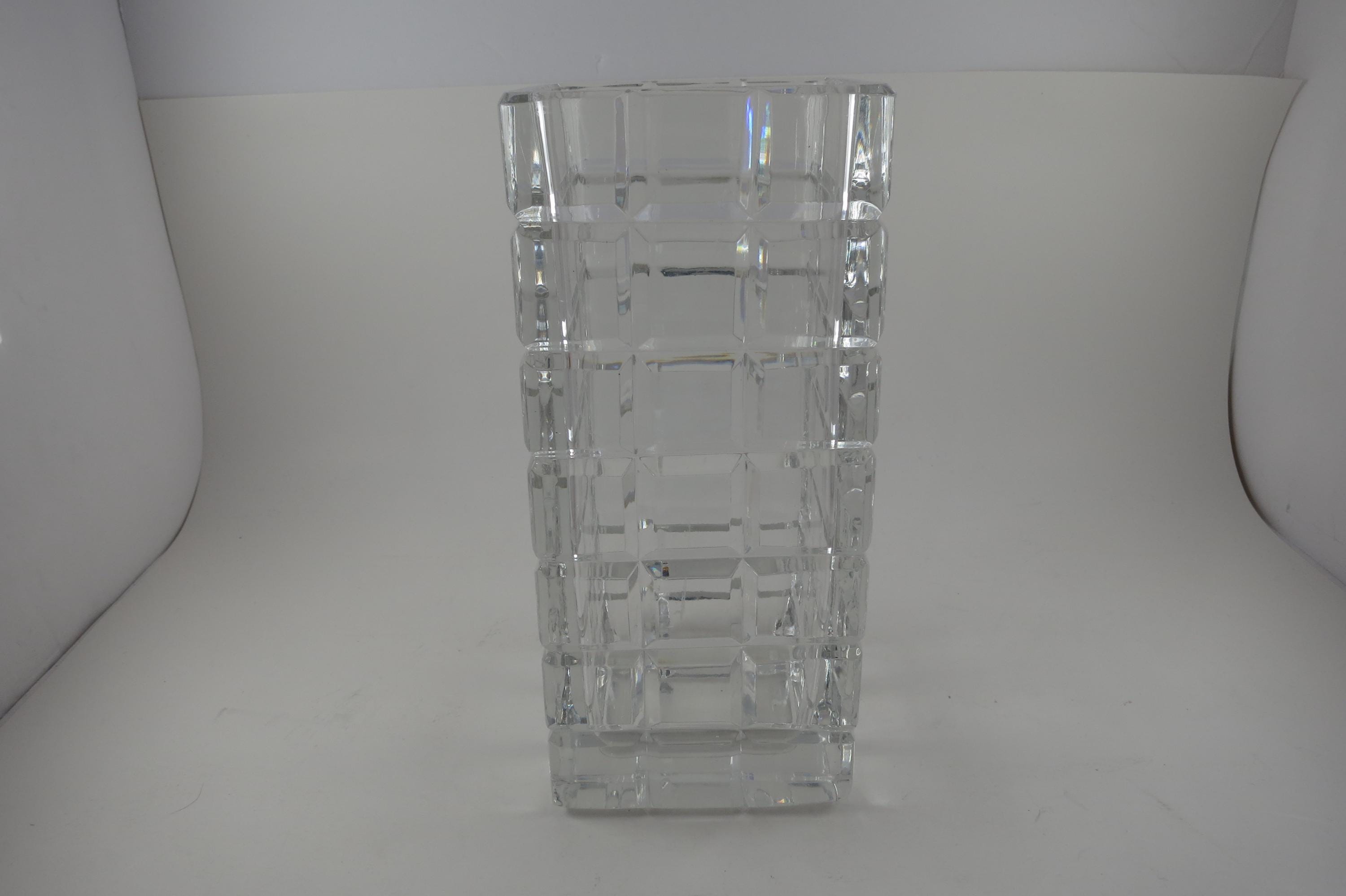 Vintage Lead Crystal Blocks Cased Vase 9 Inches Tall.